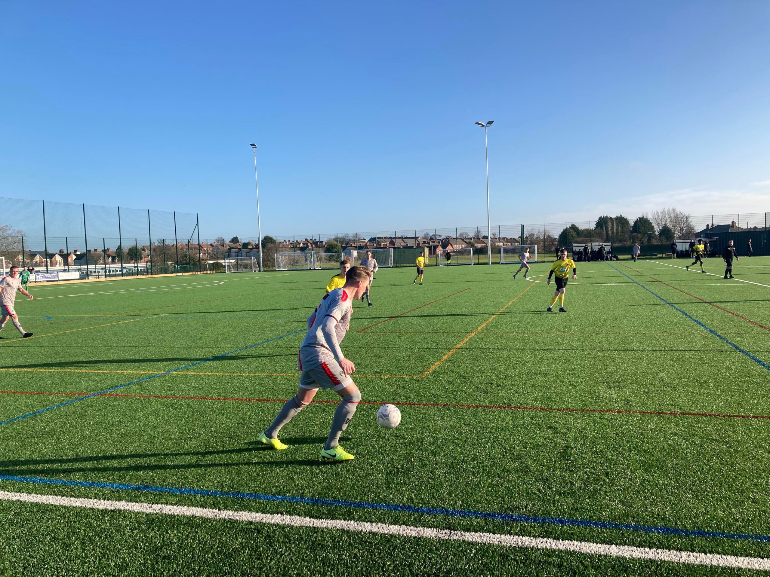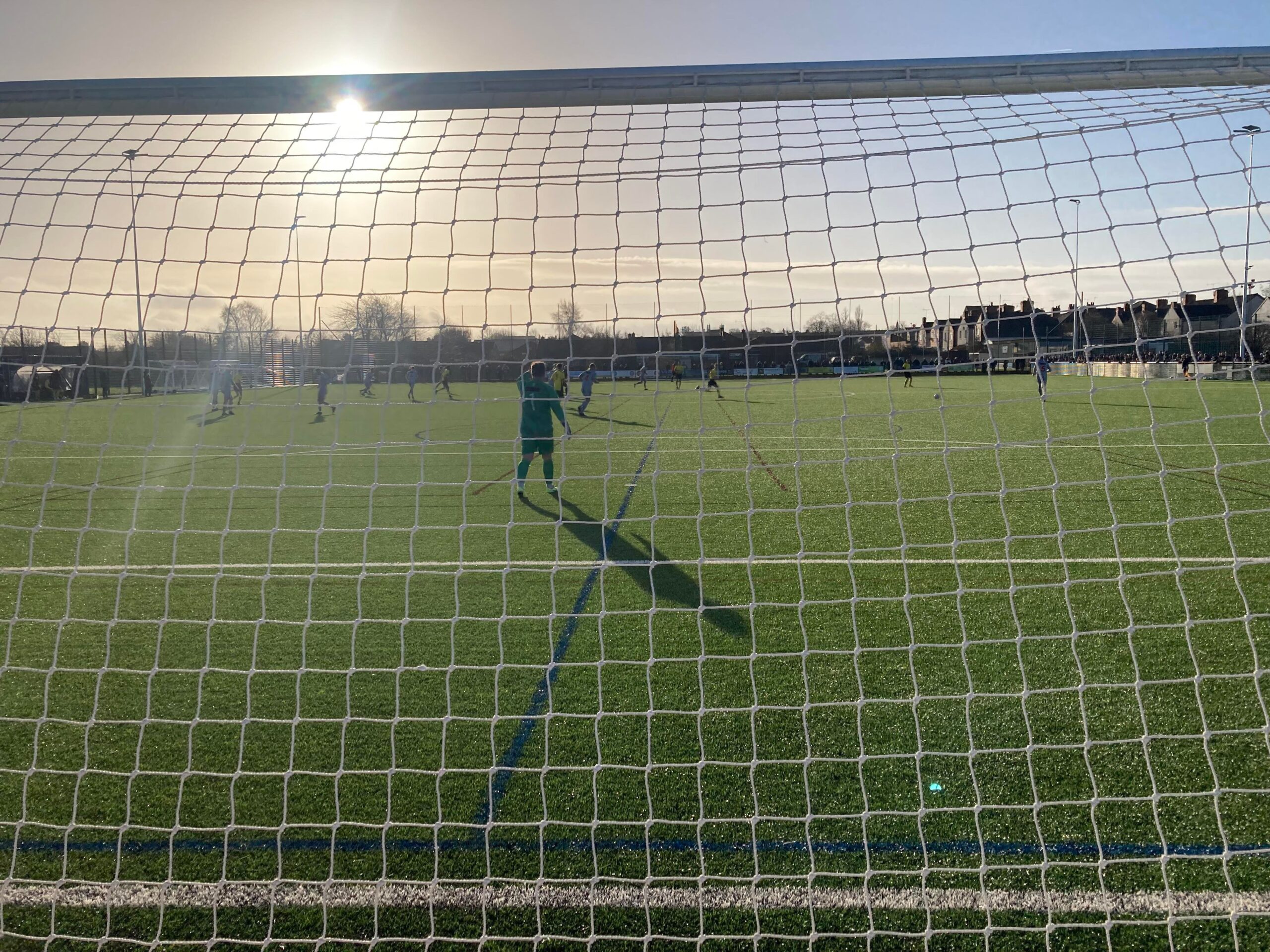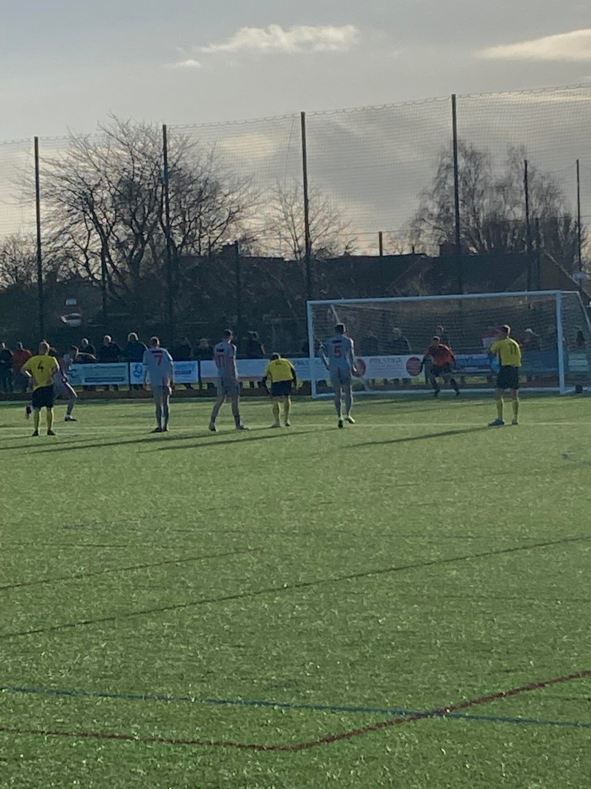 40 minutes gone and Retford play down the left, it’s crossed in, it comes for Jon Froggatt at the back post… He’s scored!! The keeper can’t keep it out and Retford lead here on Christmas Eve!! 0-1!