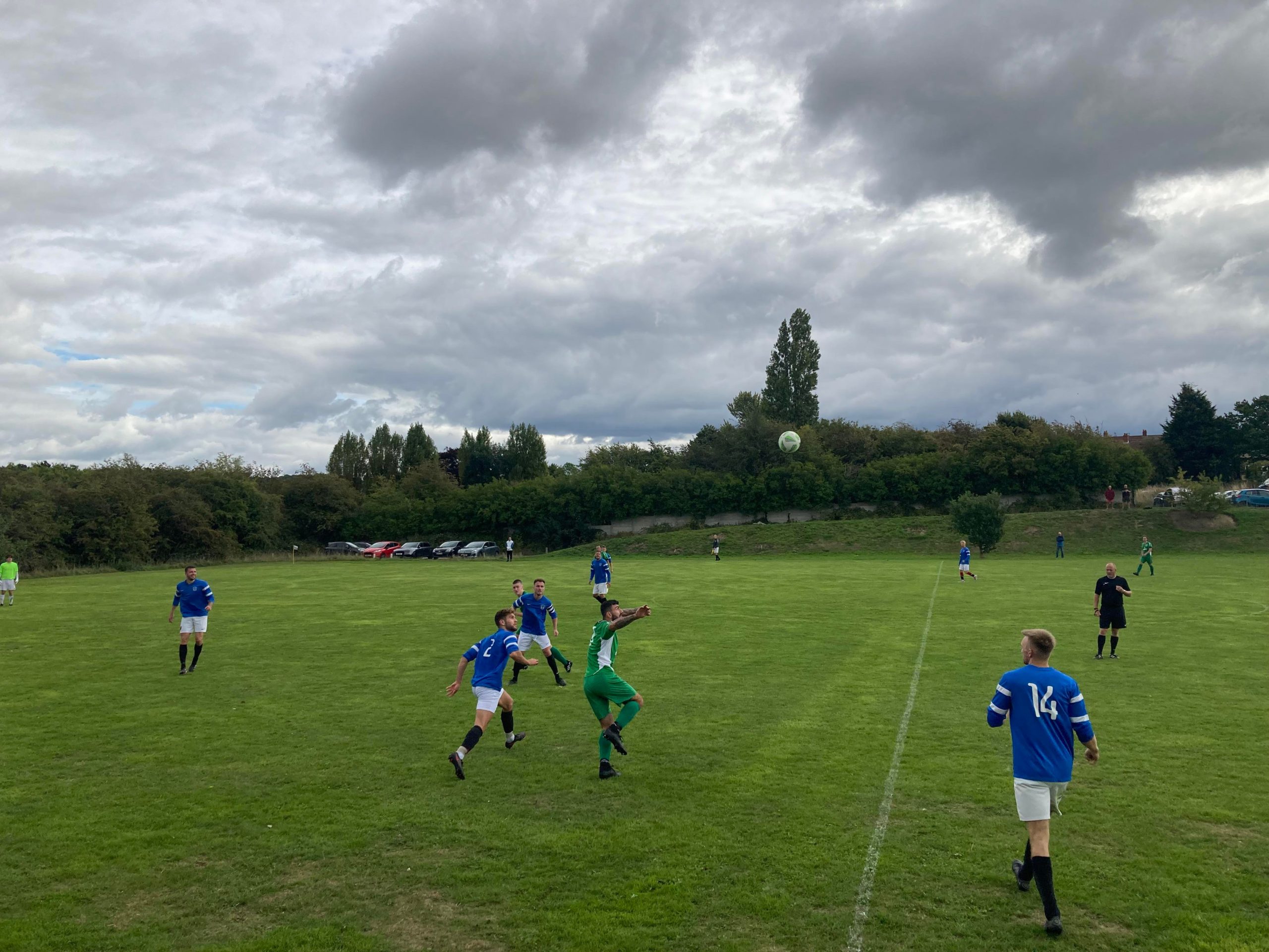 68th minute and Butcher’s come forward but Doe Lea will retrieve the ball, the keeper is out of his area and clears the ball… Wait a minute no he hasn’t! He’s given it straight to Butcher’s number 9 who goes for goal from 25 yards with the keeper AWOL, Doe Lea’s number 6 tries to intercept… But he can’t get there!! Butcher’s Arms are level!! It’s 1-1!!