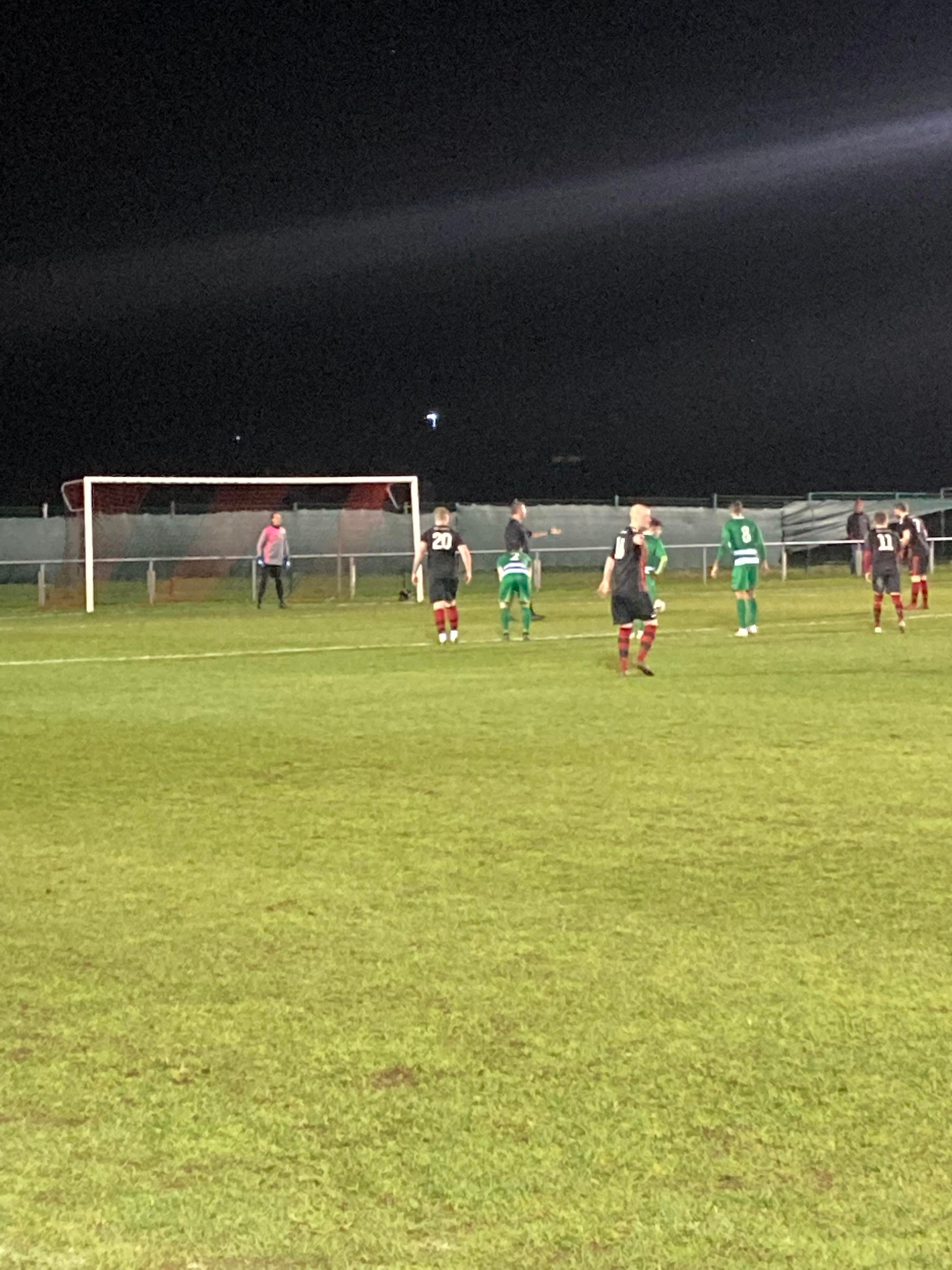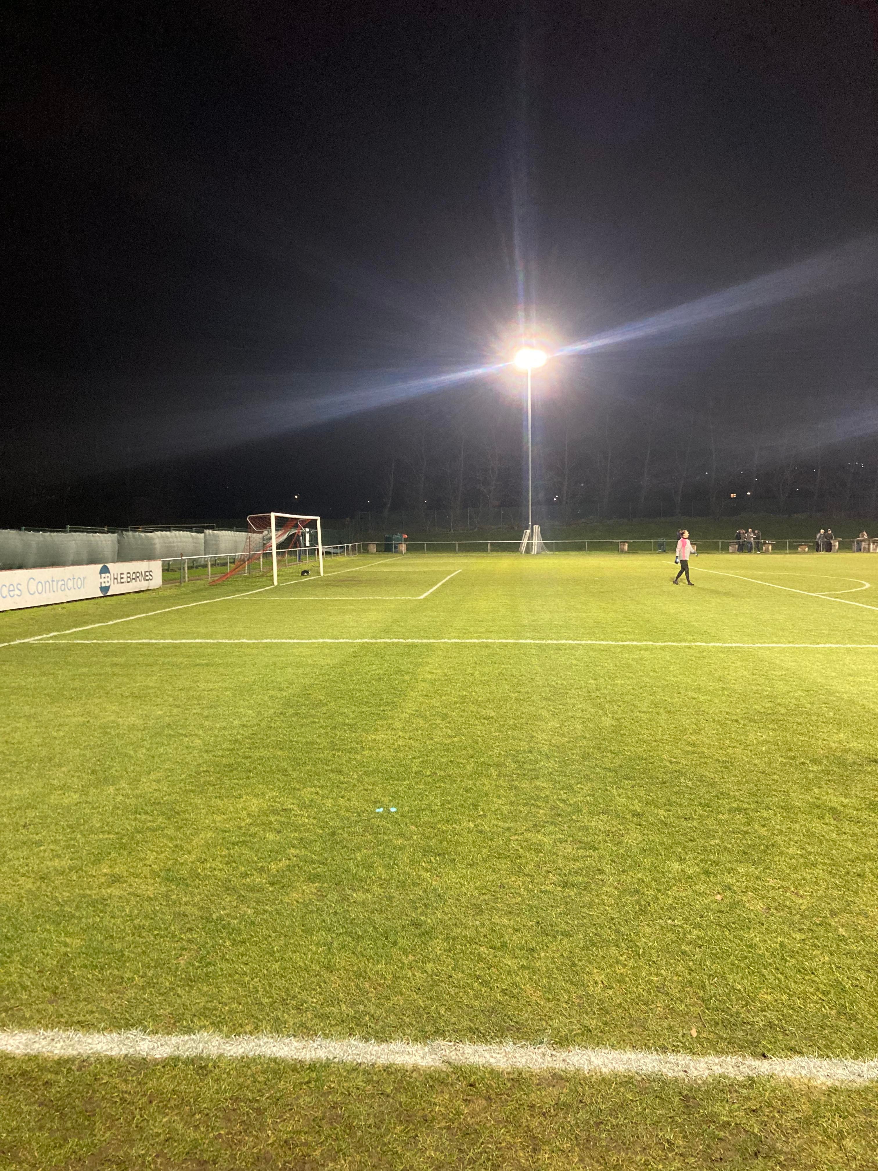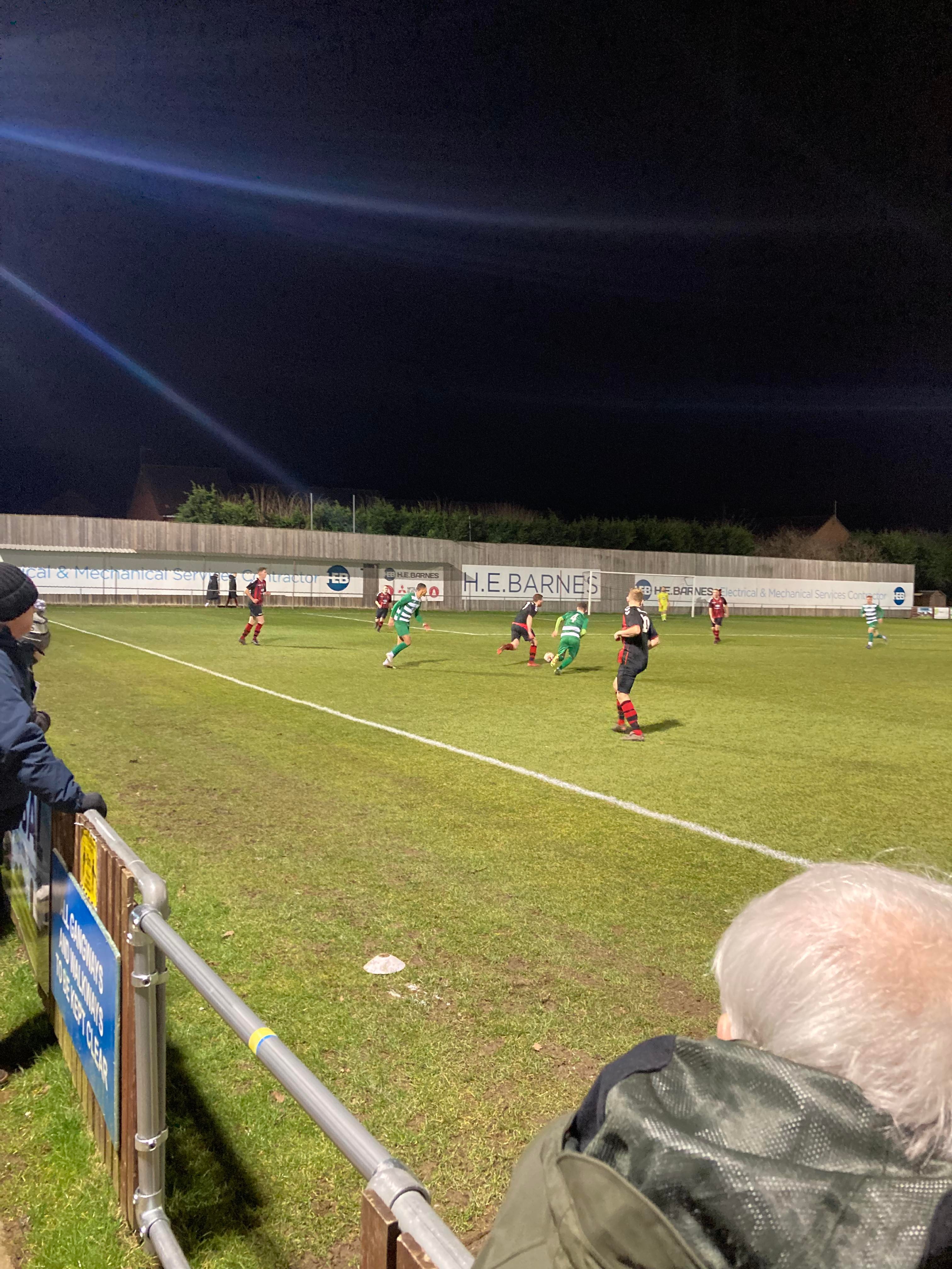 Second half… They sure do a good Hot Chocolate here!! 2 minutes into the second half and Glasshoughton have come out fighting! They have a free kick just inside the Dronfield half, it’s lumped into the box, number 9 wins the ehader… Straight to the keeper!