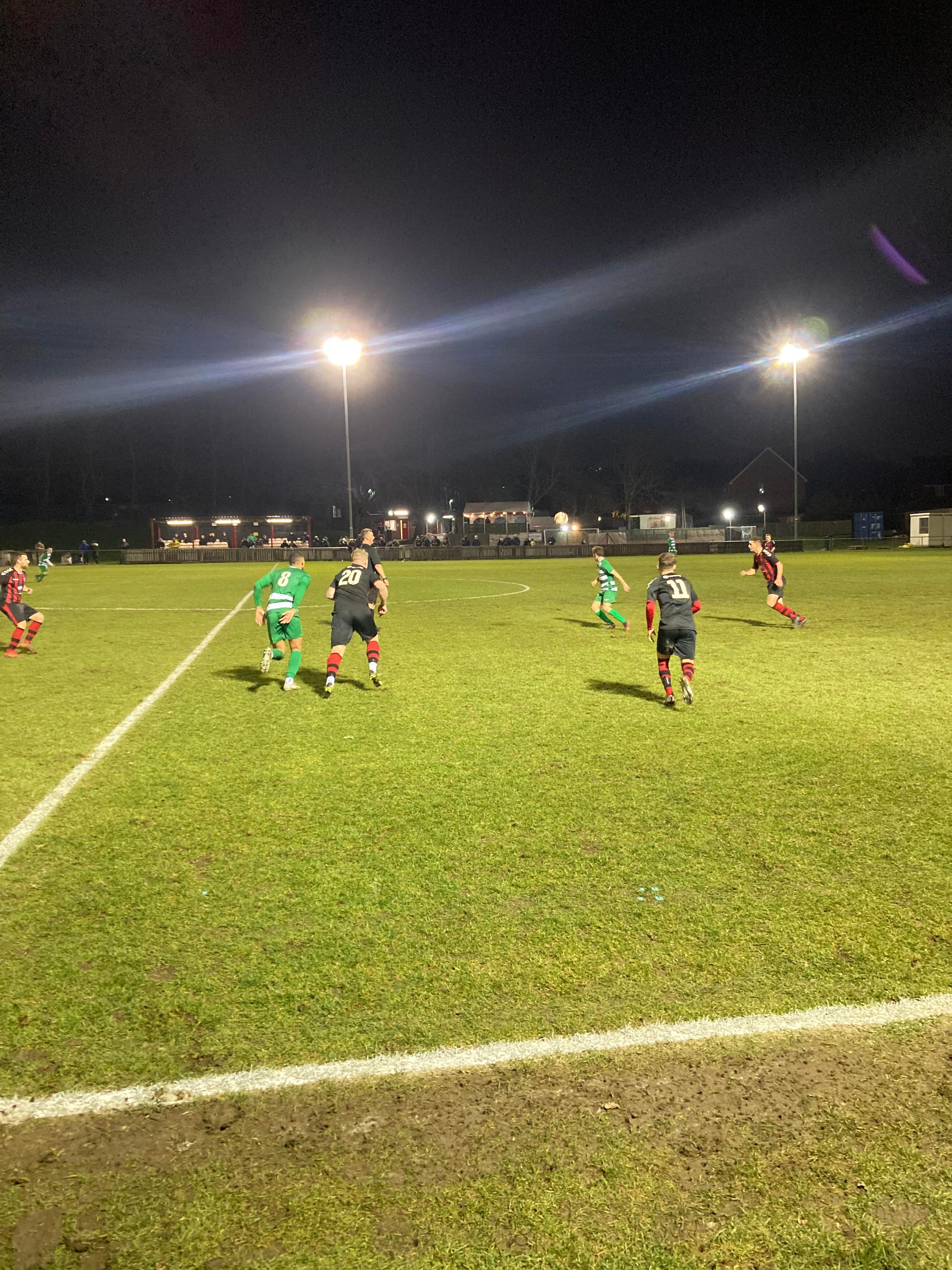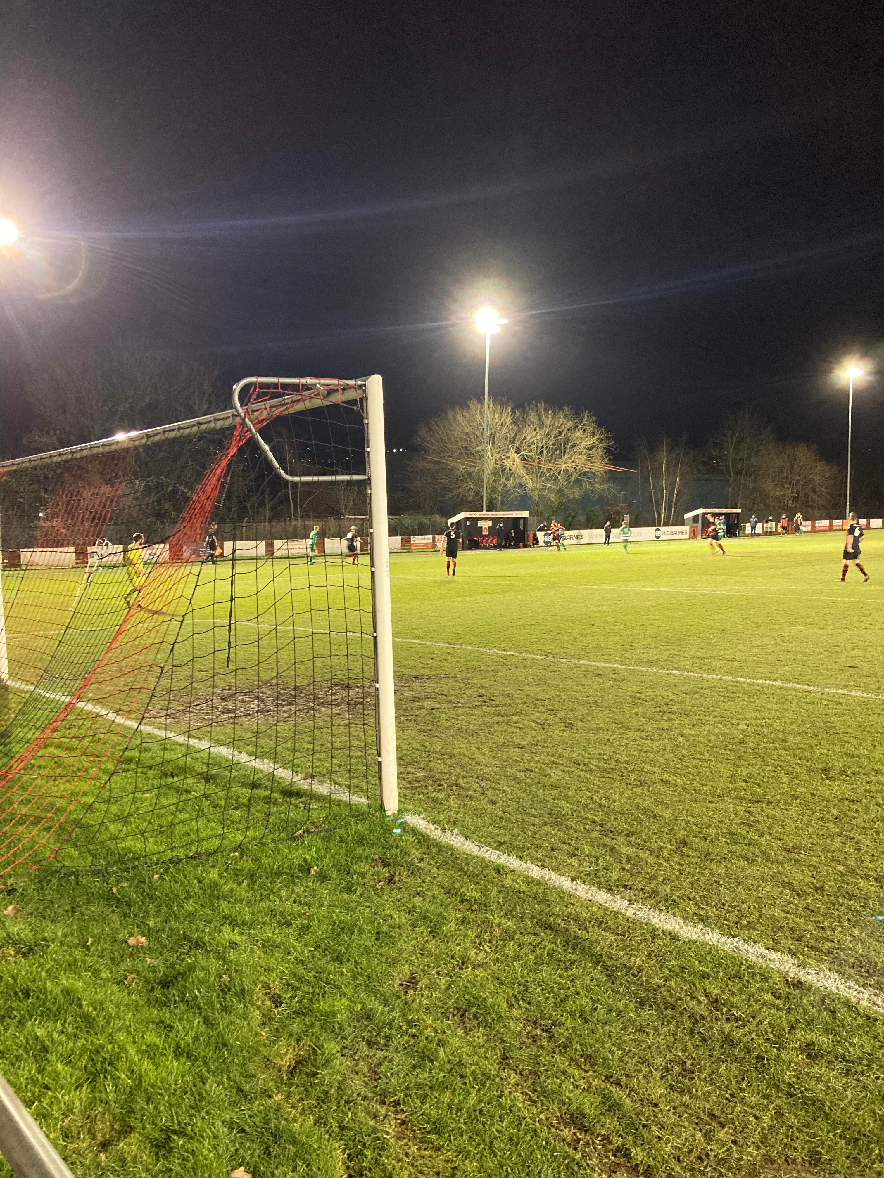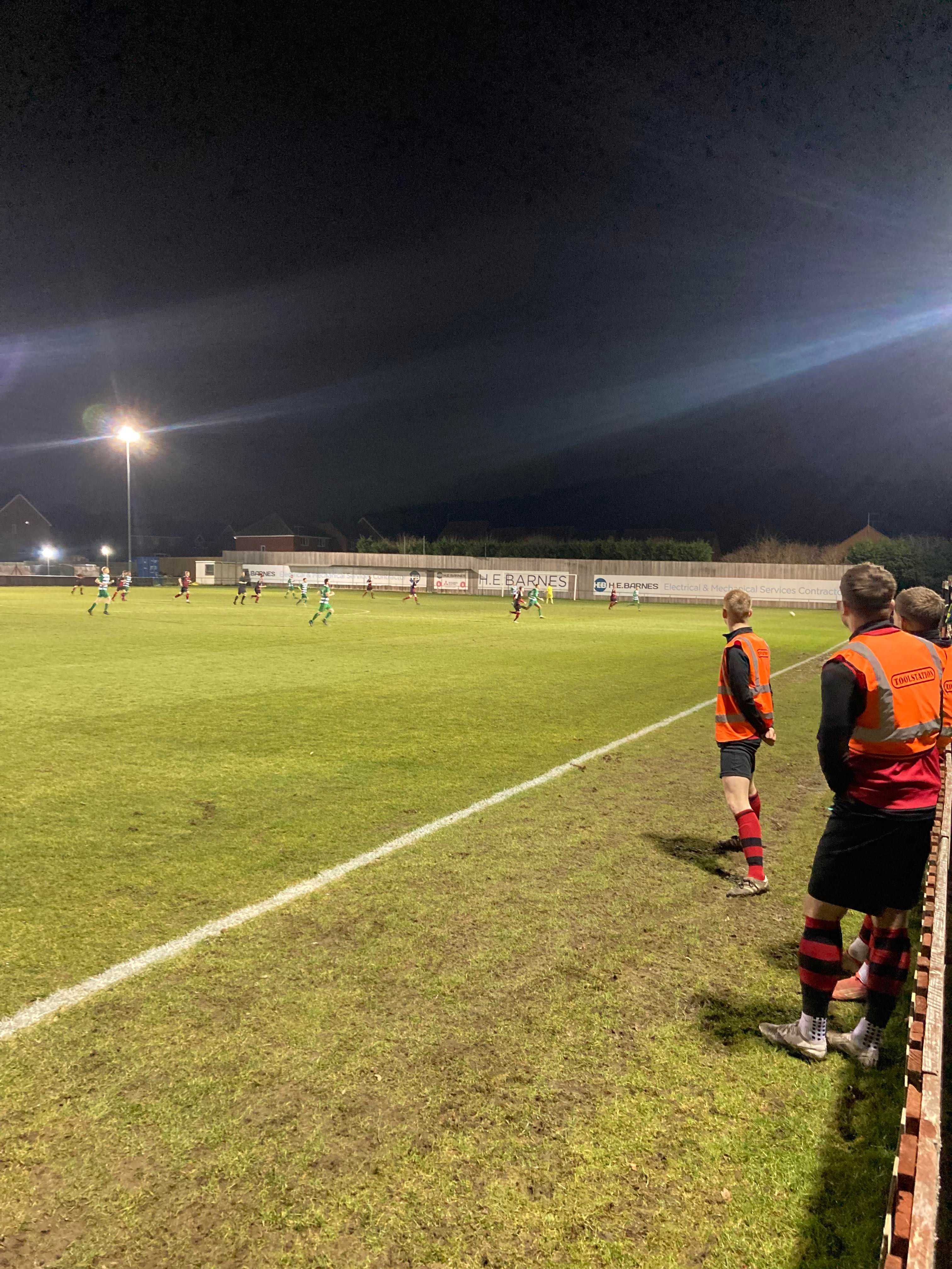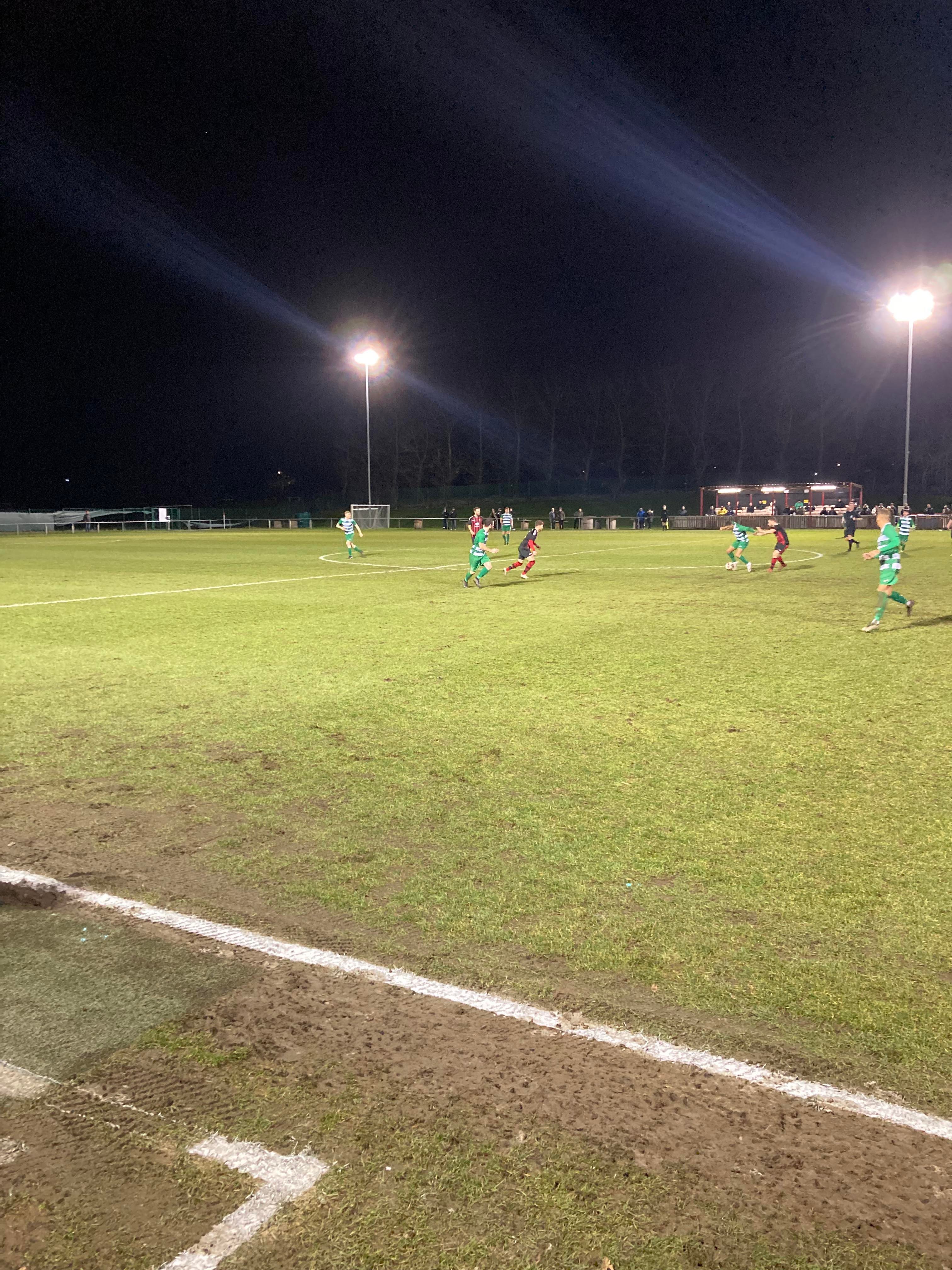 Second half… They sure do a good Hot Chocolate here!! 2 minutes into the second half and Glasshoughton have come out fighting! They have a free kick just inside the Dronfield half, it’s lumped into the box, number 9 wins the ehader… Straight to the keeper!