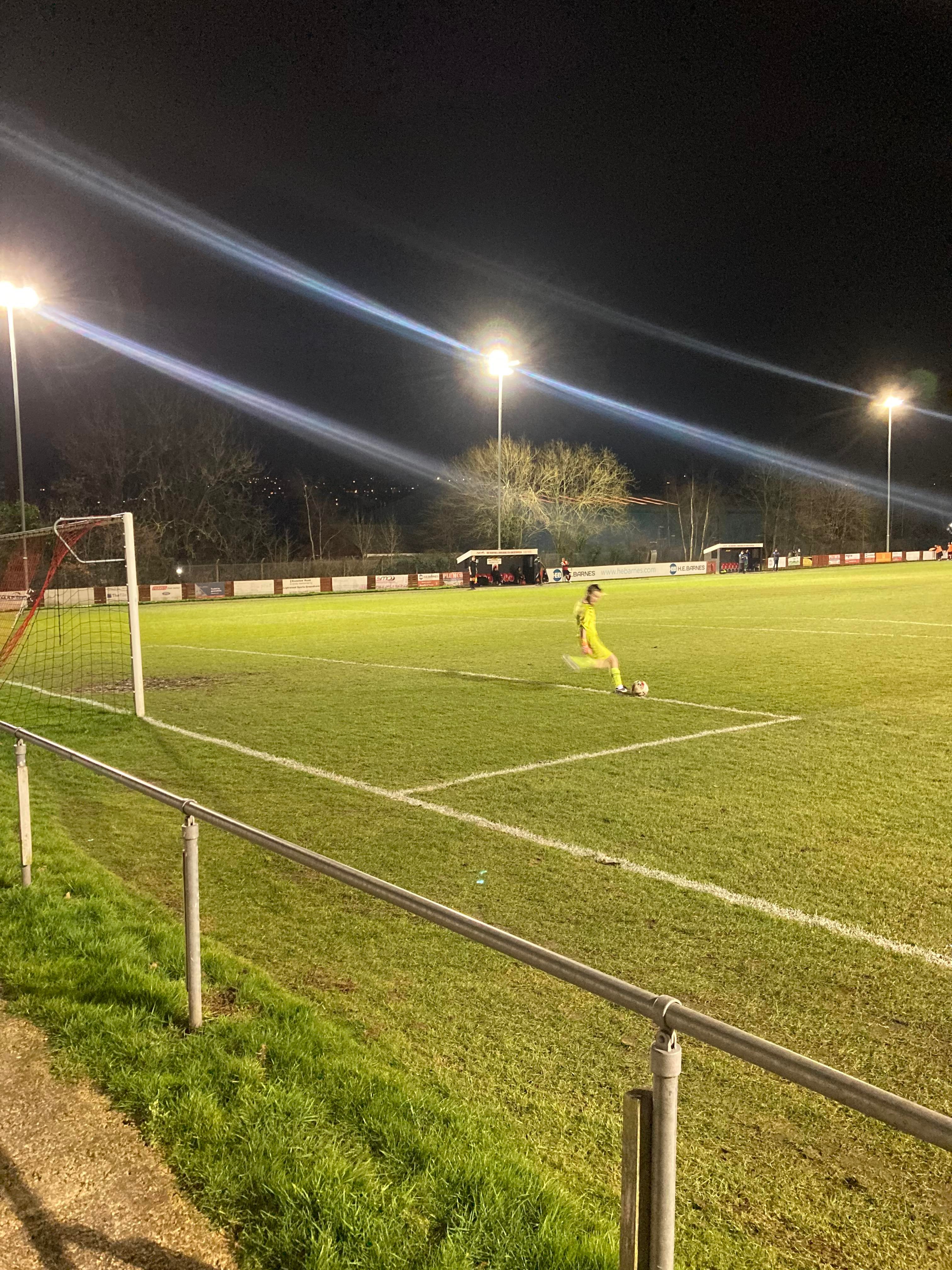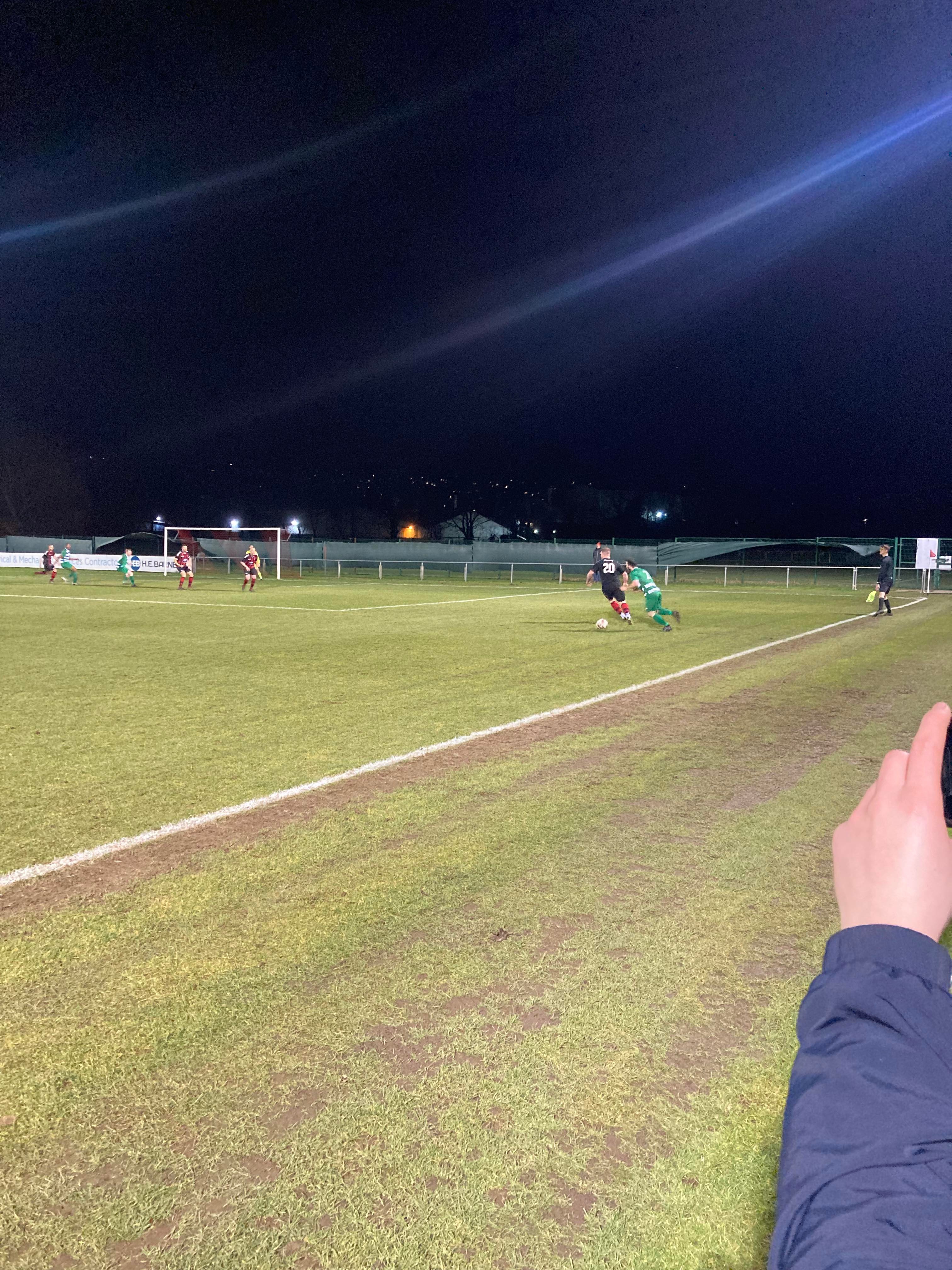 2 minutes later and here come Dronfield again! They have it down the right, they attempt to cross… Corner, in it comes… Number 9 wins the header… But it’s wide! At half time Dronfield have a 2 goal lead.