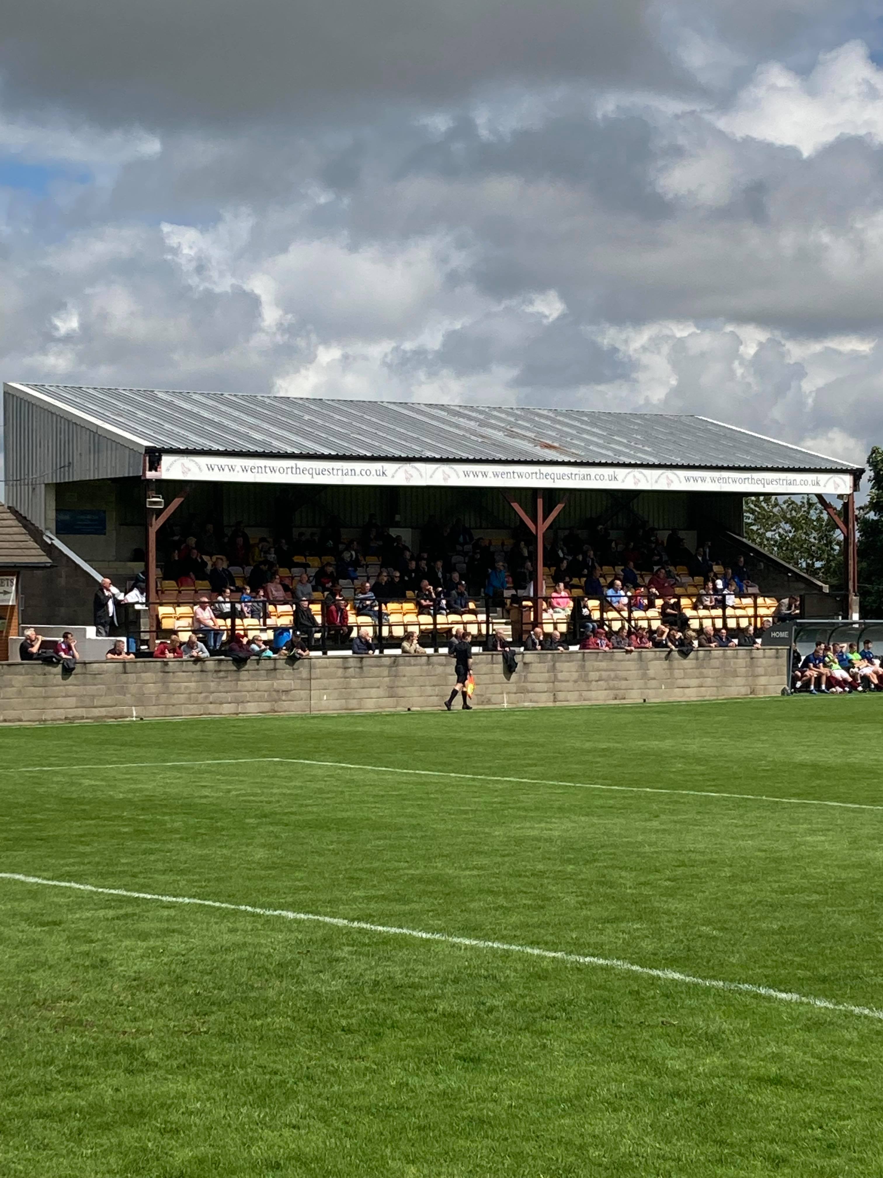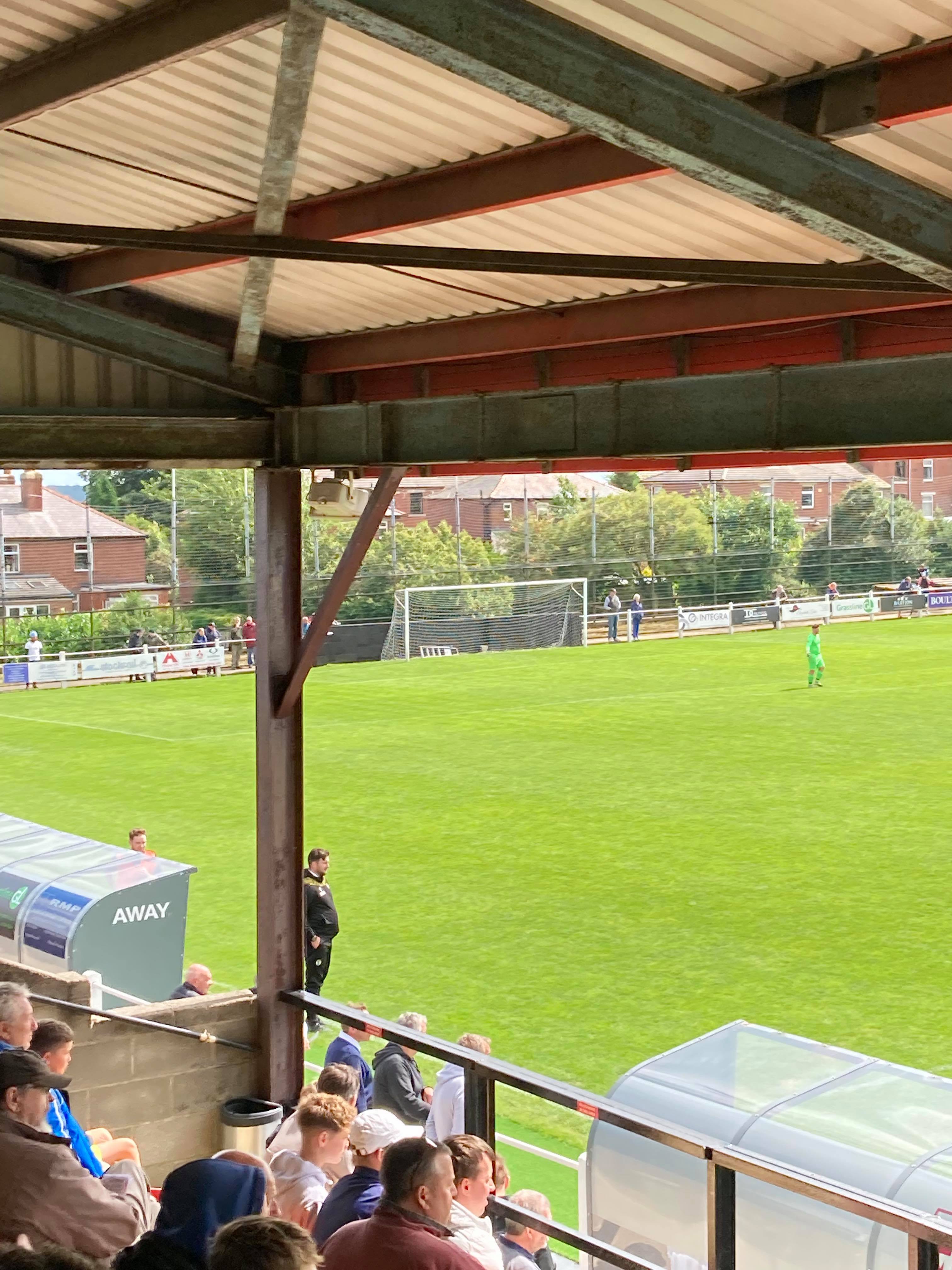 - The Ground: 7.5/10 – It’s a great ground for this level! I love the big stand and the stand behind the goal!! The clubhouse is phenomenal with great personality! A great view of Emley Moor from one side too! The only thing letting it down is the inaccessibility of the one side but that is for the cricket club which sadly for Emley has cost them a few extra points I have to say but they definitely do put the “Fantastic” back in Fantastic Media Welfare Ground!!