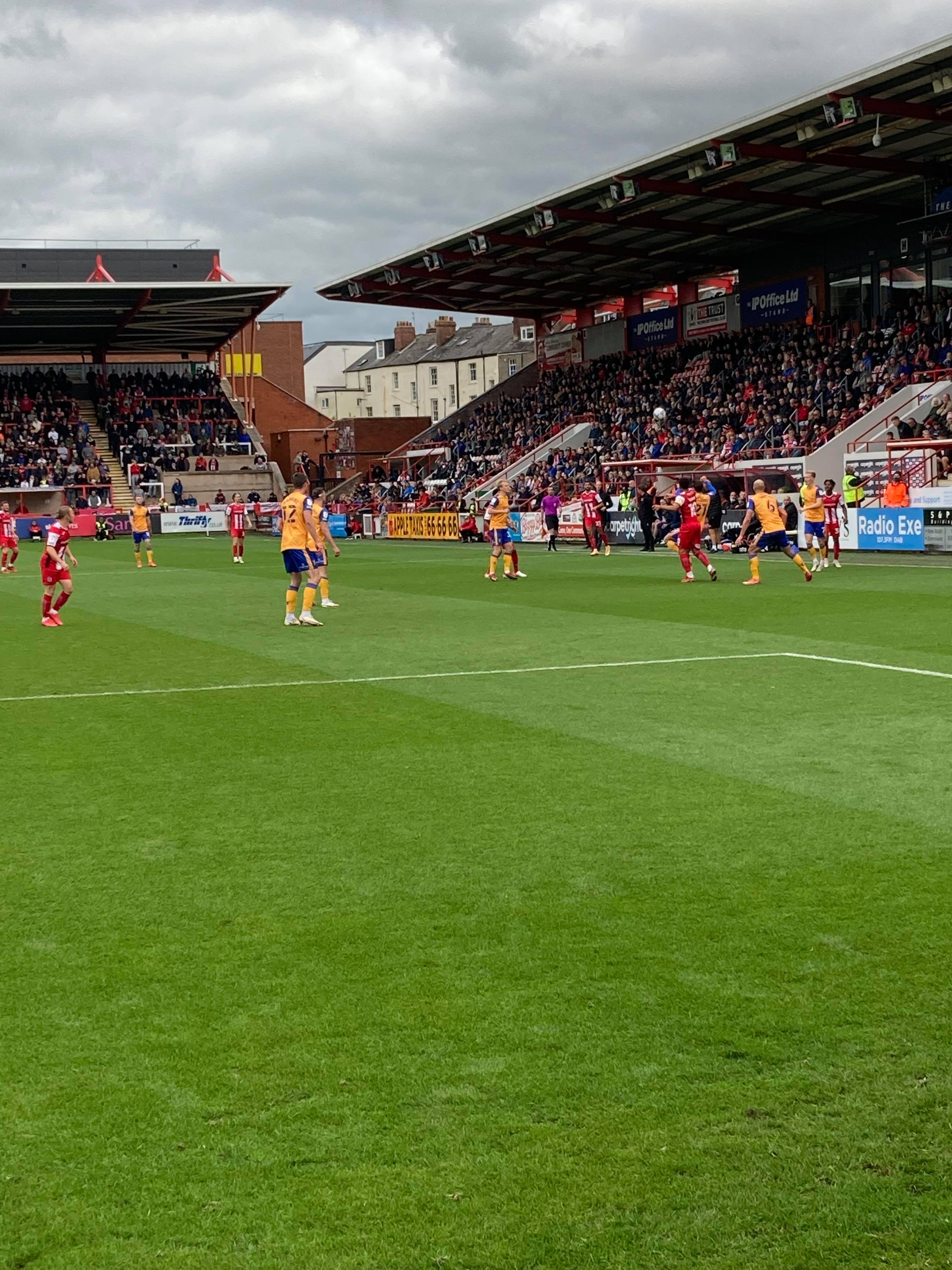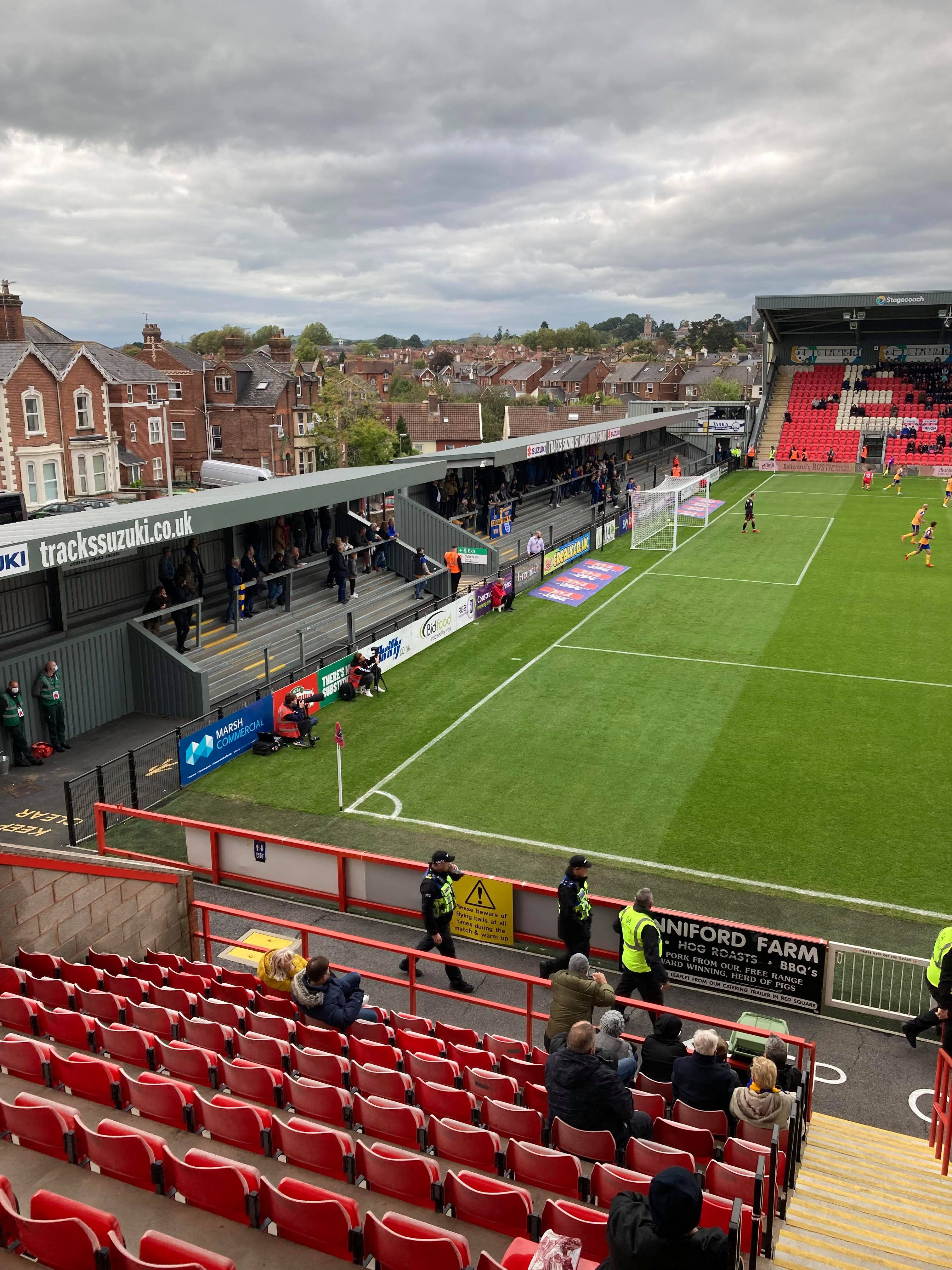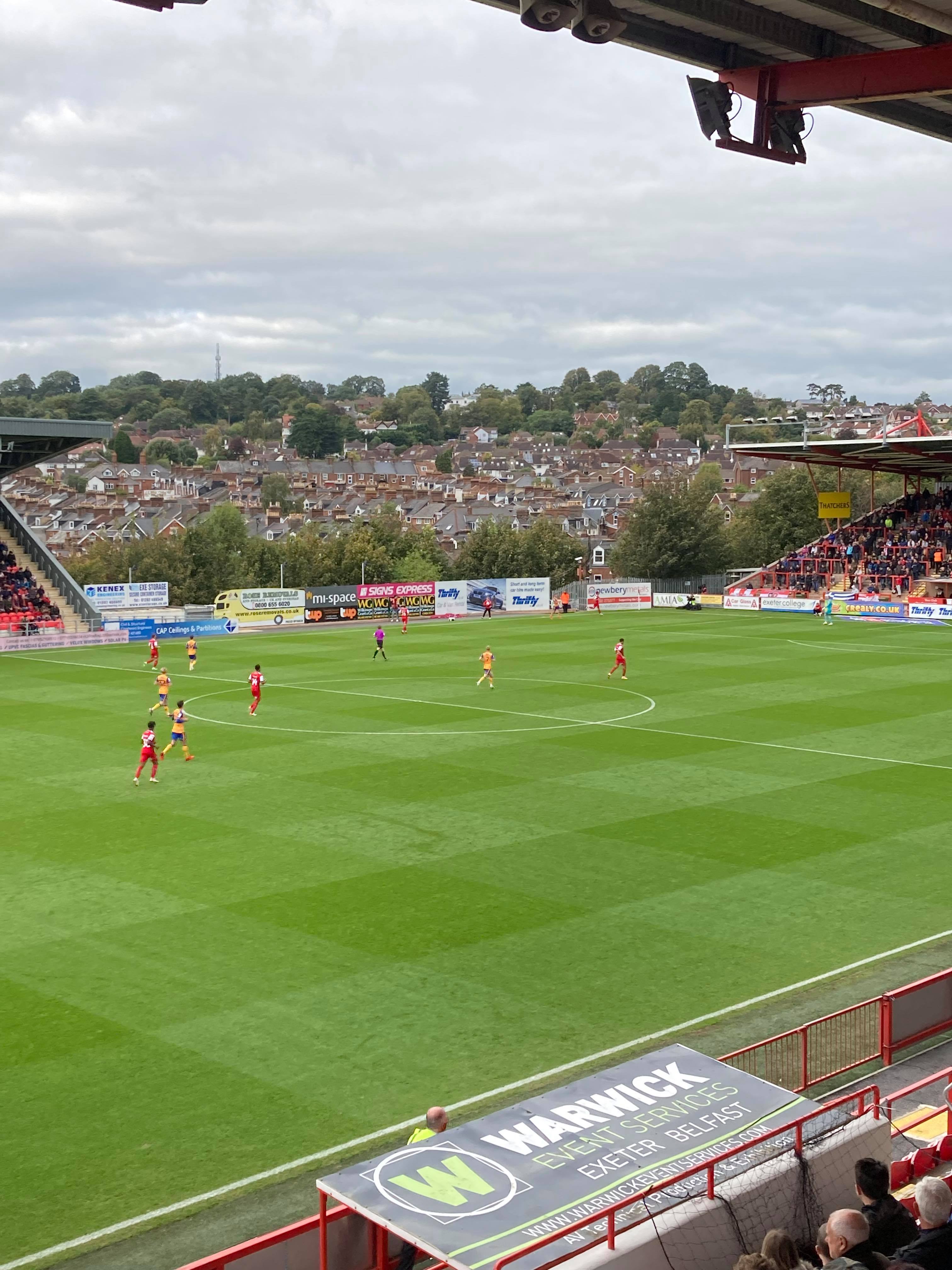 - Atmosphere: 4/10 – Both sets of fans had a good go today but it wasn’t particularly loud sadly… A good group of Exeter fans at the top of the terrace gave a good account of themselves today!