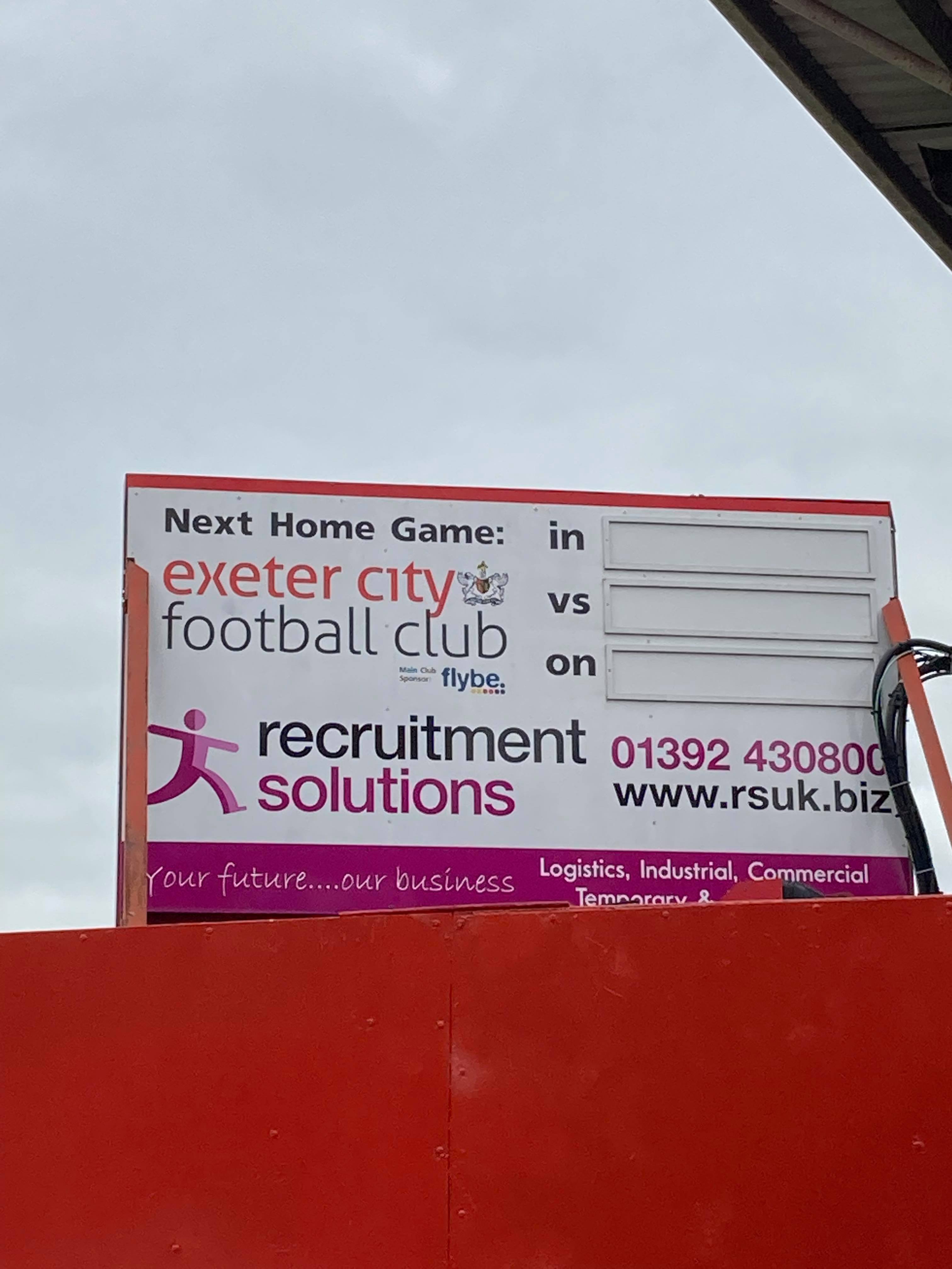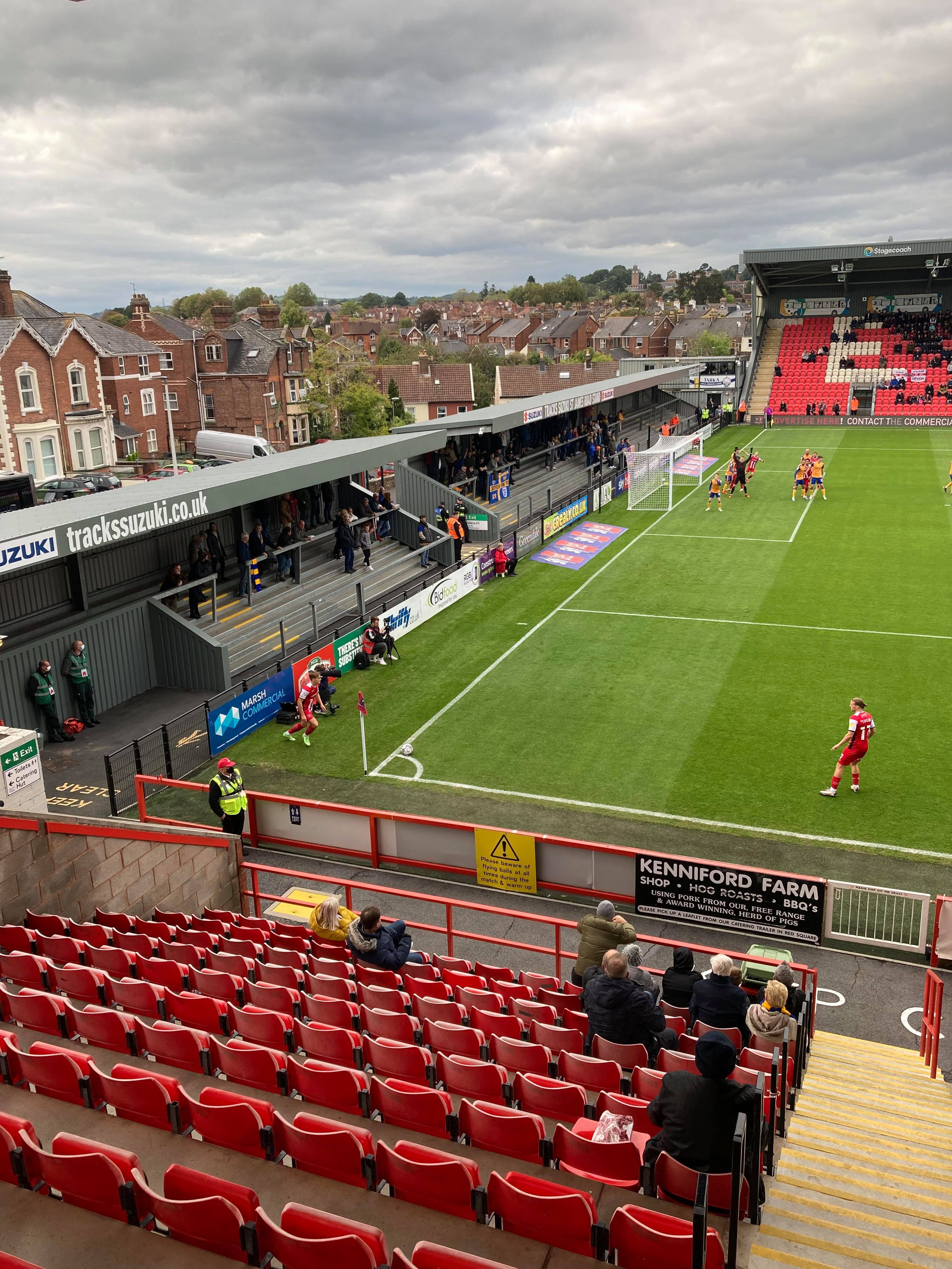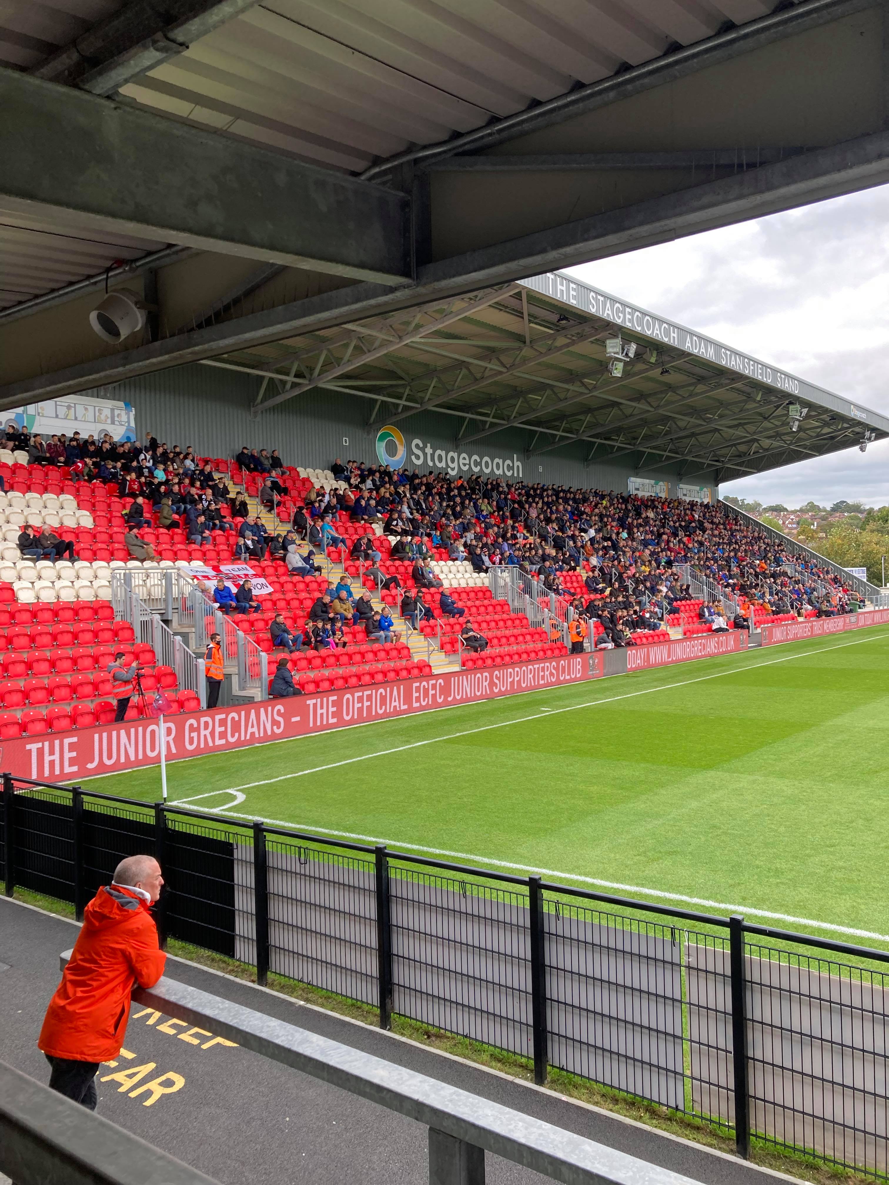 - Atmosphere: 4/10 – Both sets of fans had a good go today but it wasn’t particularly loud sadly… A good group of Exeter fans at the top of the terrace gave a good account of themselves today!