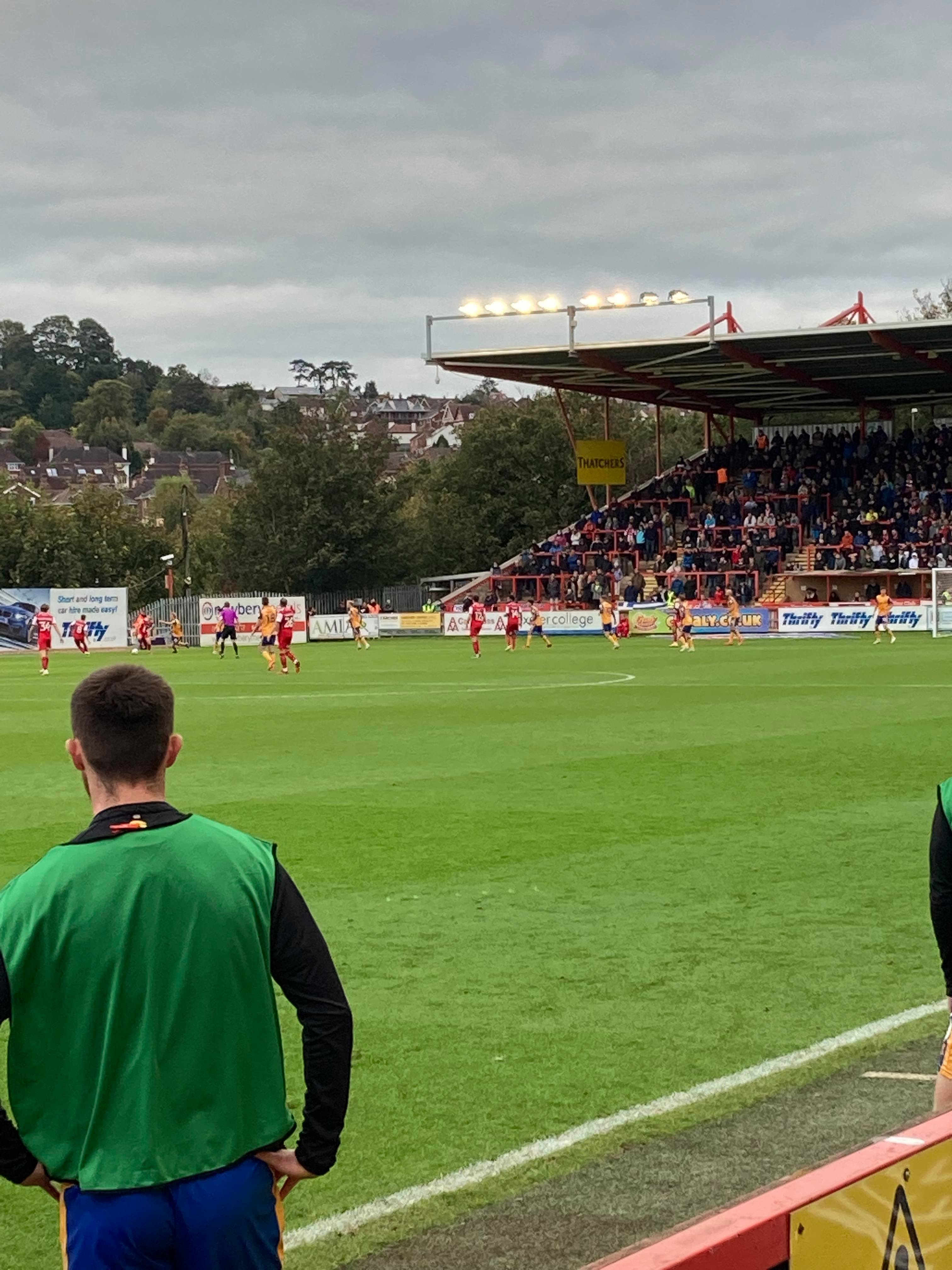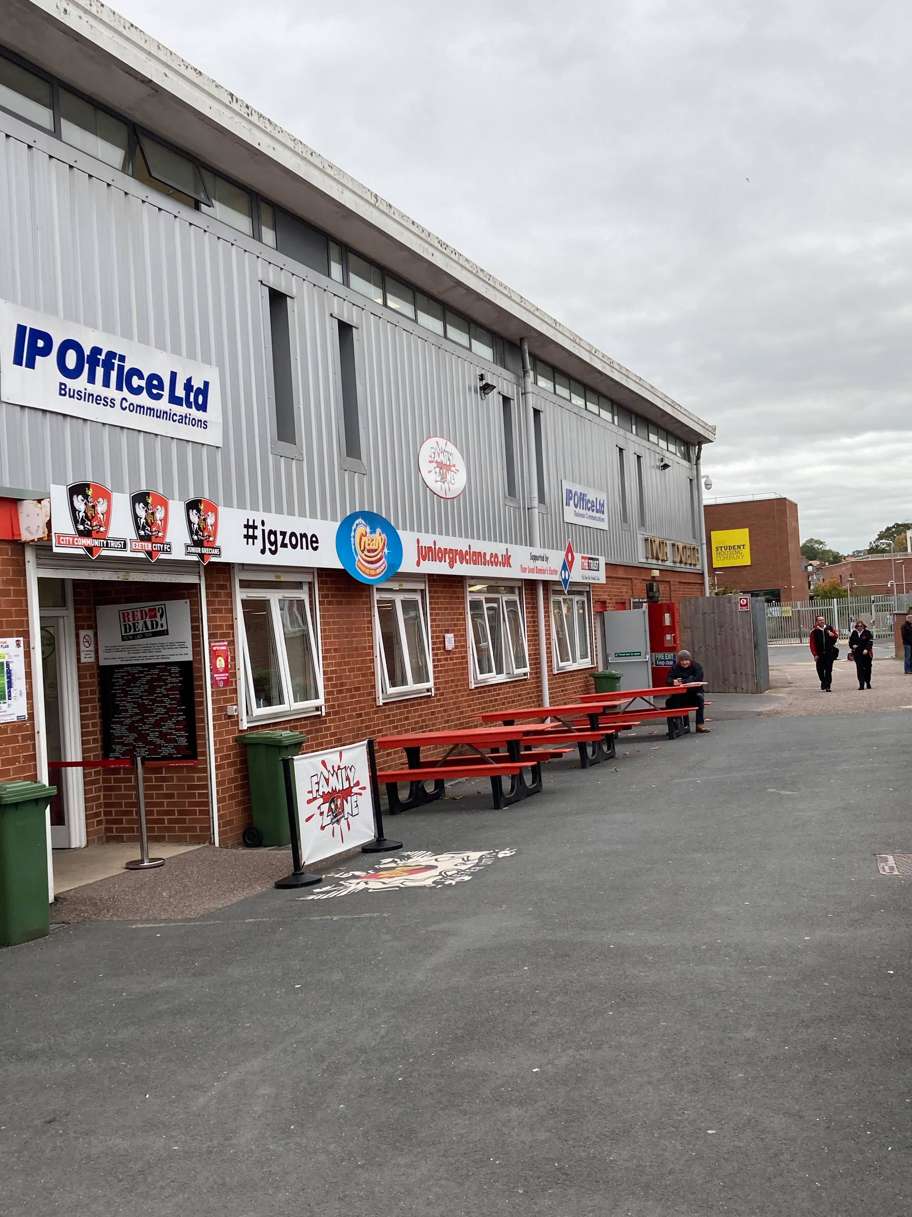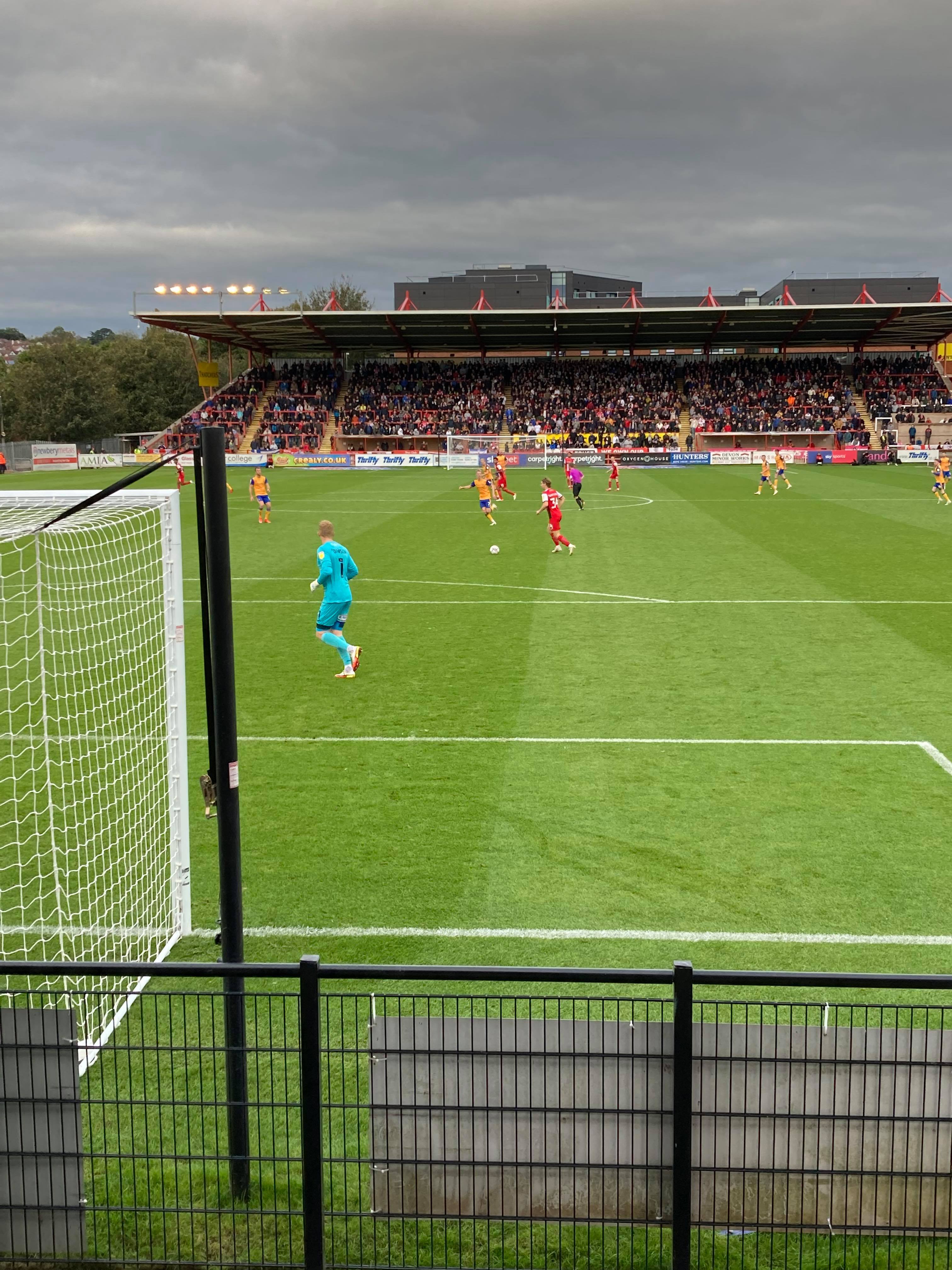 - The Ground: 8/10 – It’s a lovely ground! Quite tucked away but it’s fantastic in my opinion! A fantastic standing terrace behind the goal with a lovely away end! A great little ground for me!