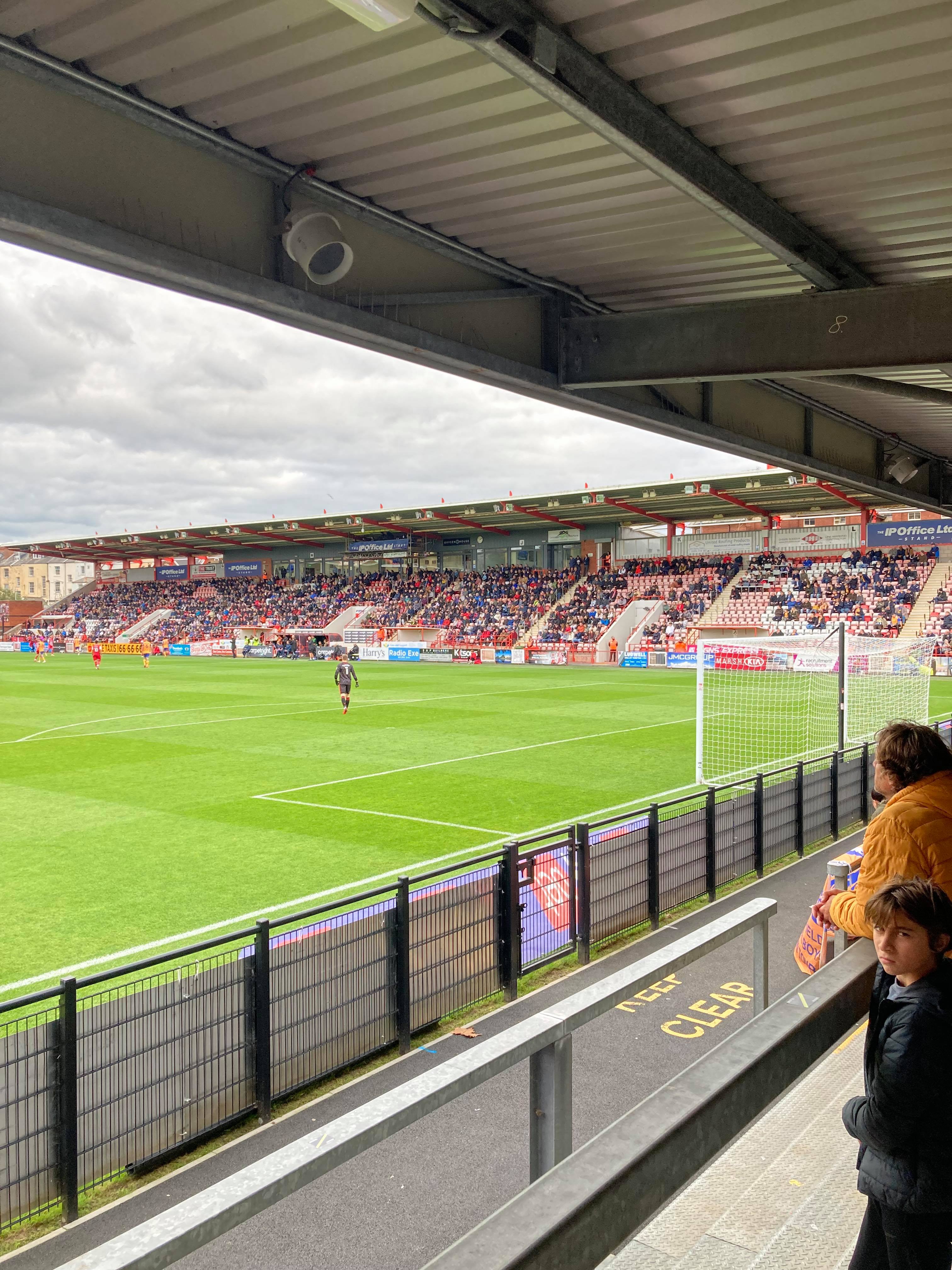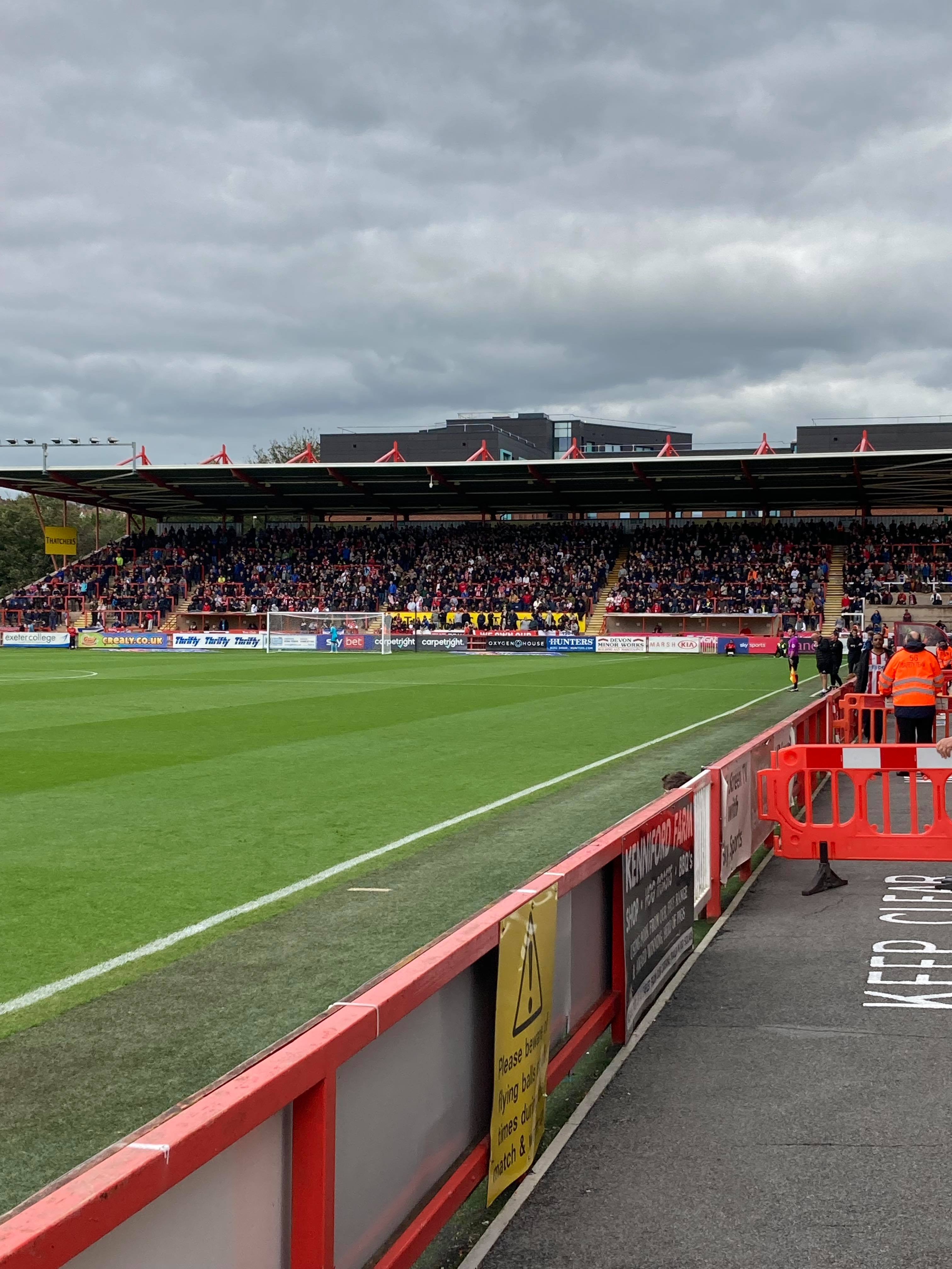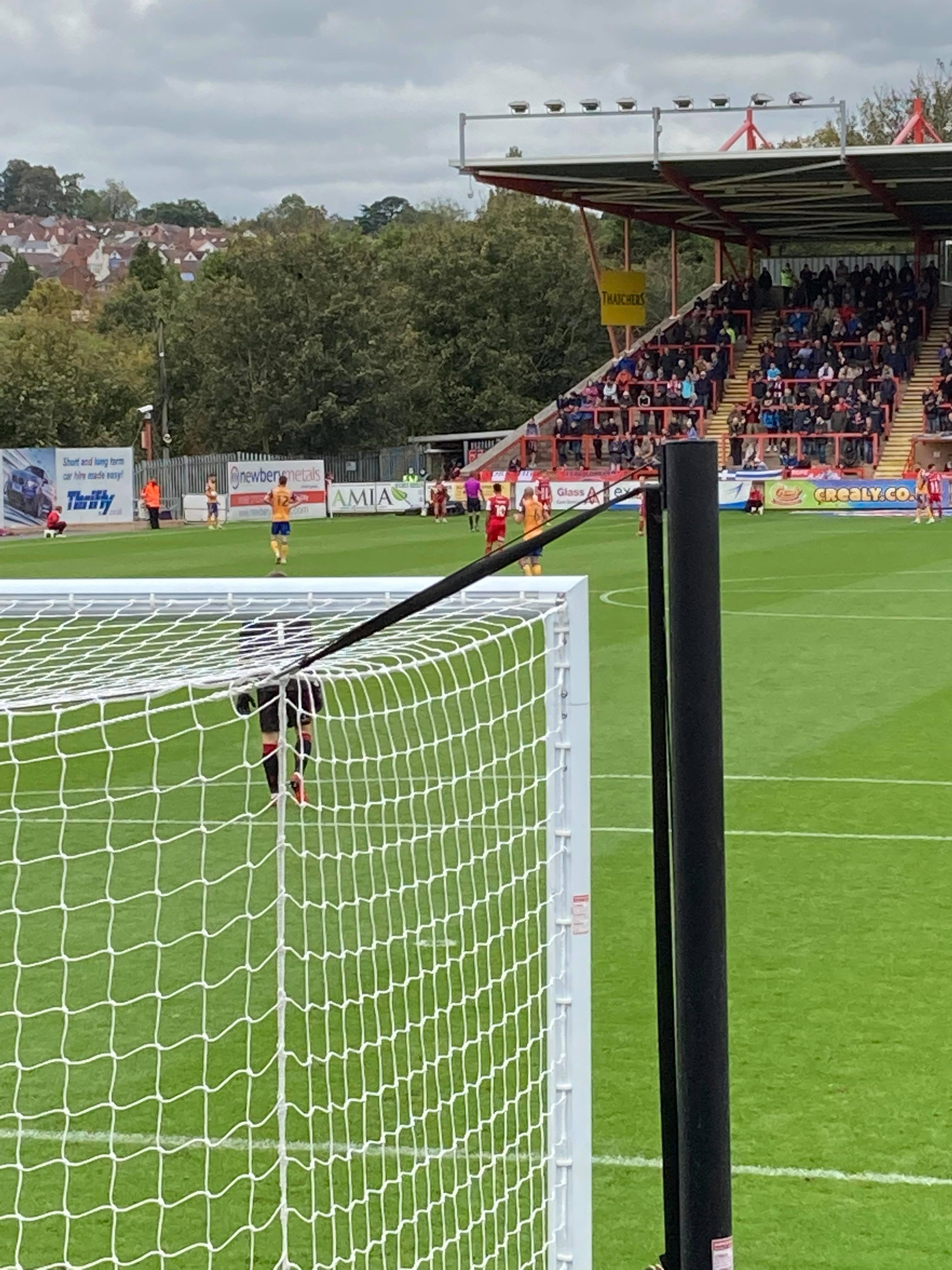 - The Ground: 8/10 – It’s a lovely ground! Quite tucked away but it’s fantastic in my opinion! A fantastic standing terrace behind the goal with a lovely away end! A great little ground for me!