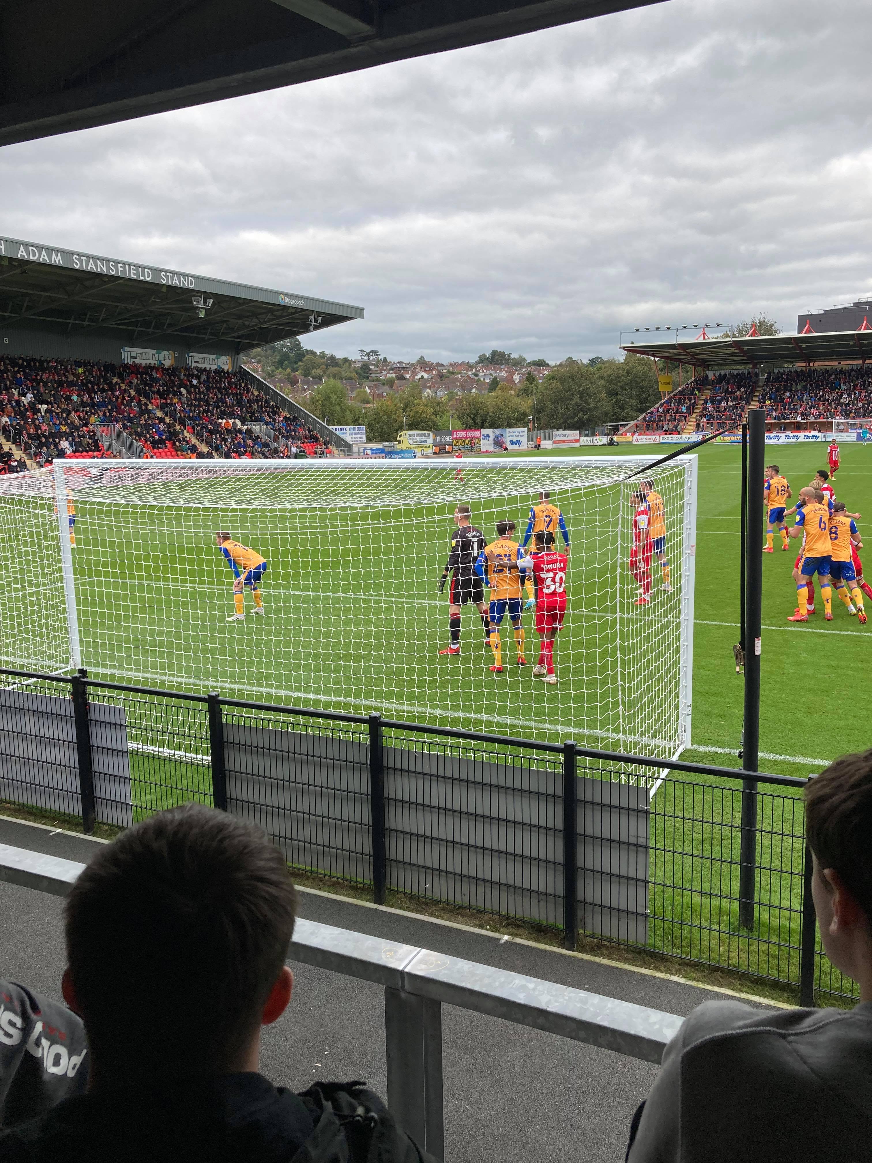 50th minute and Mansfield have a free kick in the Exeter half, it’s crossed in to the box, it’s Oliver Hawkins with the header… IT’S A GOAL!!!!! Mansfield lead here!!! 0-1!! Get in!! Now they’ve got the goal, can they hold on for the win?