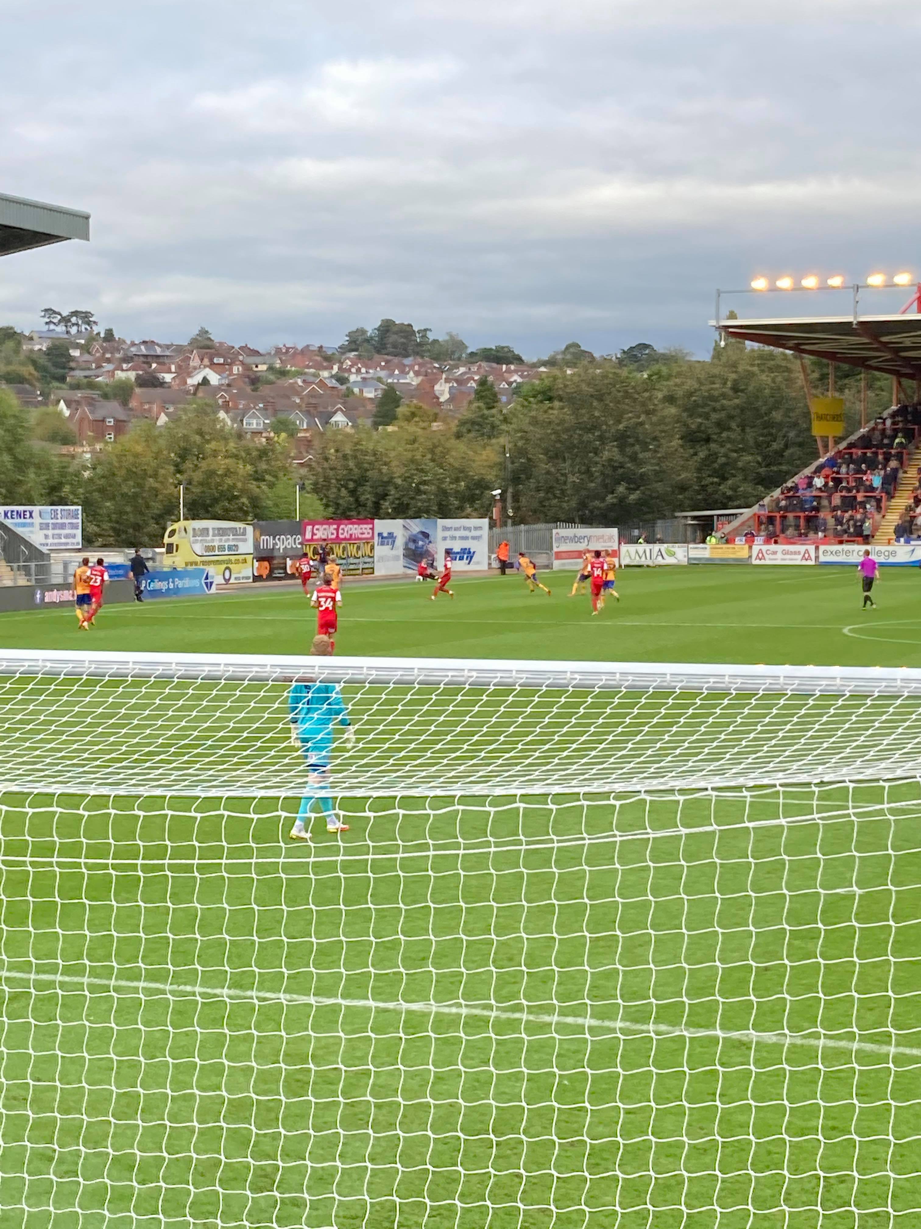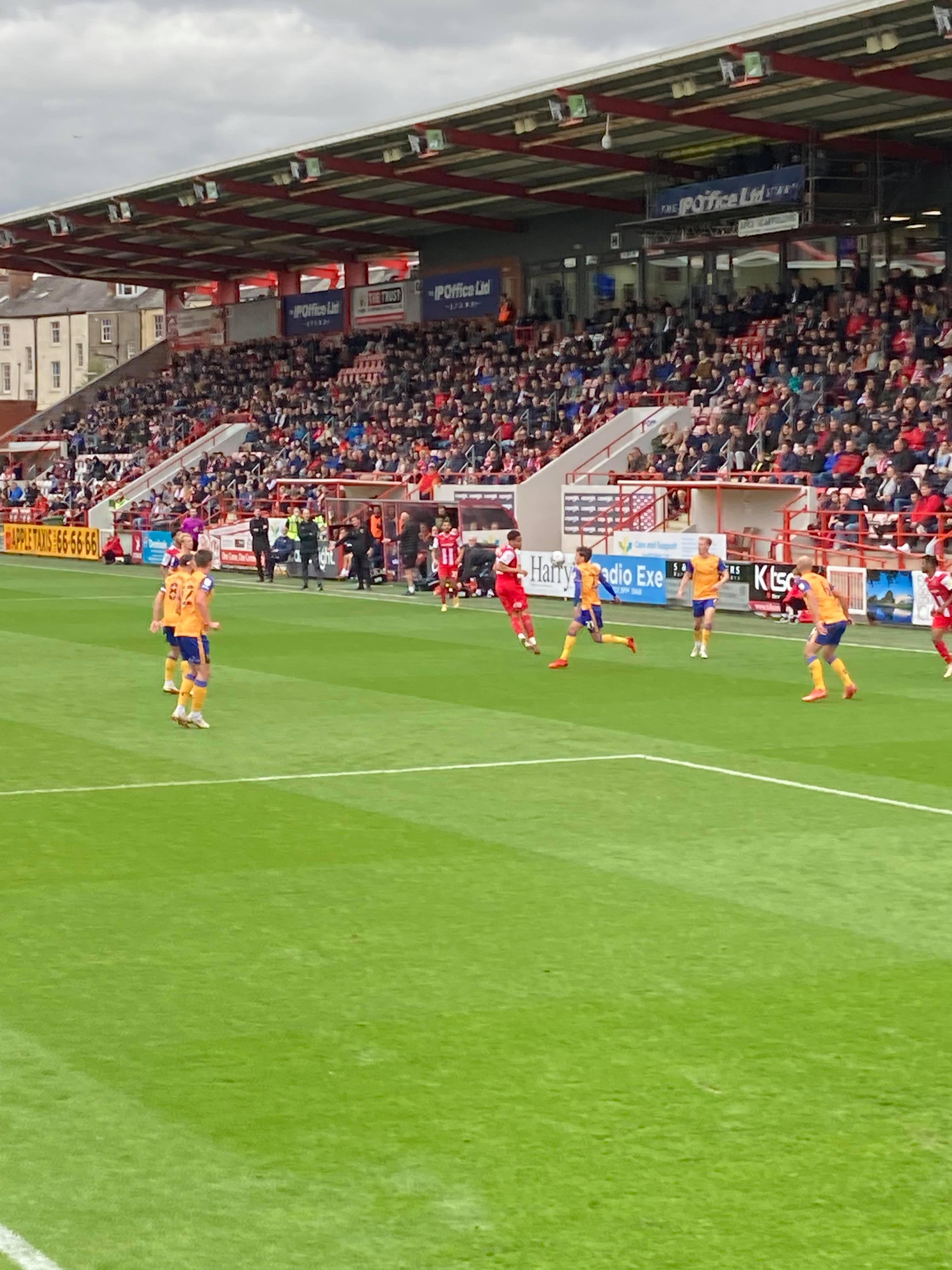 Kick Off! “E! X! E! T! E! R! City! Clap clap clap City!” 11 minutes in and James Clarke has the ball on the right for Mansfield, he crosses, in towards Jordan Bowery… Cleared by Josh Key for Exeter. It’s a poor game here so far, Exeter looking good on the ball and moving it around really well!