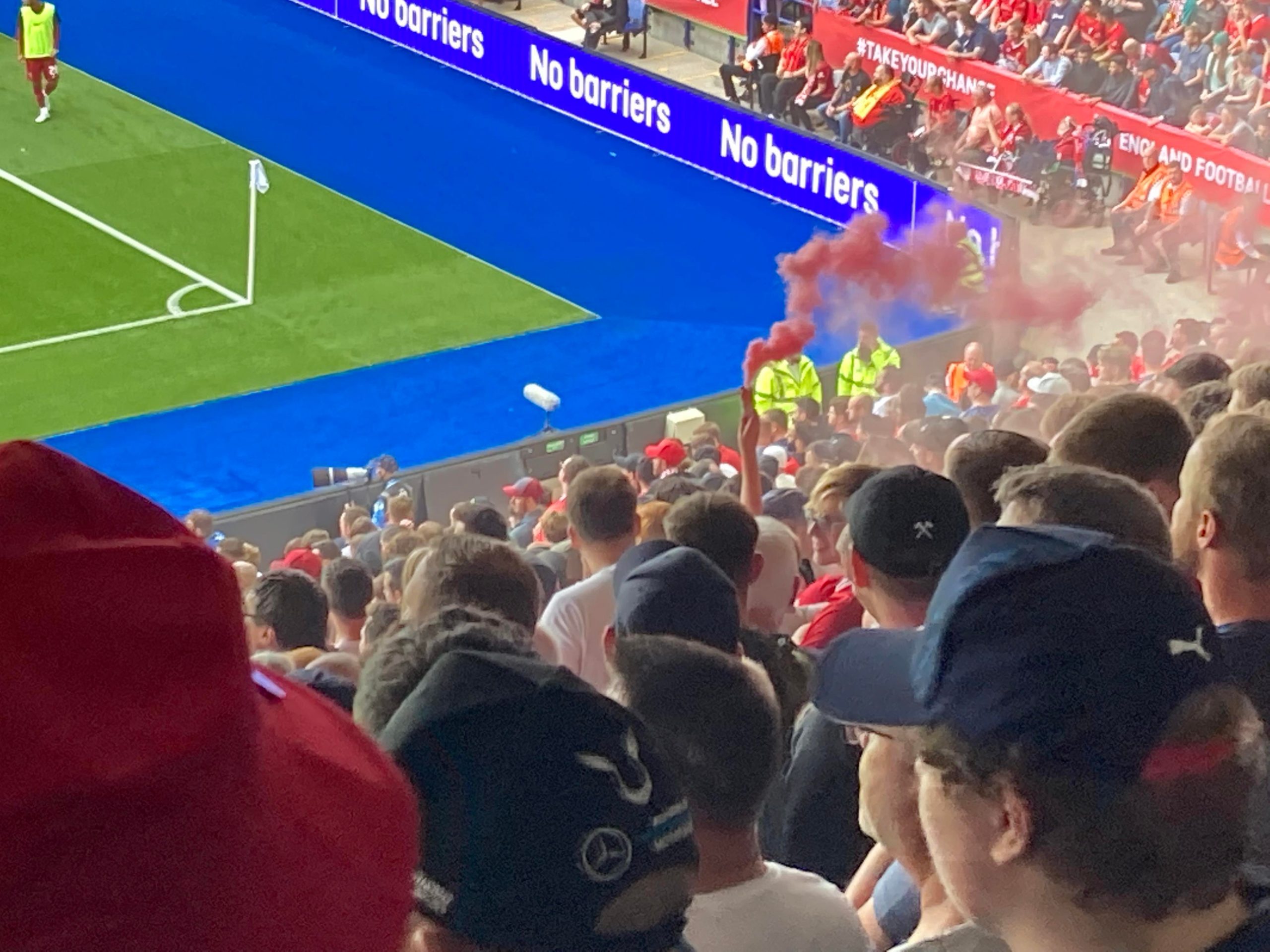 Out come the teams and now for the national anthem… I couldn’t get a word of that! The Liverpool fans drowning it out with boos and chants of Liverpool!