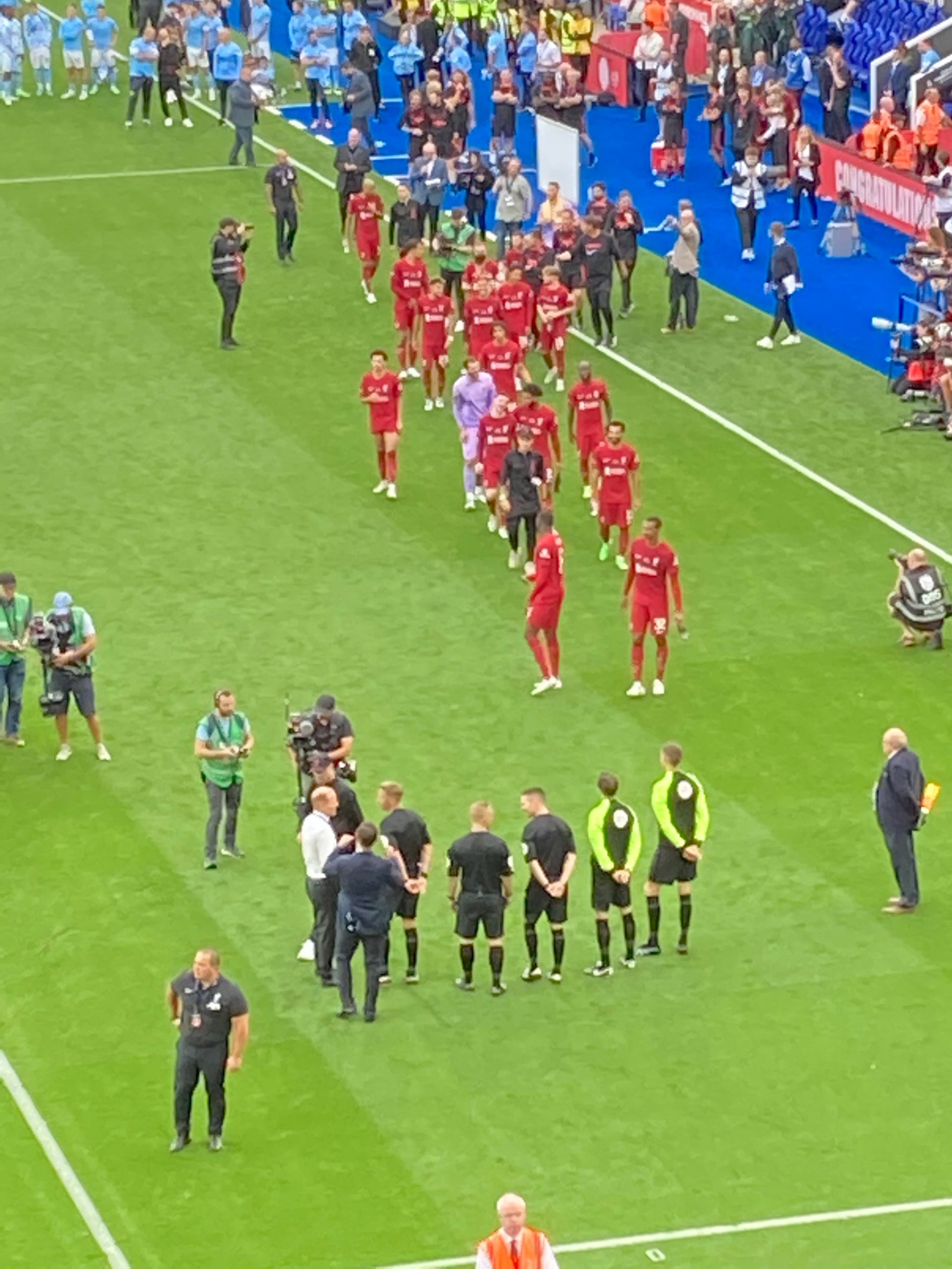90+6 on the clock now and City come down the right, it’s played to Phil Foden on the edge of the box and he shoots on the turn… Adrian parries and here’s Haaland running in… He’s hit the bar! He’s missed from 4 yards! Absolute sitter!! Can this day get any better? Full time here! Liverpool win the Community Shield!! What a day it has been for Liverpool! “One kiss is all it takes…!”