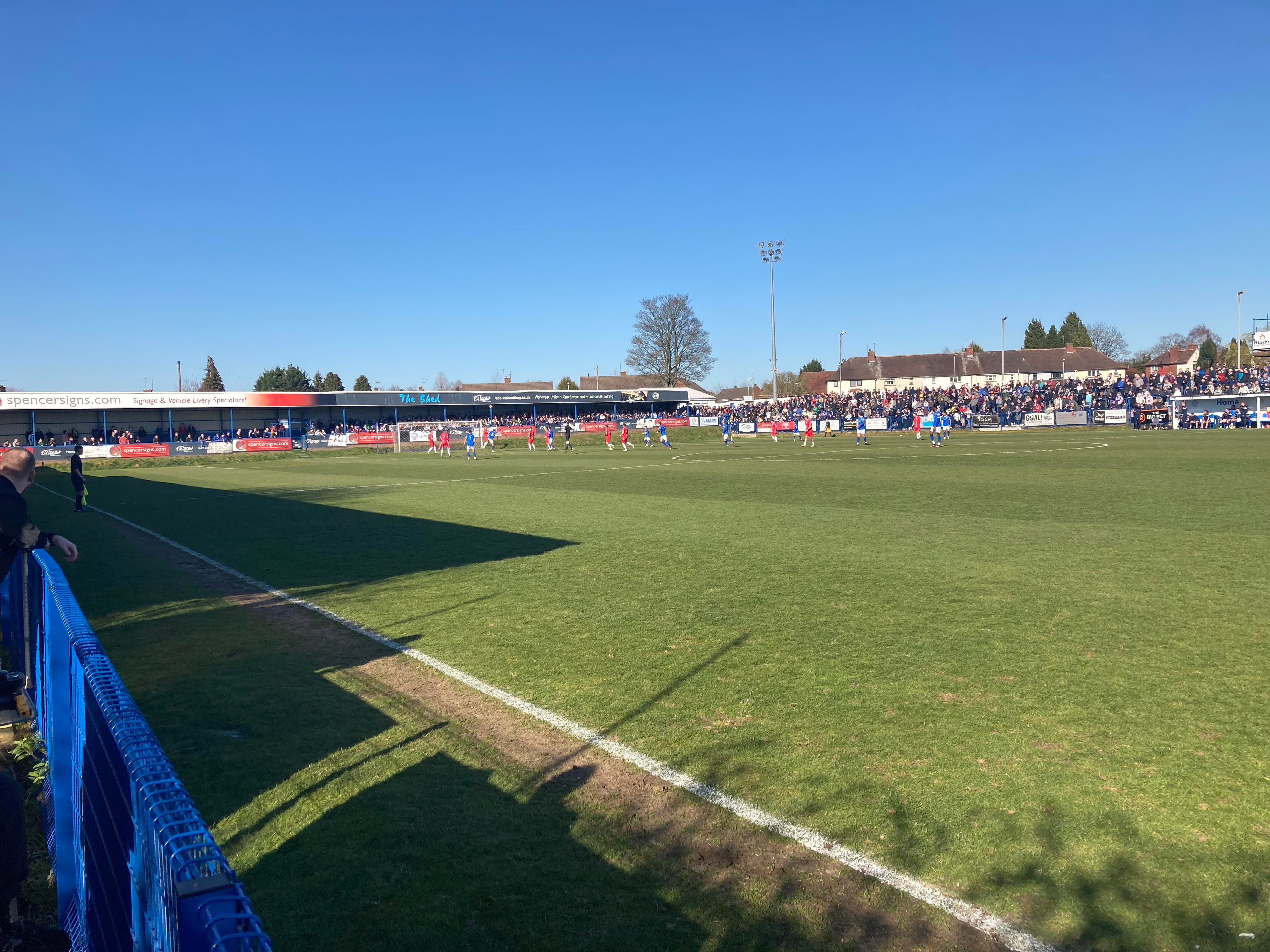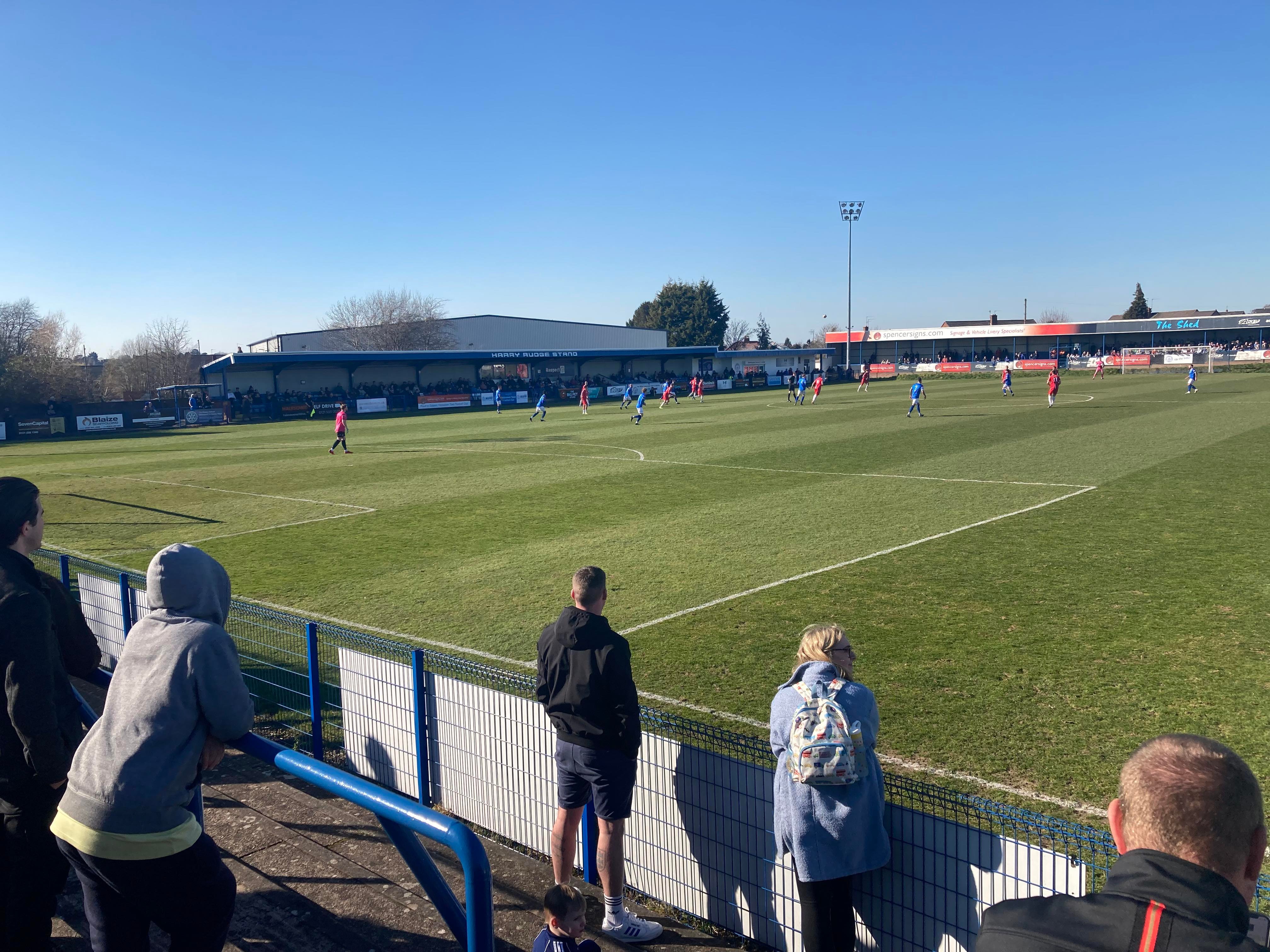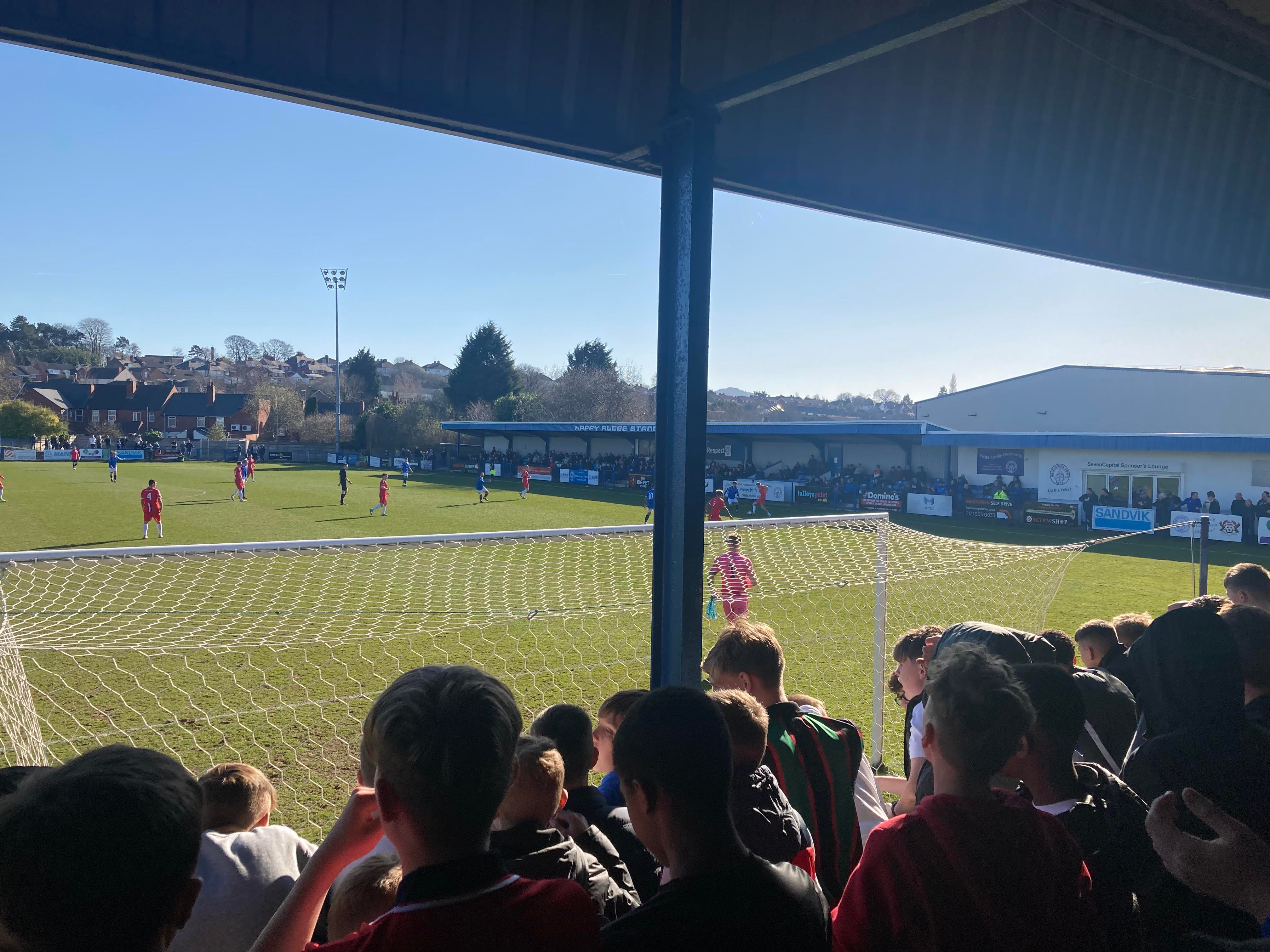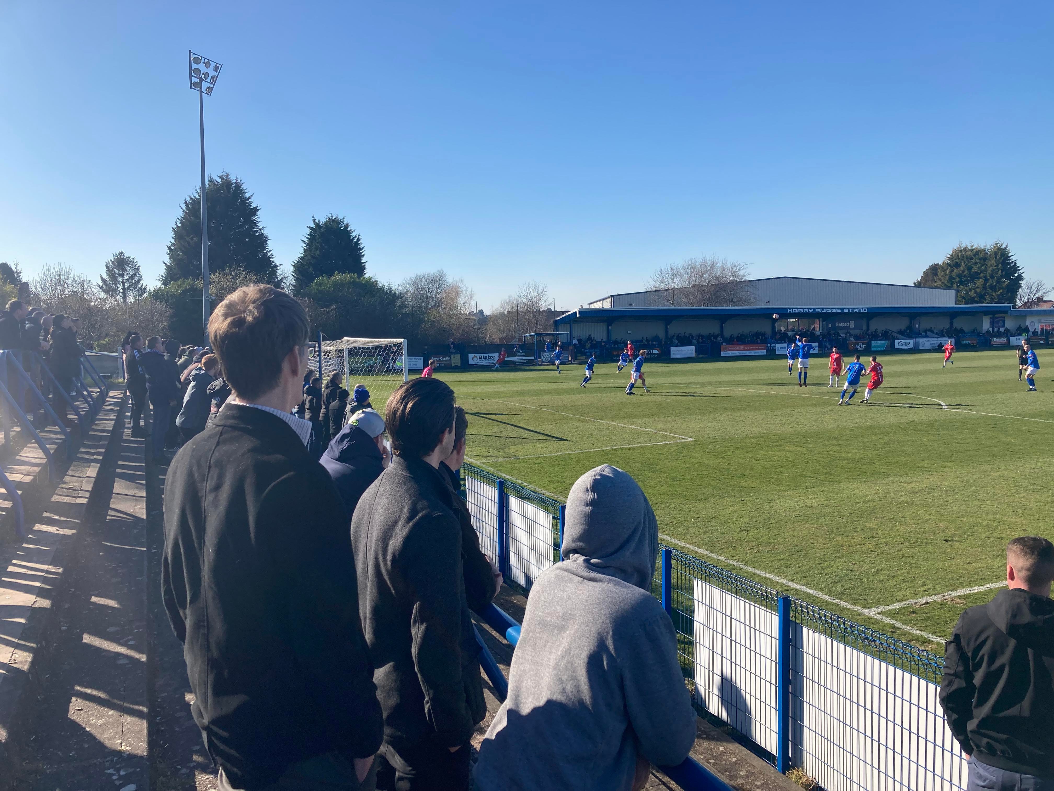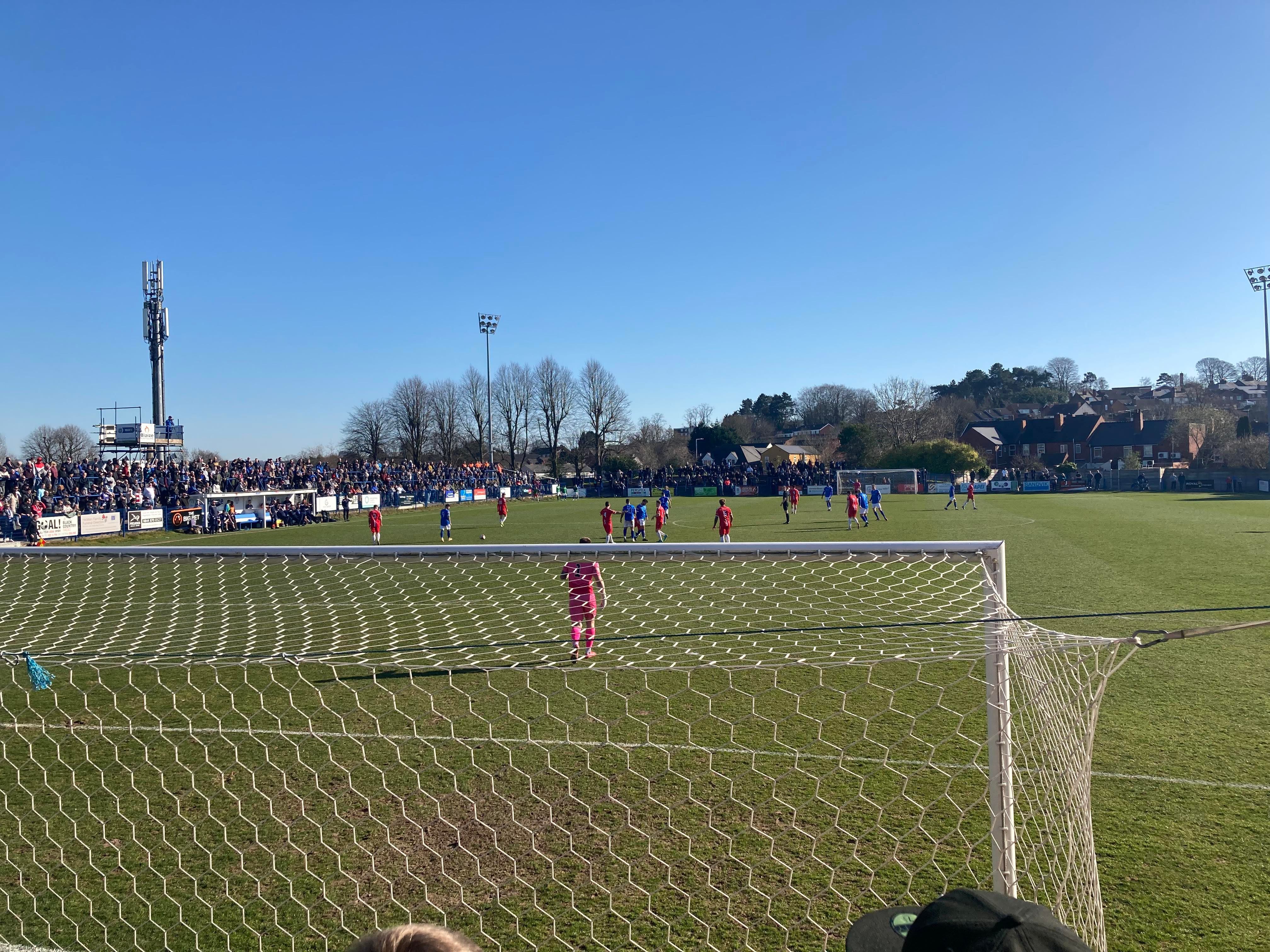 - The Ground: 10/10 – A very unique ground! It’s one of its own kind in the sense of no other grounds have the design of Halesowen’s ground and my word! It’s an absolutely beautiful ground! I love it!! The standing section at a height makes for a great vantage point and I love the Shed end!! Great views! Great everything!!
