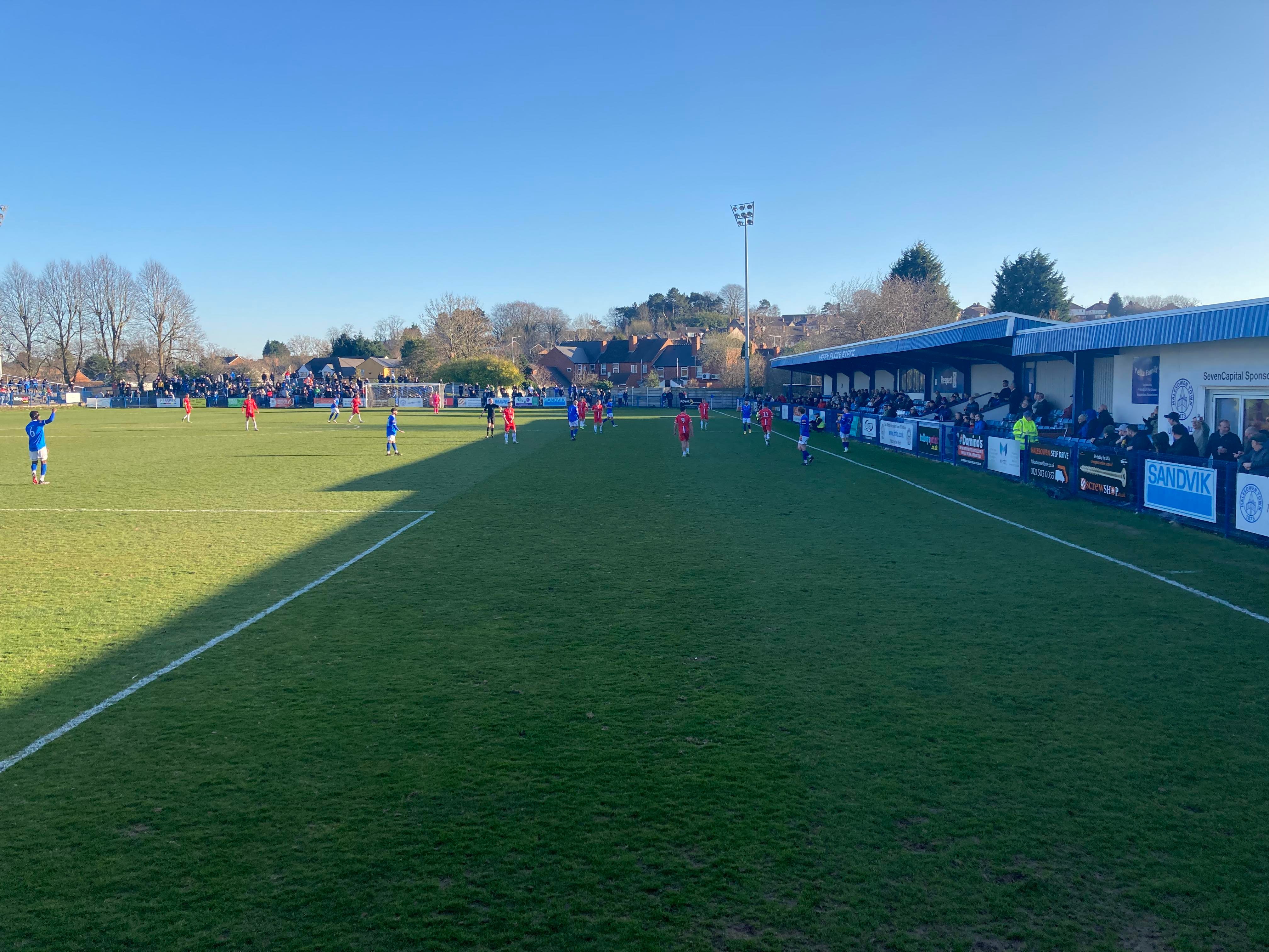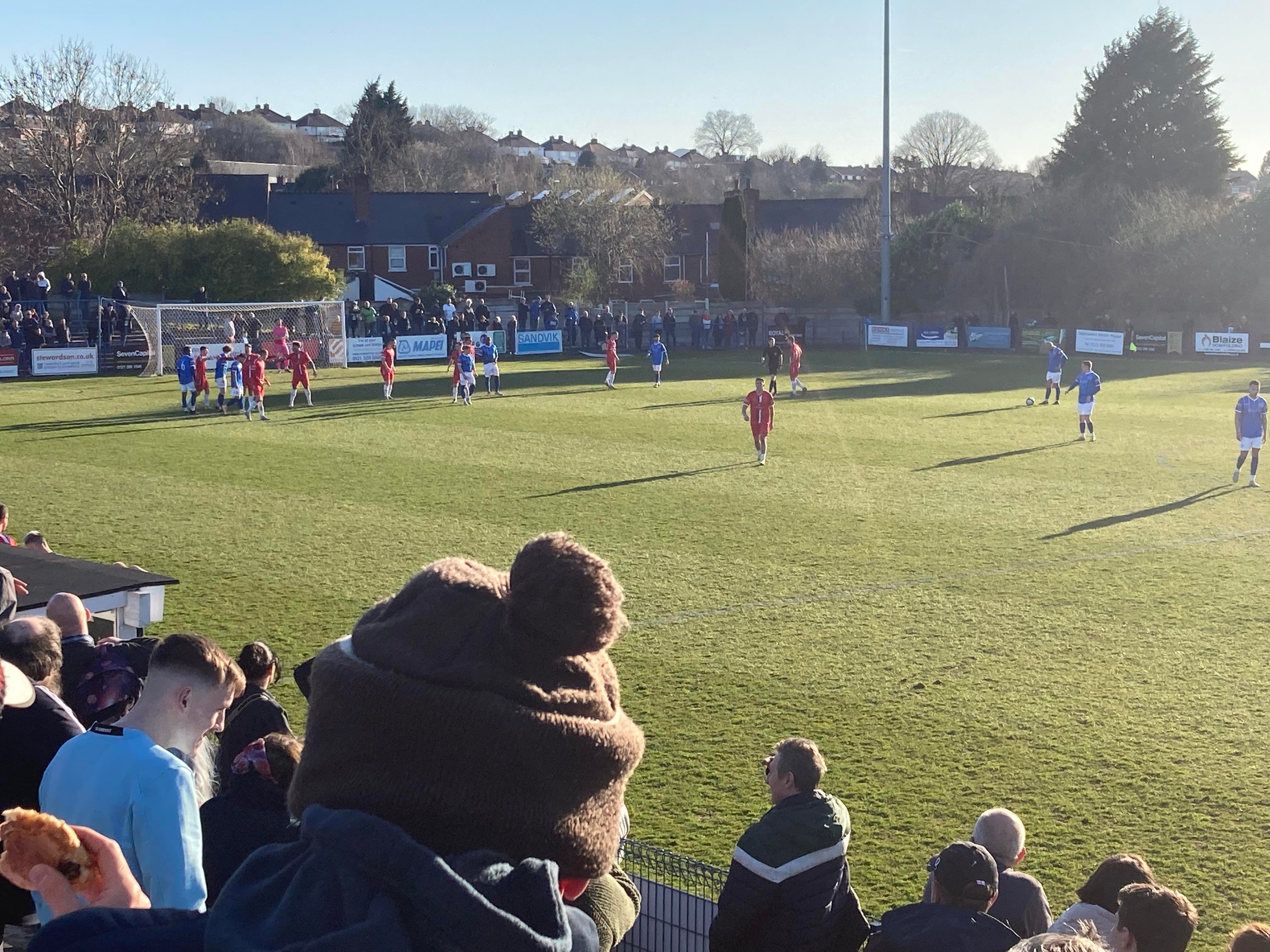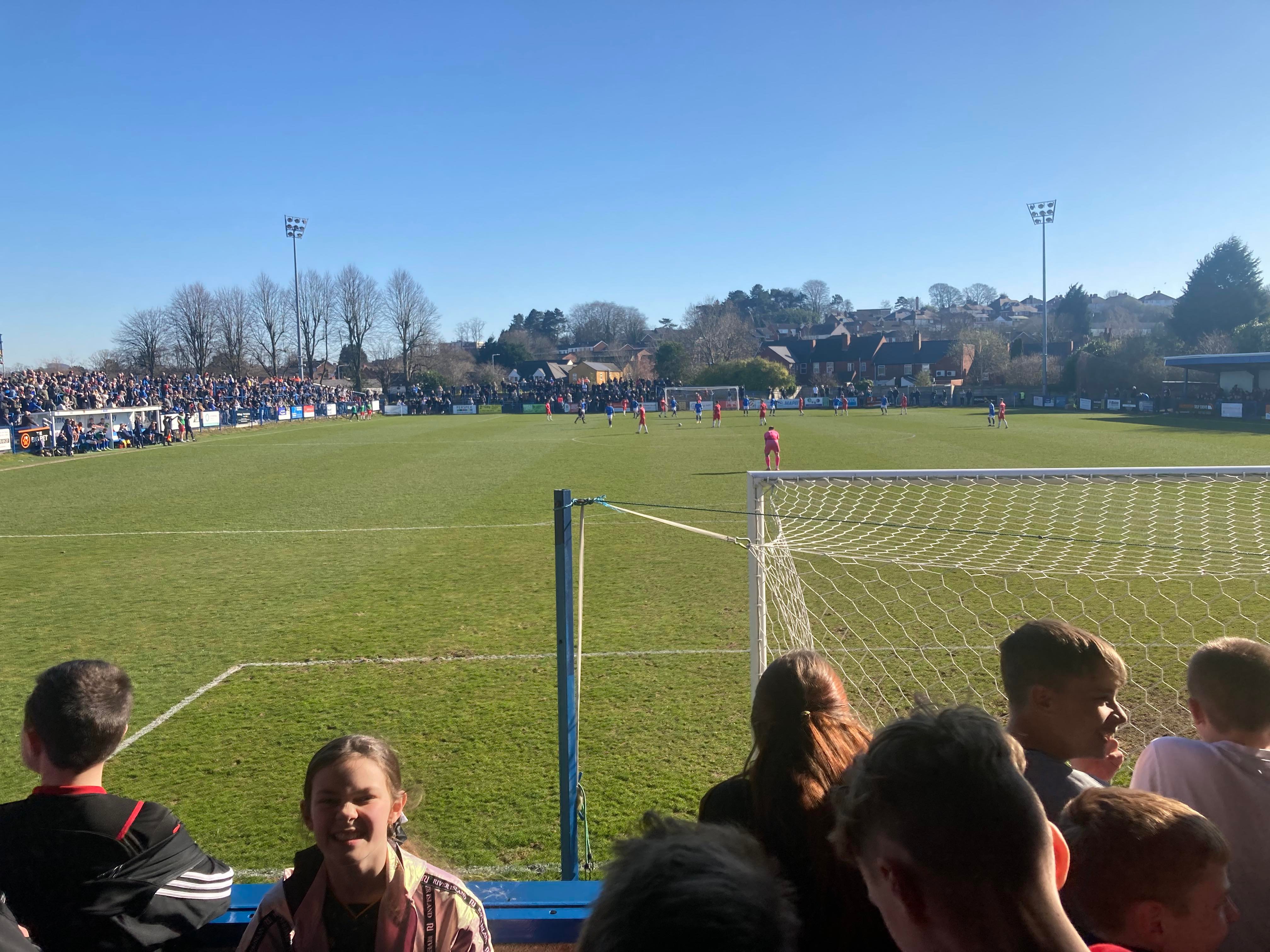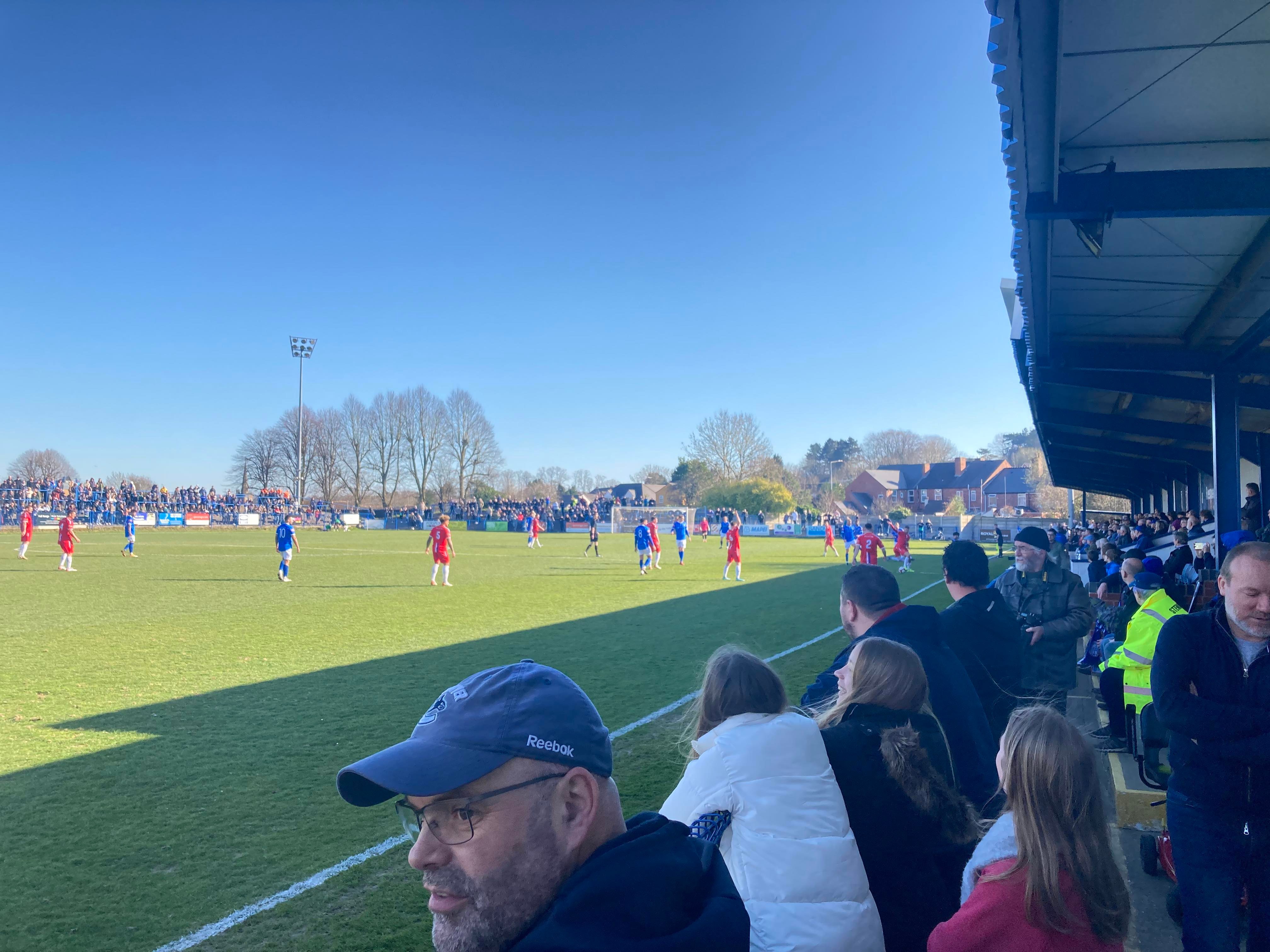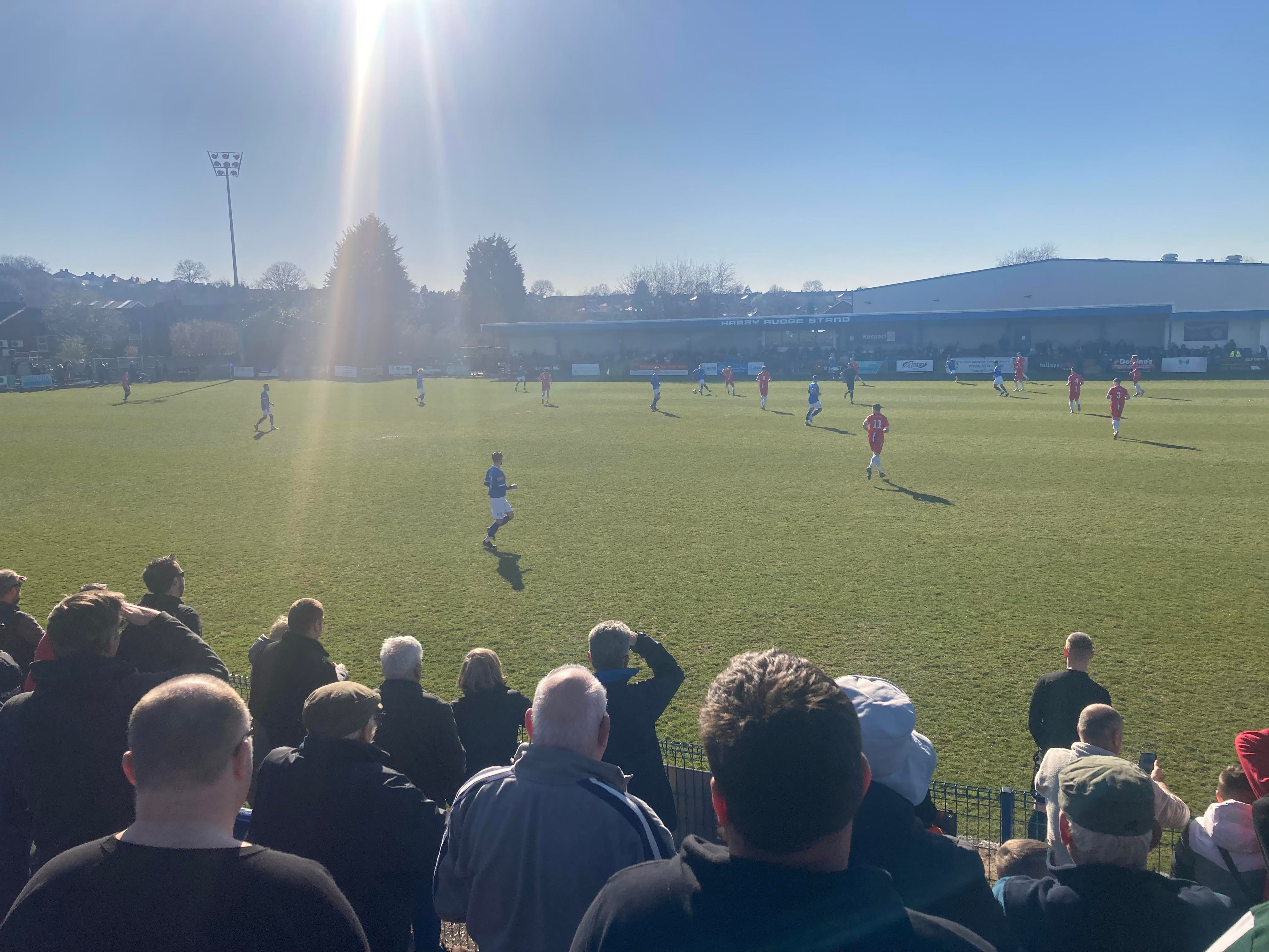- The Ground: 10/10 – A very unique ground! It’s one of its own kind in the sense of no other grounds have the design of Halesowen’s ground and my word! It’s an absolutely beautiful ground! I love it!! The standing section at a height makes for a great vantage point and I love the Shed end!! Great views! Great everything!!