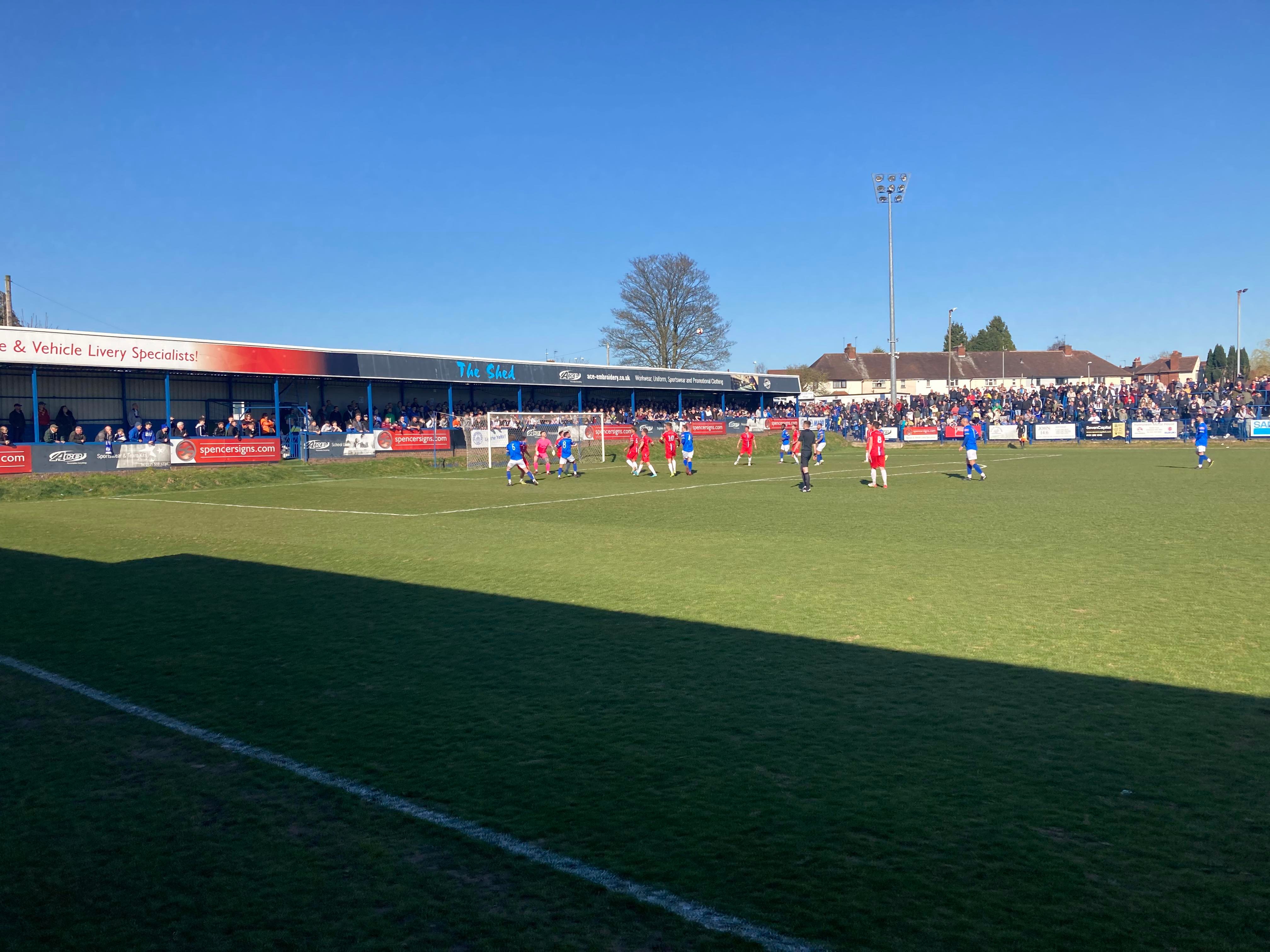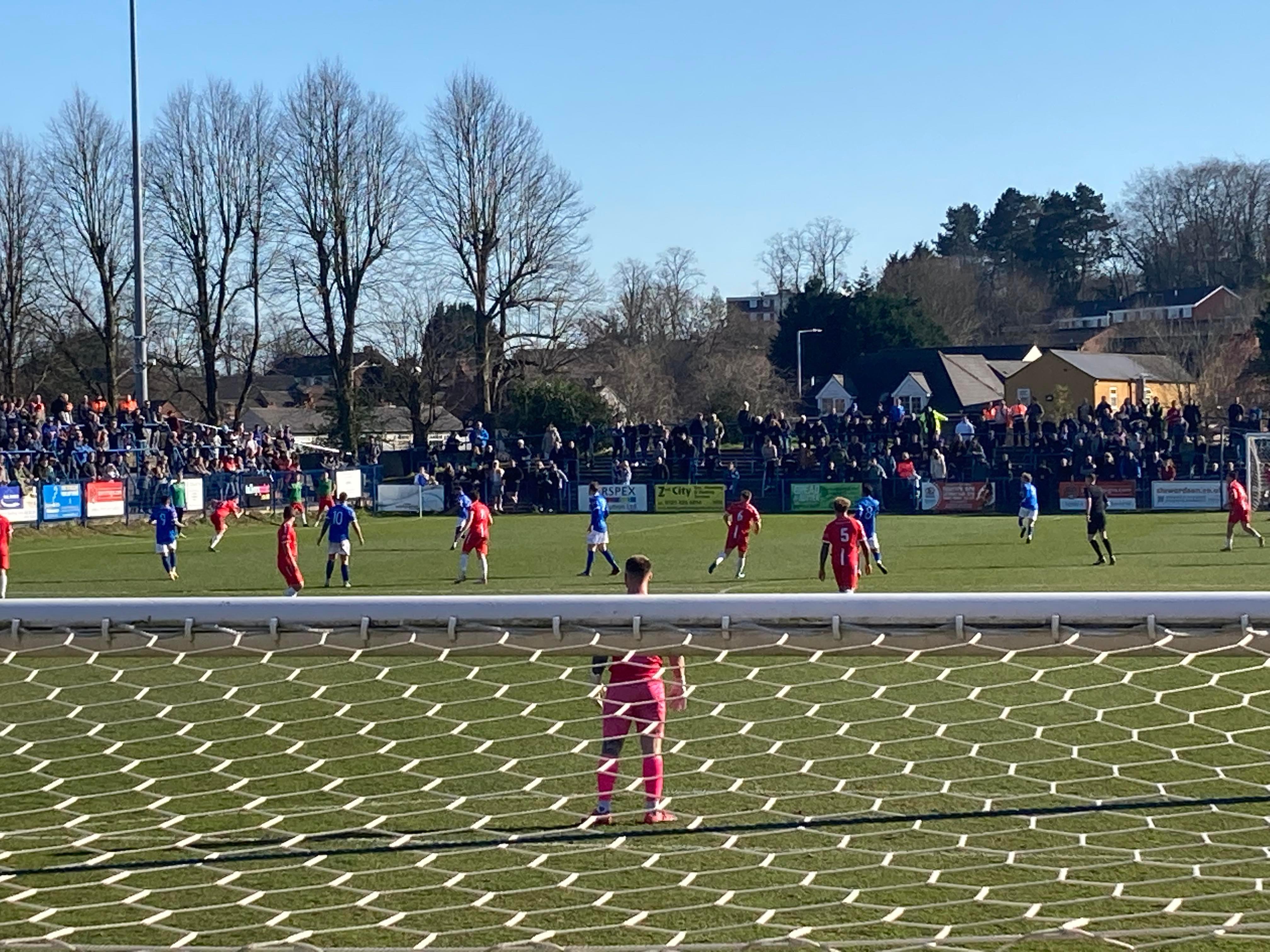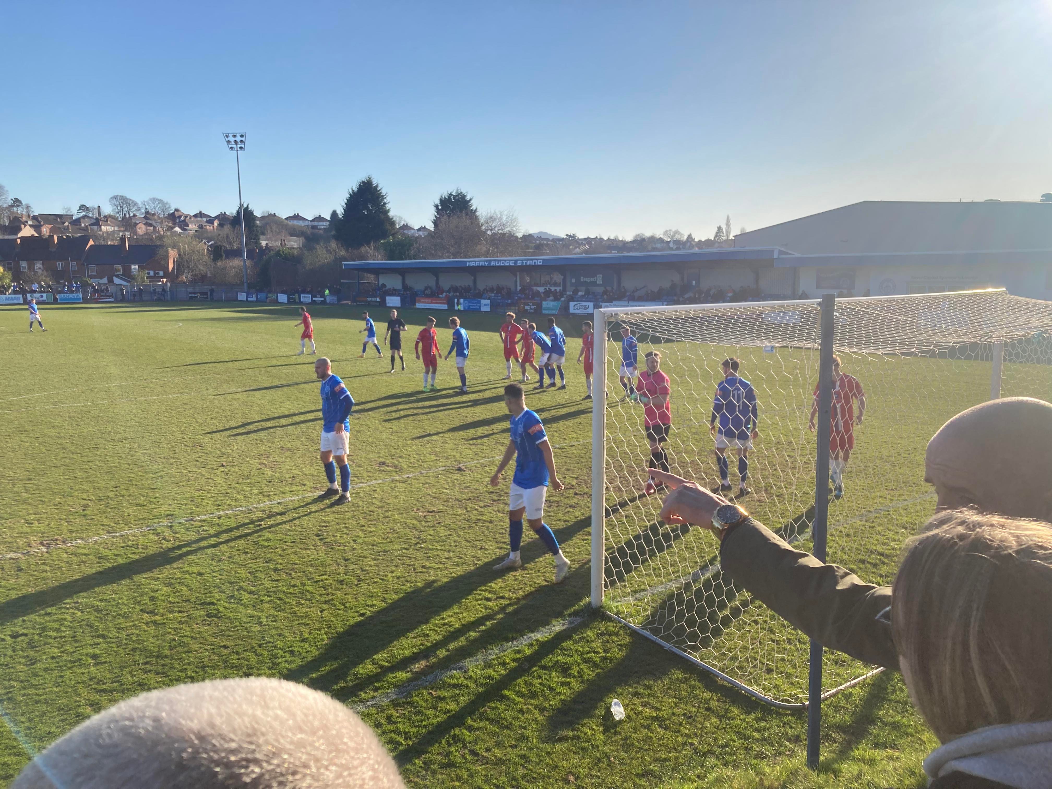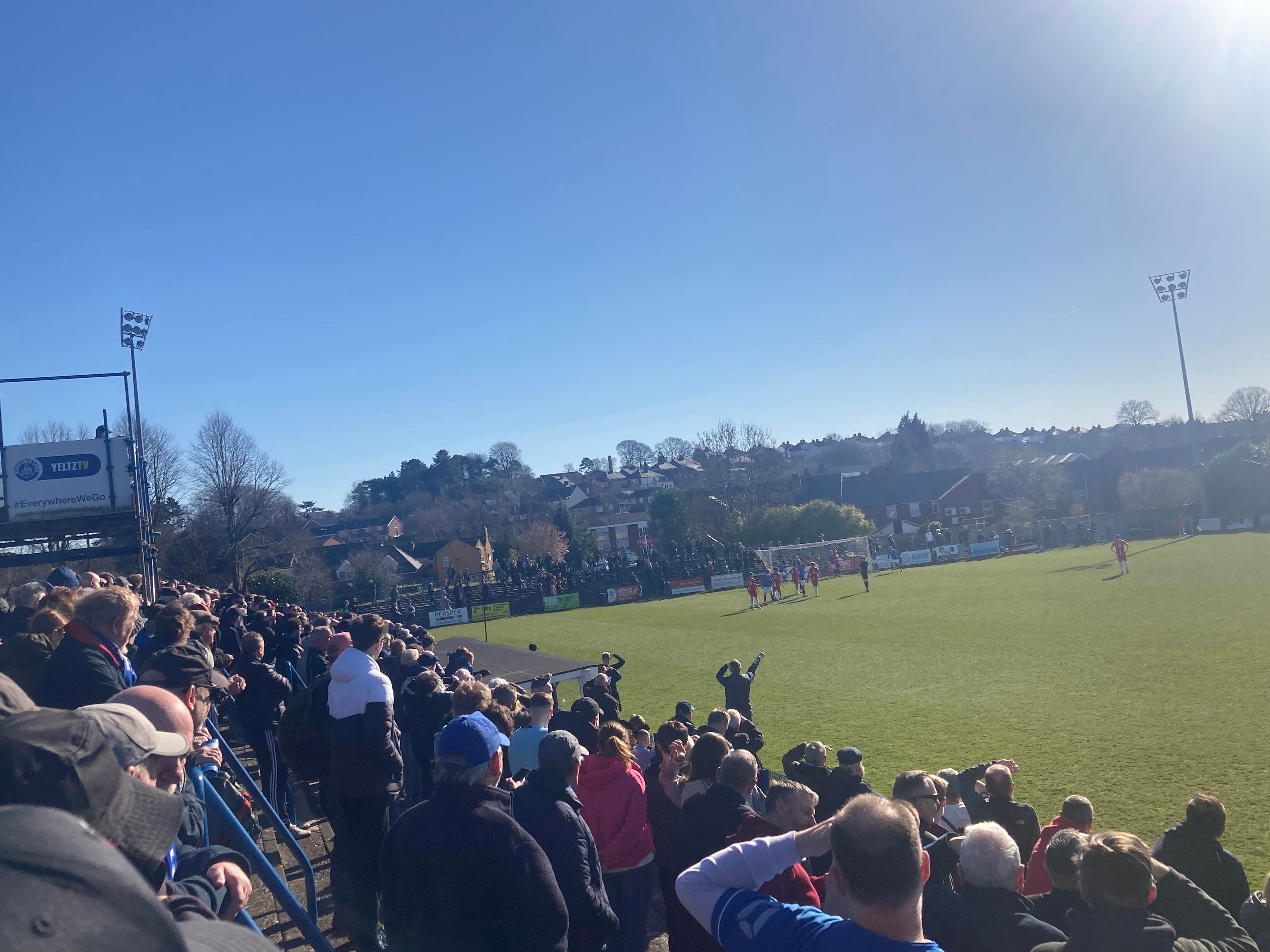 Second half, 52 minutes now and Halesowen come forward, it’s played to Richard Gregory in the box on the left, he shoots… Kept out by the keeper! “Yeltz! Yeltz! Wooaaooh! Yeltz! Yeltz!” Halesowen fans still going strong!