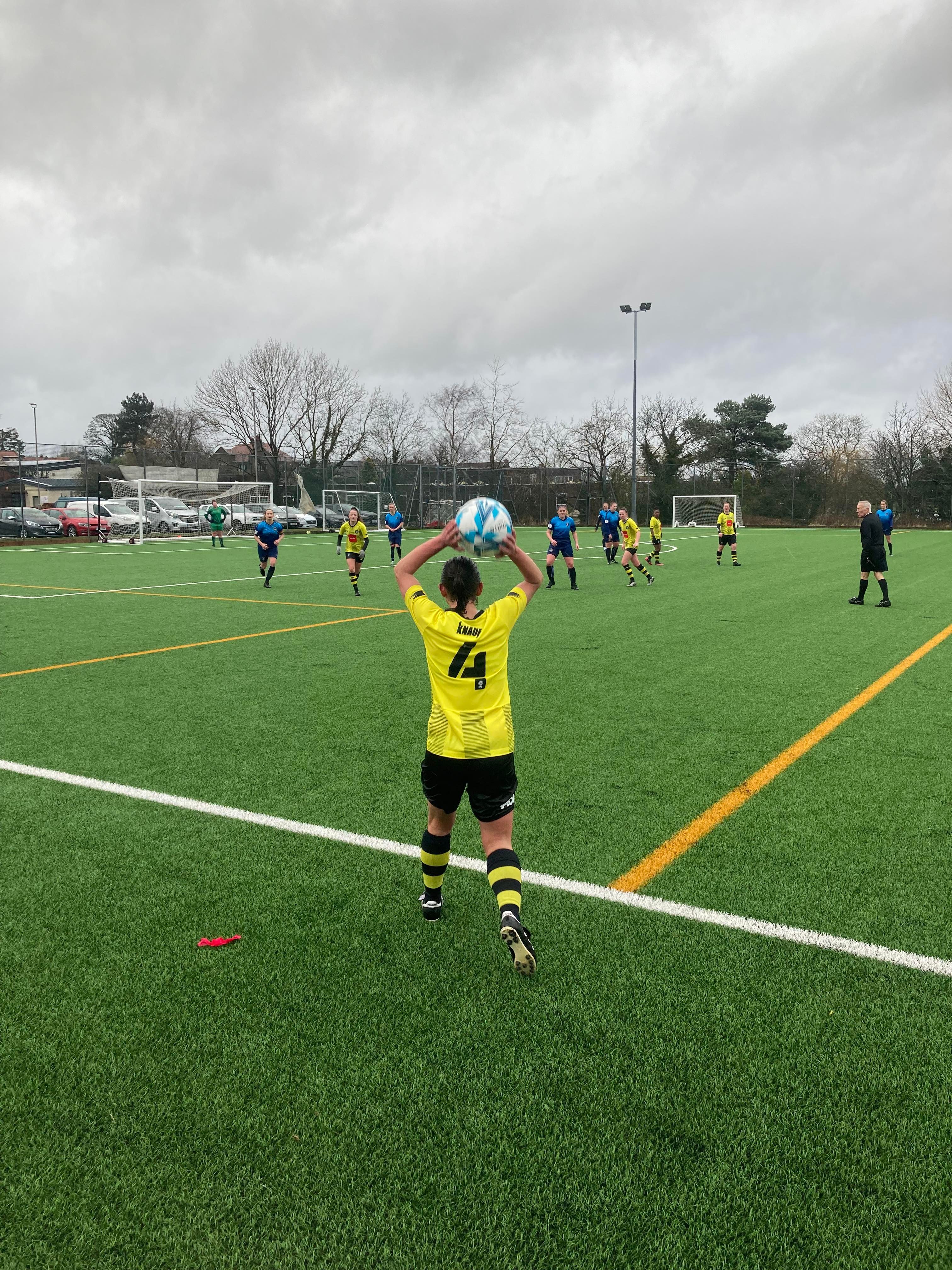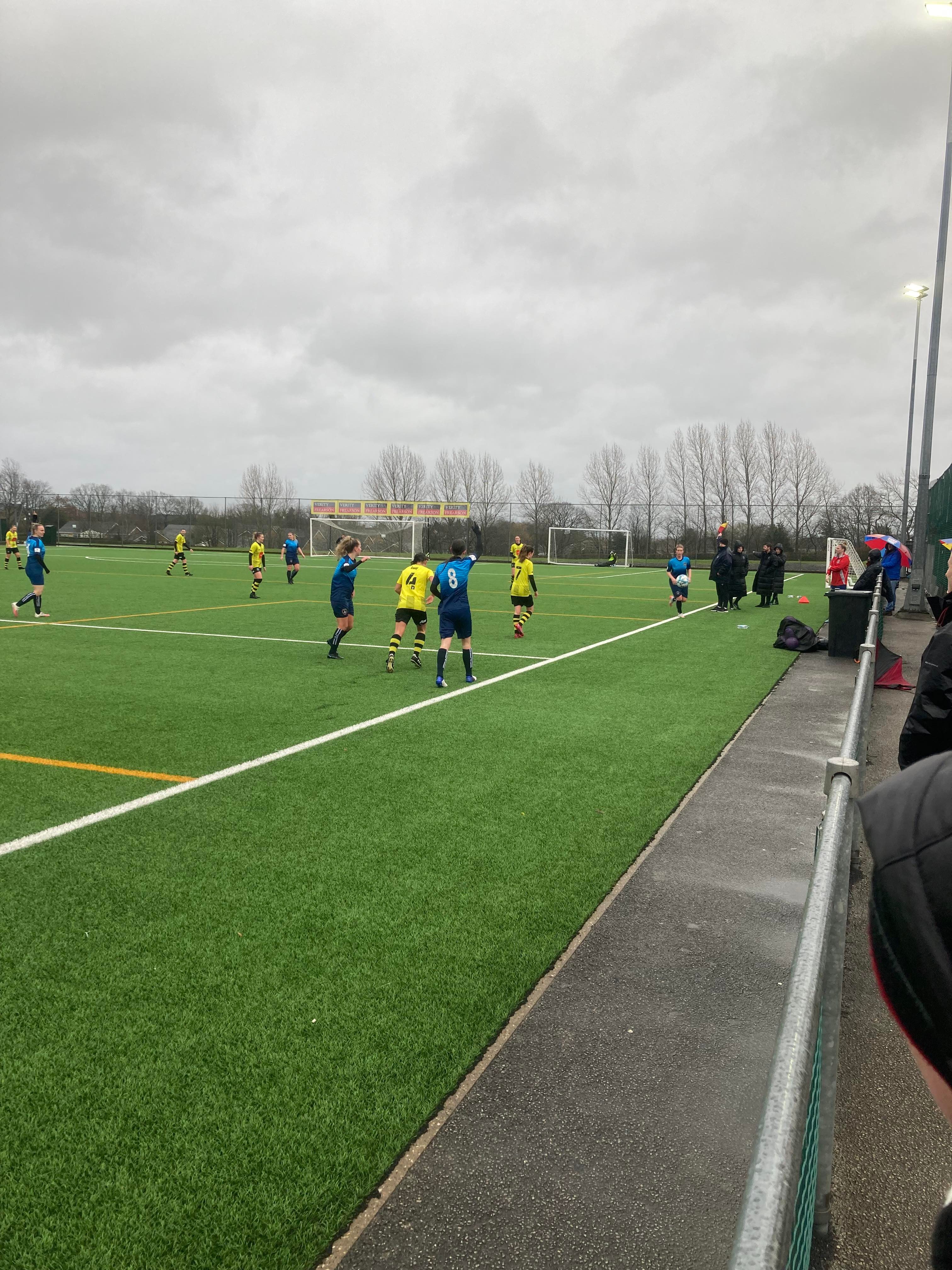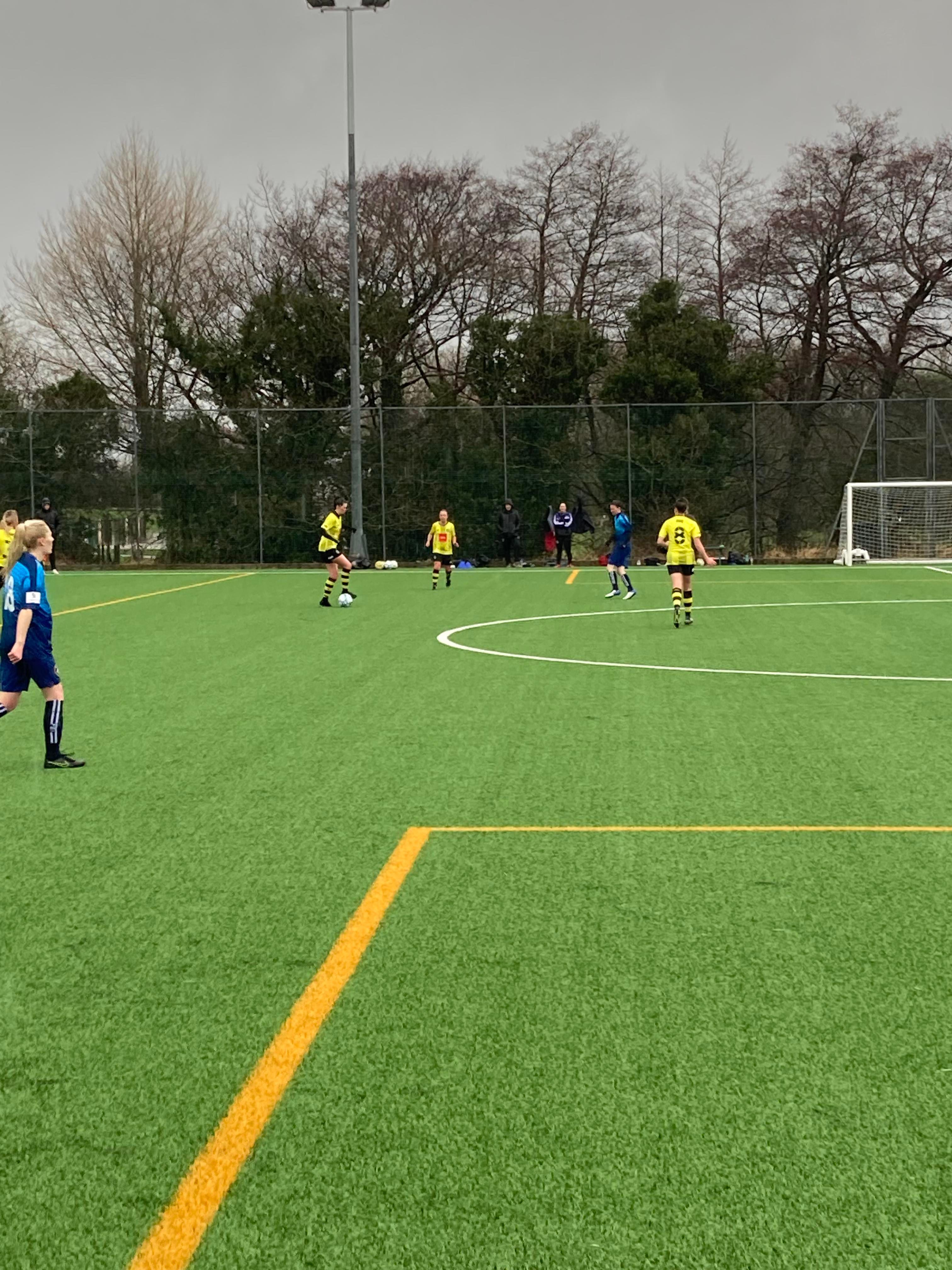 42nd minute and Wakefield are showing signs of coming back after going 3-1 down now, they have it on the left with number 10, a brilliant piece of skill there as she backheels it to number 17 who gets the cross into the middle, number 9 runs in for it… It’s gone in!!! It might have been an own goal but I’m sure Wakefield won’t care!! It’s 3-2!! It’s game on!! The Referee blows for half time and off we all go for some shelter…