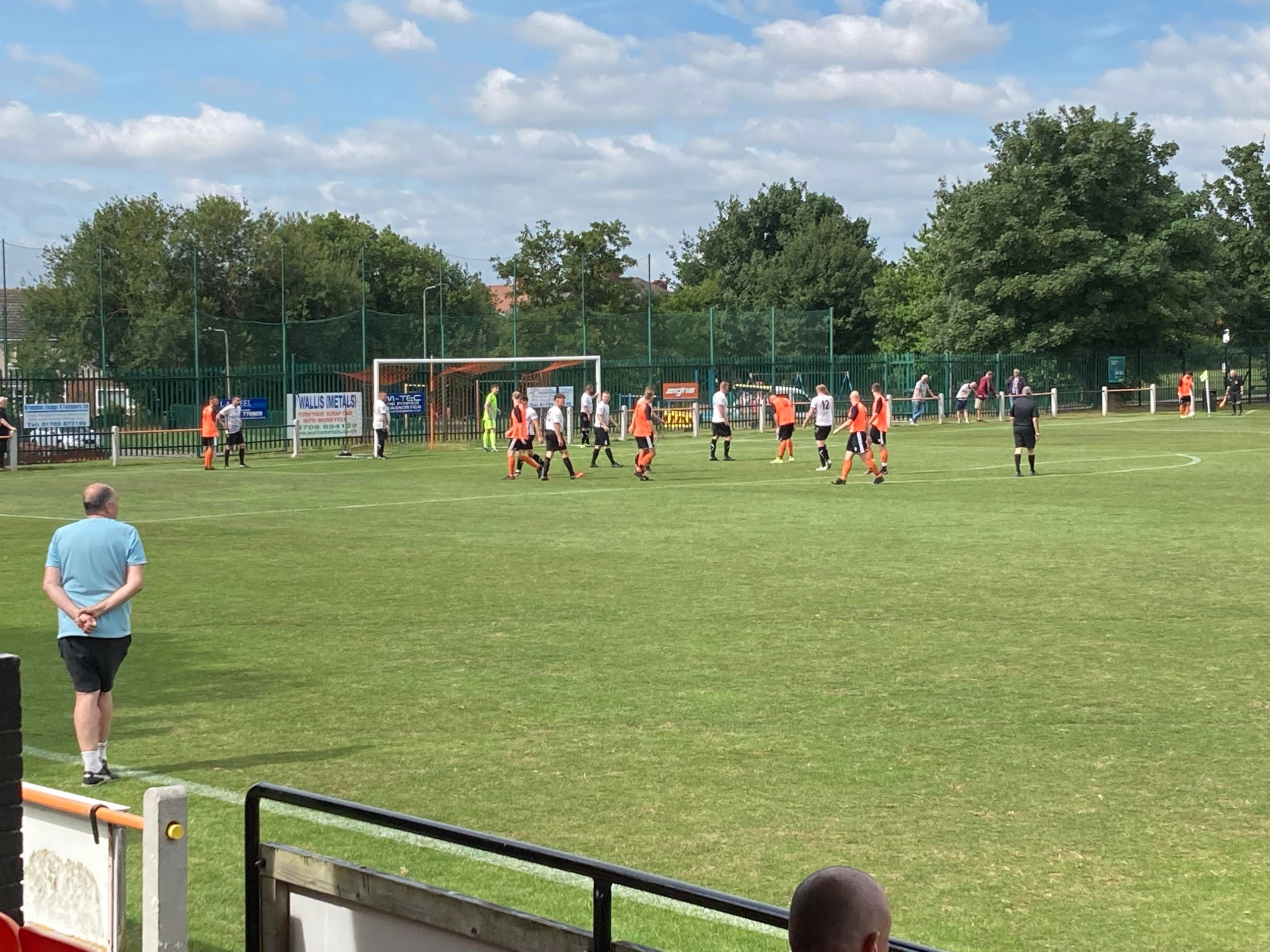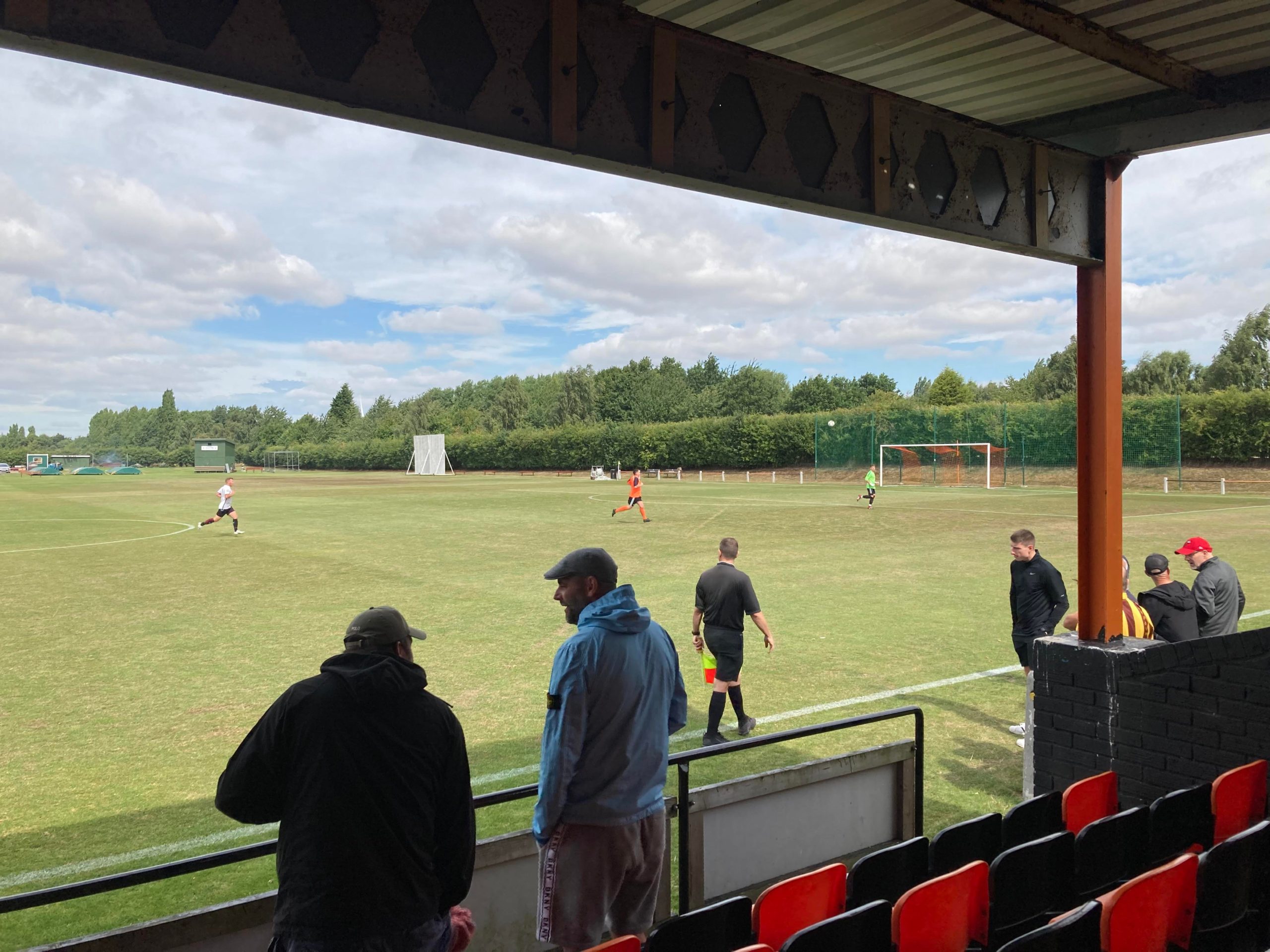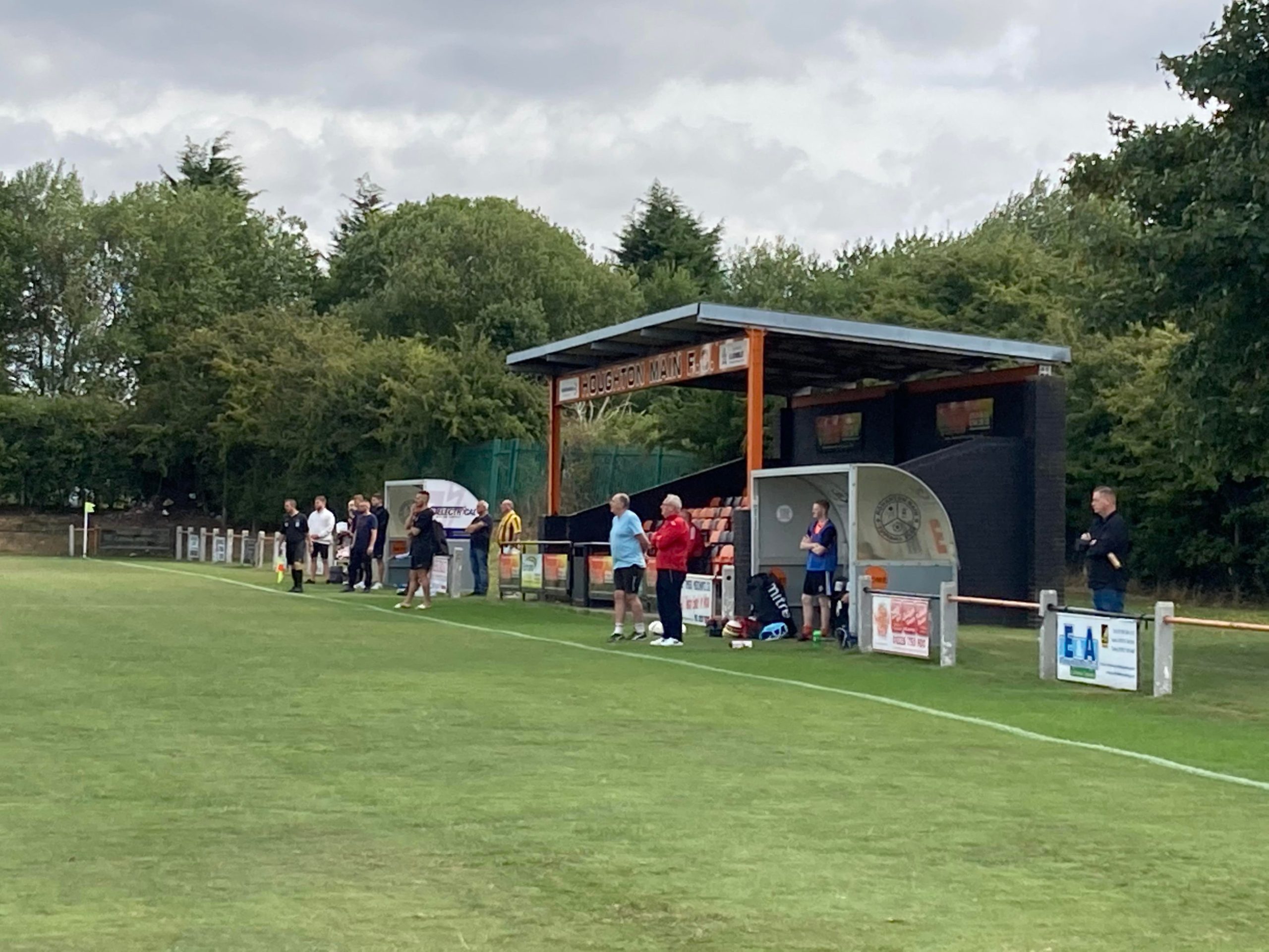 39th minute and Mexborough have hardly been out of their own half… Well there out of their own half now and they have space down the left hand side, it’s crossed in towards number 12 at the back post… THEY’VE SCORED… Totally against the run of play and just like me and the linesman were thinking! One chance and they’ve taken it! It’s 1-1! Great to meet a club official of Houghton just before that goal, he won’t be happy they’ve conceded now though… 1-1 at half time here.