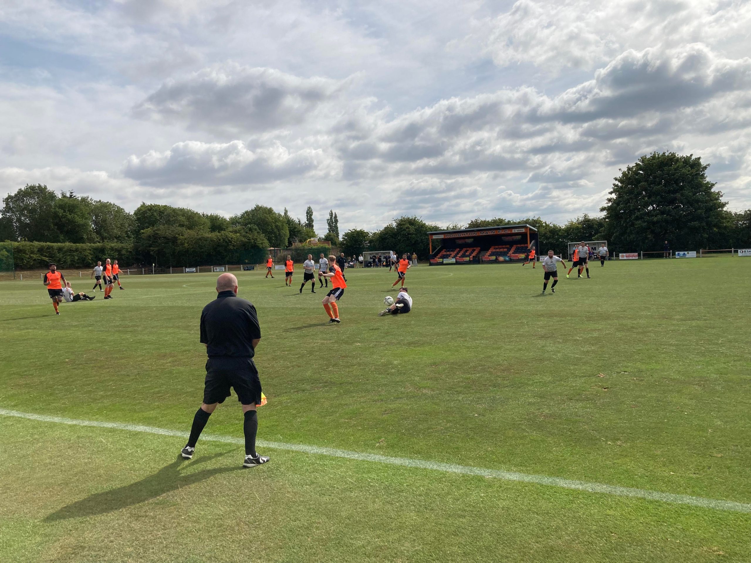 21 minutes now and Houghton continue to dominate this game, a ball is played over the top to number 12, he’s onside, he gets to the edge of the box and he makes space for the shot… Keeper parries away! The Houghton bench continue to question the assistant referee on the far side about a few offside decisions… Don’t know why! The linesman has got them all correct so far for me! Great to speak to the man himself here too!