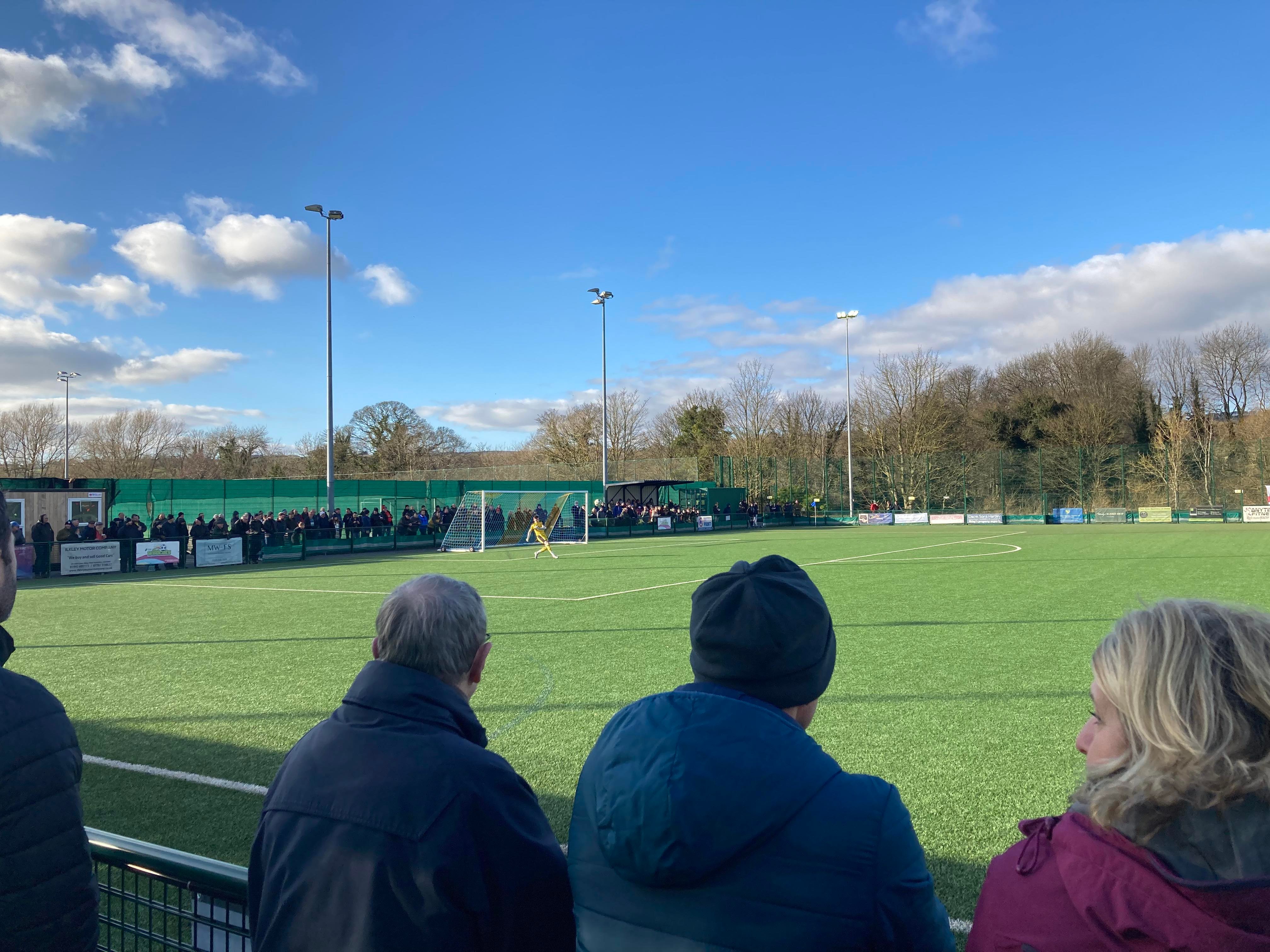84th minute and Ilkley are chasing the winner here now! Can they get it? The ball is played to Charlie Nixon in the box on the left and he shoots… Keeper saves again! 87th minute and it’s all Ilkley now! There’s tension in the stands as a rule of thumb for some groundhoppers is if it’s a 0-0 they have to revisit… Pretty damning especially with how far some have travelled… But here come Ilkley again and the ball is played to George Gomersall 20 yards out to shoot… OH! It’s just curled wide! So close!