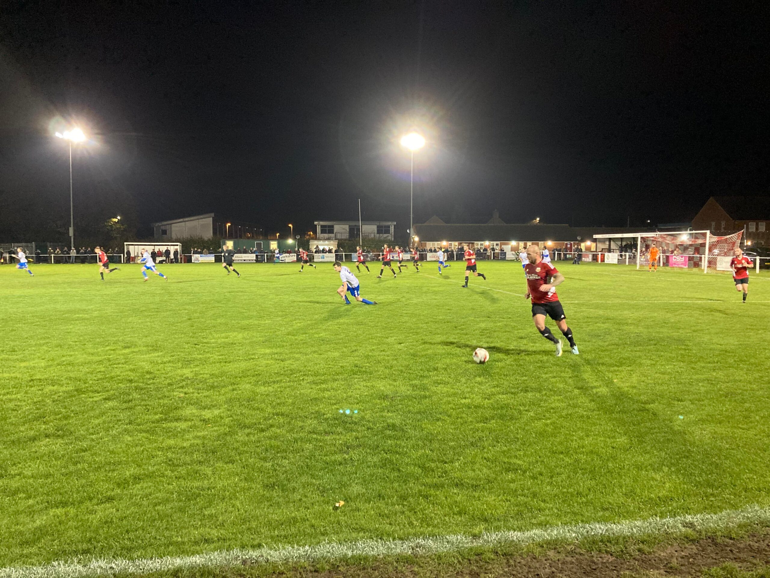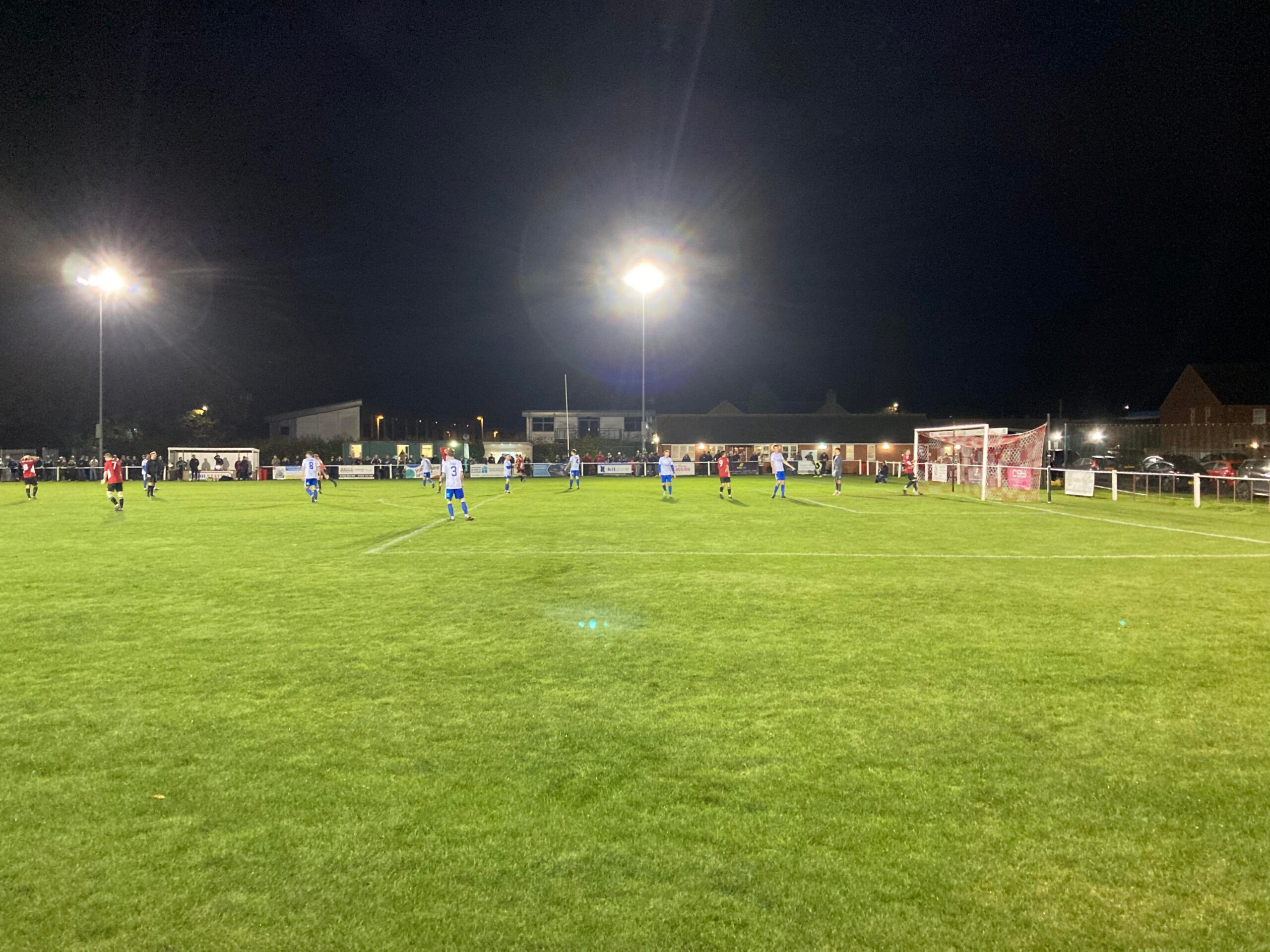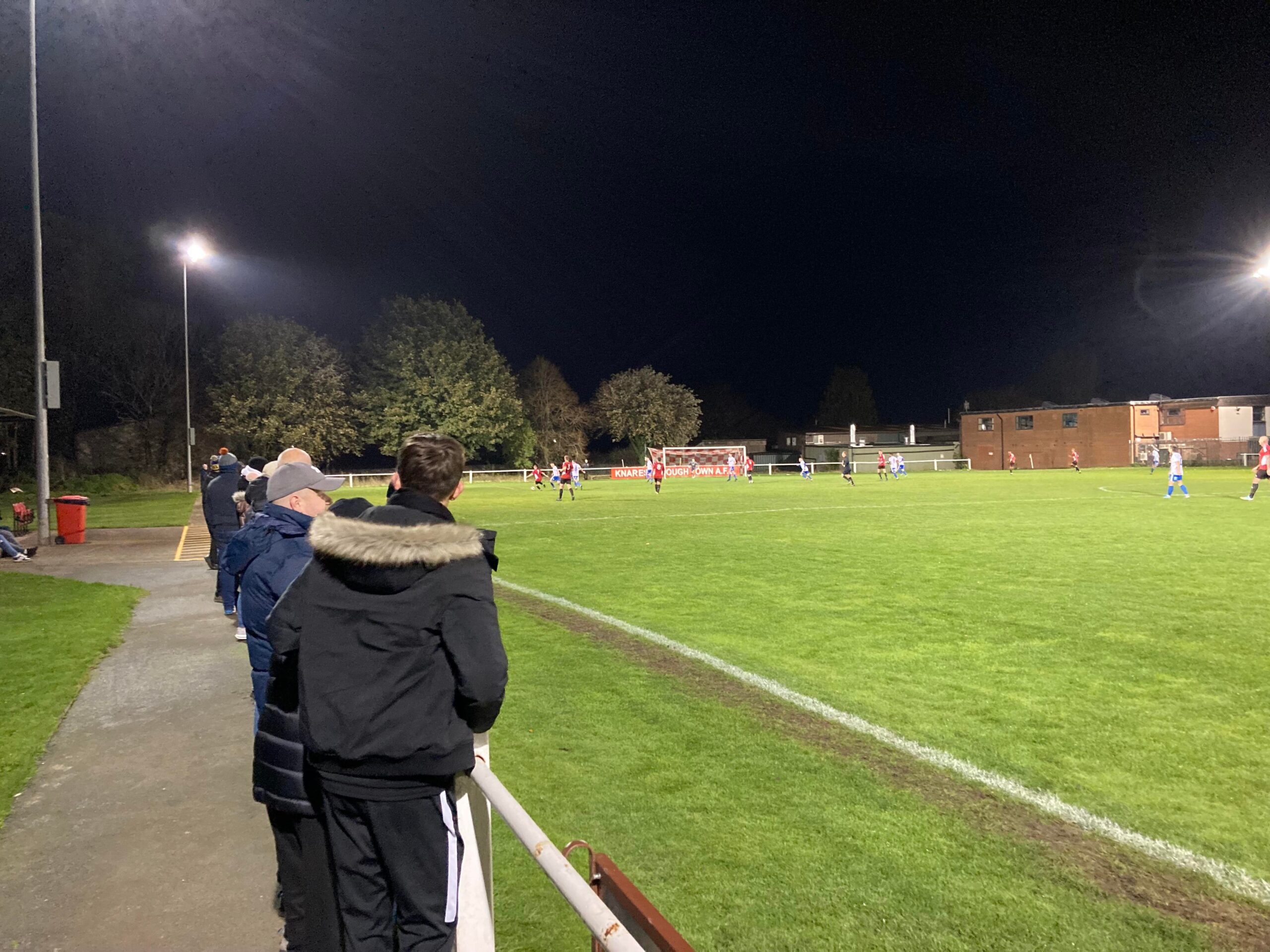 The clubhouse is filling up nicely! It’s looking like a good crowd here tonight so far. The man sat next to me has Futbology… It is the Donny Hopper! Great to meet the man behind the Twitter account and his friend Joe here tonight!! A good laugh and talk about groundhopping later and it’s time for the game. Out come the teams, we’ve got that Friday feeling, let’s hope the football does too!