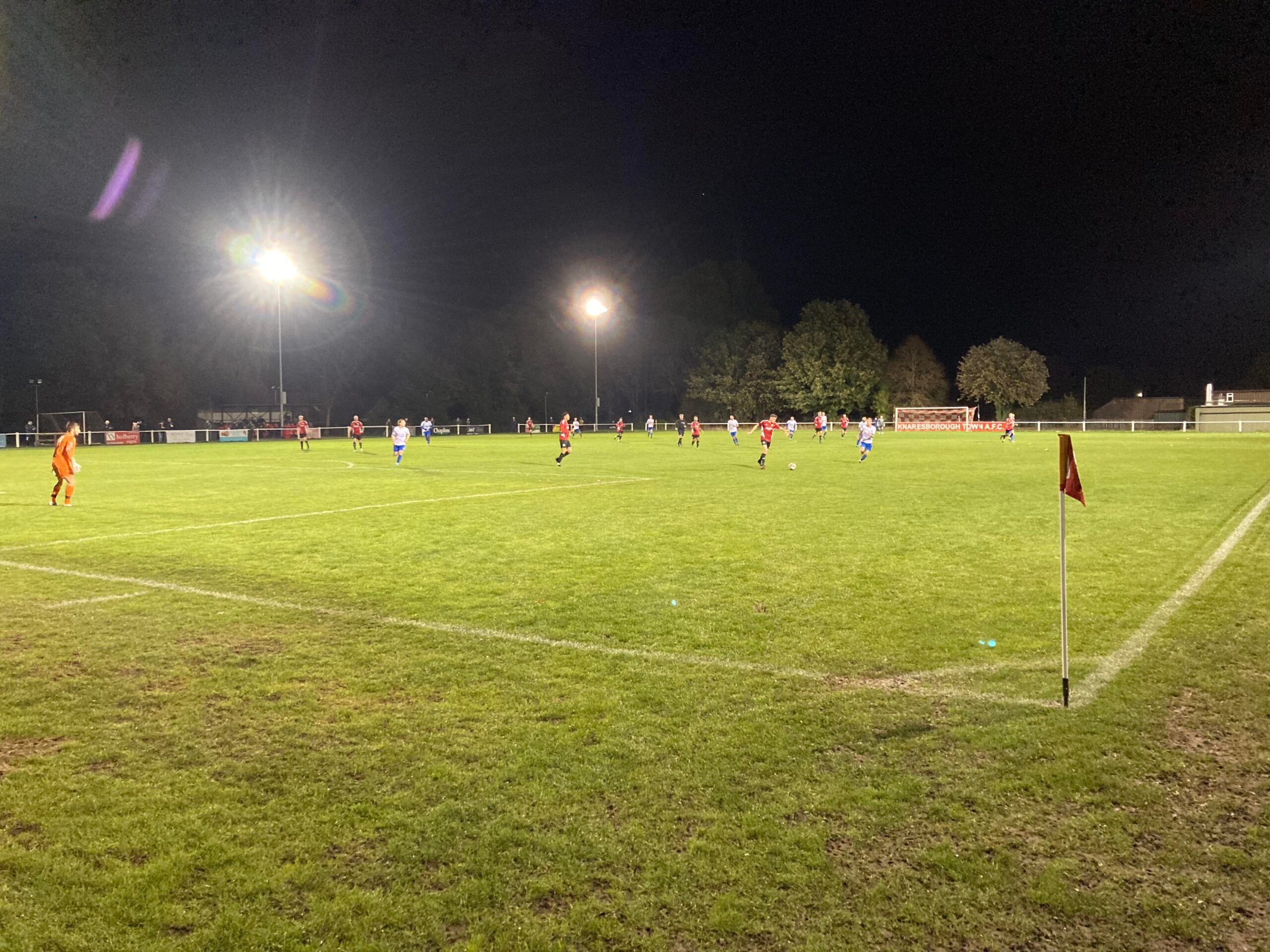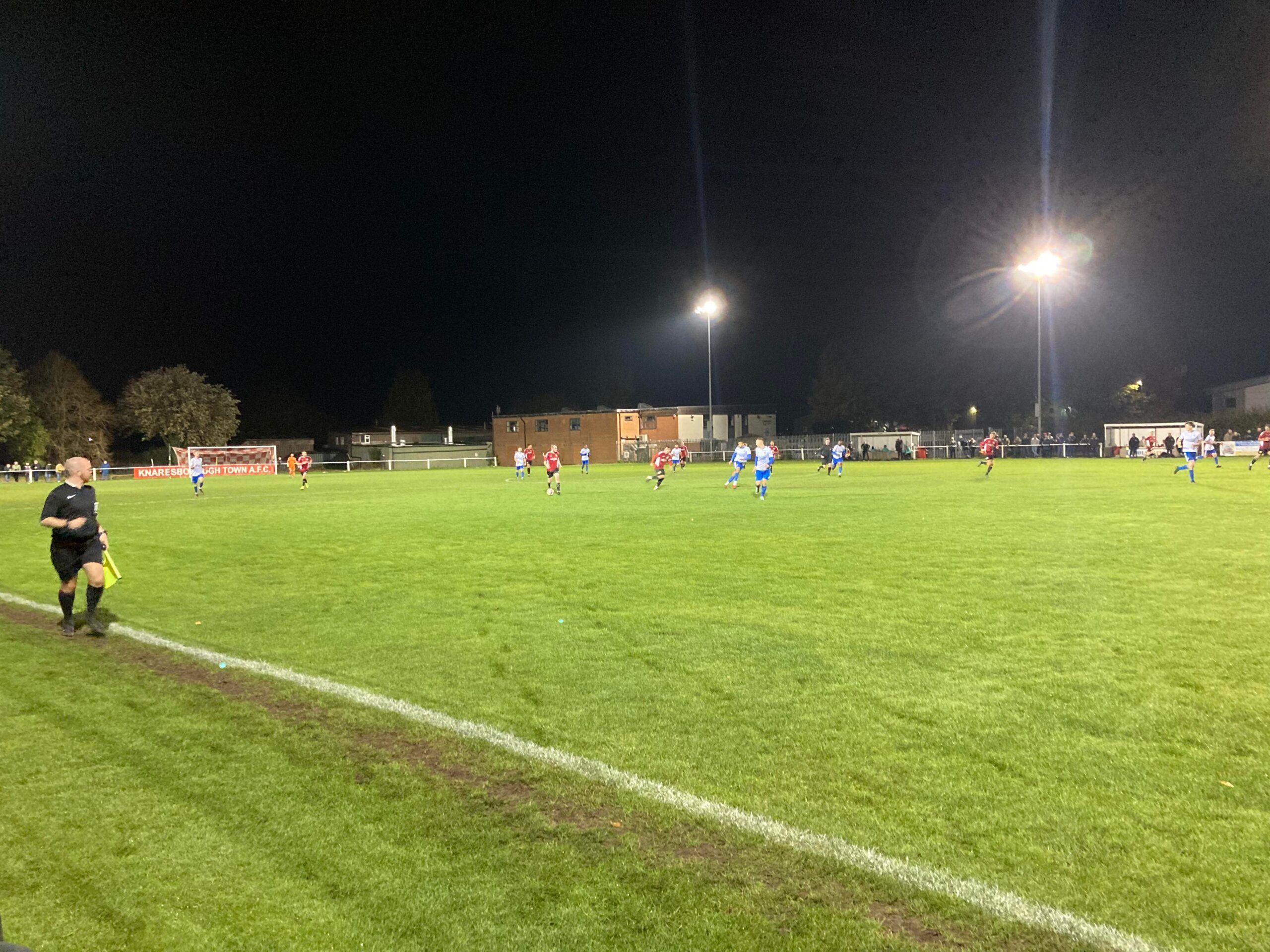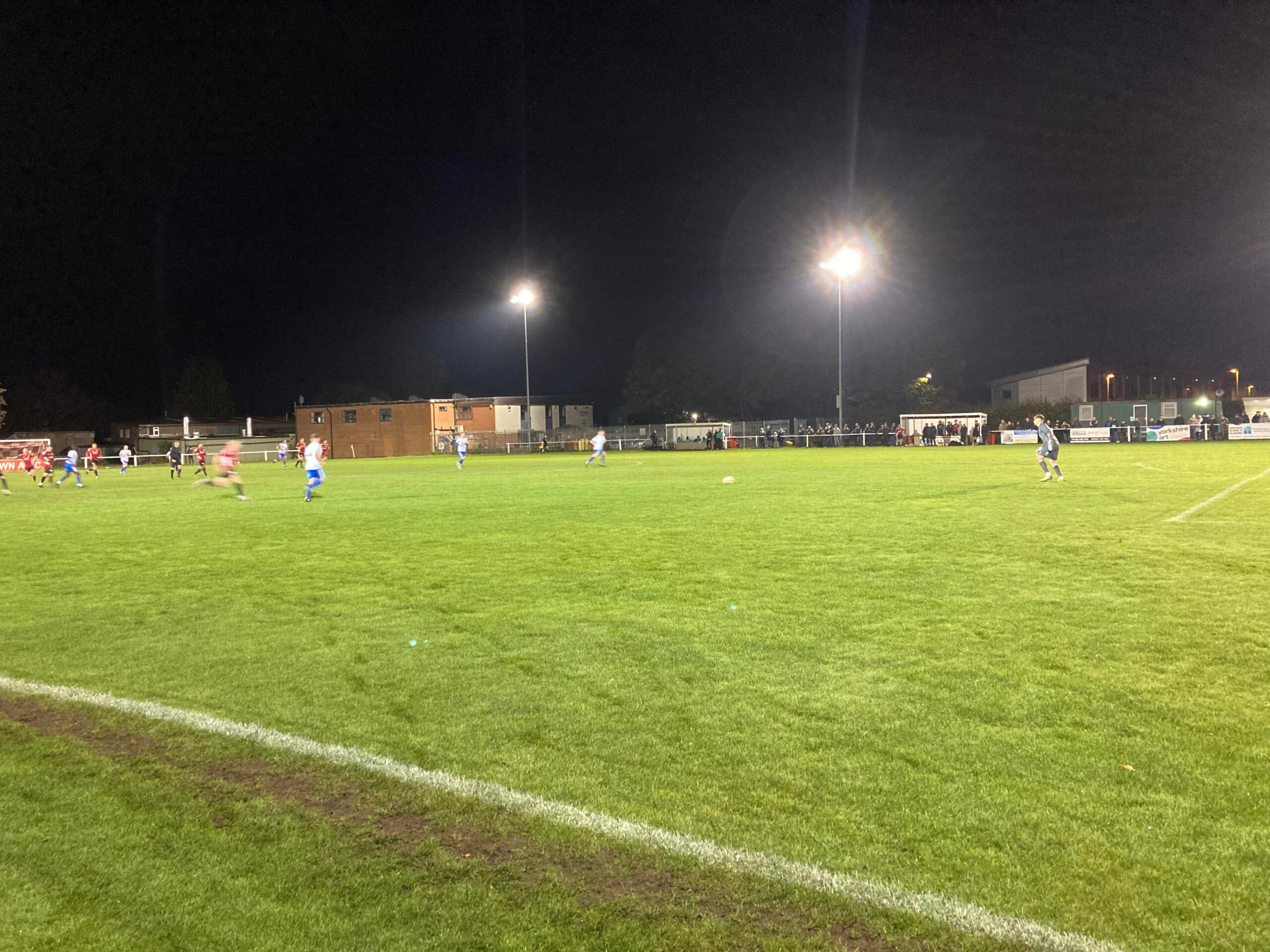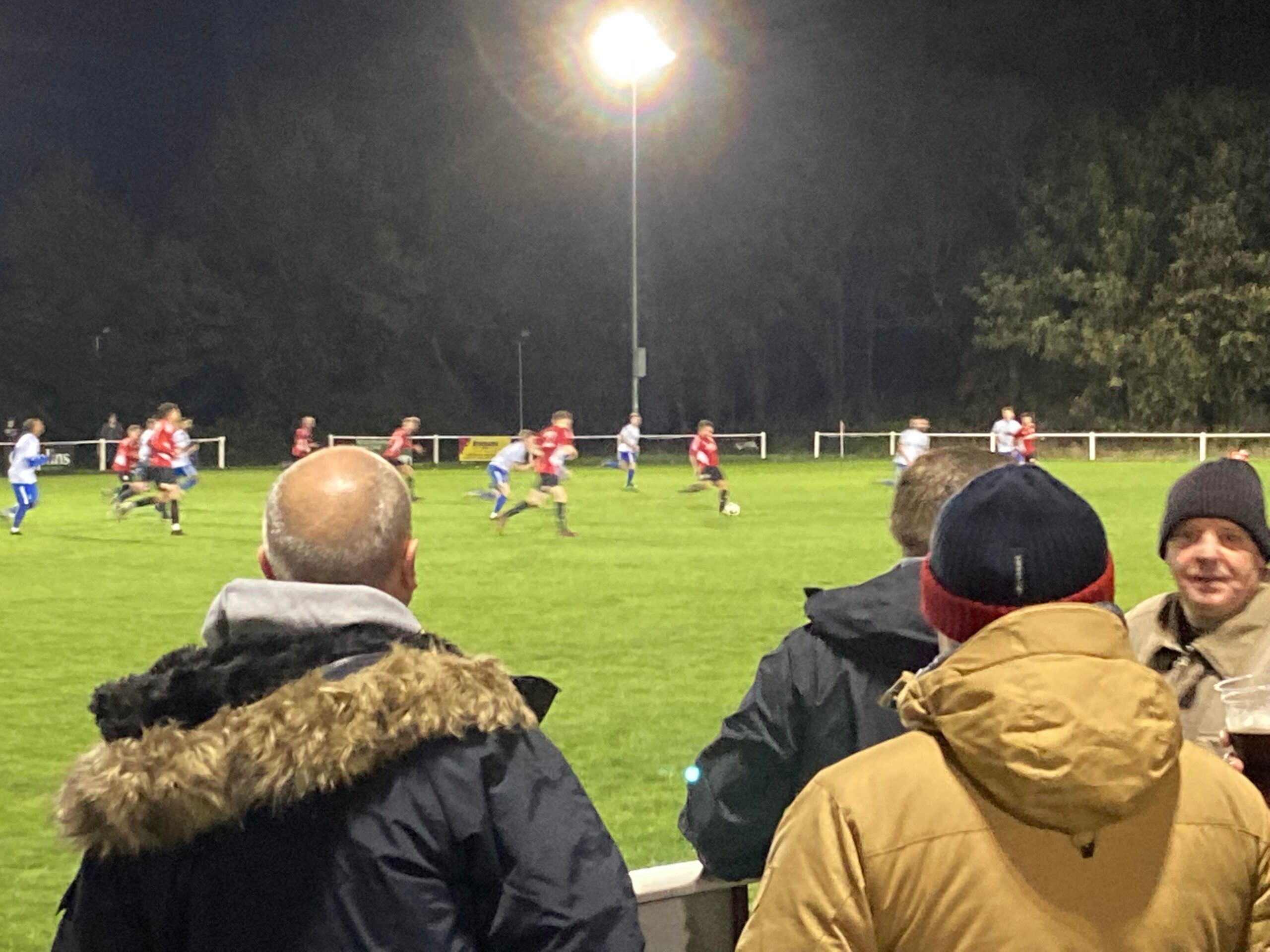 The clubhouse is filling up nicely! It’s looking like a good crowd here tonight so far. The man sat next to me has Futbology… It is the Donny Hopper! Great to meet the man behind the Twitter account and his friend Joe here tonight!! A good laugh and talk about groundhopping later and it’s time for the game. Out come the teams, we’ve got that Friday feeling, let’s hope the football does too!