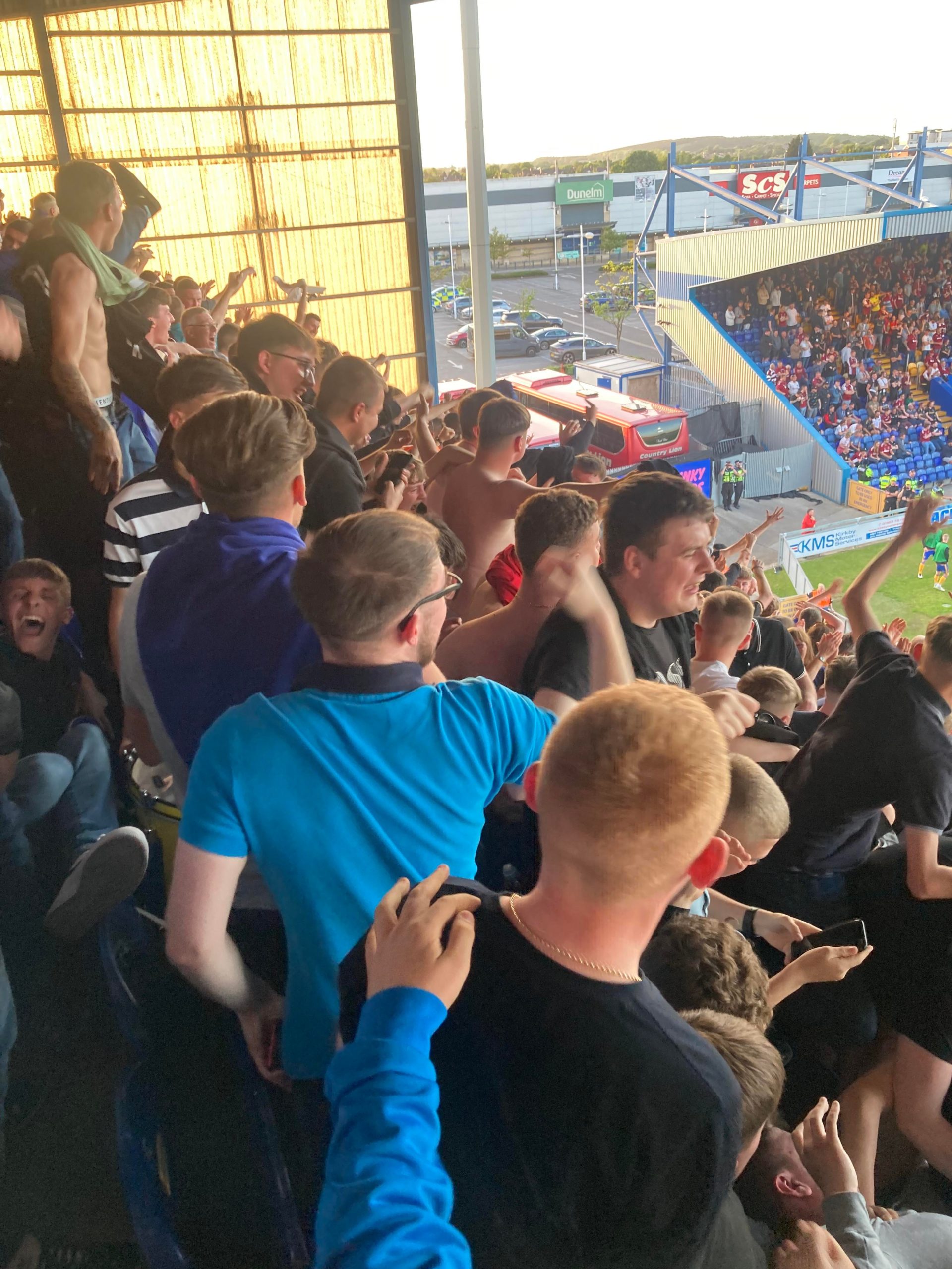 “Oates Oates Rhysy Rhysy Oates! He gets the ball and scores a goal! Rhysy Rhysy Oates!” Even for Block Q standards this is SPECTACULAR!! “We’re on our way we’re on our way! To the League One we’re on our way!” Shirts are coming off now!