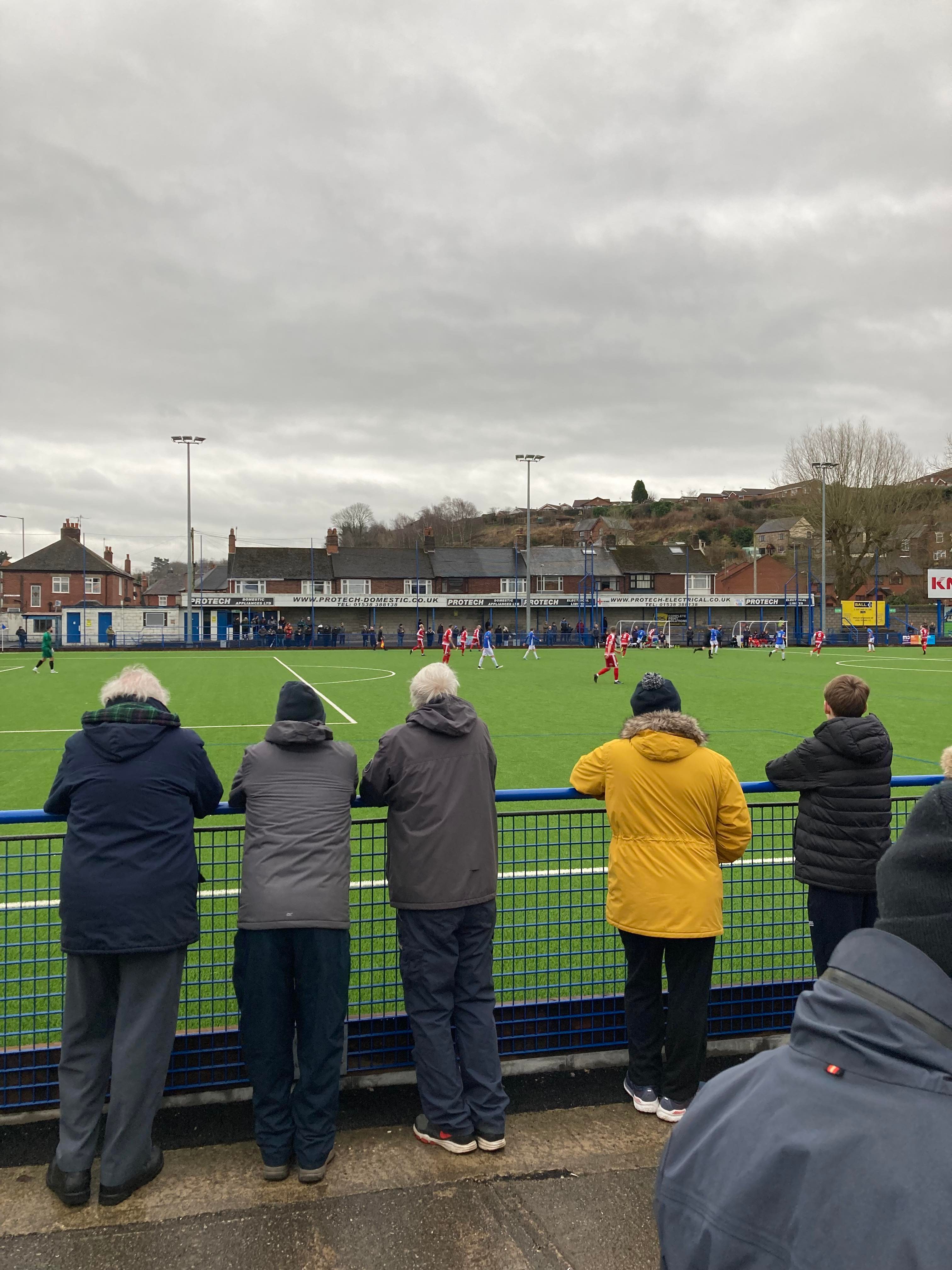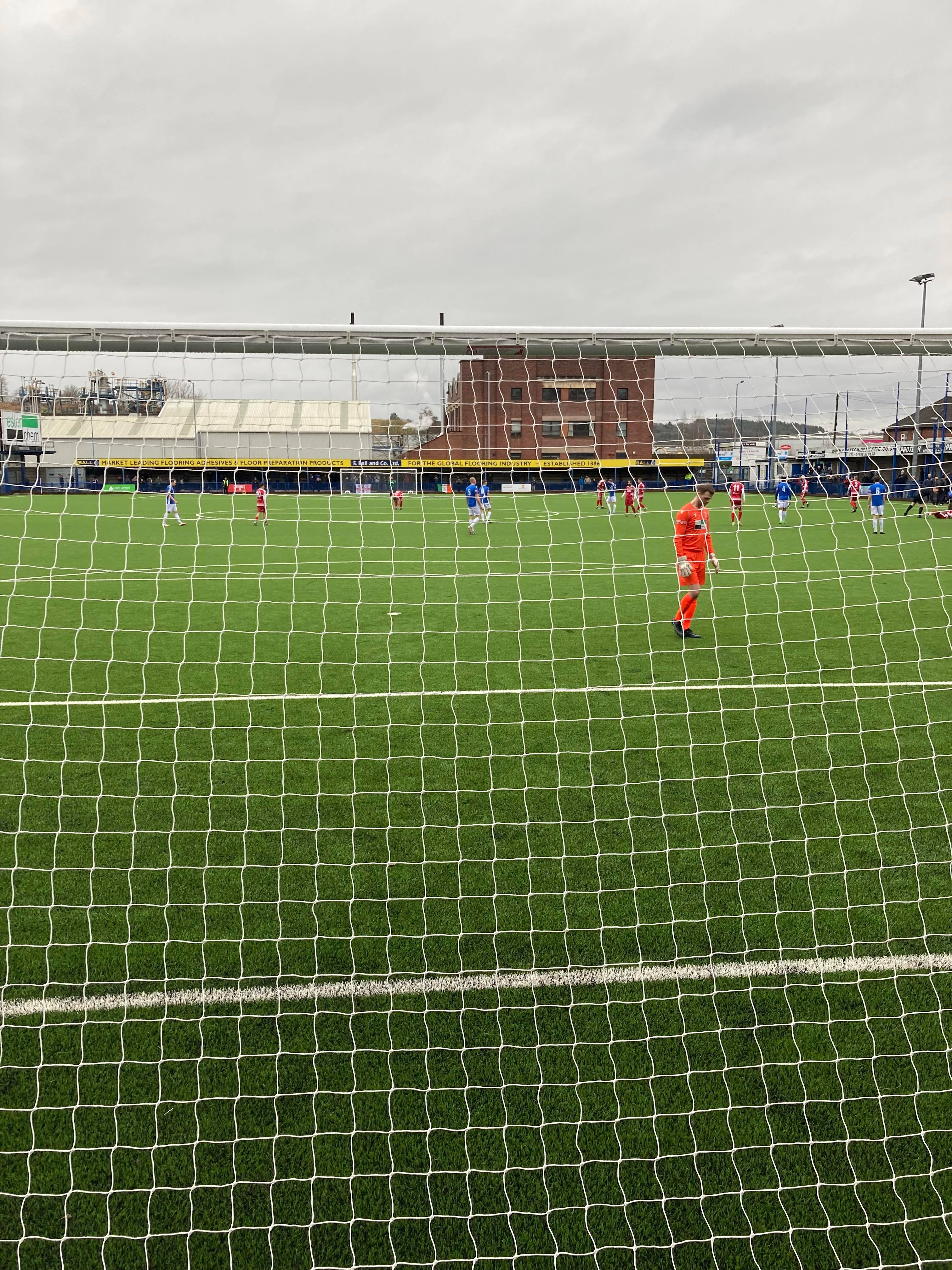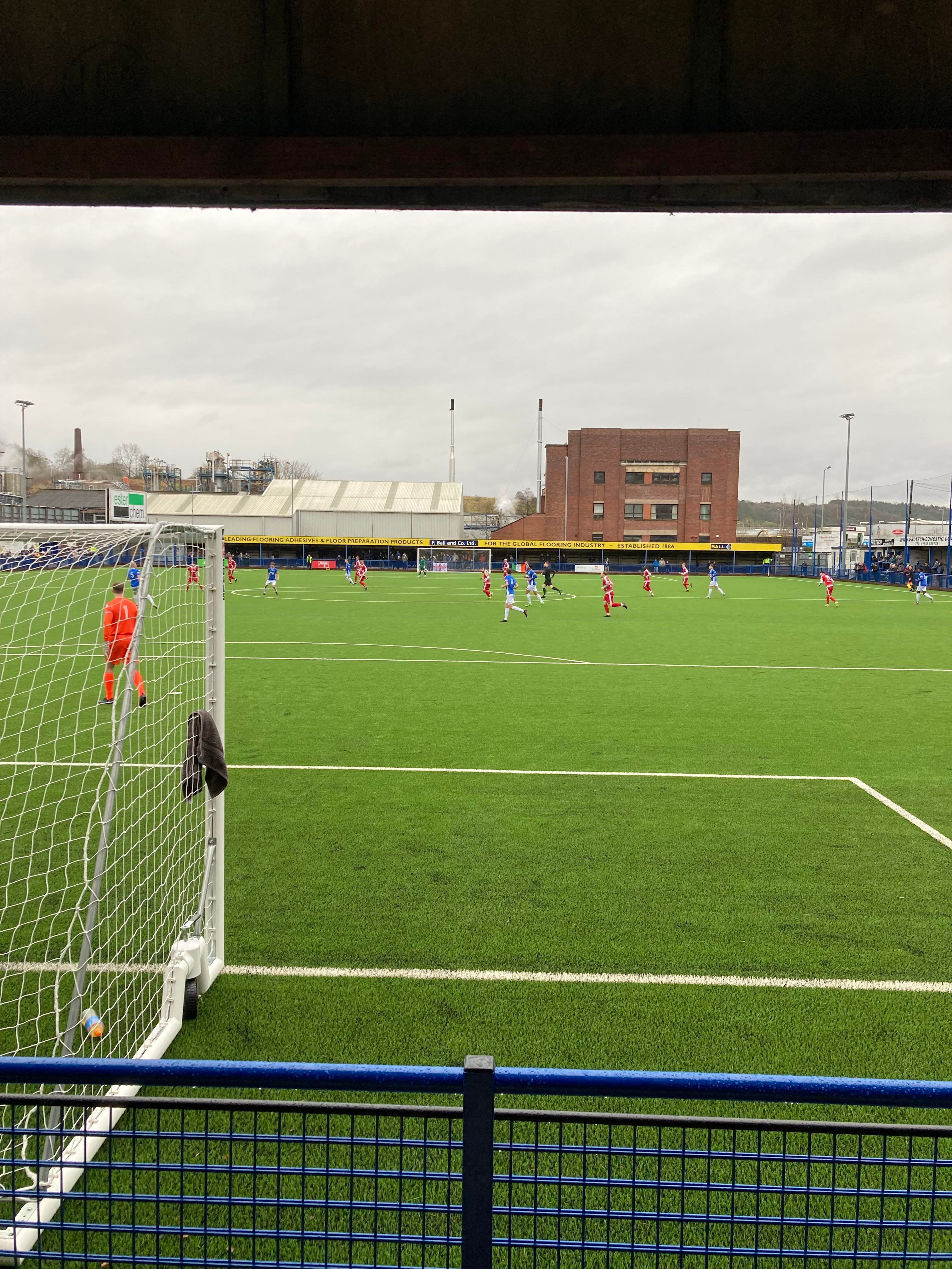 Second half, “Leek Town boys we are here! WOOAAH!” 56th minute and Leek play forward, it’s crossed into the middle, here’s number 5 at the back stick with the header… Keeper saves… The Referee blows for a free kick to Colne… A bit of pushing there from Leek’s number 5 I believe. 2 minutes later and Leek’s keeper plays it long, number 9 chases it and out comes the keeper… Number 9 gets there first and he’s in… OH! Somehow Colne’s number 4 gets there and forces a goal kick… Big moment in the game!