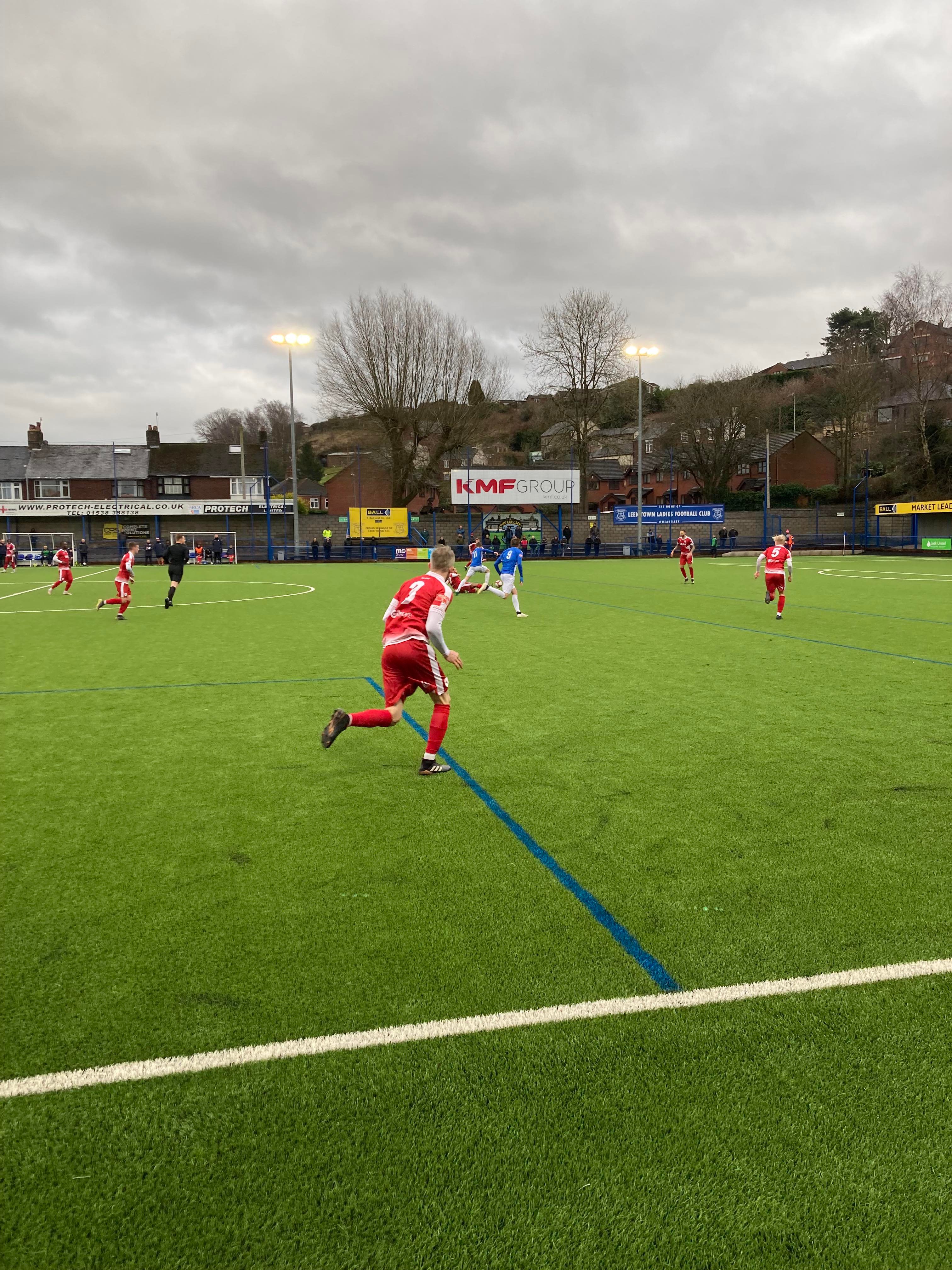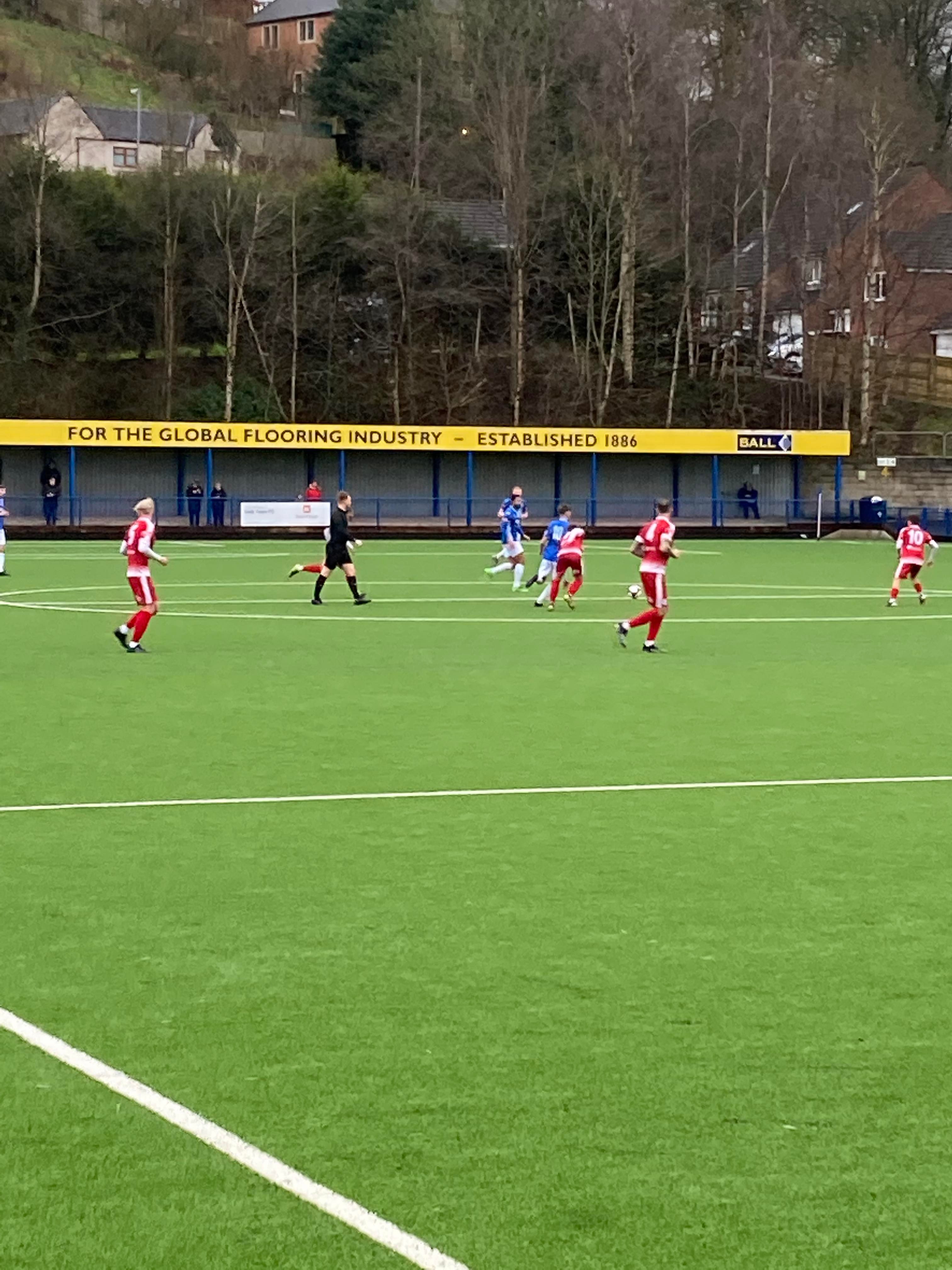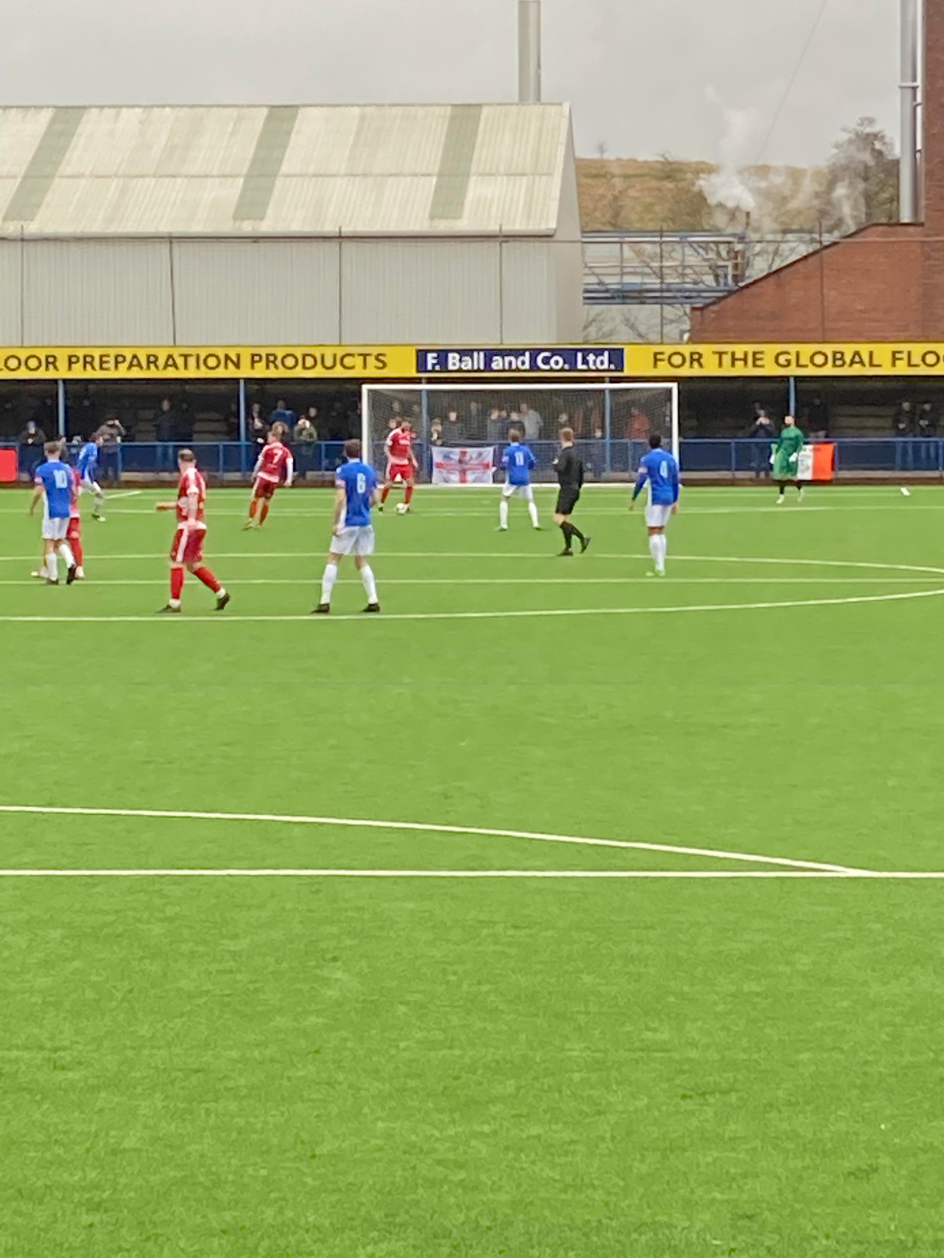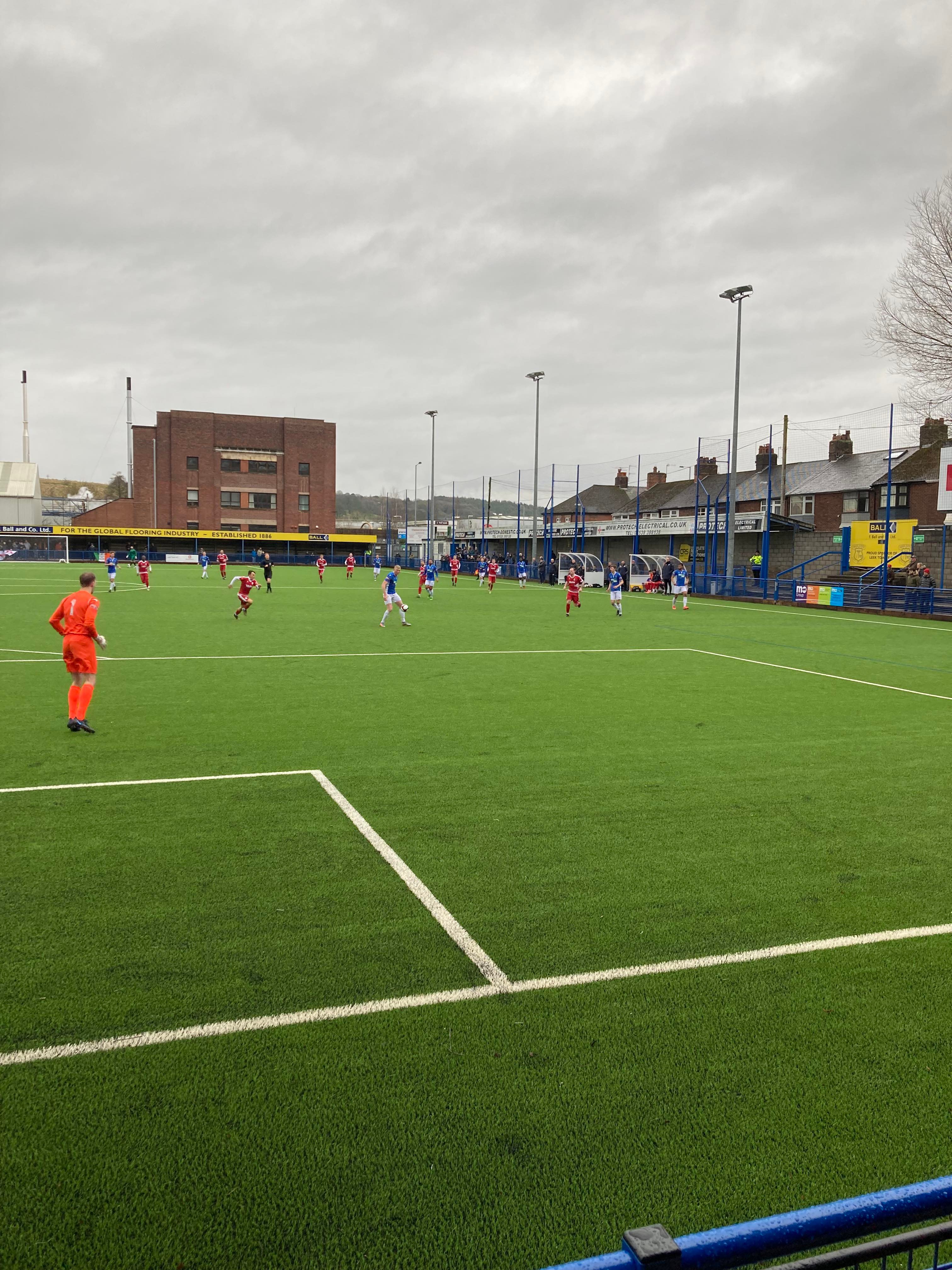 Kick Off! “Leek Town boys we are here WOOAAH!” A bit of noise from the Leek faithful!! 6 minutes in and Leek play the ball into the middle from the left, it’s number 8 with the header… Straight at the keeper. “Red army!” A bot of noise from the travelling Colne fans now!