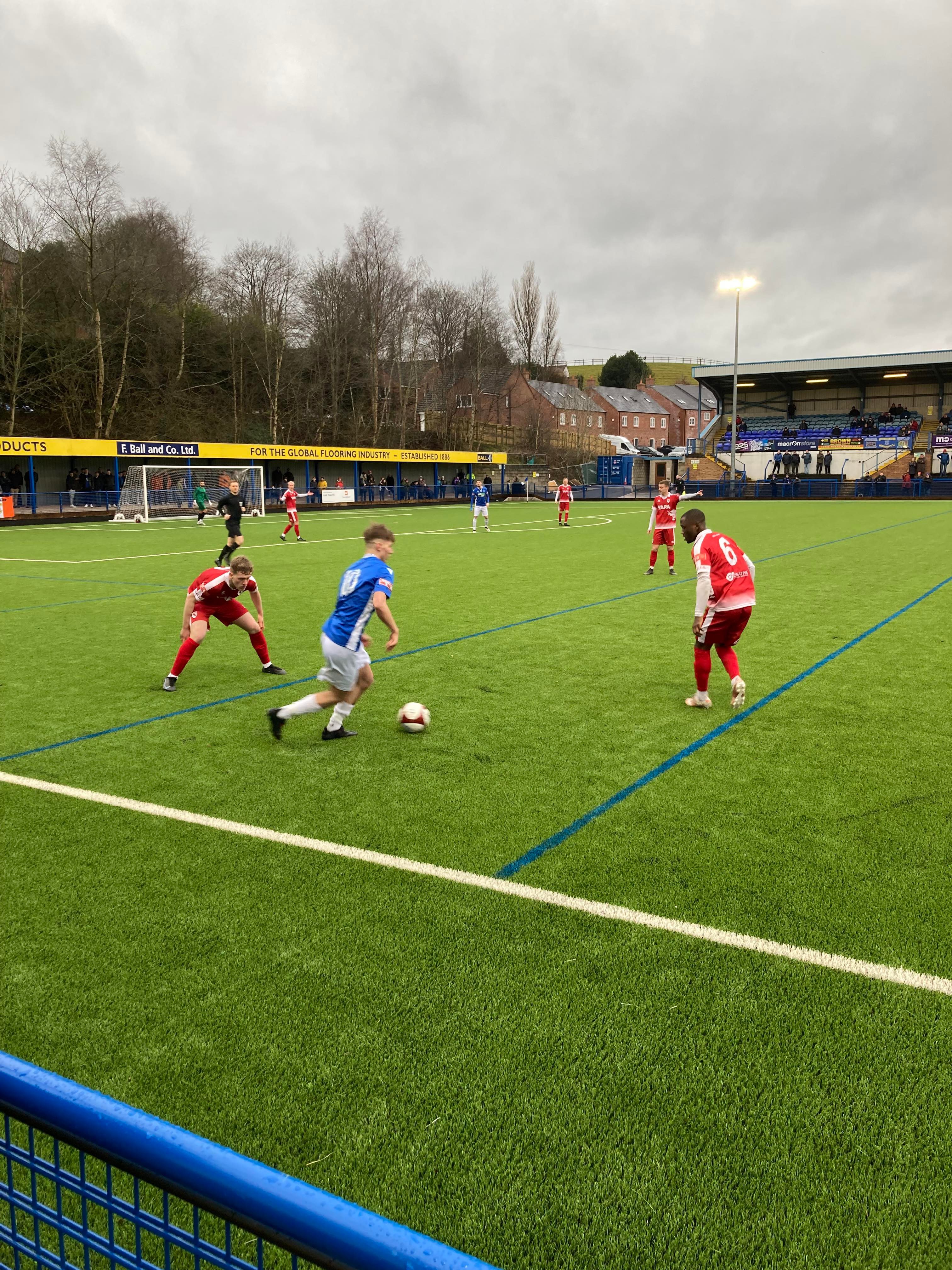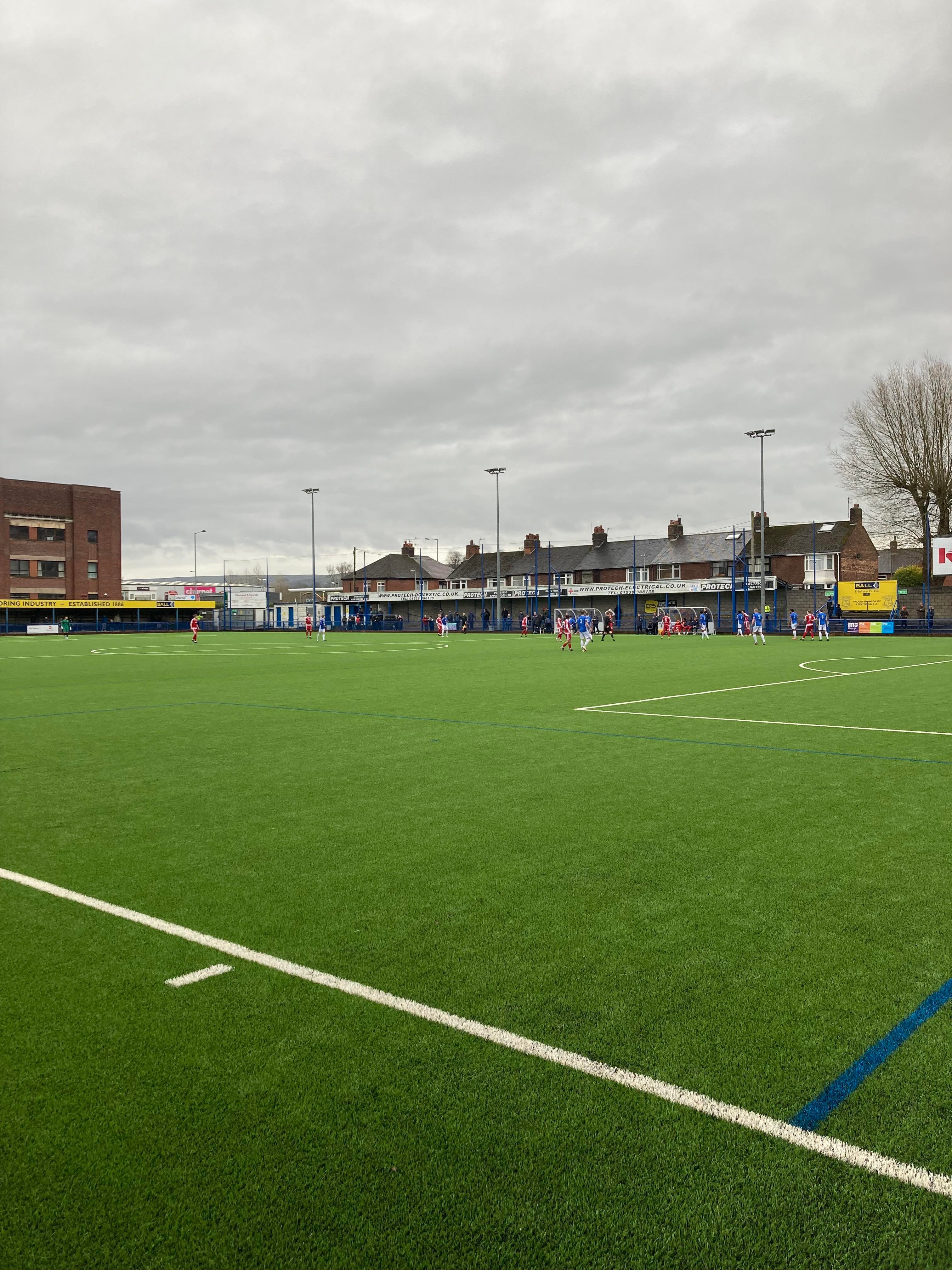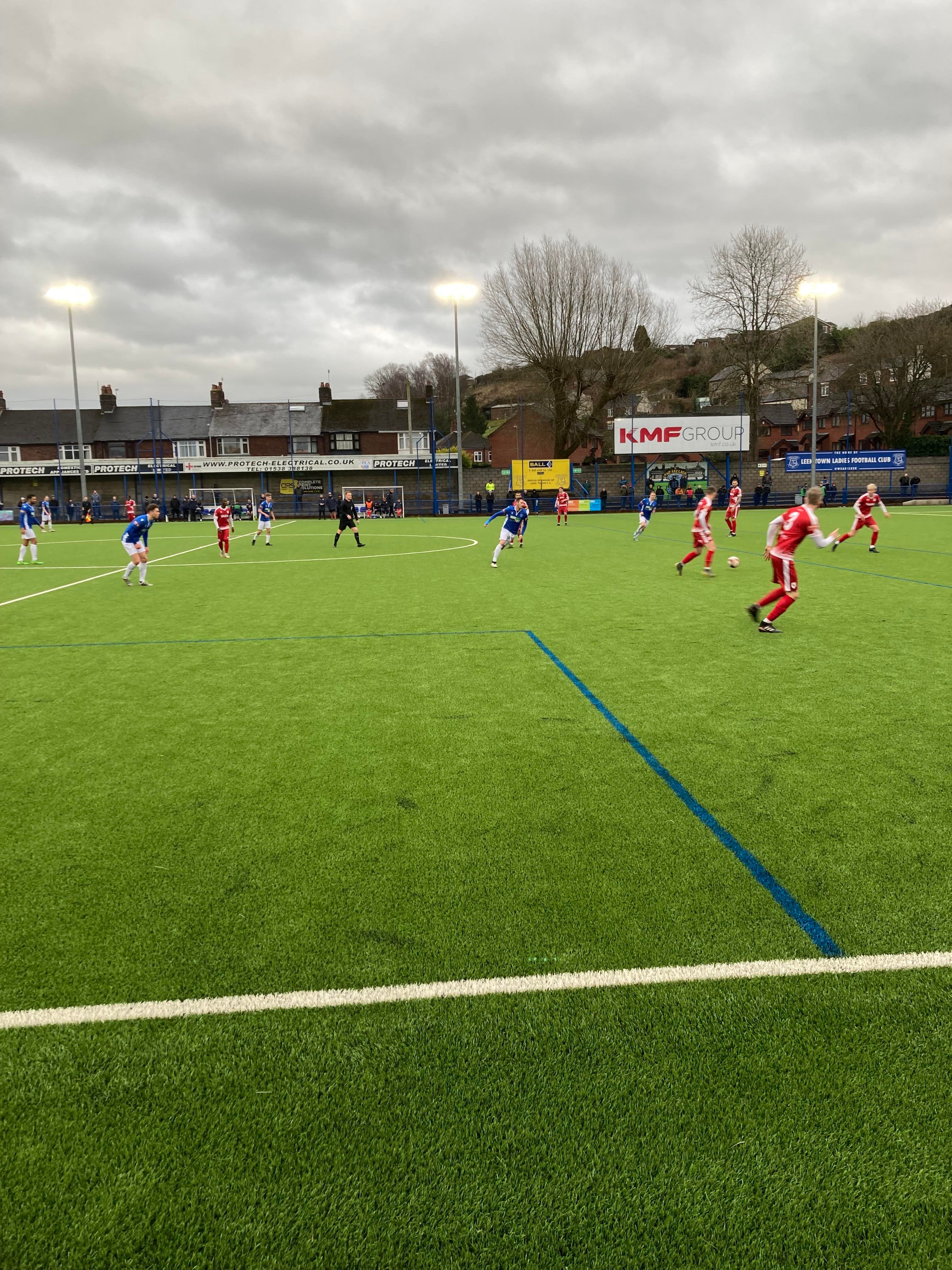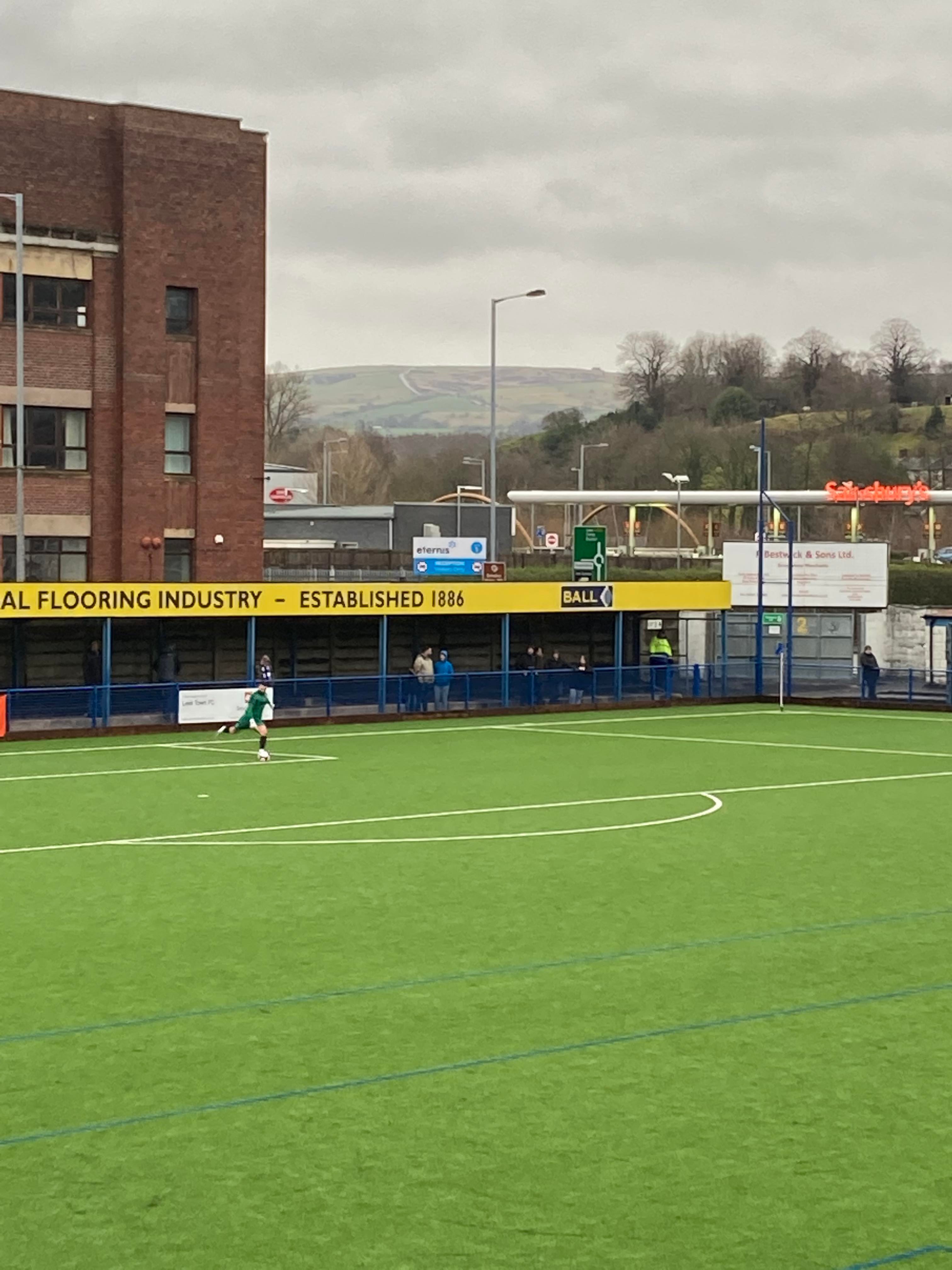 15th minute and Leek have a corner, in it comes… Colne clear and now they break forward on the counter attack, they have it on the left, in comes the cross, it’s headed away but here comes Colne’s number 6 on the edge of the box running in, he shoots… Straight at the keeper. 4 minutes later and Leek come forward down the right, number 2 has it, he plays a 1-2 and gets it back in the box on the right to cross, in towards the back post, it’s headed across to number 11… He can’t control it and the keeper collects… It should be 1-0!