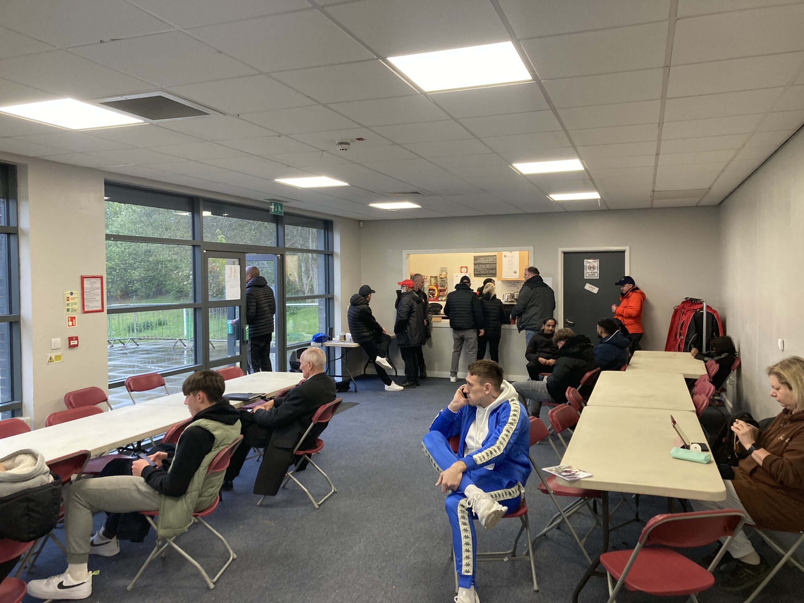 £5 to watch this tie! BOOM! Is that a familiar face? Of course I was going to see one tonight! Motohopper Tim is here! In come the players from their warm ups just in time for the rain to come down… Typical! Is that another familiar face? As Alan Partridge once said: “And another!” Chimay Bielsa himself along with Mark who supports… Chesterfield?! Oh no…