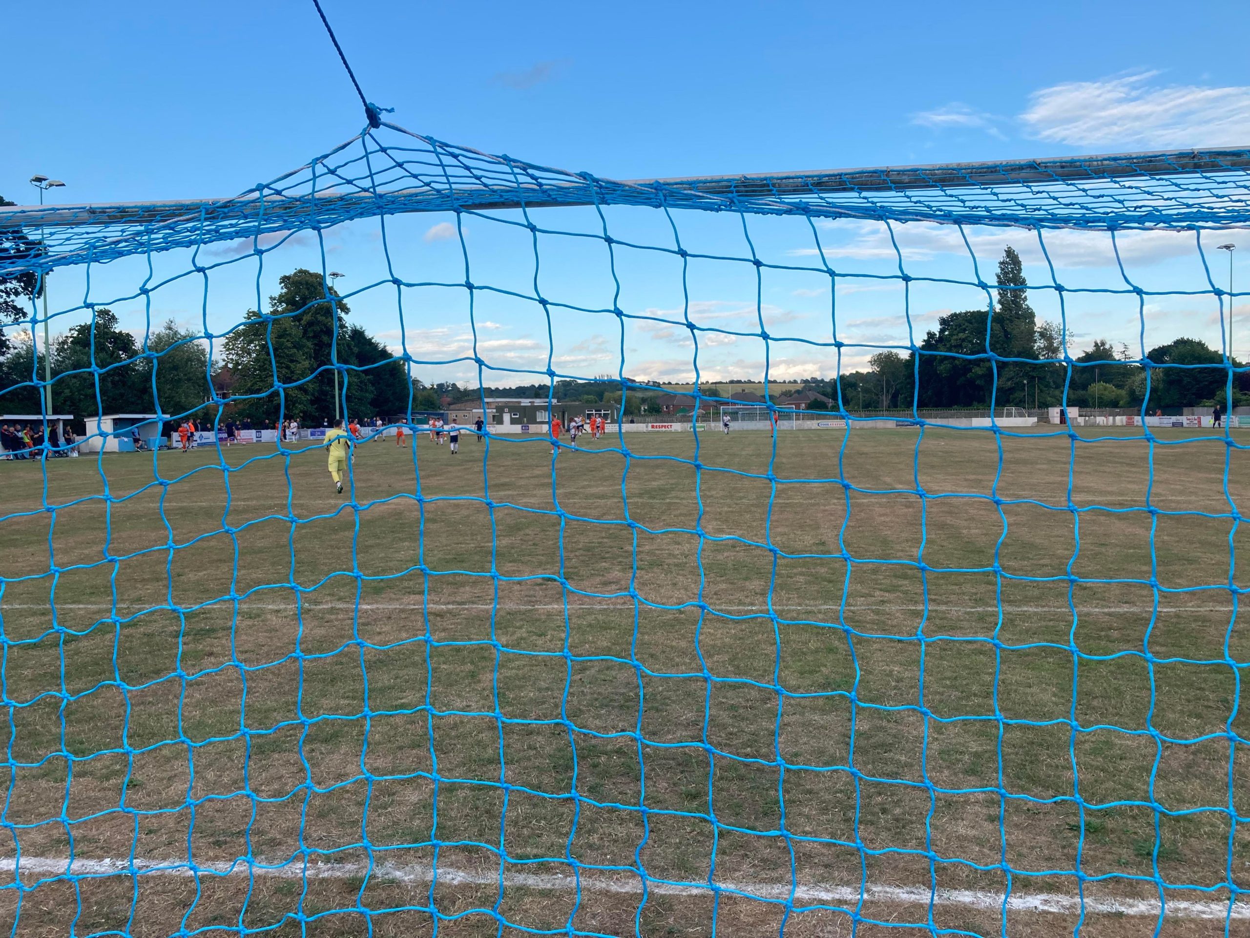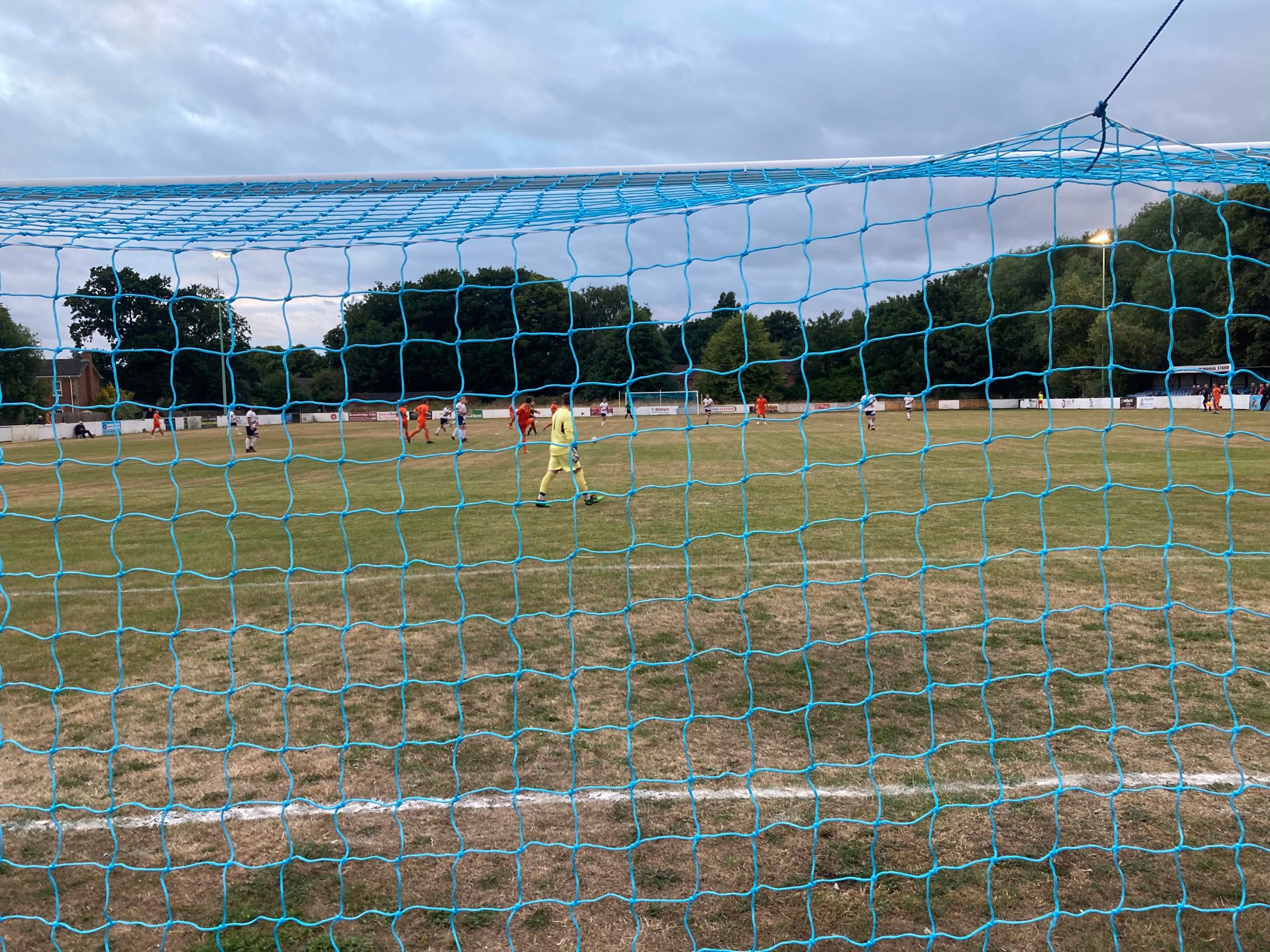 43 minutes on the clock and Lincoln come forward, they have it on the right and a cross comes in, number 9 is free and heads towards goal… He’s hit the post! Number 11 runs in… He can’t keep it down and the ball nestles in the roof of the net… So close! Skegness lead 2-0 at half time.