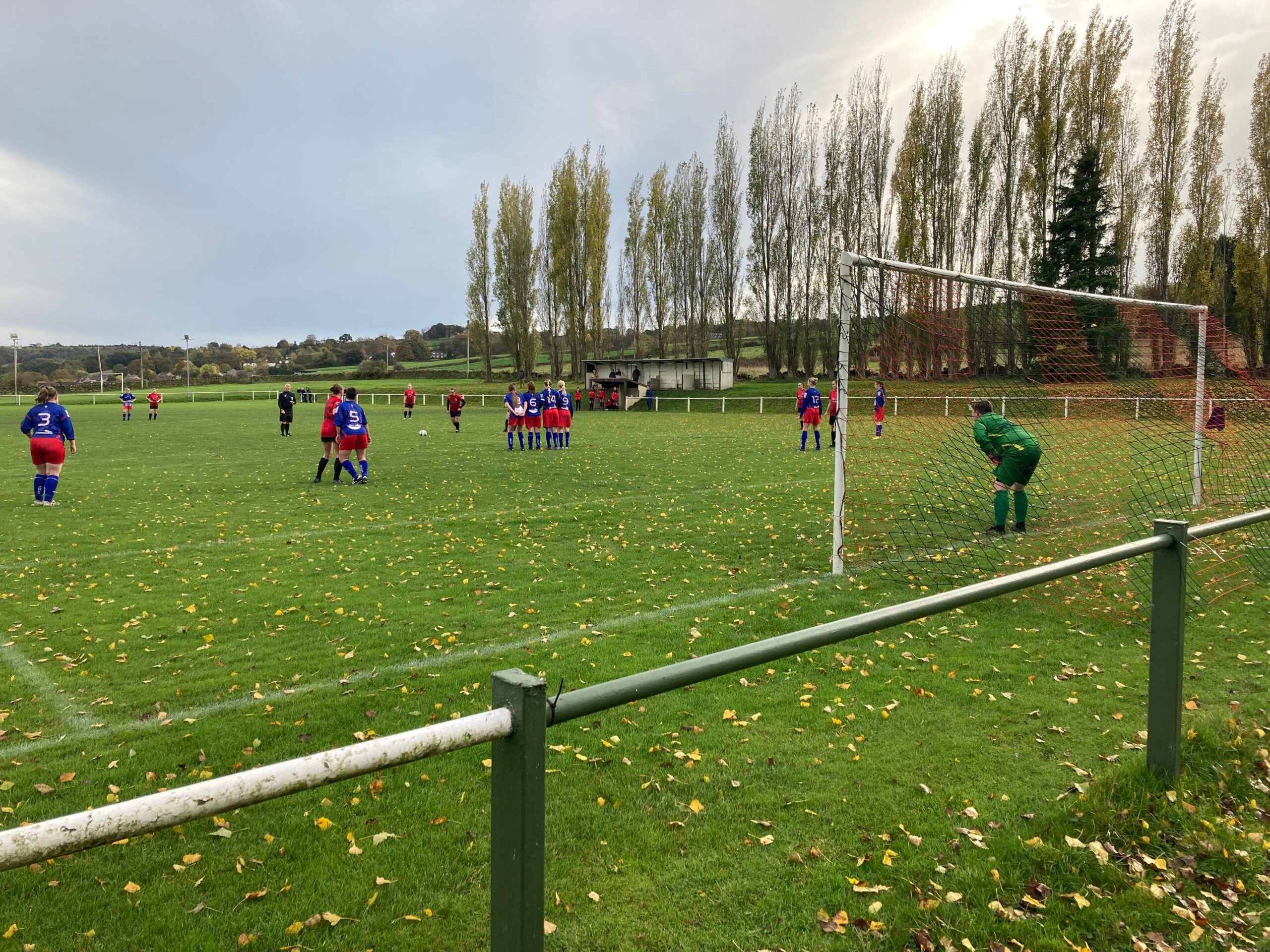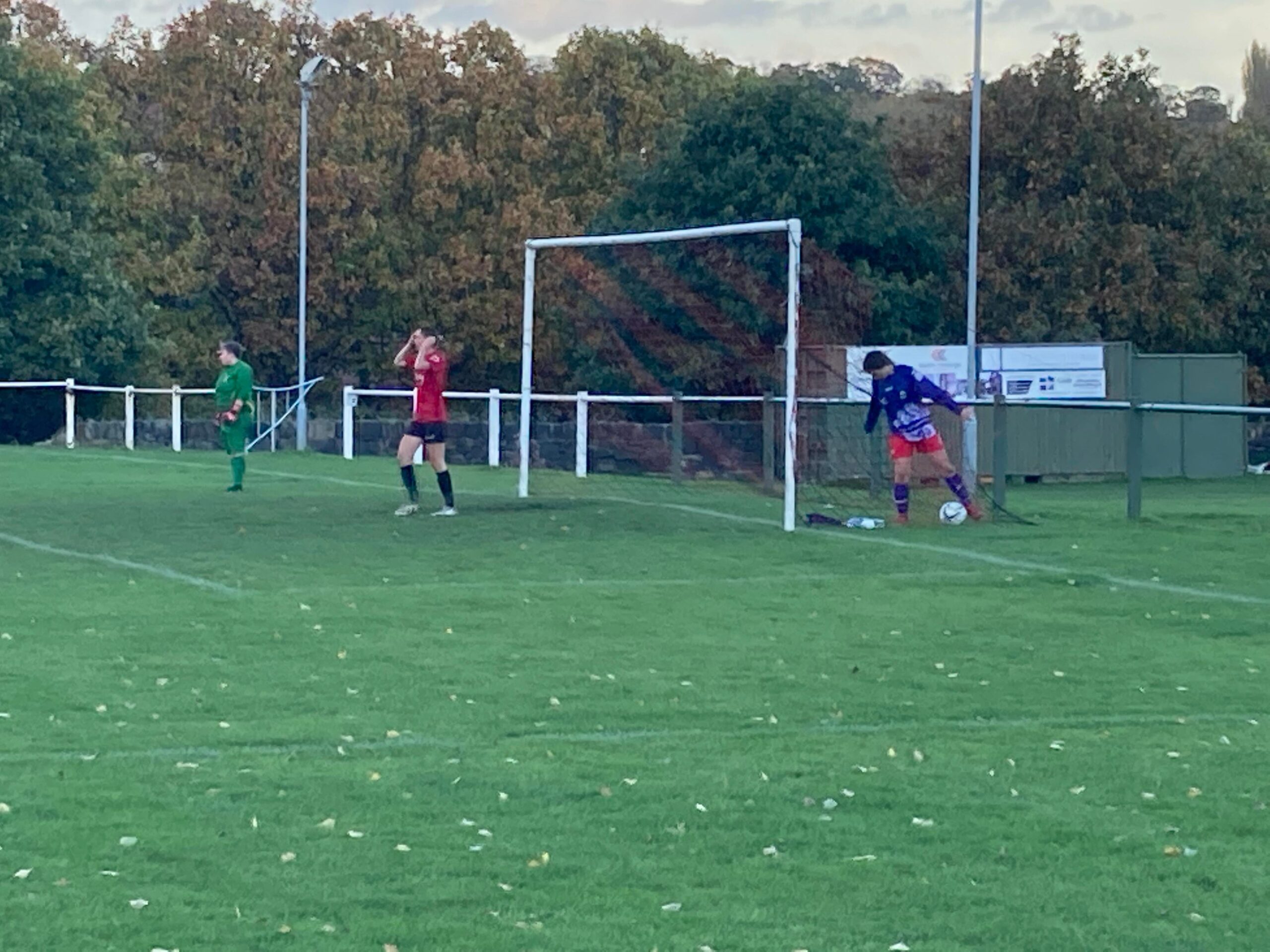 89th minute and it’s becoming very tense here! Lower Hopton play down the left, it’s played in, number 10 gets to it at the near post… She’s put it wide! That should’ve been the game there for Lower Hopton!