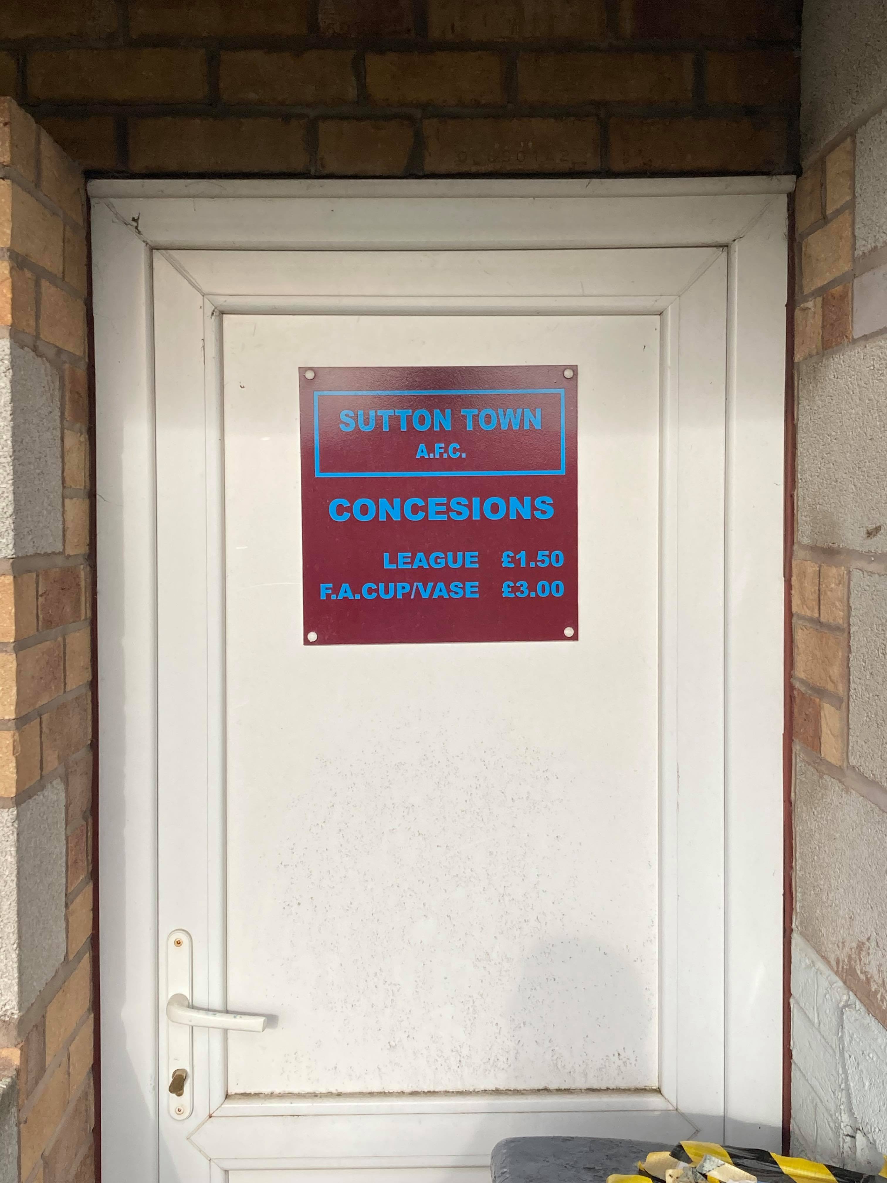 - The Ground: 4/10 – It’s a fairly standard ground, the stand behind the goal is good and it does have a bit of character with the old Sutton Town club colours around the gates to the pitch.