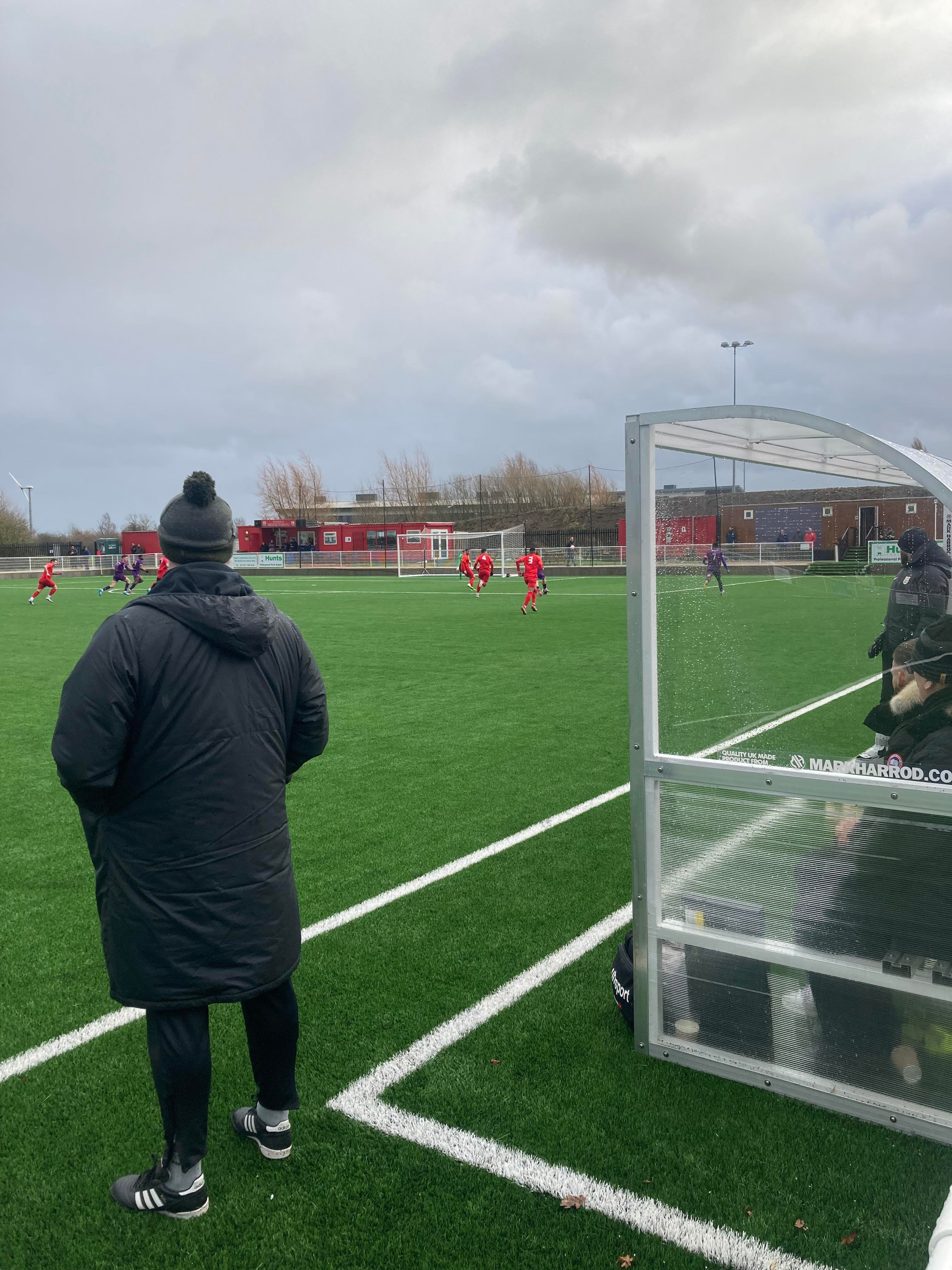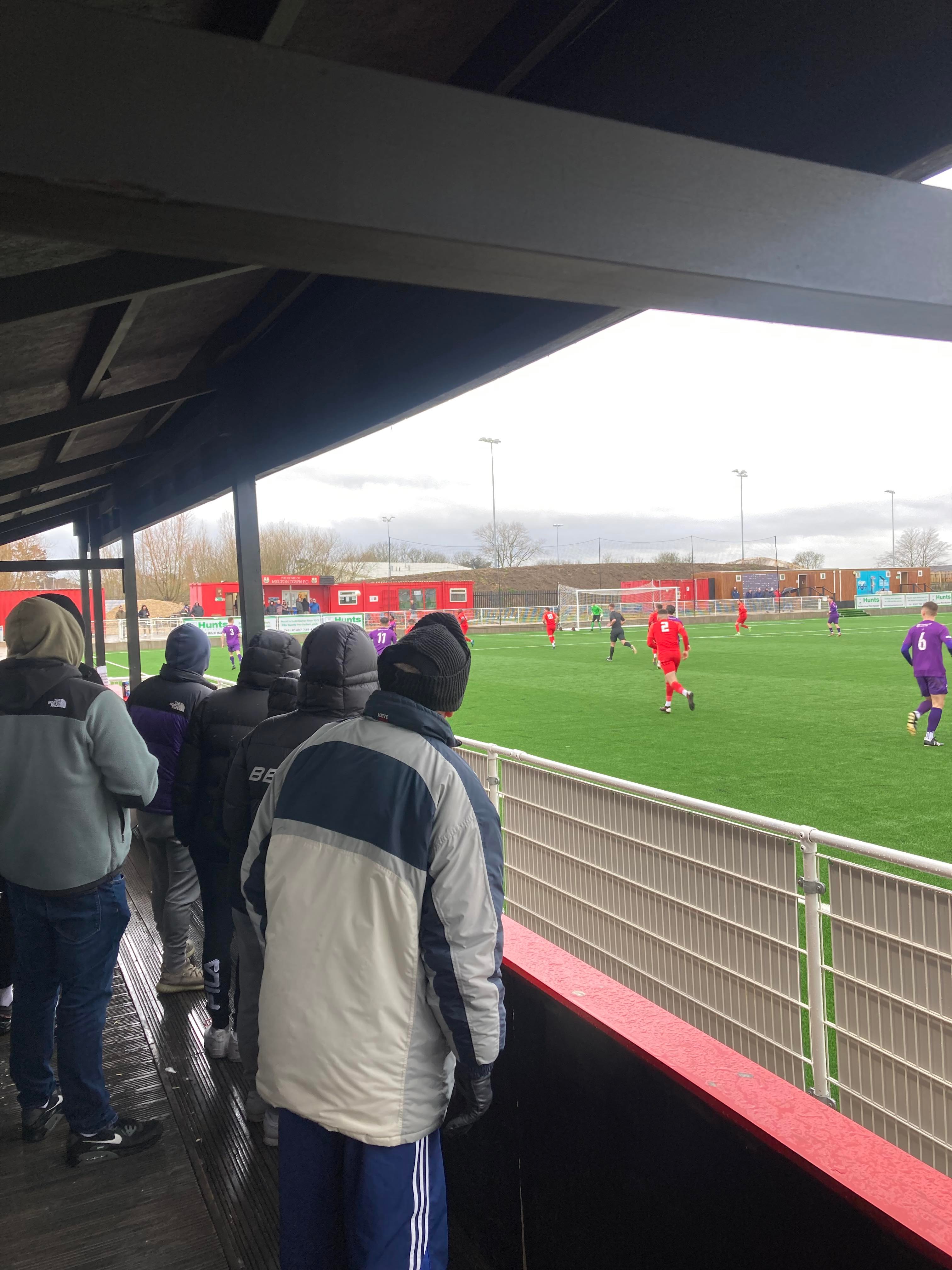 89th minute and Loughborough have a free kick on the edge of the box to the left side now, Finlay Brennan crosses it in, it’s Fadahunsi running in… He’s headed wide! Big chance to win it there for Loughborough! Into stoppage time now and Melton lump the ball forward towards the box, it’s towards number 20, he gets onto it in the box and he shoots on the turn… OH! Just wide! So close! That would be the final chance as the Referee blows for full time! What a game!! Let’s get out of this cold! It’s 1-1 at Coventry United, did we pick the right game? OH YES!!!