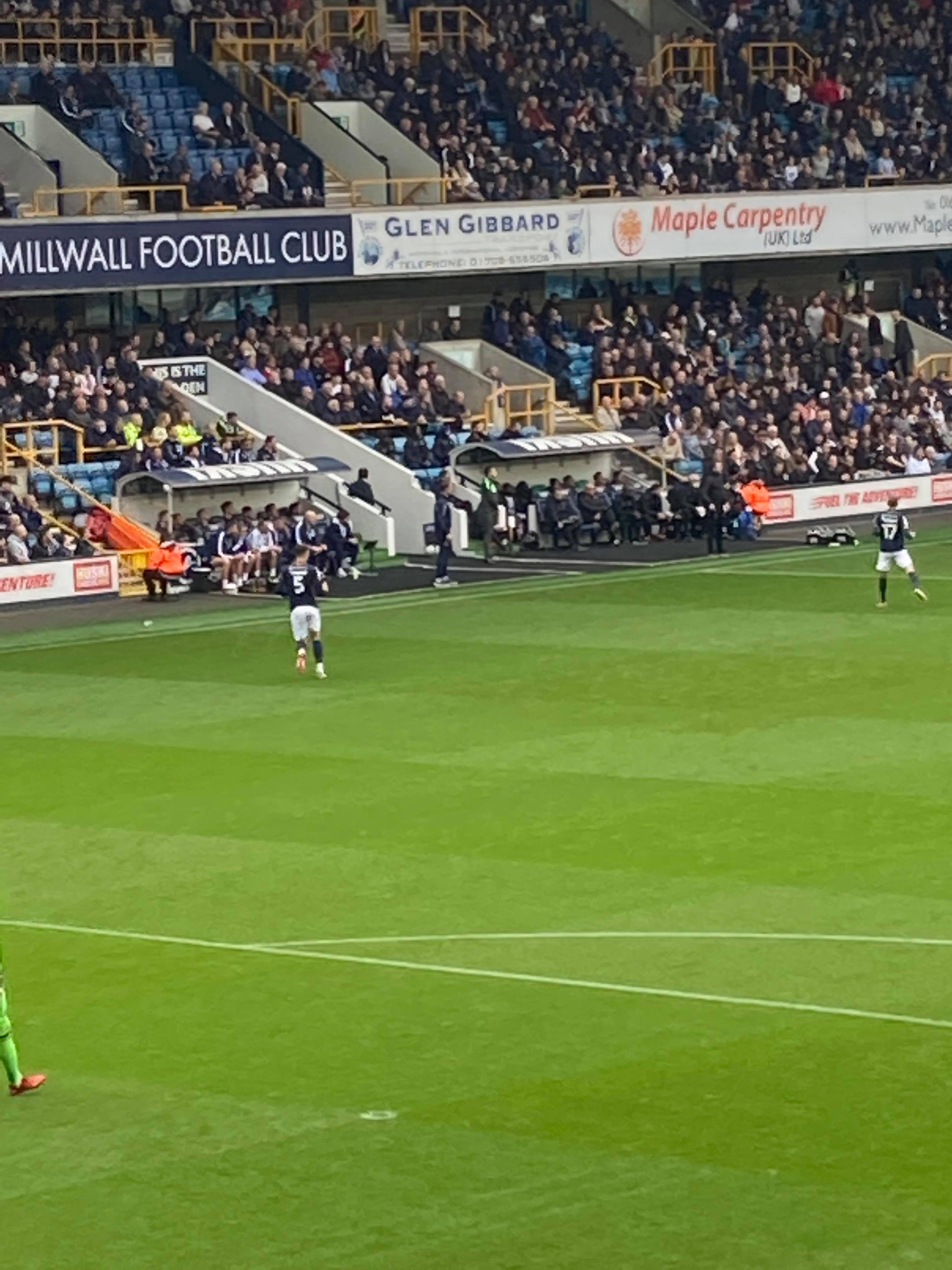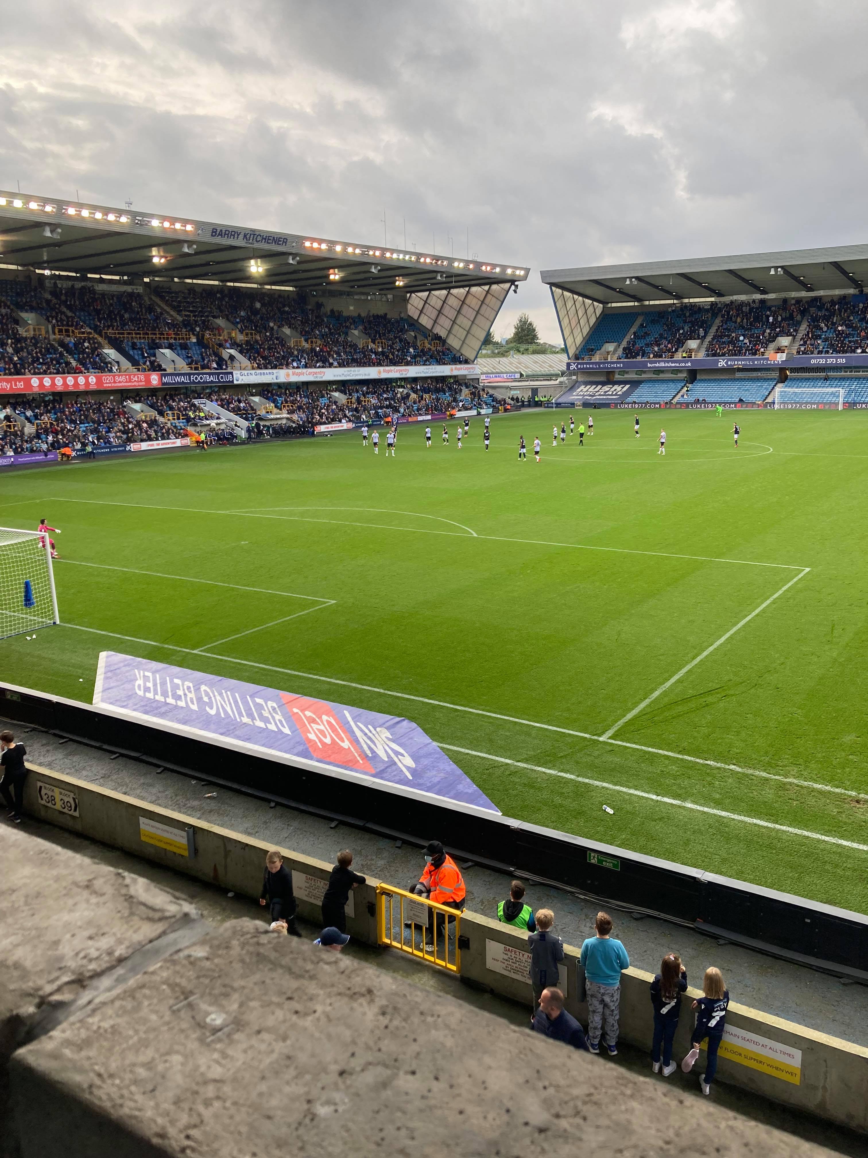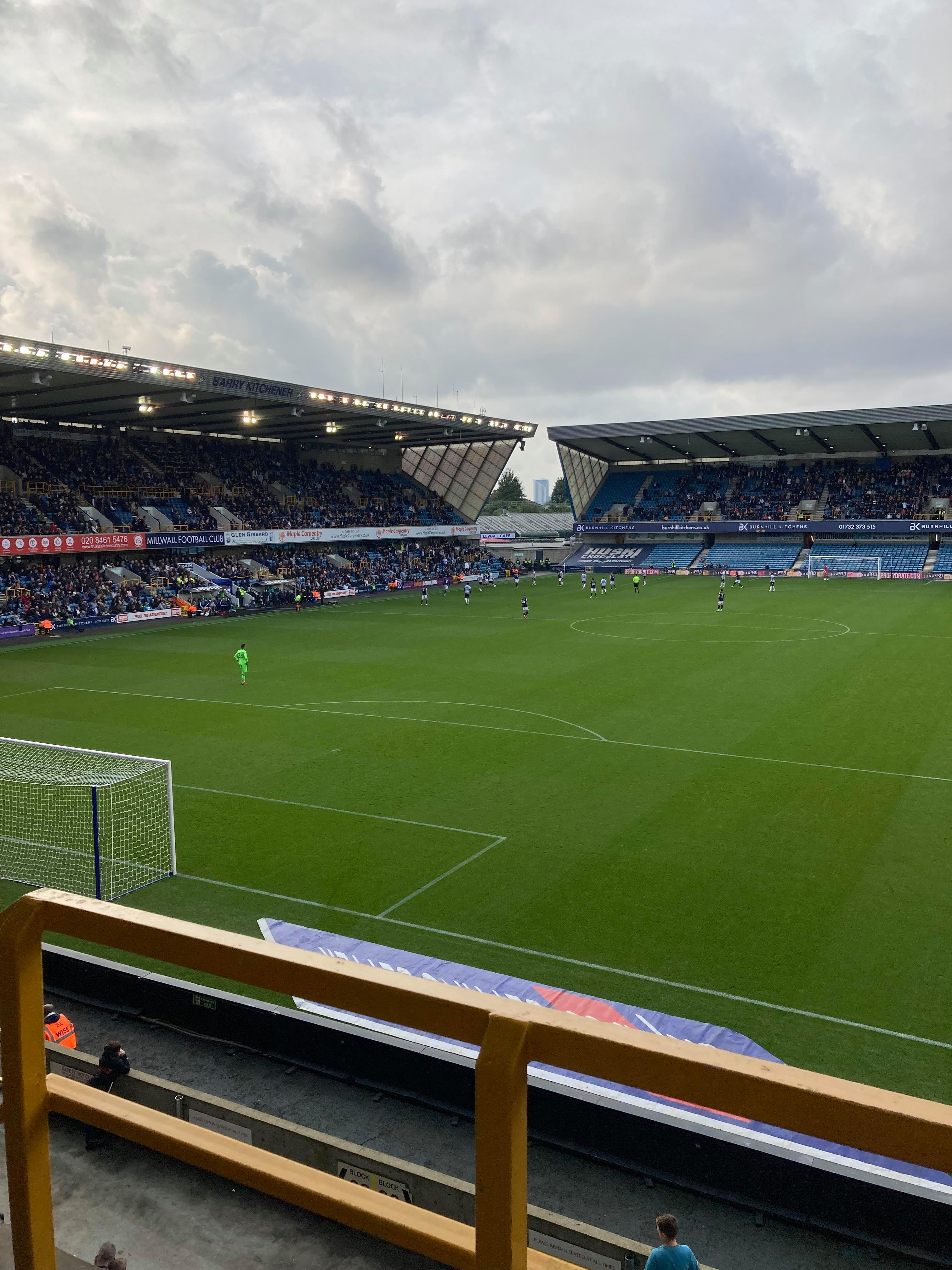 It’s 1pm in the afternoon and I have finally arrived at the Leandro Hotel in London just yards away from Tower Bridge!! But before all the sightseeing, I have a game to get to! Off to South Bermondsey I go! To the ticket collection point and in I go! £31 to watch this Championship tie! Champ! Out come the players and on comes the famous Millwall song! “Let ’em all come down TO THE DEEEEEEENNNNNNN!”