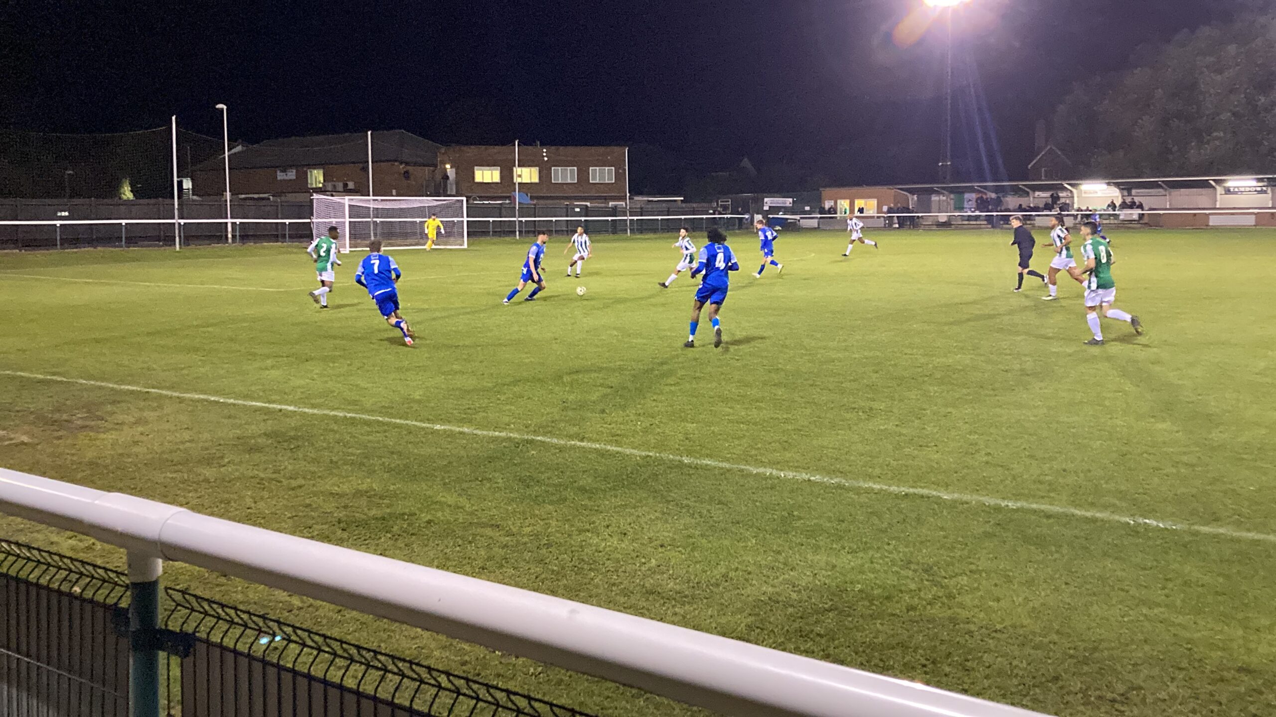 Into stoppage time and Potton lose the ball just outside their own box and it’s played out right, it’s played across the middle and here’s Meadows… He’s got another one! It’s all going to pot for Potton! 5-0! That’s how it stays at half time.