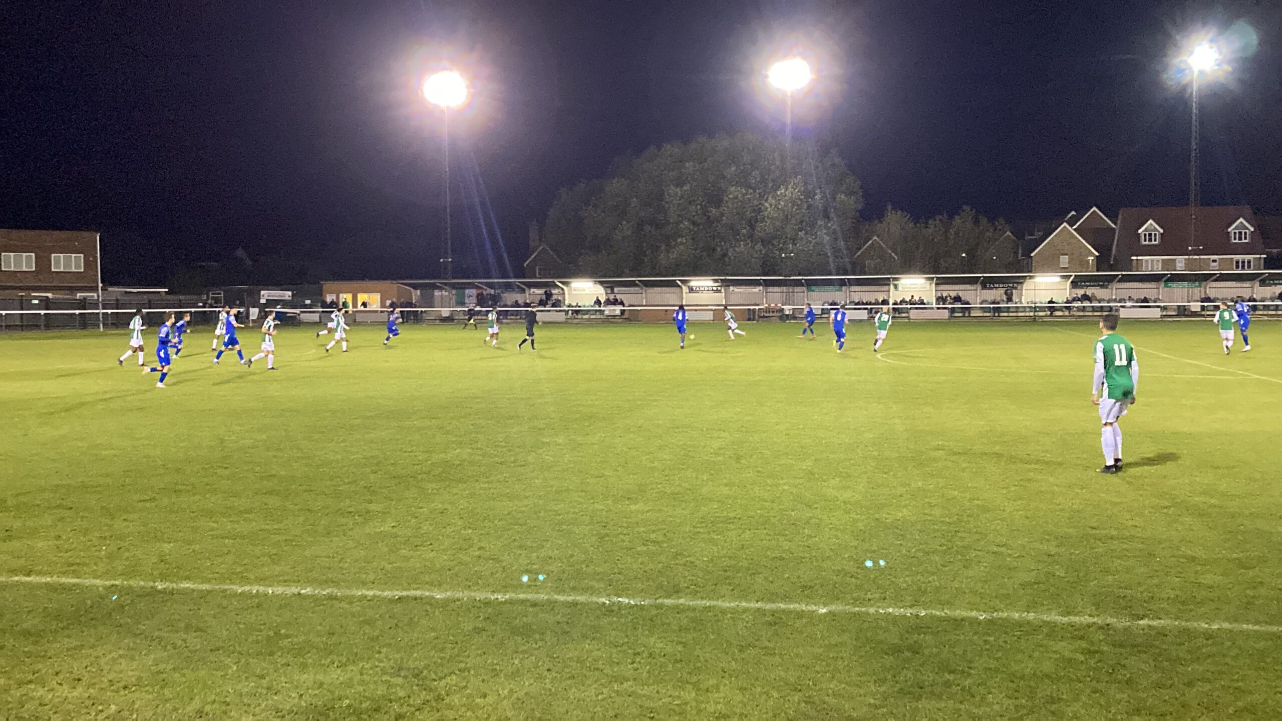 85th minute and MK play the ball over the top but Potton will get there and the defender plays it back to the keeper… Oh wait it’s a bit wayward… It’s going in… OH! It has! That just about sums up Potton’s night… 7-0!