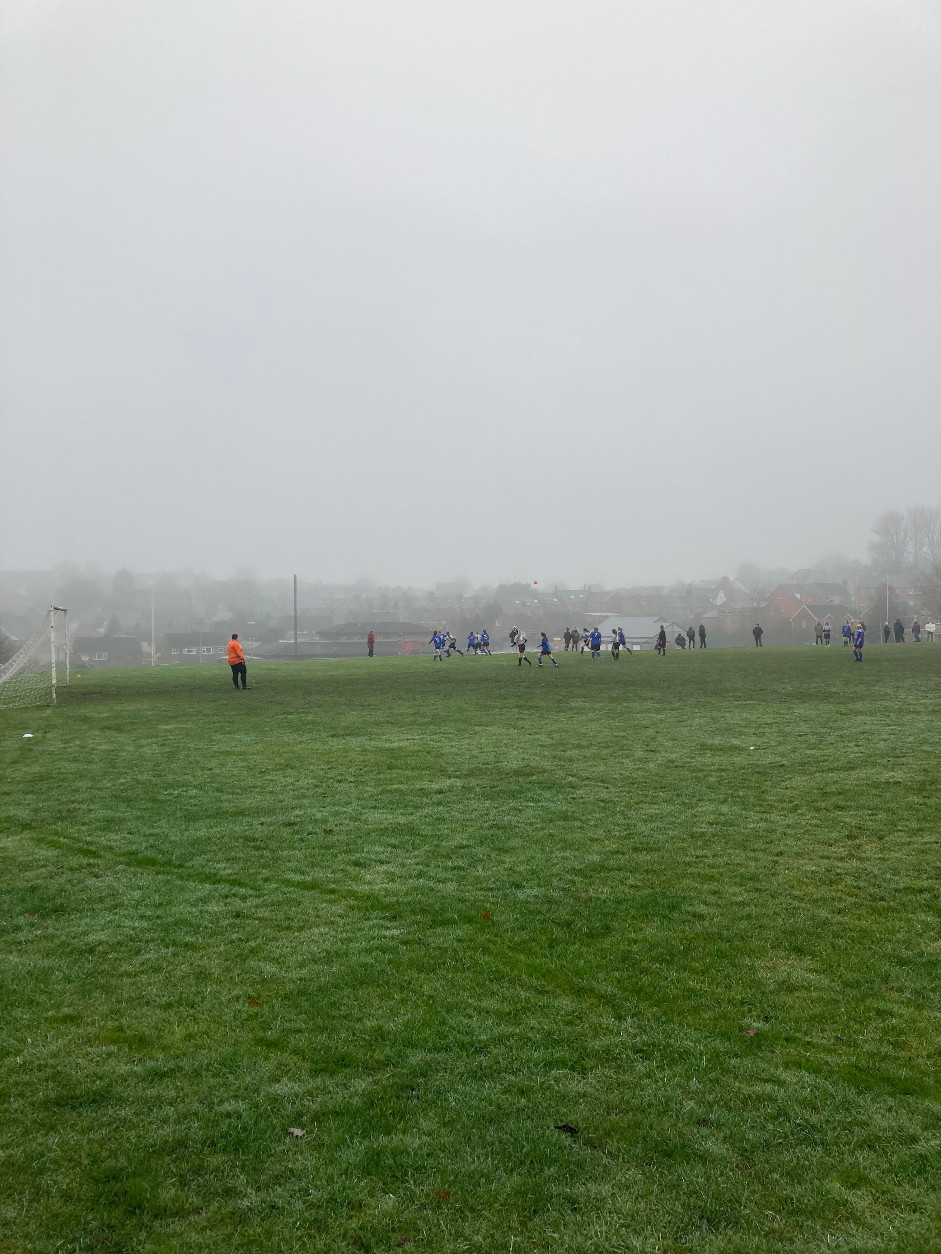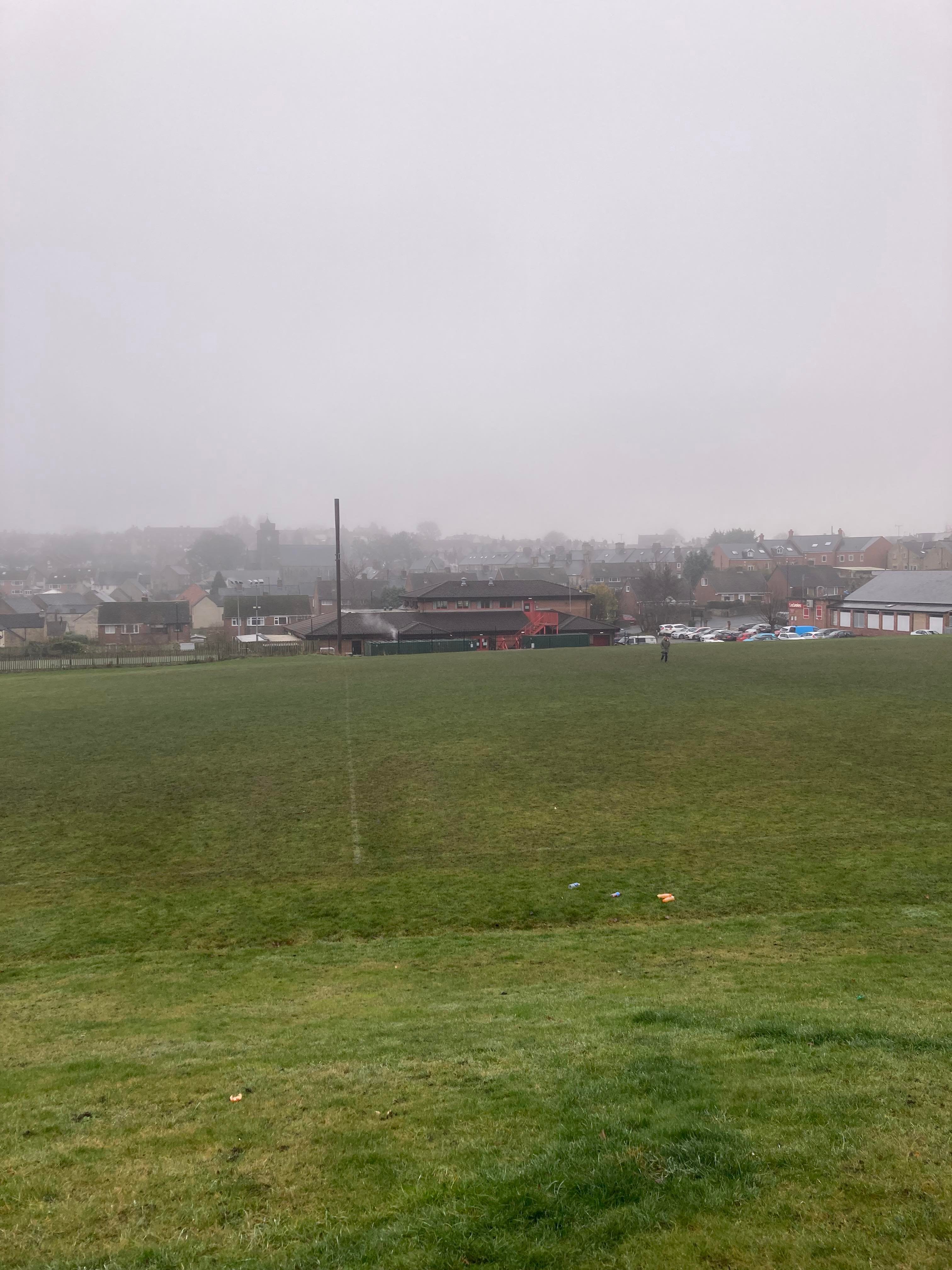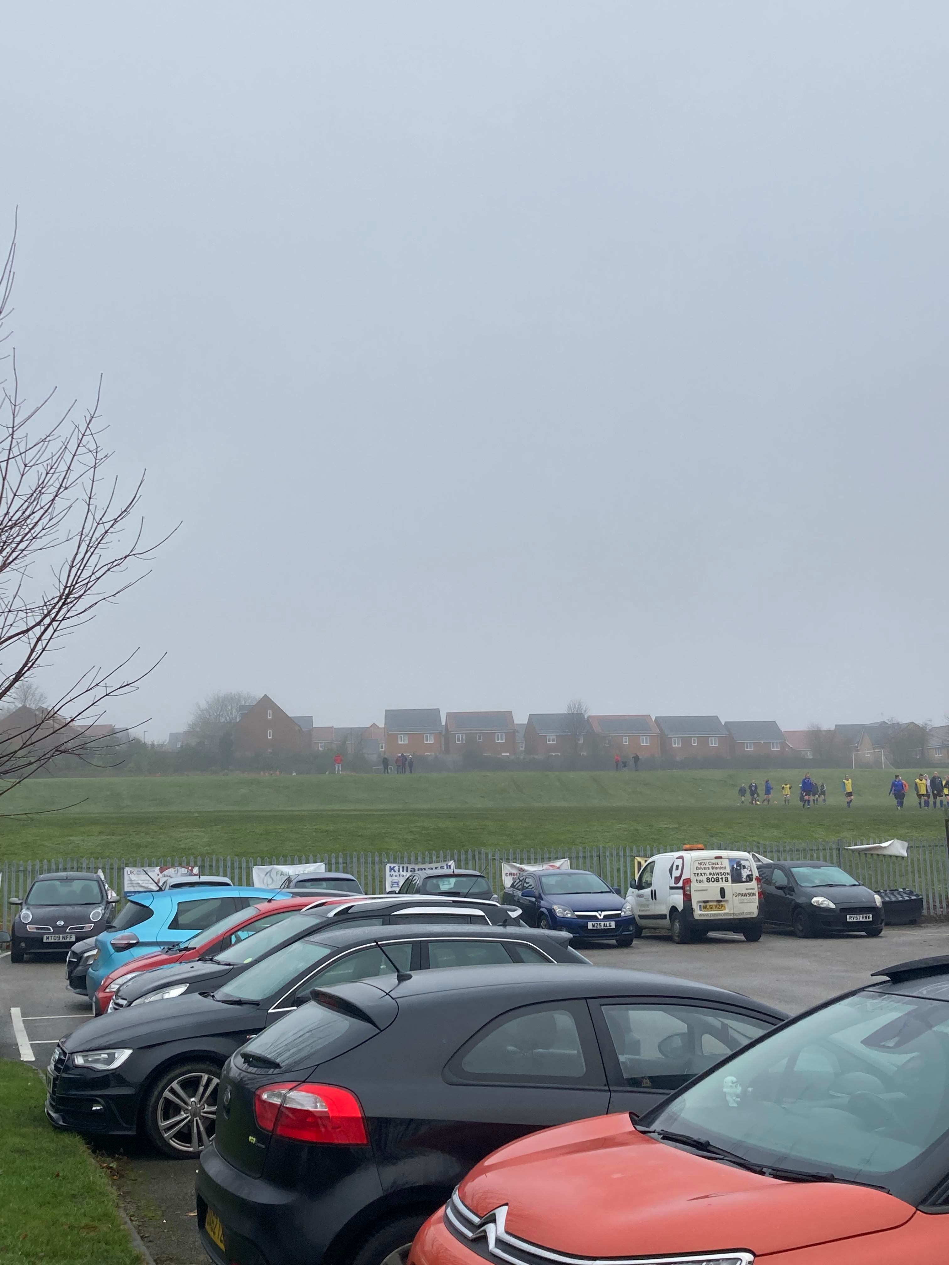 The short journey for me from Shirebrook to Mosborough and here I am! Free Entry here! Fab! Thankfully no fog on the pitch at the moment, but it is on the far side in the distance, let’s hope it doesn’t venture over here.