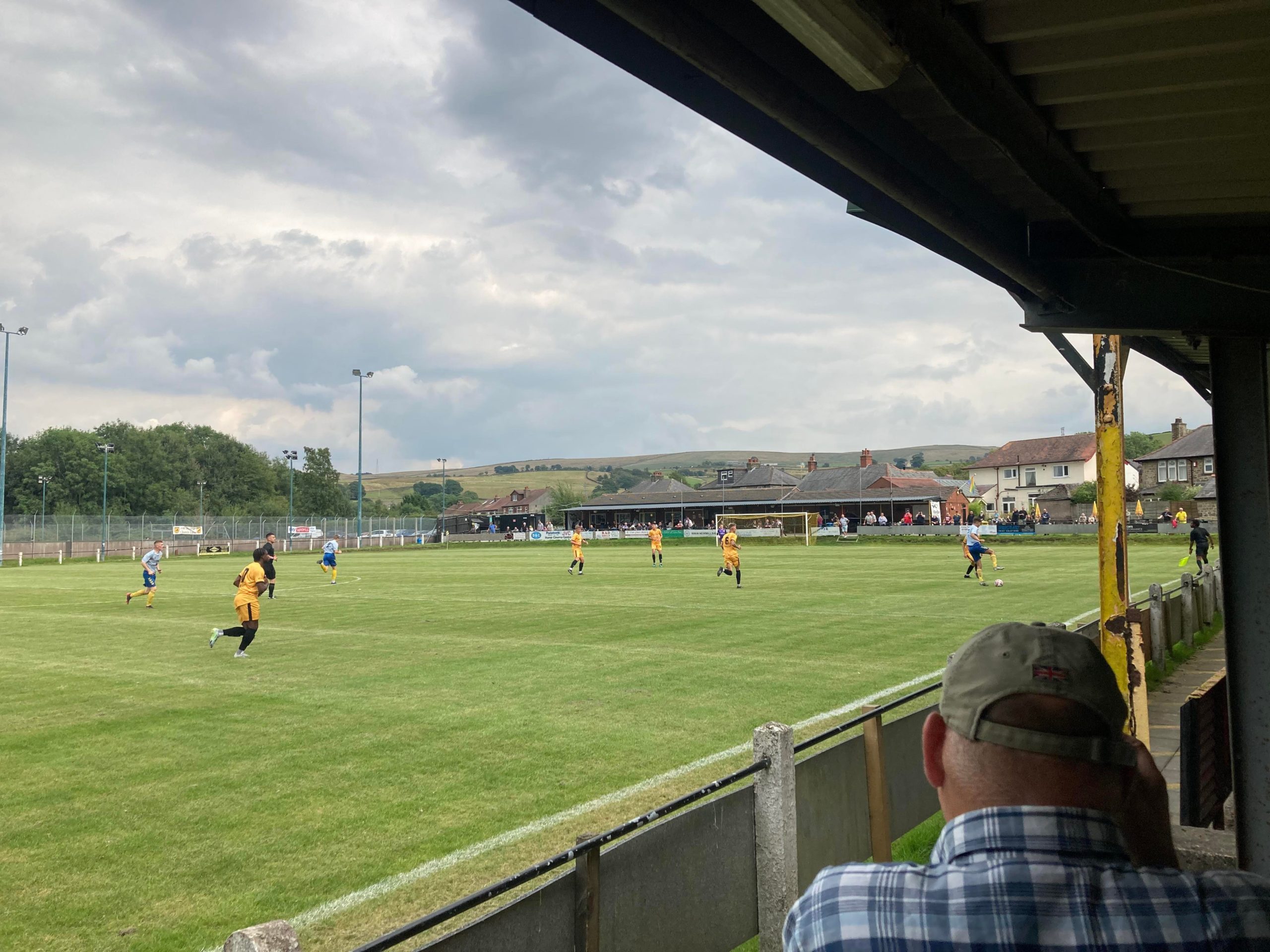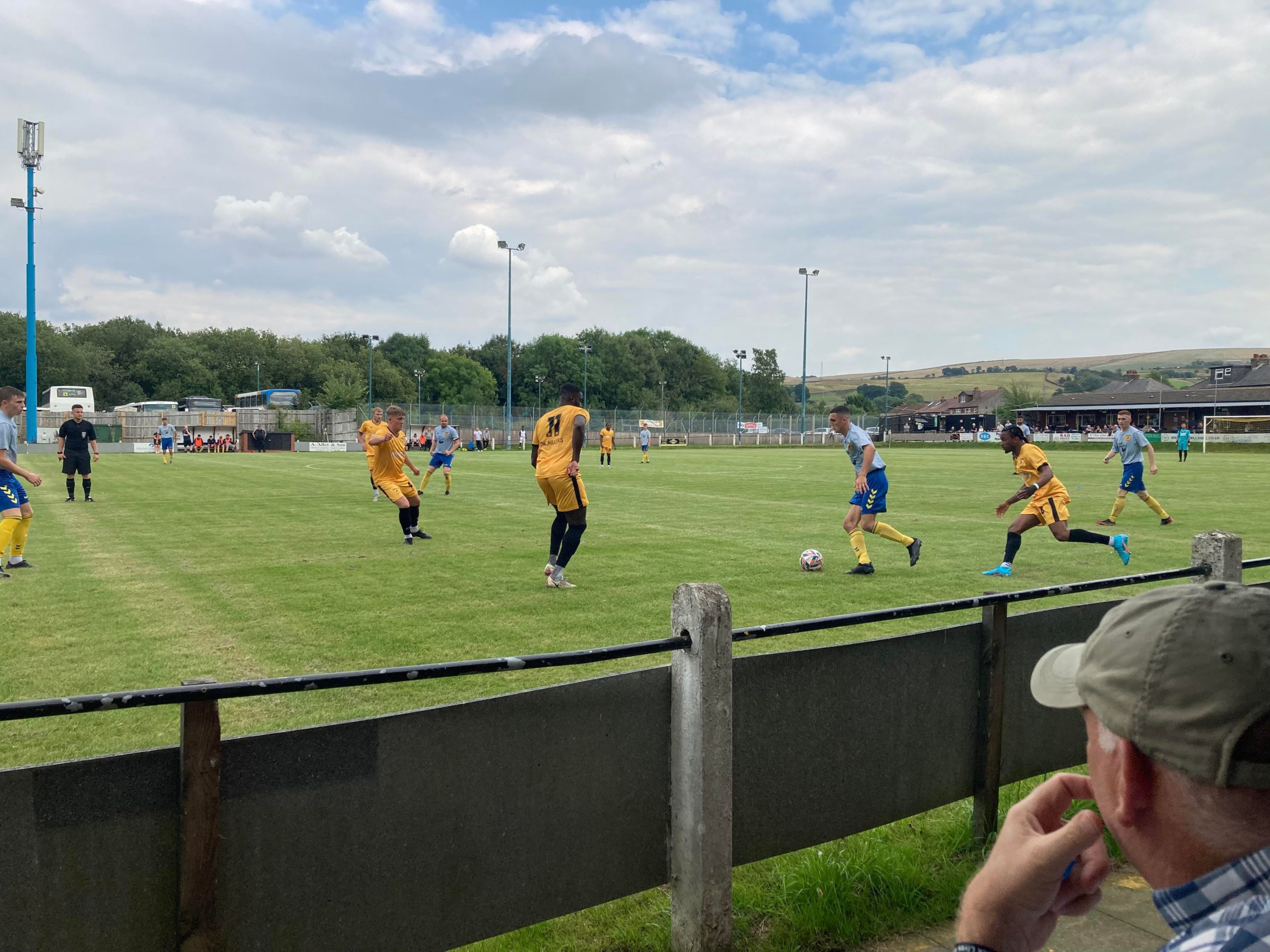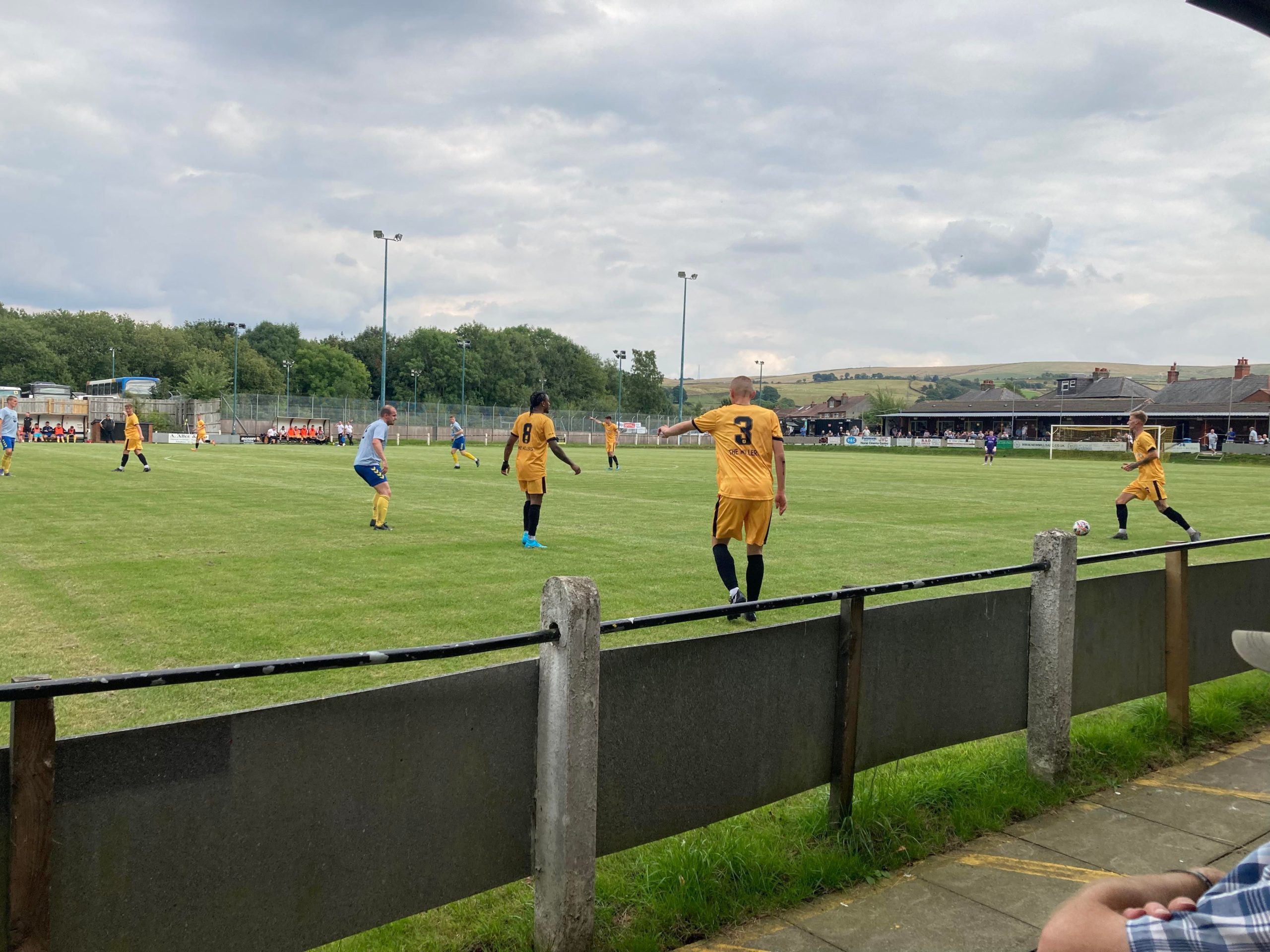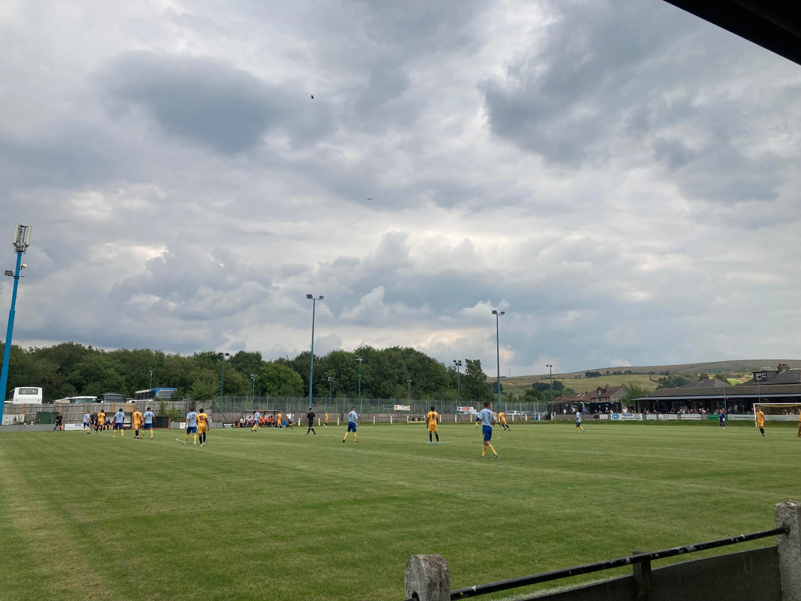 Kick Off… Both teams are wearing New Mills jerseys? Unfortunately Atherton have brought the wrong coloured strip meaning New Mills have lent them their away shirt… Oh non league! At least the Atherton kit man will have less washing!