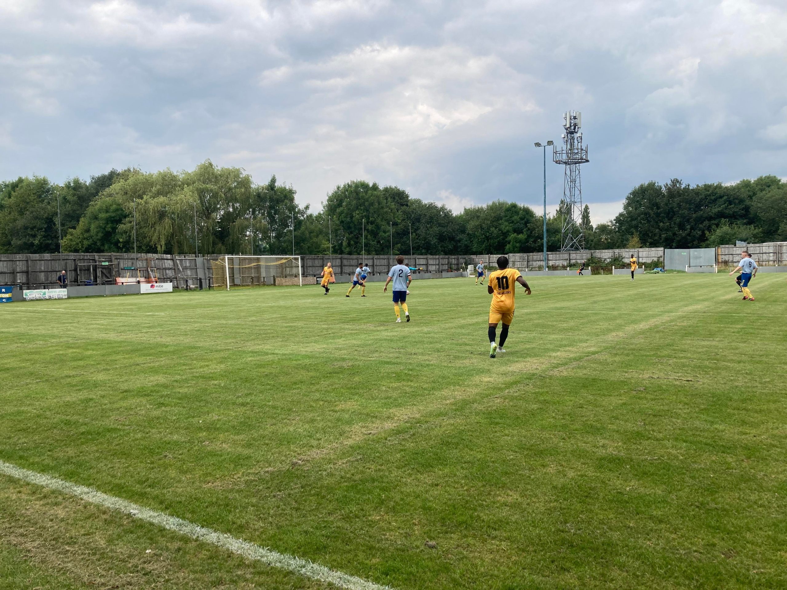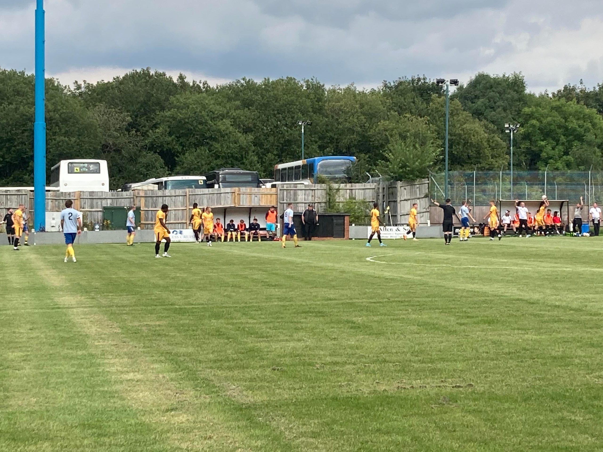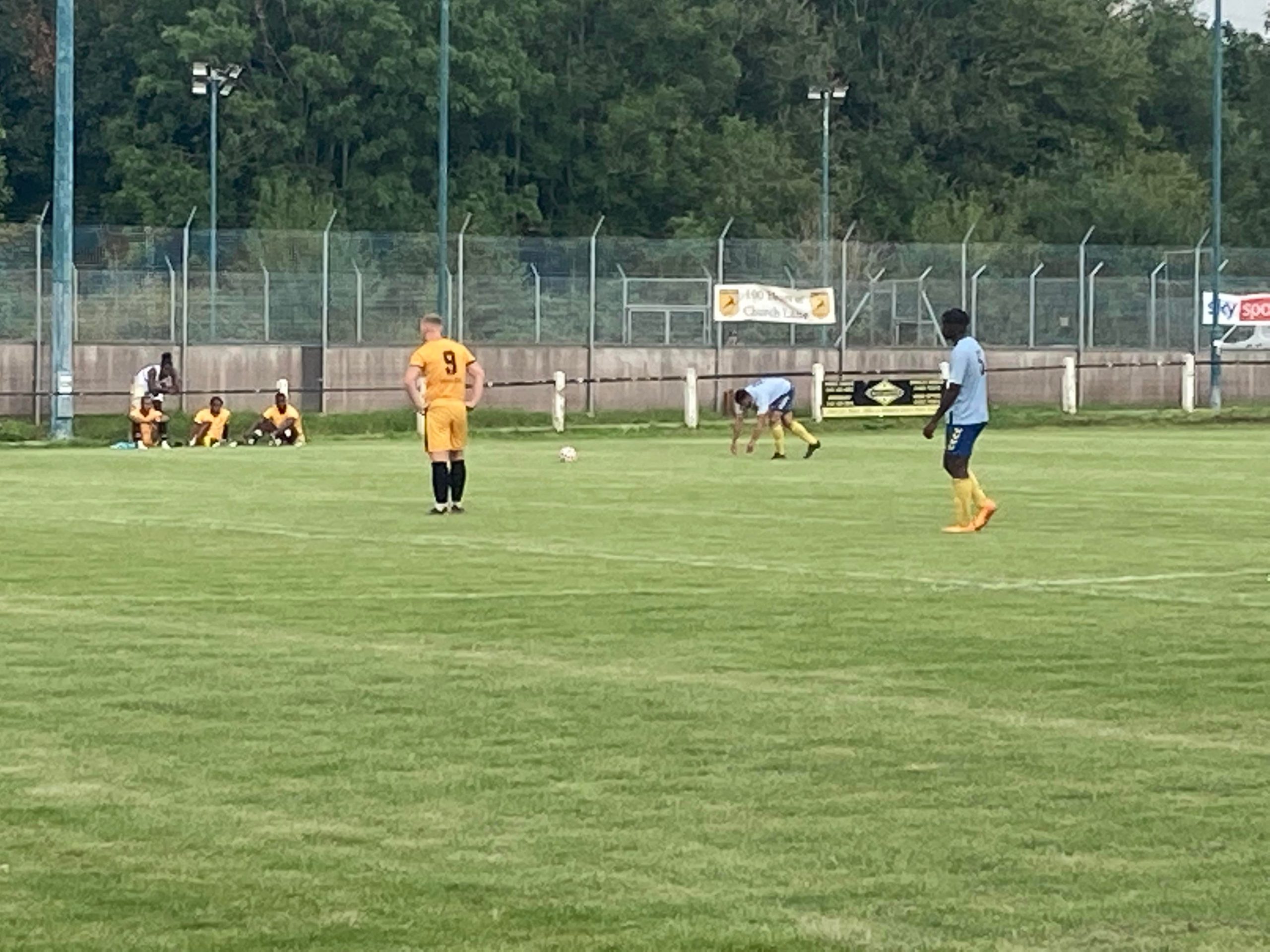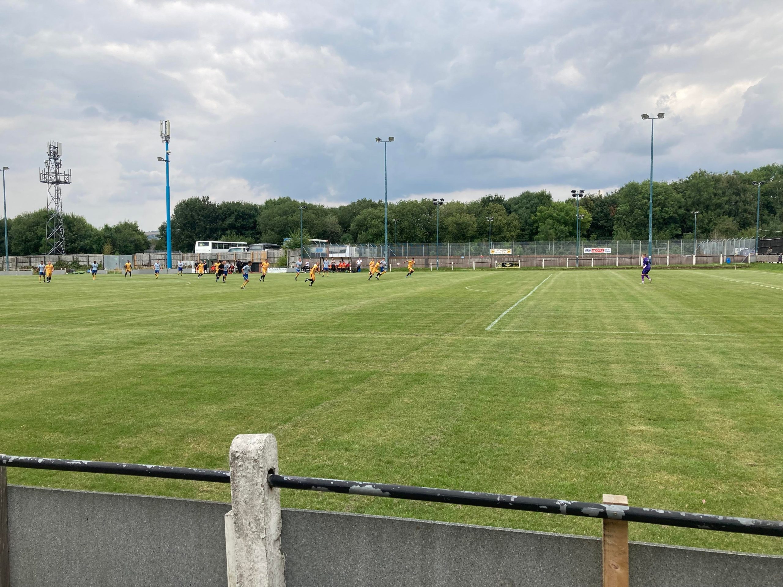 Kick Off… Both teams are wearing New Mills jerseys? Unfortunately Atherton have brought the wrong coloured strip meaning New Mills have lent them their away shirt… Oh non league! At least the Atherton kit man will have less washing!