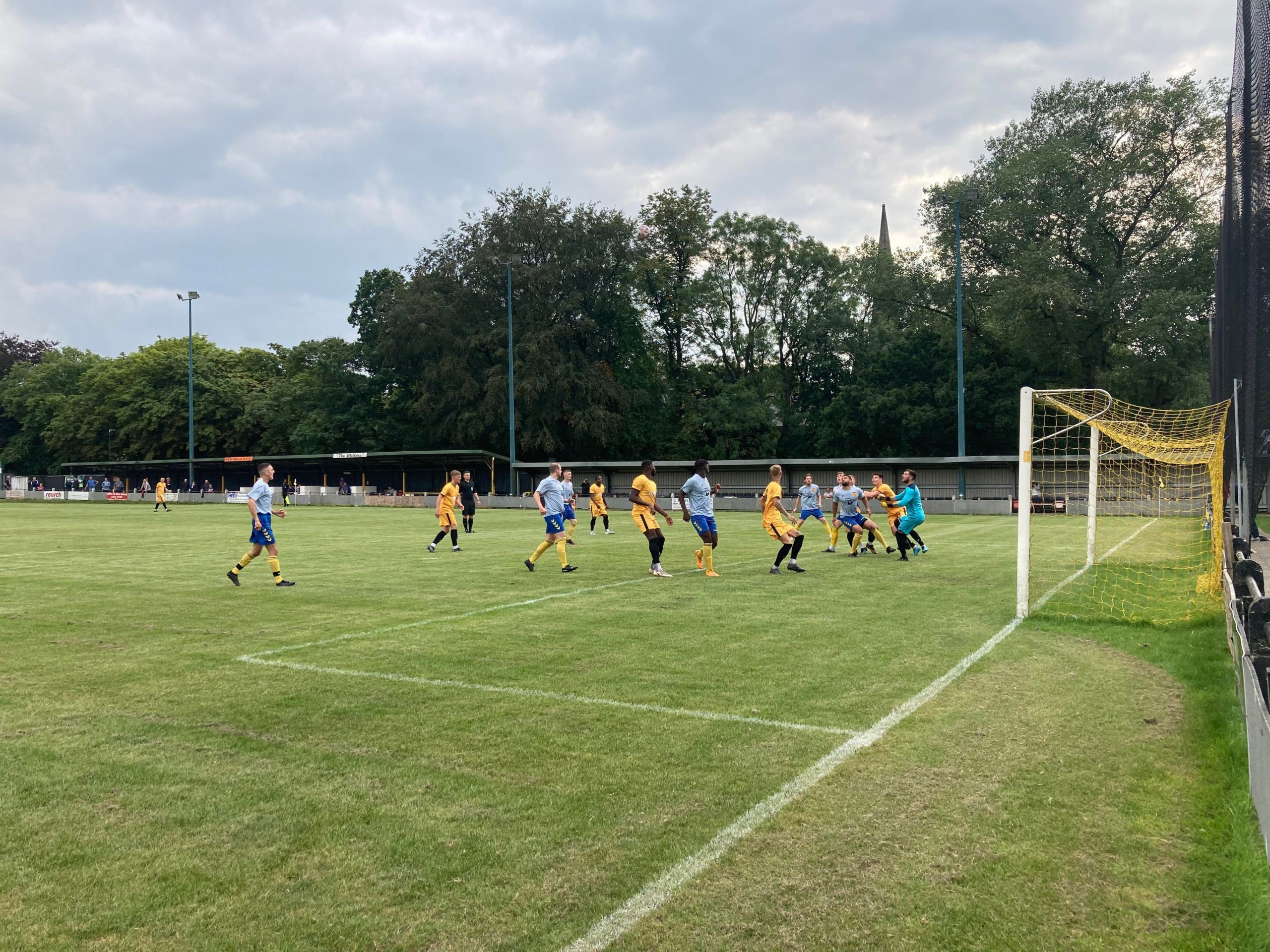 69th minute and Atherton have a corner, here it comes… It’s headed up in the air… It comes down to Liam Beech and he smashes it… Into the back of the net!! Atherton are level! 1-1!