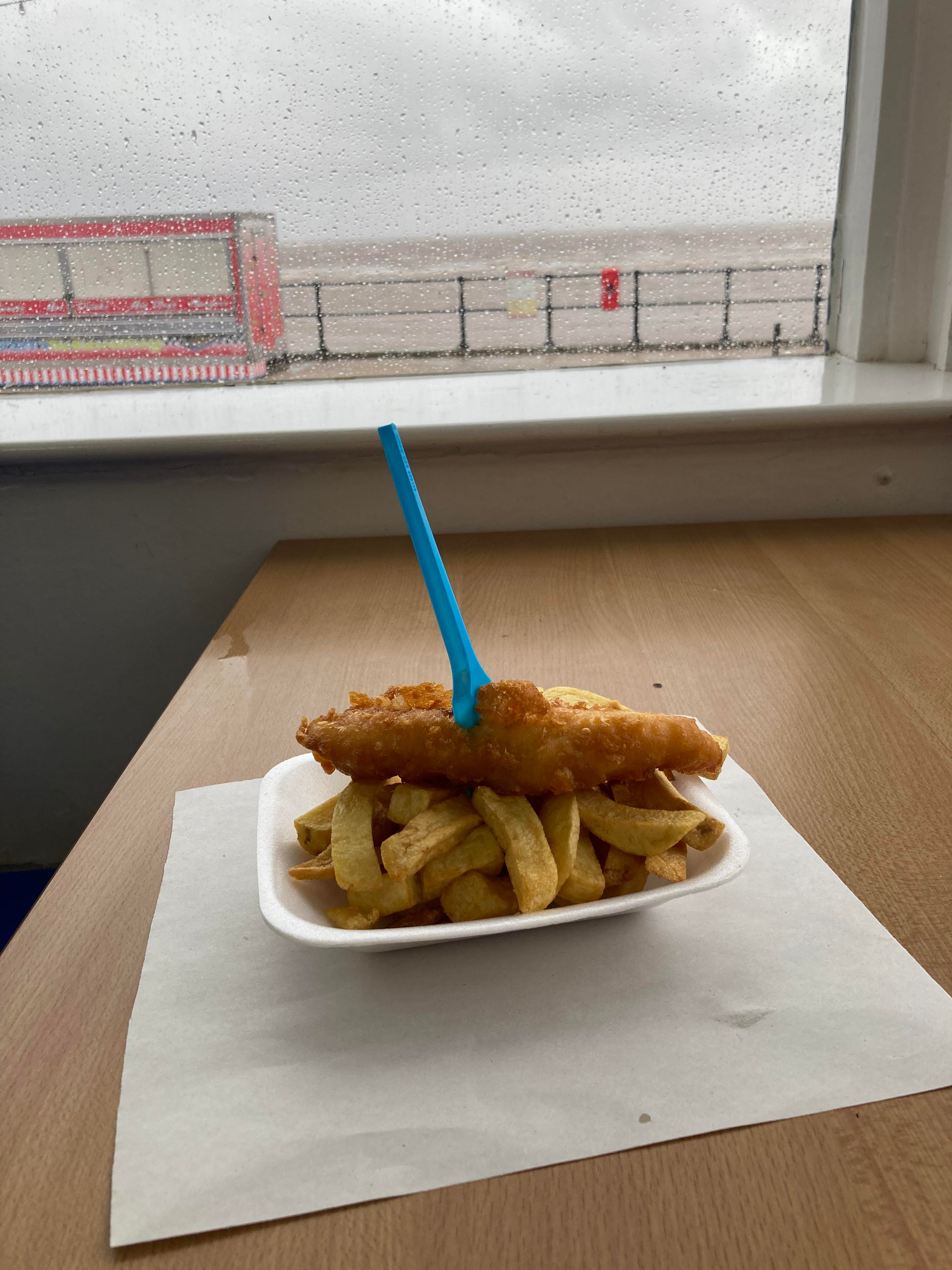 Back to Cleethorpes station I go… Is this the day I finally miss a Saturday? Cleethorpes Town? Off! Grimsby Borough? Off! It’s not looking good… It could be the end… After a quick look on Futbology, there is only one game I can get to now… Notts County Vs Dagenham & Redbridge! It’s there or nowhere so back to Sheffield I go! But with time to kill, I can’t not try a Fish & Chips whilst here in Cleethorpes! Here I am at the shop next to the station! Absolutely delicious!! They’re not wrong when they say it’s good here!! Now for a quick drink in the station bar before the train gets here.