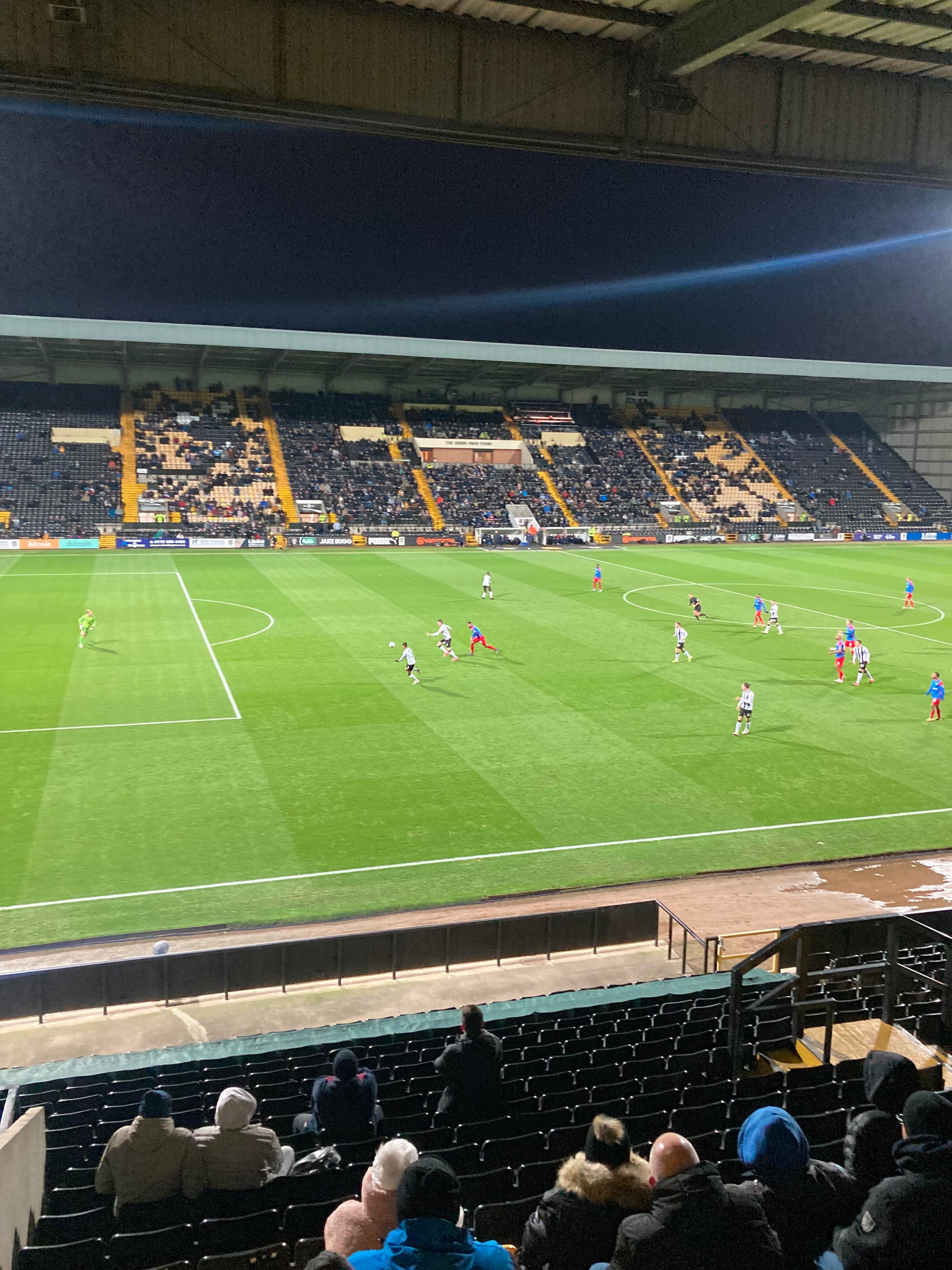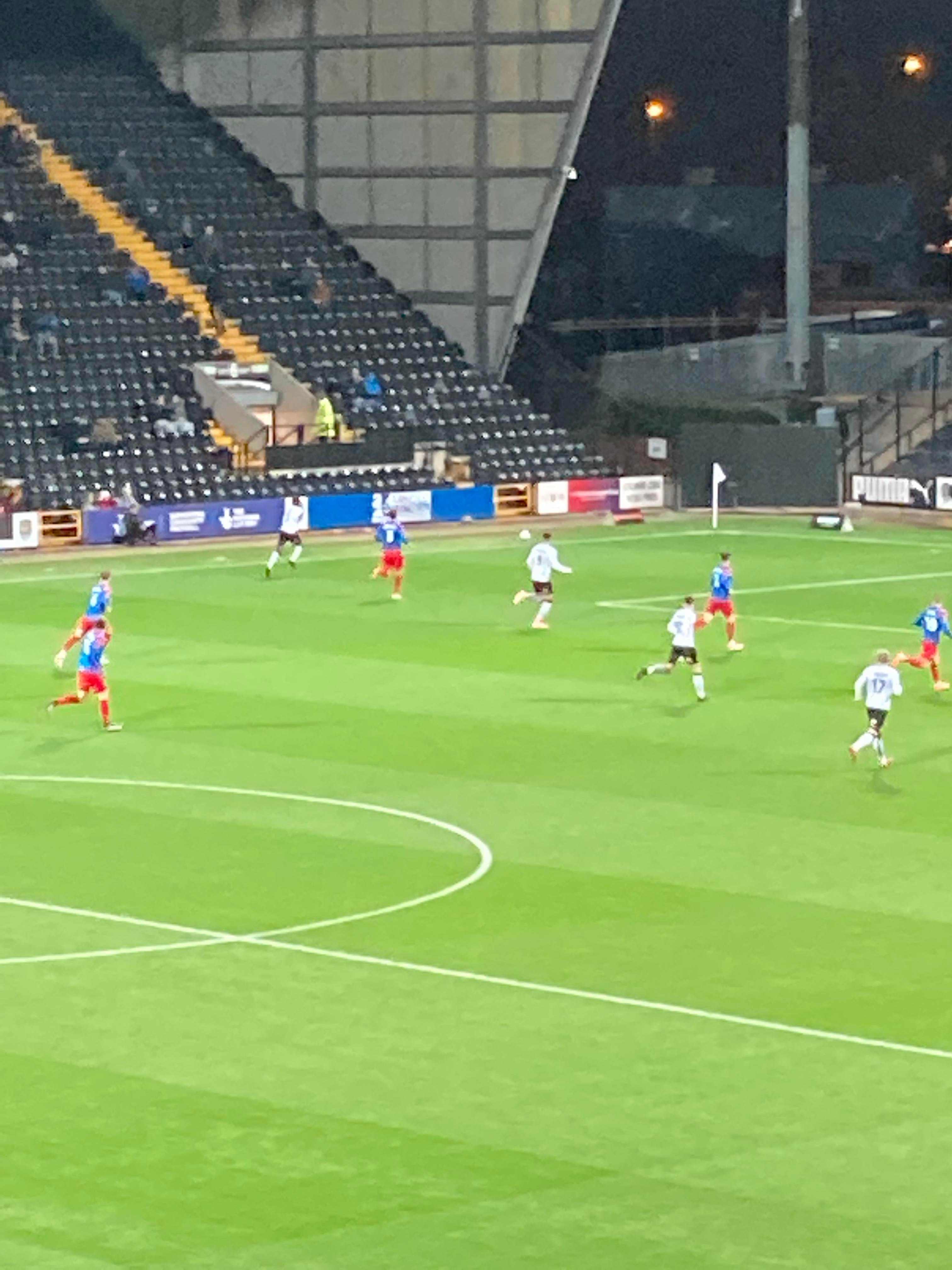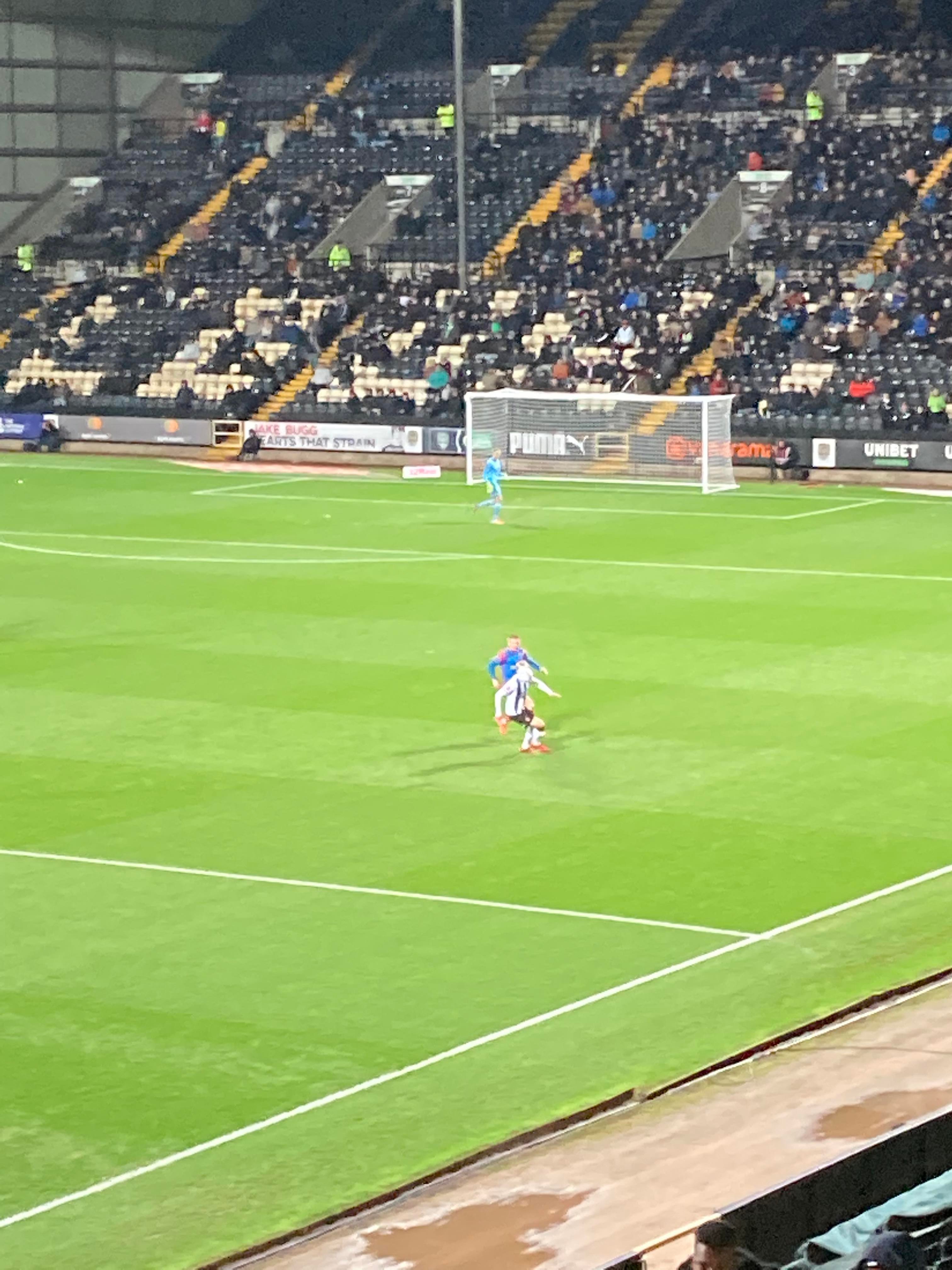It’s a slow half so far this half with both teams not really showing any signs of breaking each other down in the final third. 63rd minute and County come forward down the right wing again, crossed in, Ruben Rodrigues with a free header… OH! He’s put it wide! Sitter! He should’ve hit the target there surely!