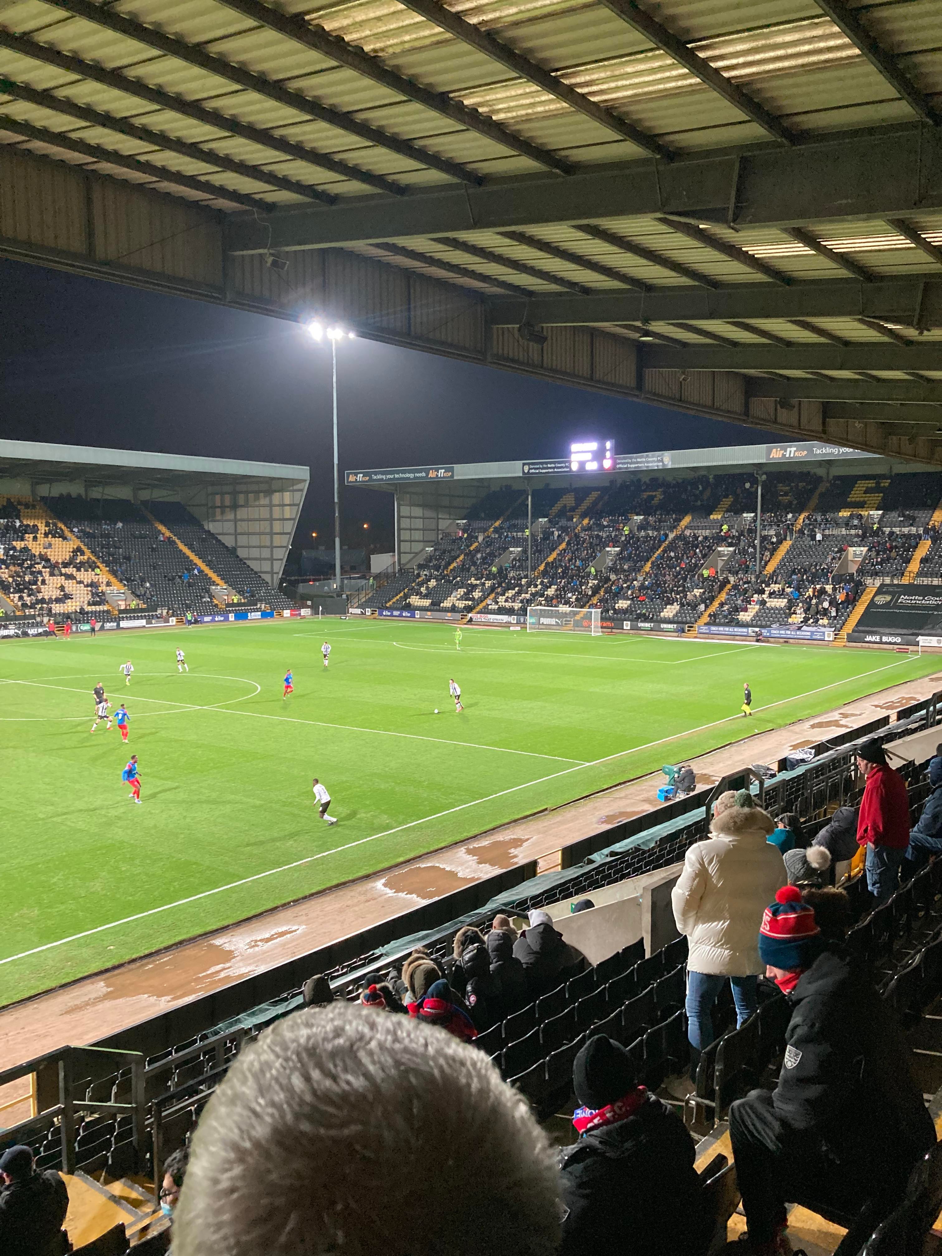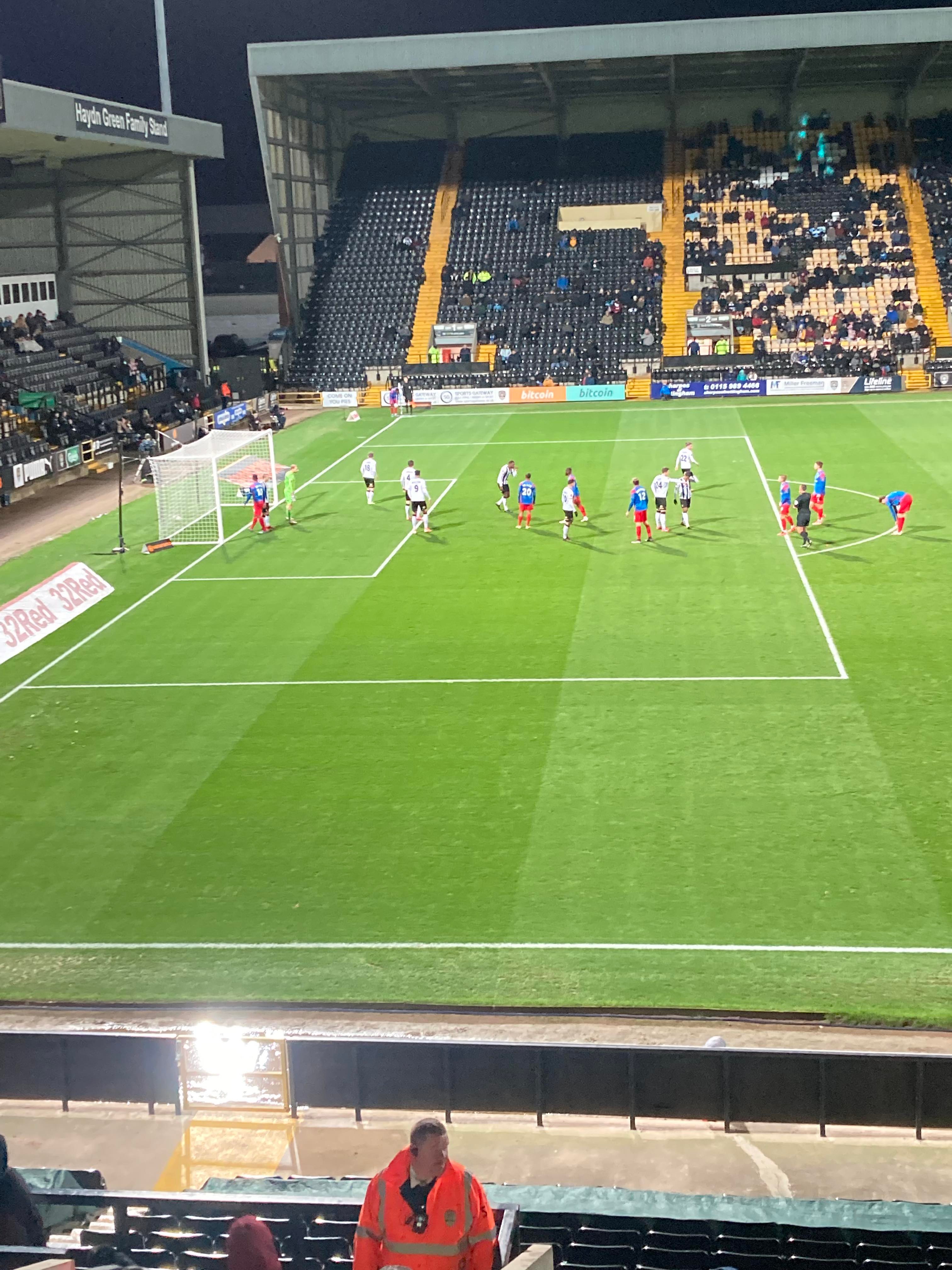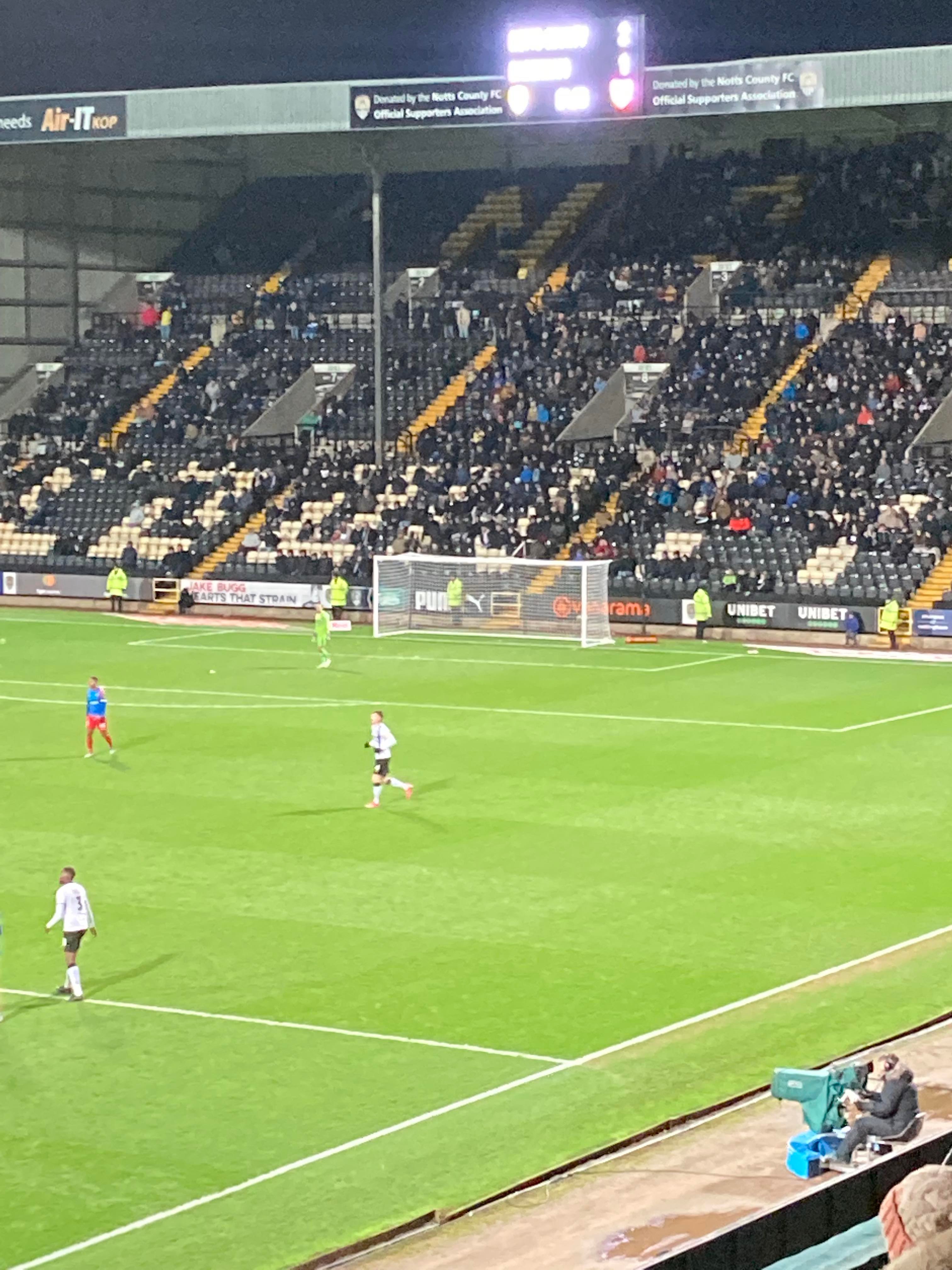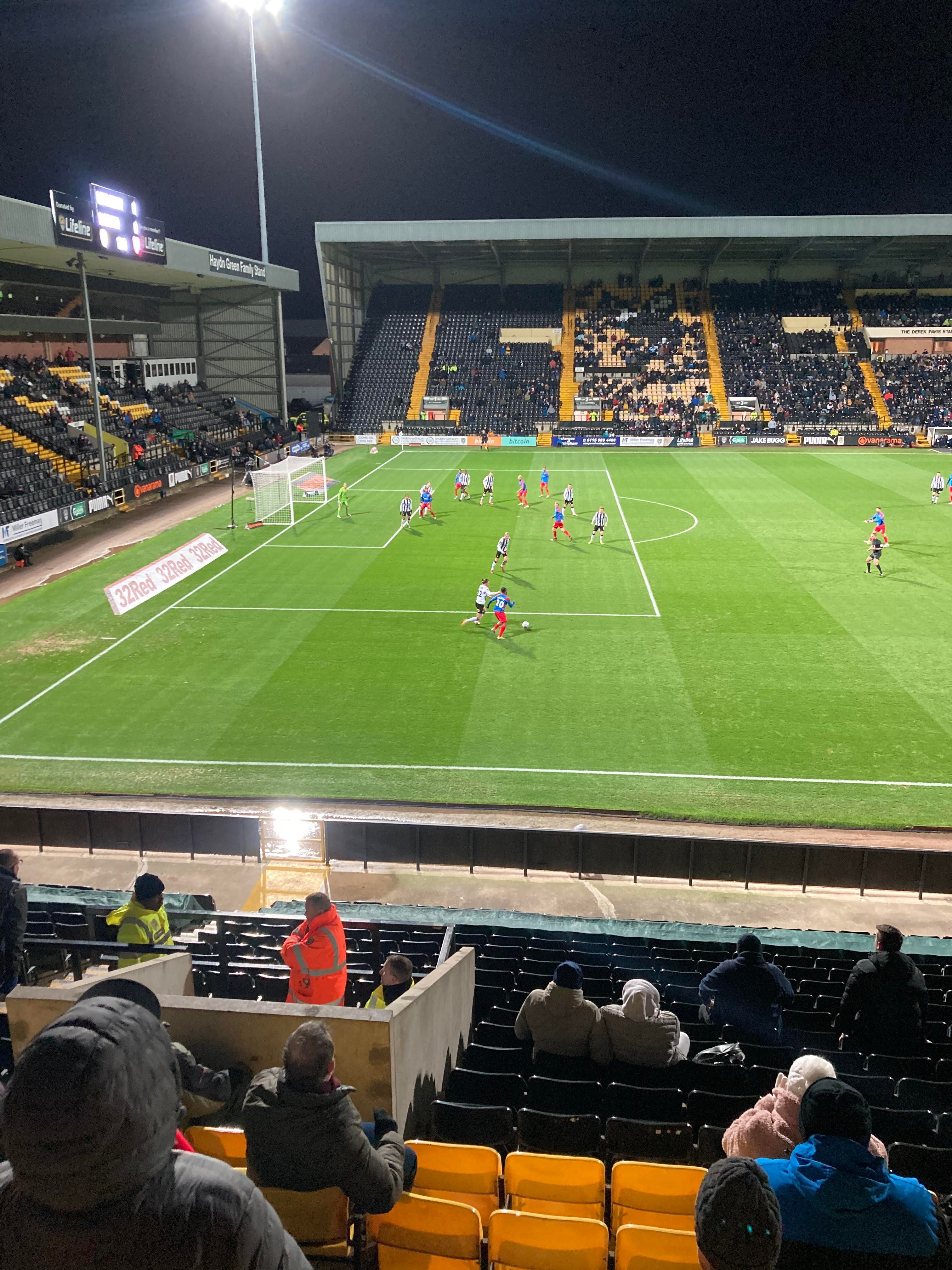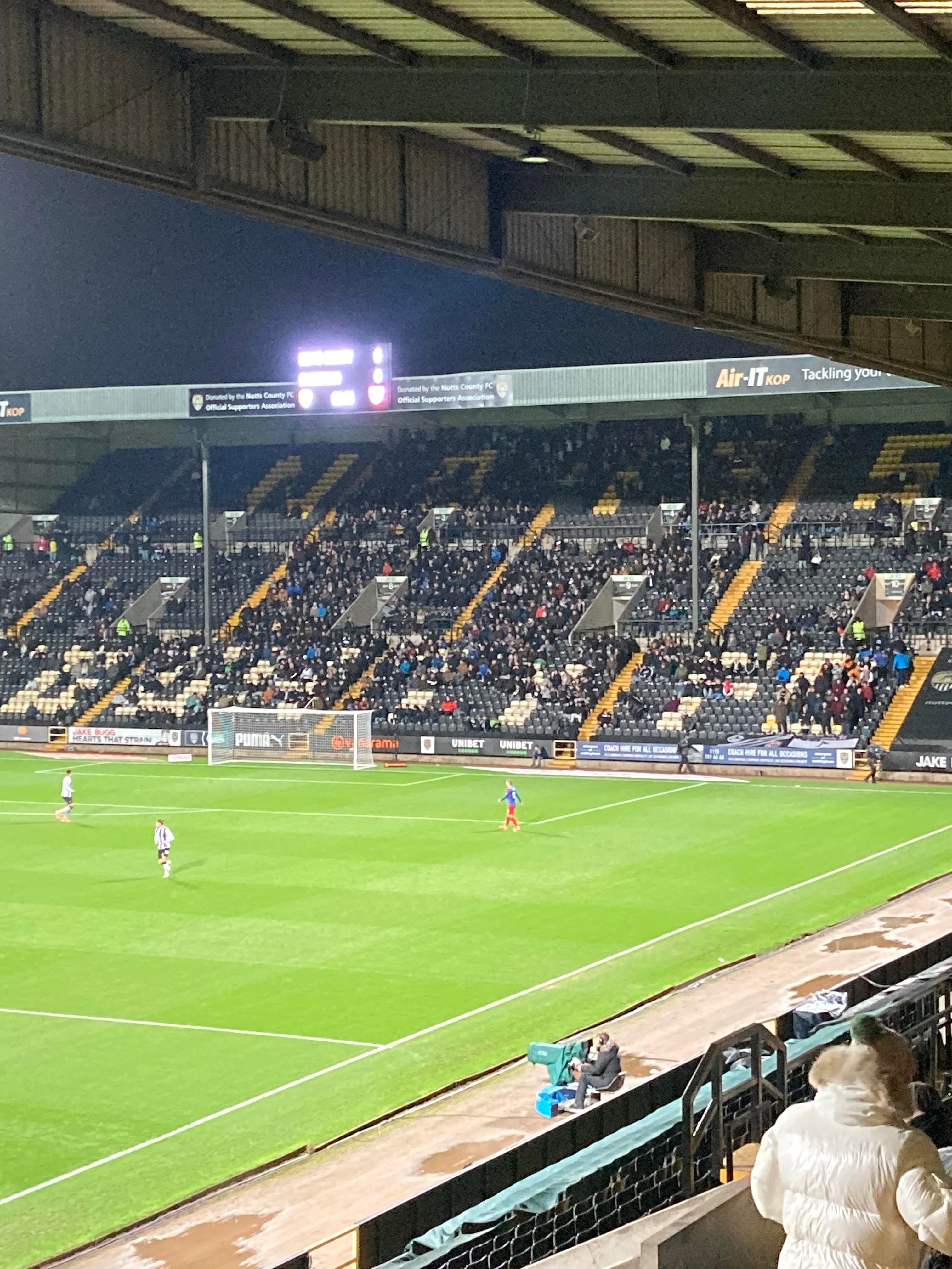 Here I am, 20 minute delay to Nottingham… It’s not looking good is it? Finally I’m on my way and here I am… I’ve made it! My third visit to this ground with the previous visits being with Mansfield Town and true to form, I am going in the away end tonight with the Dagenham fans! £23 to watch this National League tie! I WILL NOT MISS A SATURDAY!!!!! Unless it’s important anyway… The atmosphere is hotting up! “Black & White army!” From the Notts fans. “DIGGER DAGGER DIGGER DAGGER! OI OI OI!!” From the Dagenham fans!