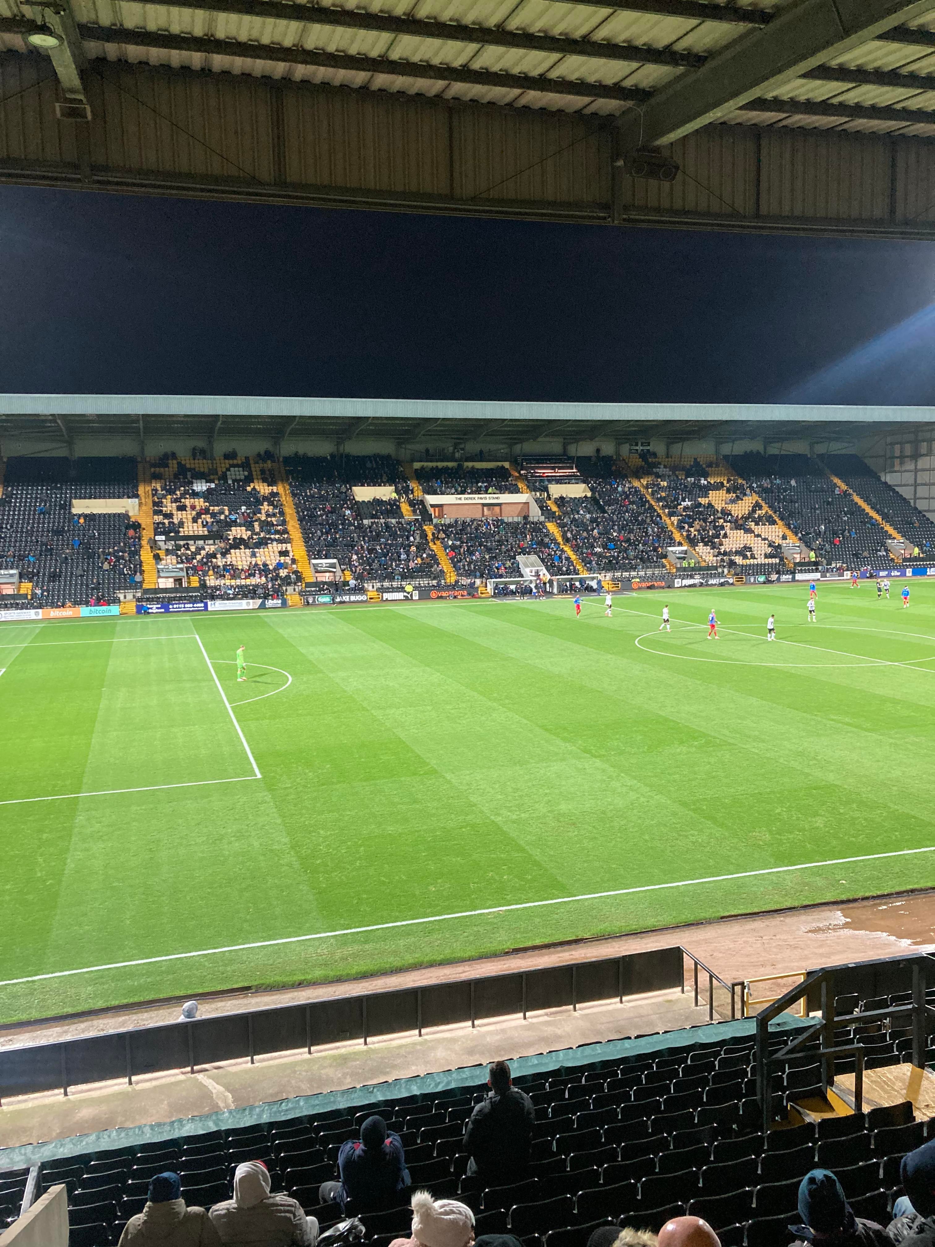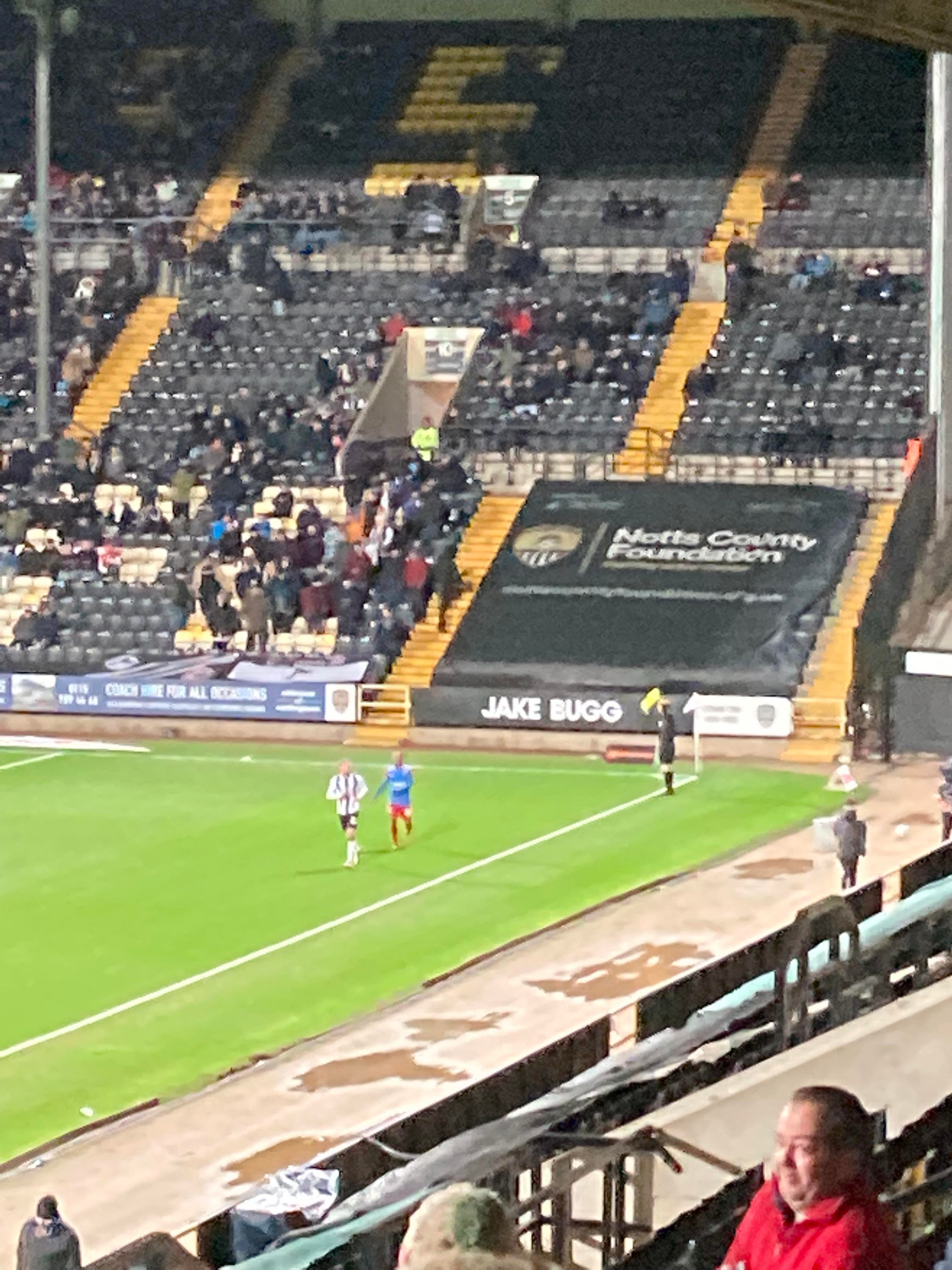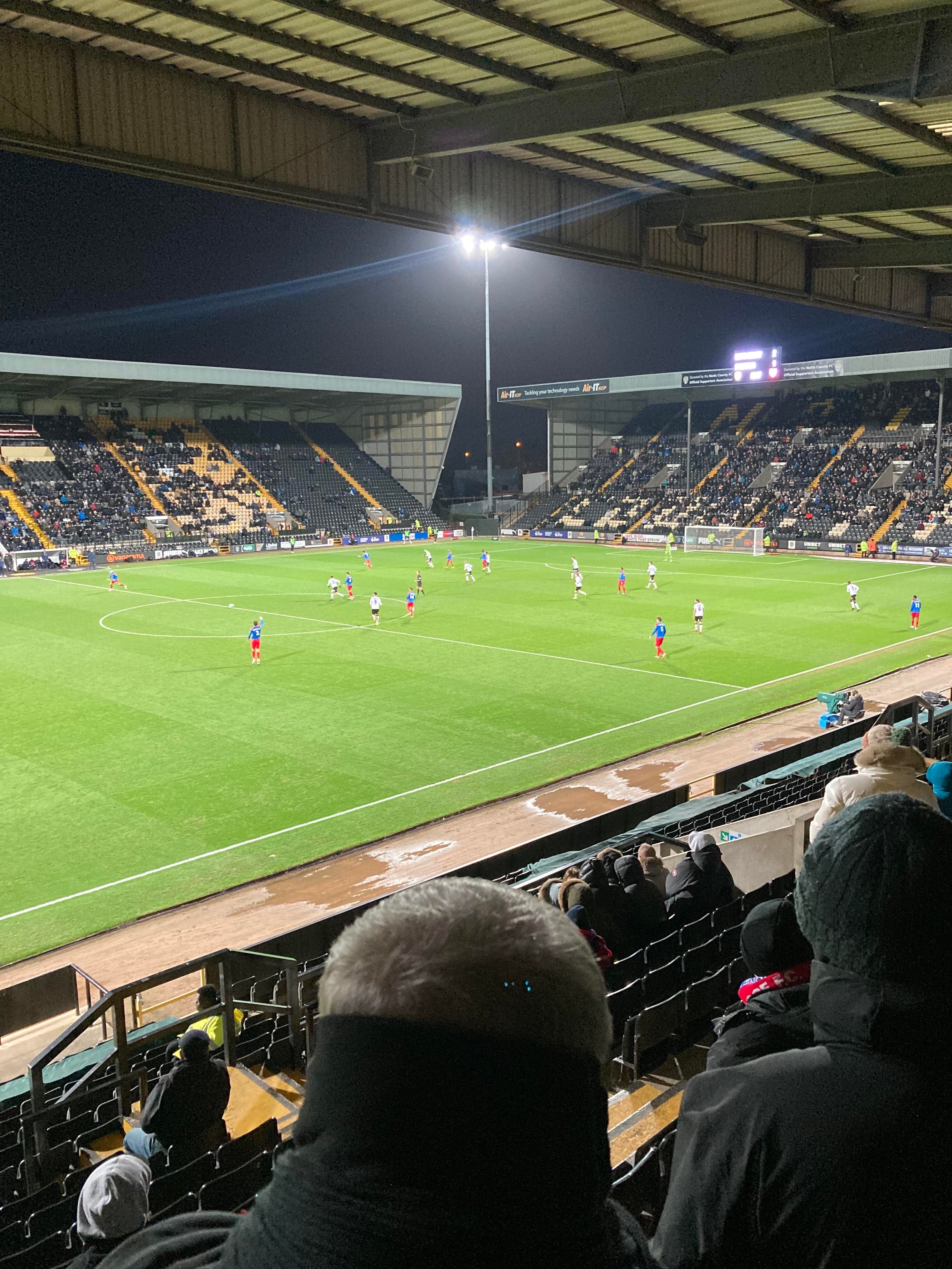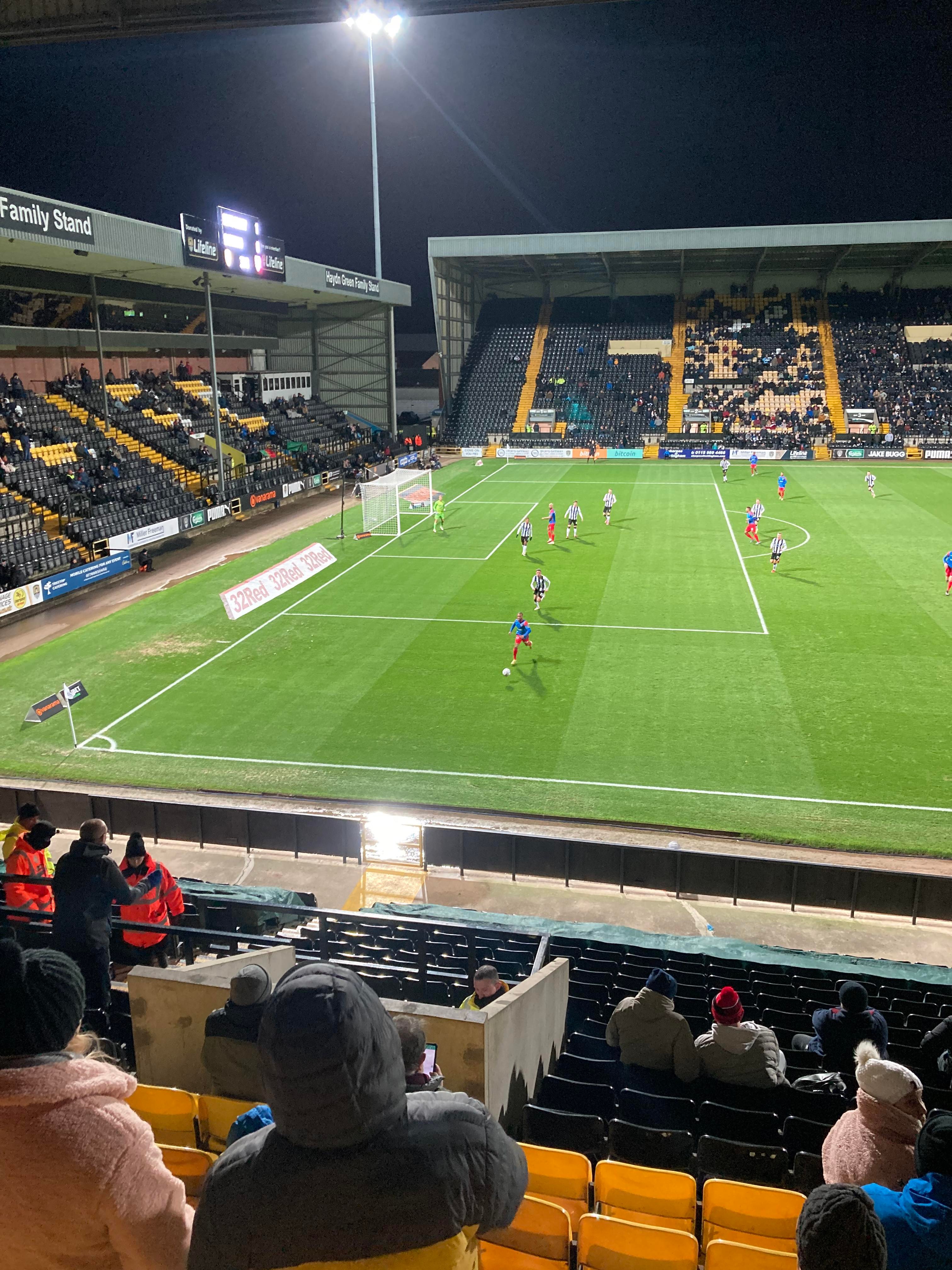 Here I am, 20 minute delay to Nottingham… It’s not looking good is it? Finally I’m on my way and here I am… I’ve made it! My third visit to this ground with the previous visits being with Mansfield Town and true to form, I am going in the away end tonight with the Dagenham fans! £23 to watch this National League tie! I WILL NOT MISS A SATURDAY!!!!! Unless it’s important anyway… The atmosphere is hotting up! “Black & White army!” From the Notts fans. “DIGGER DAGGER DIGGER DAGGER! OI OI OI!!” From the Dagenham fans!
