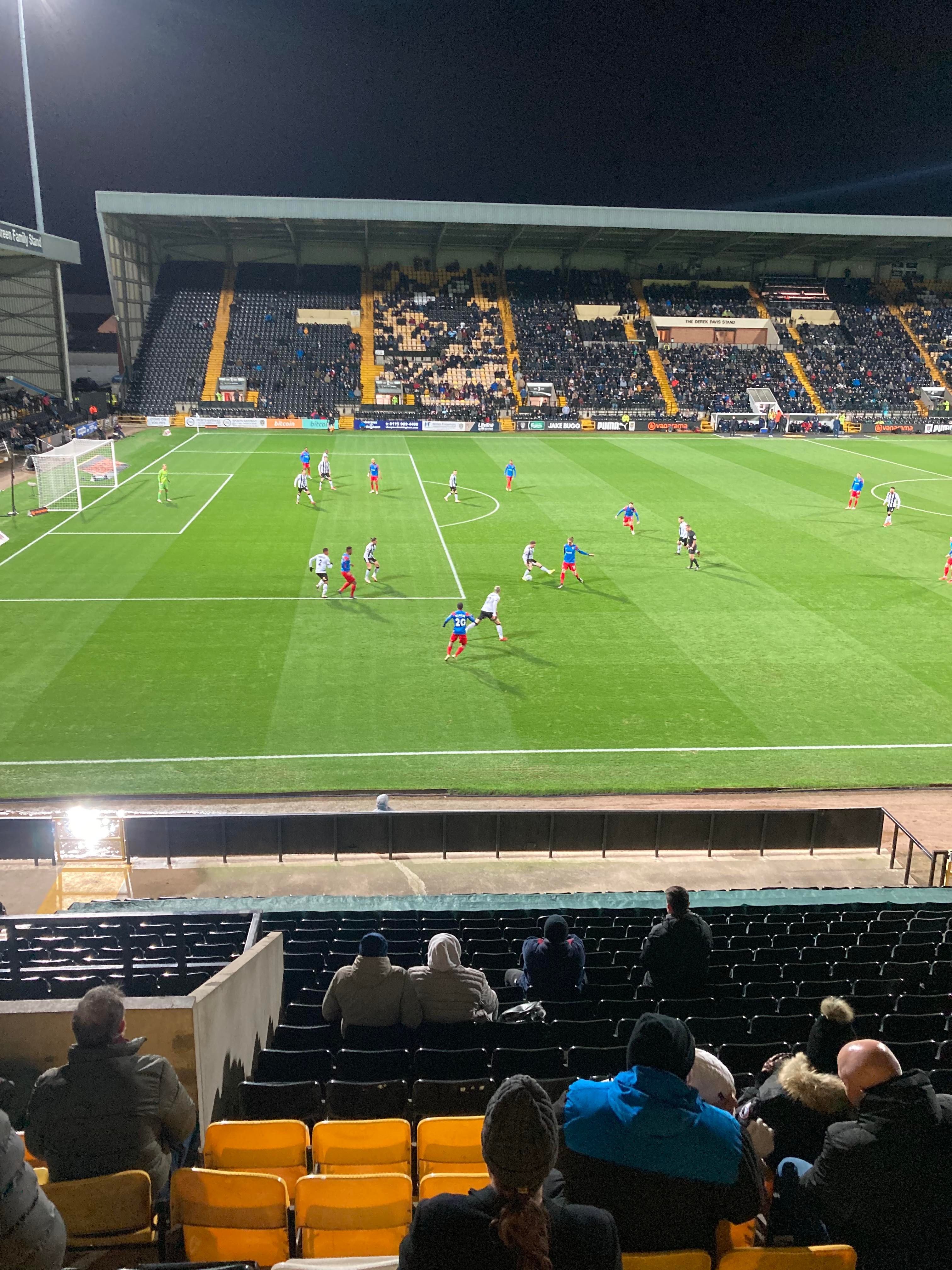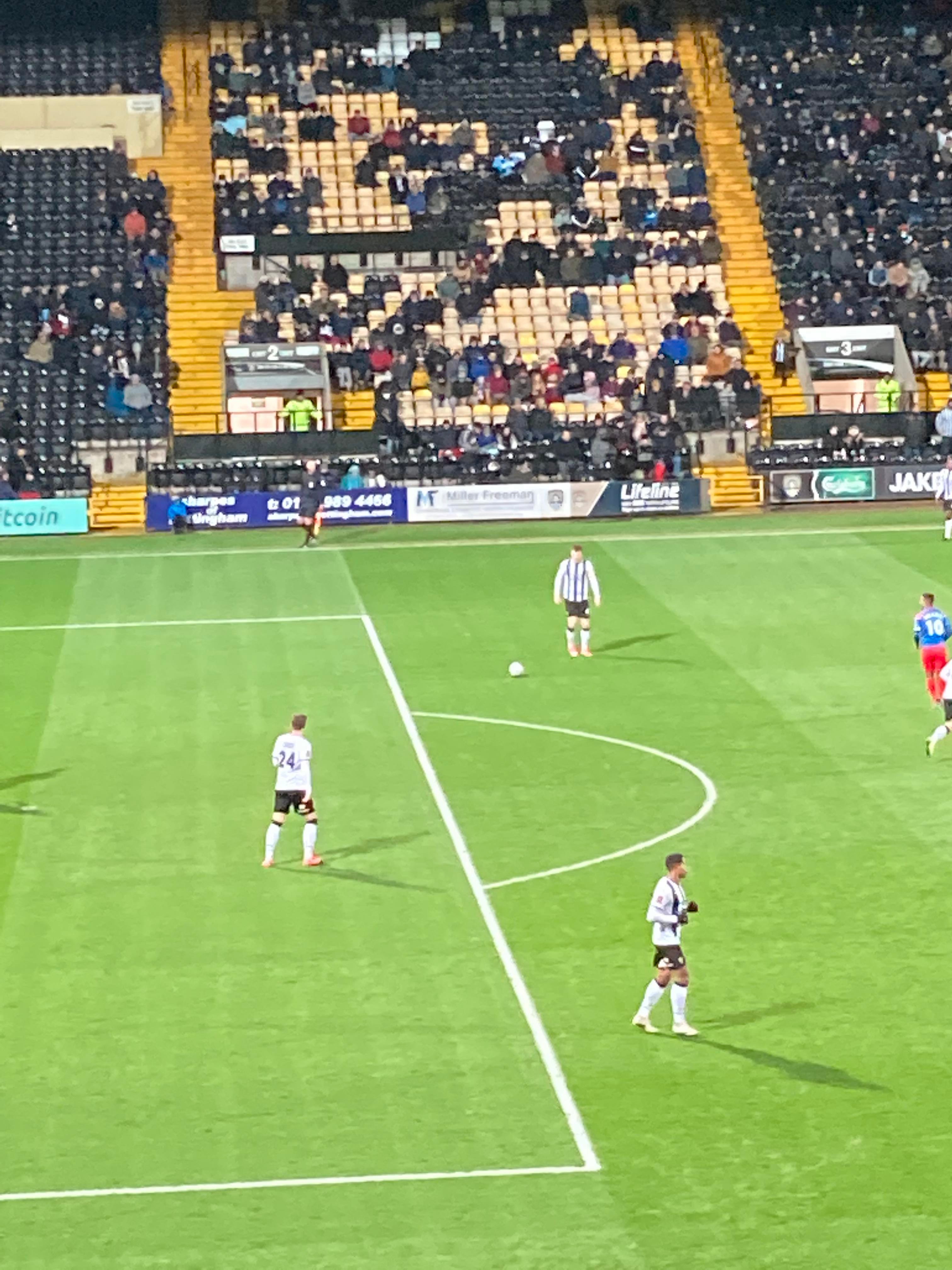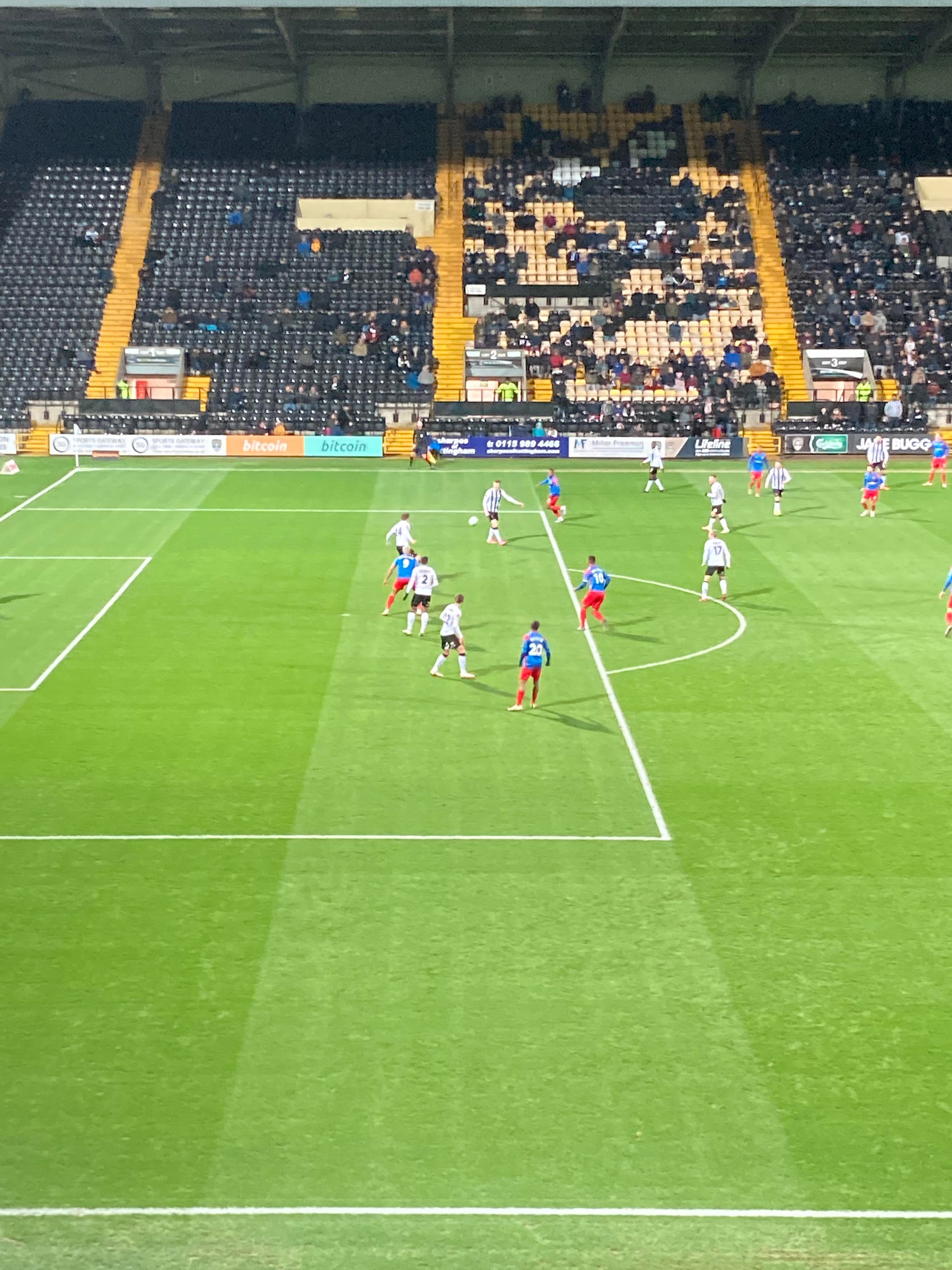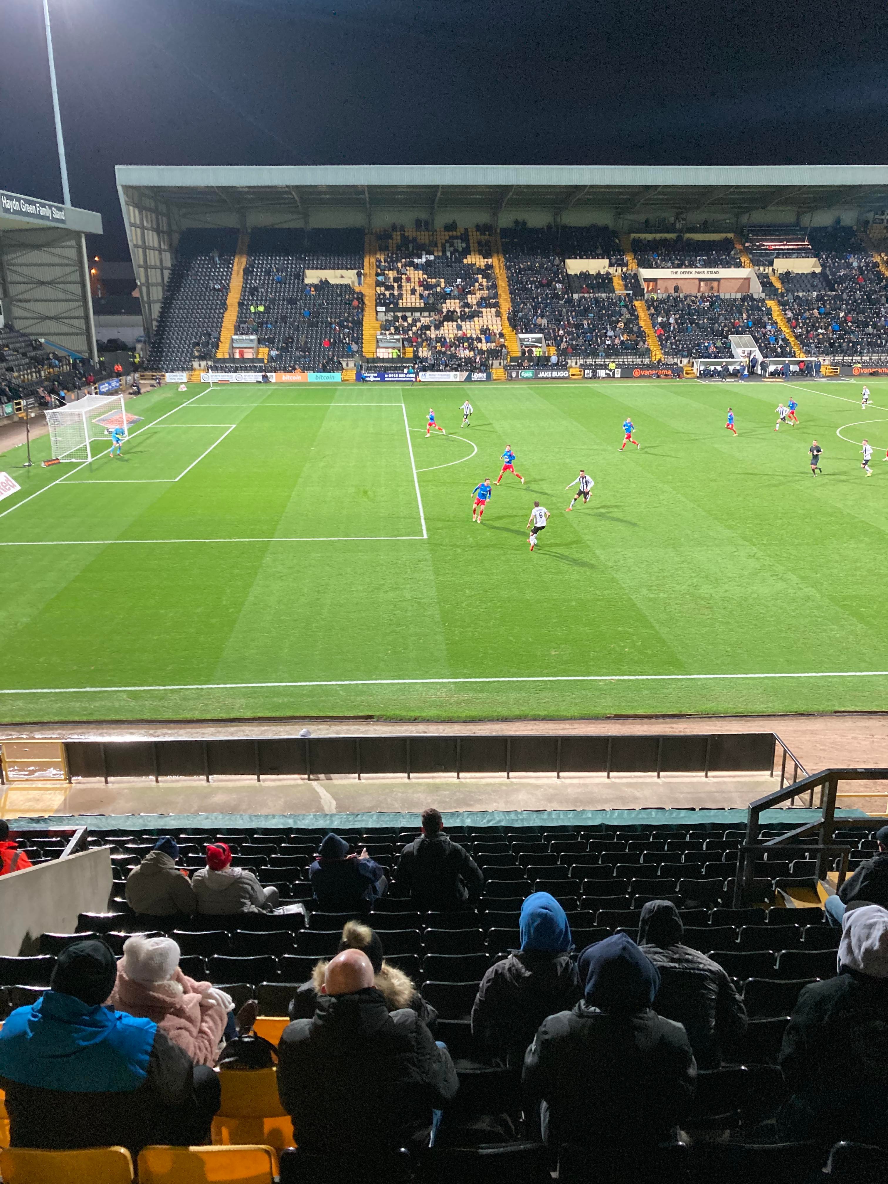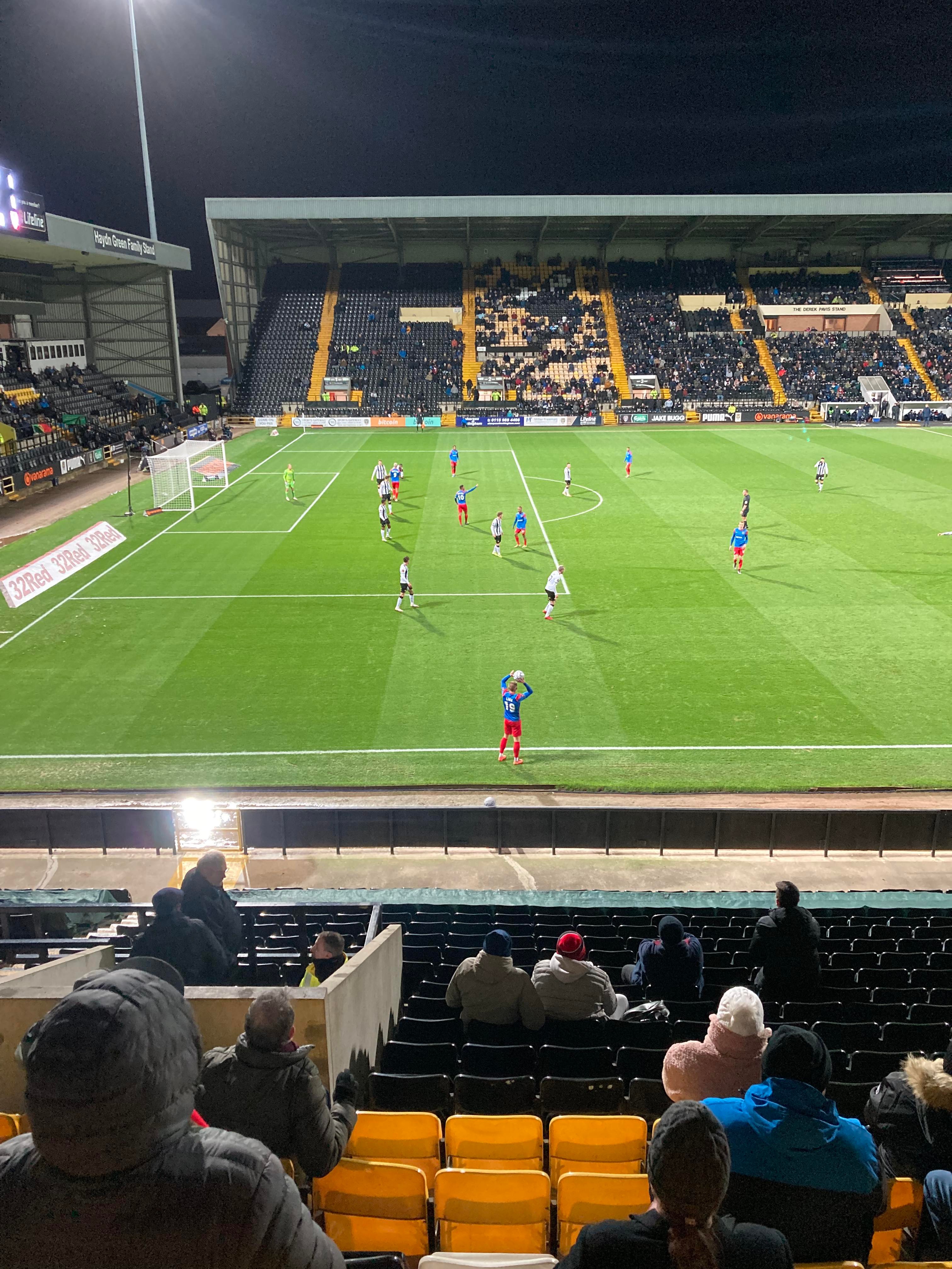 Here I am, 20 minute delay to Nottingham… It’s not looking good is it? Finally I’m on my way and here I am… I’ve made it! My third visit to this ground with the previous visits being with Mansfield Town and true to form, I am going in the away end tonight with the Dagenham fans! £23 to watch this National League tie! I WILL NOT MISS A SATURDAY!!!!! Unless it’s important anyway… The atmosphere is hotting up! “Black & White army!” From the Notts fans. “DIGGER DAGGER DIGGER DAGGER! OI OI OI!!” From the Dagenham fans!
