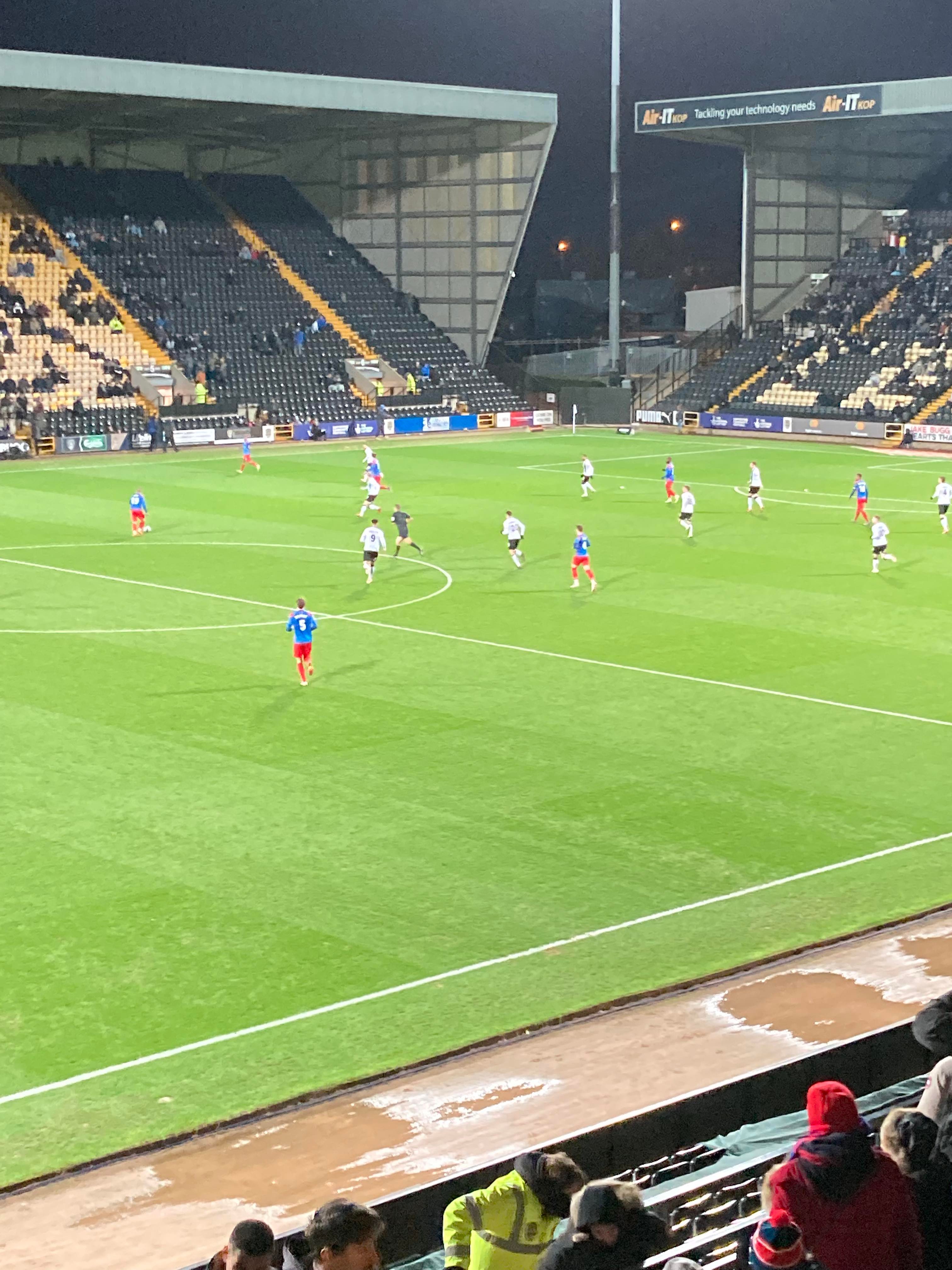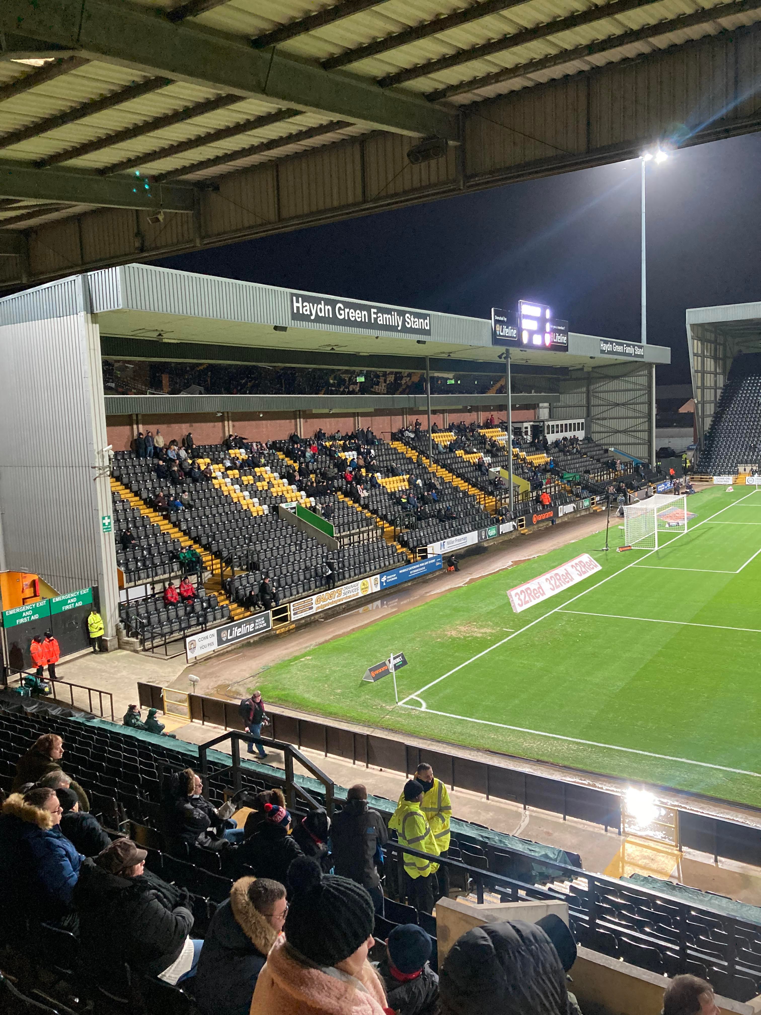 - The Ground: 9/10 – It’s fantastic for the level it’s at!! Definite Football League ground! Fit for the Championship borderline Premier League I’d say!! Lots of character and a big Kop stand!! Great ground which I hate to say as a Mansfield Town fan…