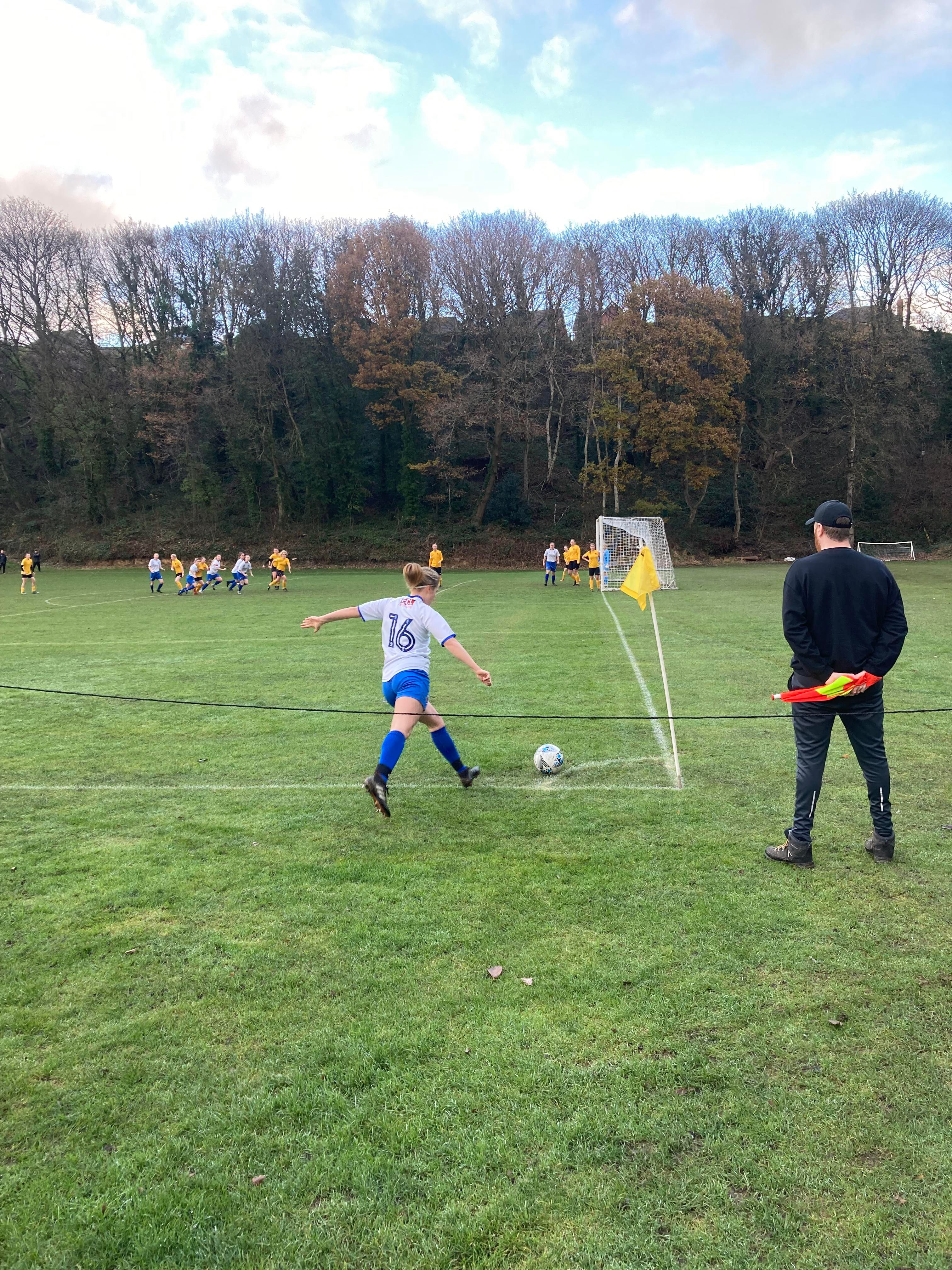 Let’s hope it’s not a sign of things to come! 41 minutes on the clock and Mansfield come forward down the right, played through to number 8 who chases it and so does the Oughtibridge keeper… Number 8 just gets there and is past the keeper, she plays it to number 10 who shoots… Deflected wide! Corner for Mansfield, in it comes… Cleared and here come Oughtibridge on the break, number 11 bombs down the left wing, she crosses, Mansfield’s number 5 gets there… She’s headed it off her own crossbar and it’s out for an Oughtibridge corner, in it comes… Number 20 gets there… Over! 0-0 at half time here…