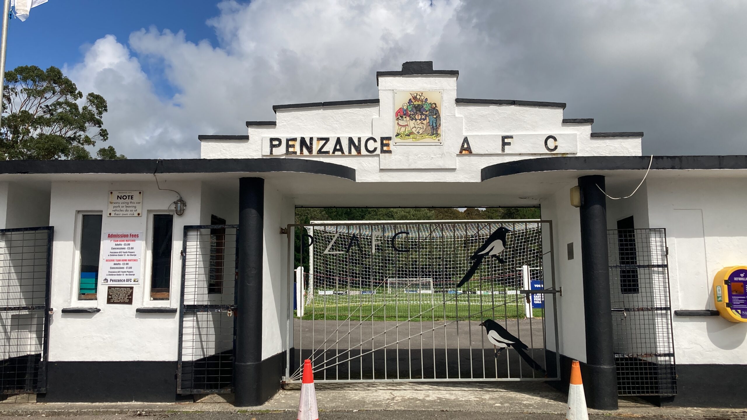 Penlee Park, home of Penzance AFC based in Cornwall and play their trade in Step 6 of the Non League Pyramid in the South West Peninsula League Premier Division West. Nicknamed the “Magpies” which should give you a clue what colour or colours they play in!