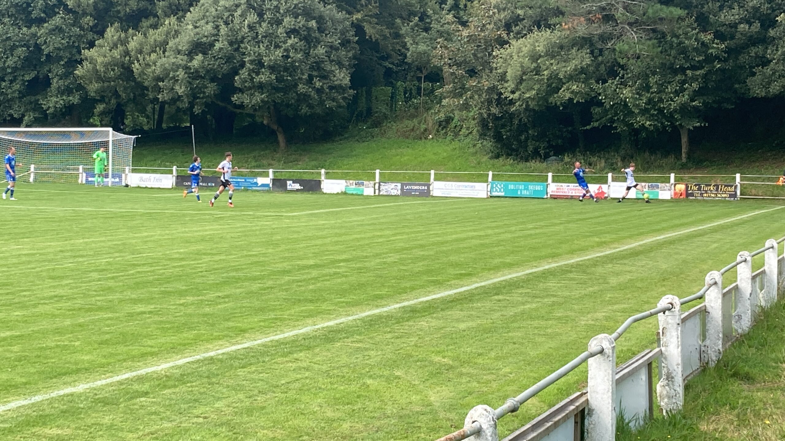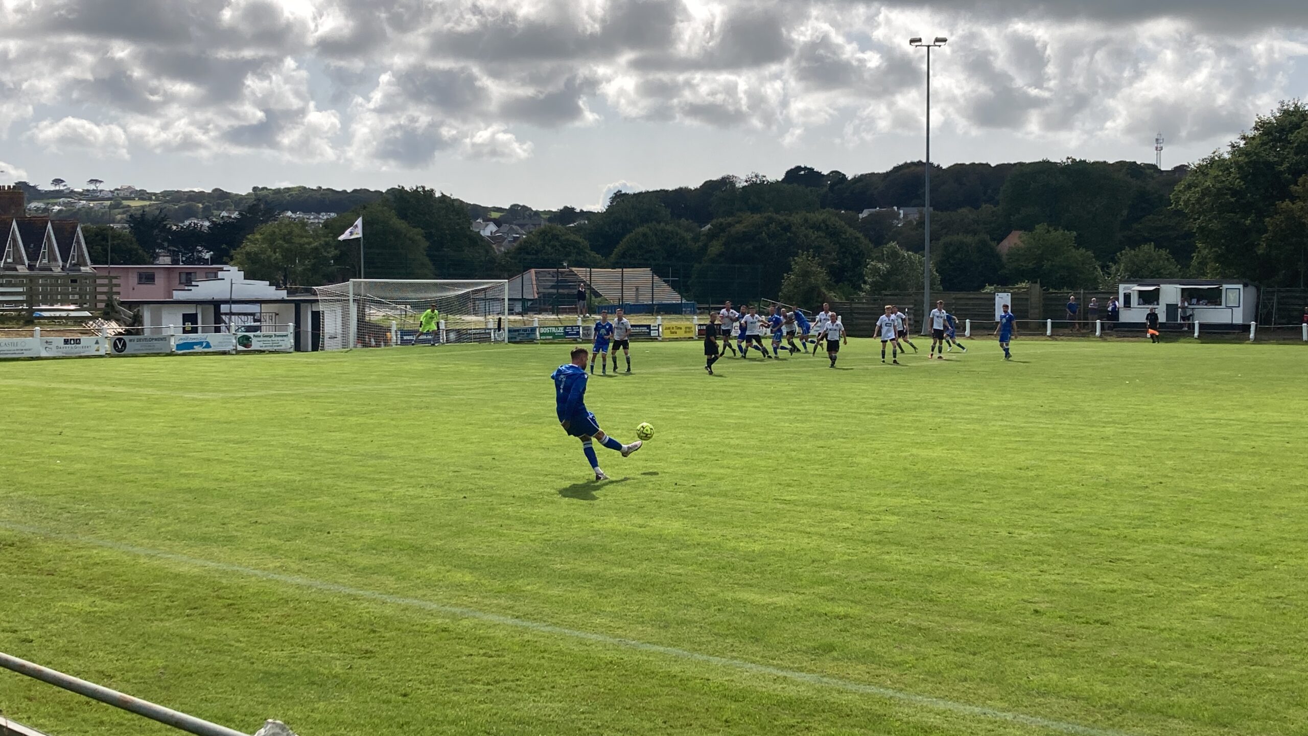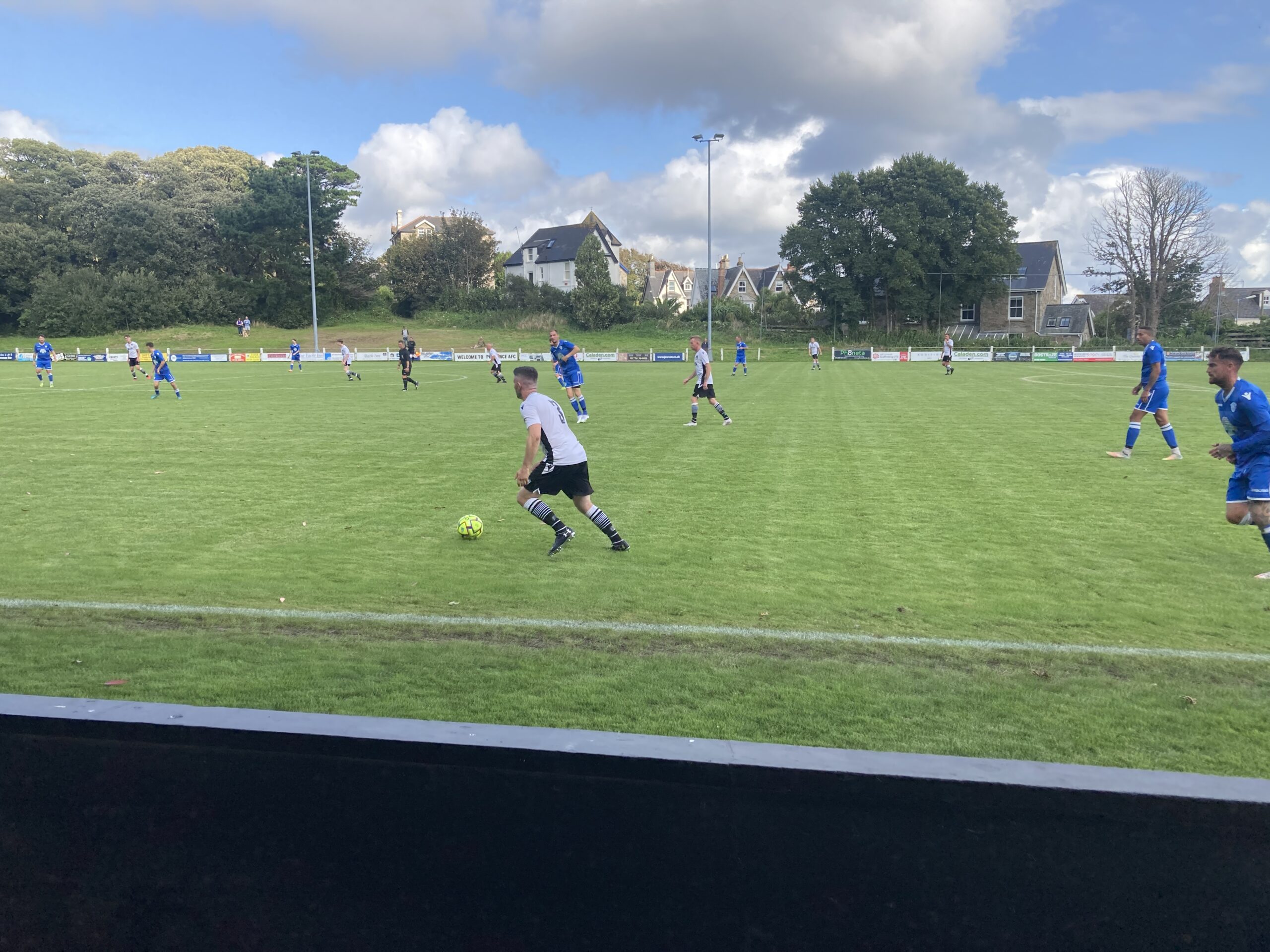 18 minutes in and Penzance come forward and that is a brilliant ball and Oscar Massey is in… OH! He’s dinked the keeper brilliantly! WHAT A FINISH! But what a ball that was! Penzance lead and I am going home with a goal from each game! 1-0!