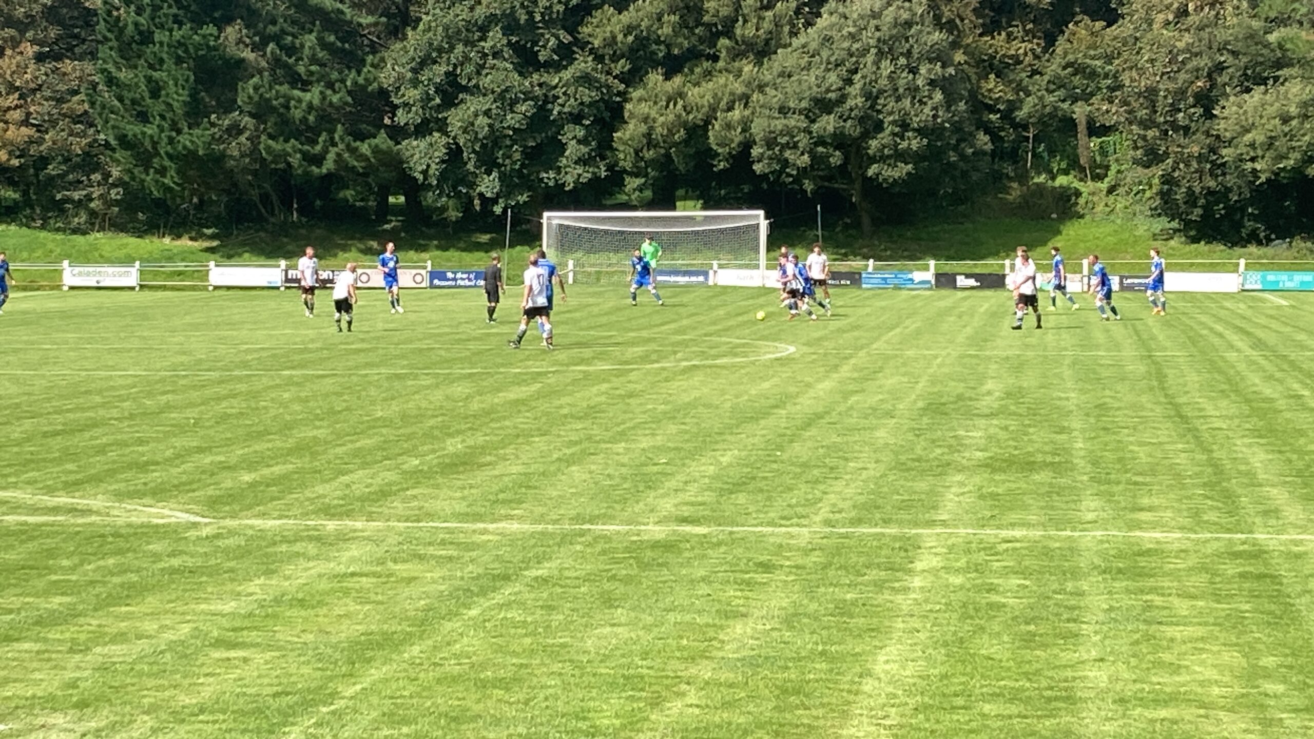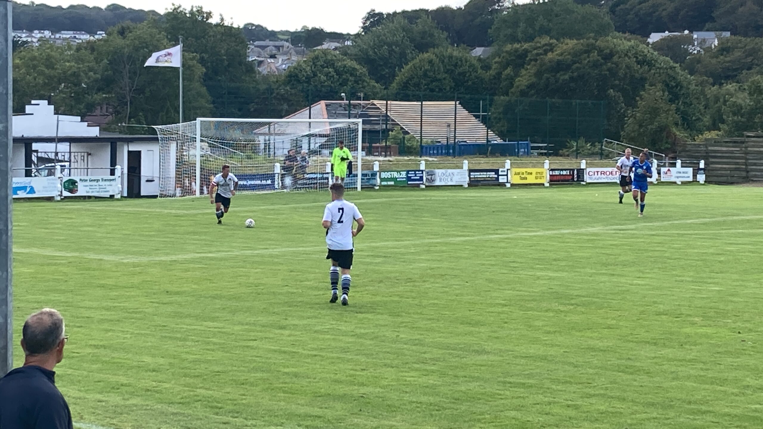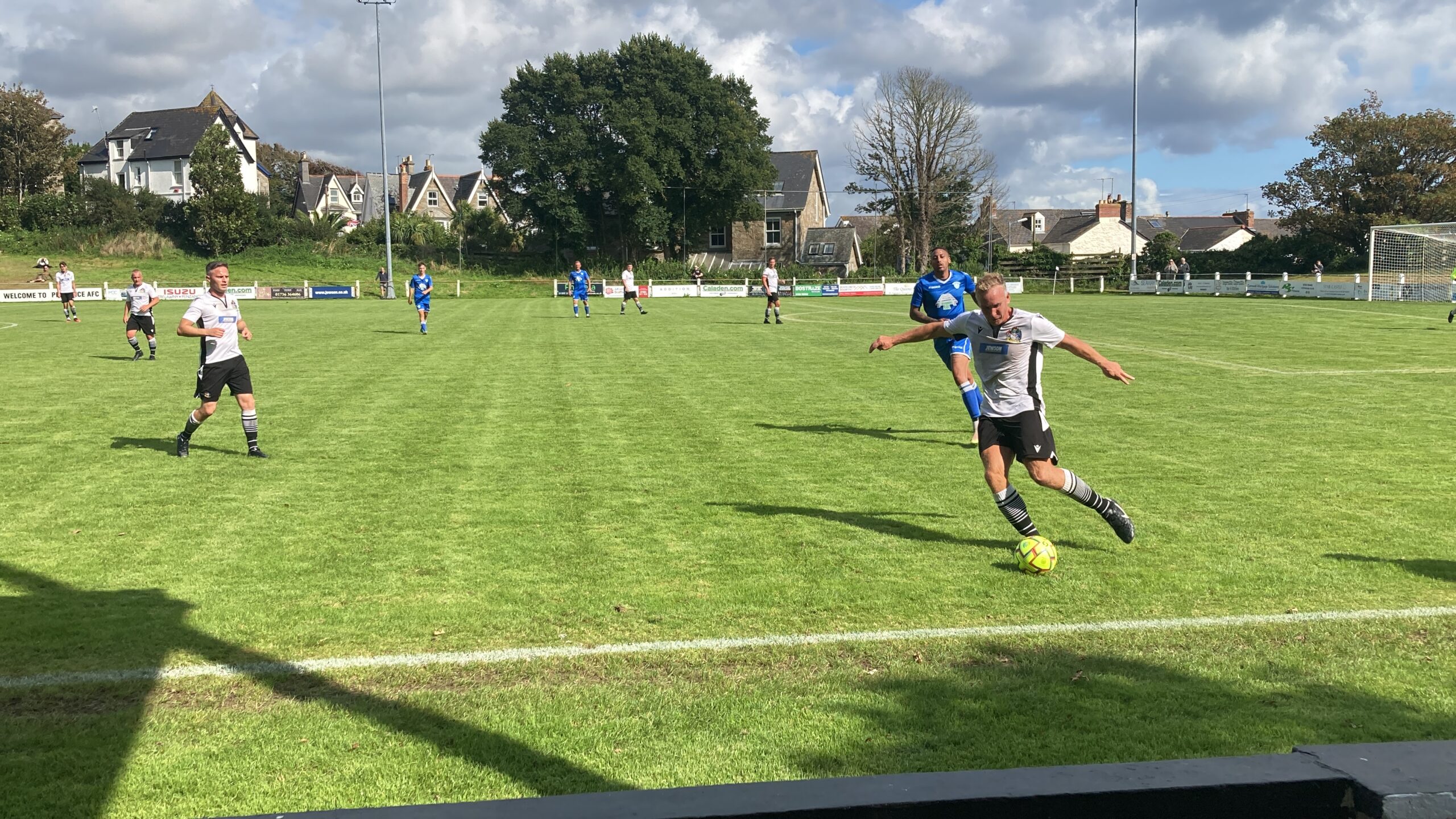 18 minutes in and Penzance come forward and that is a brilliant ball and Oscar Massey is in… OH! He’s dinked the keeper brilliantly! WHAT A FINISH! But what a ball that was! Penzance lead and I am going home with a goal from each game! 1-0!