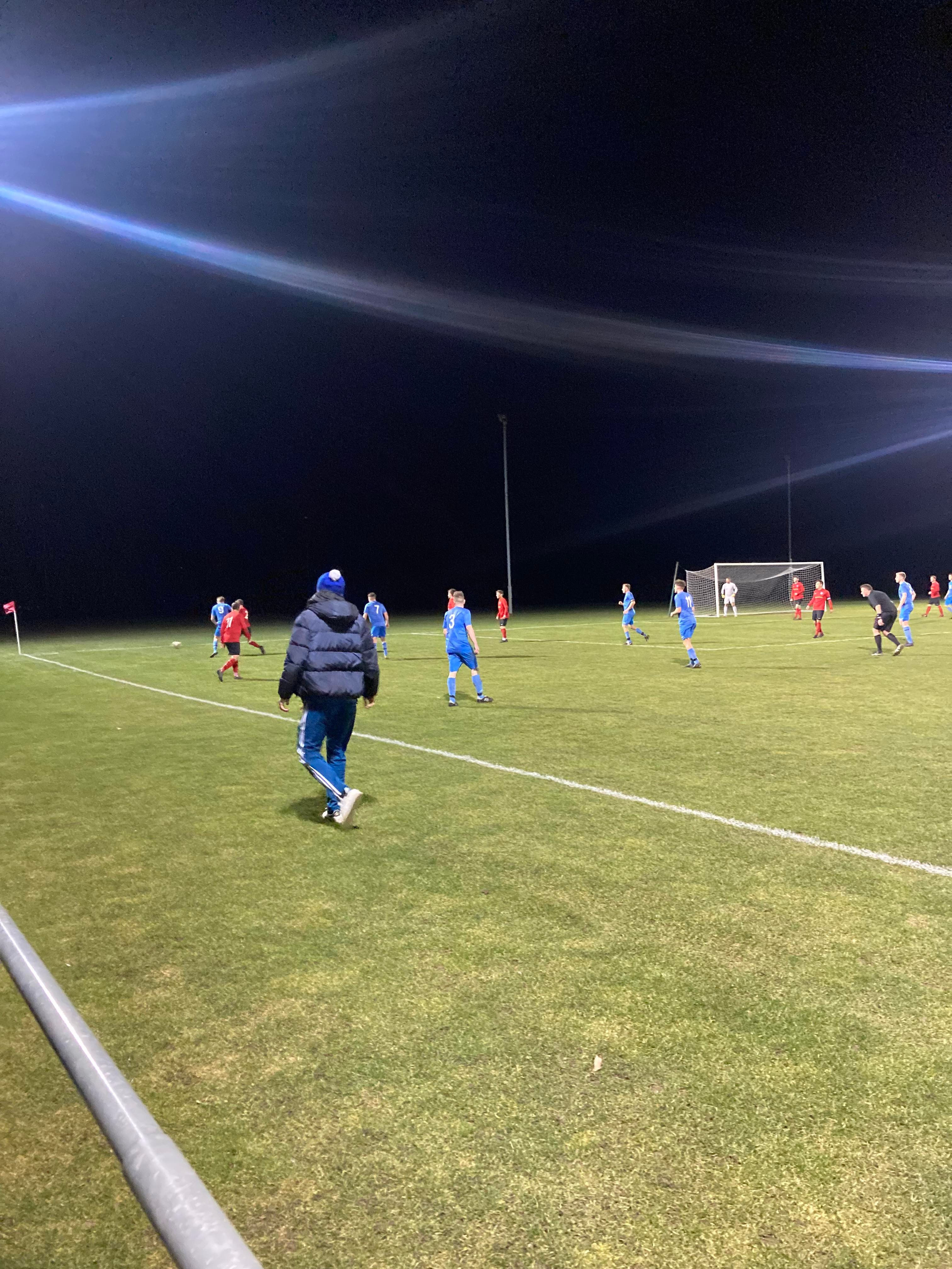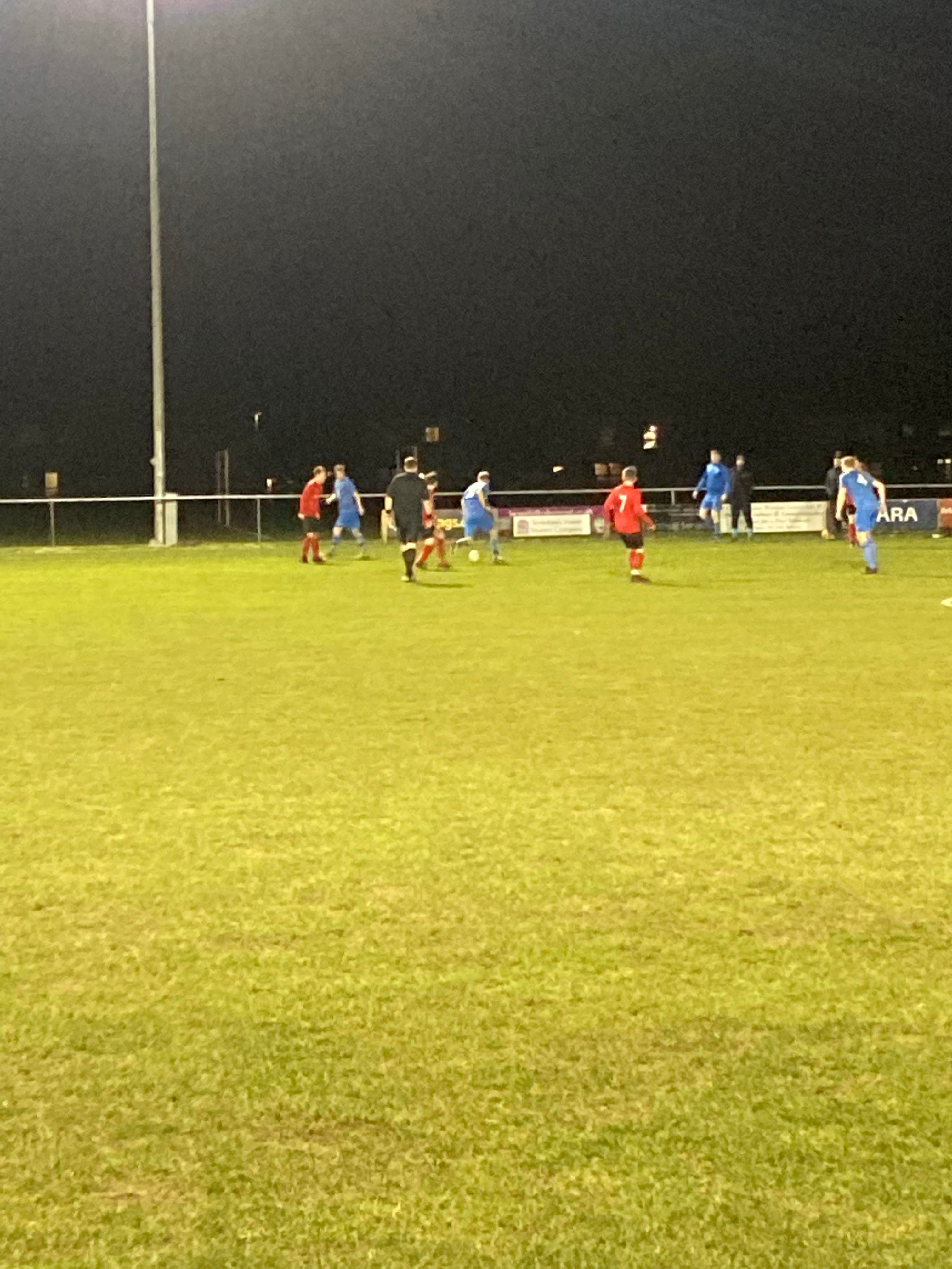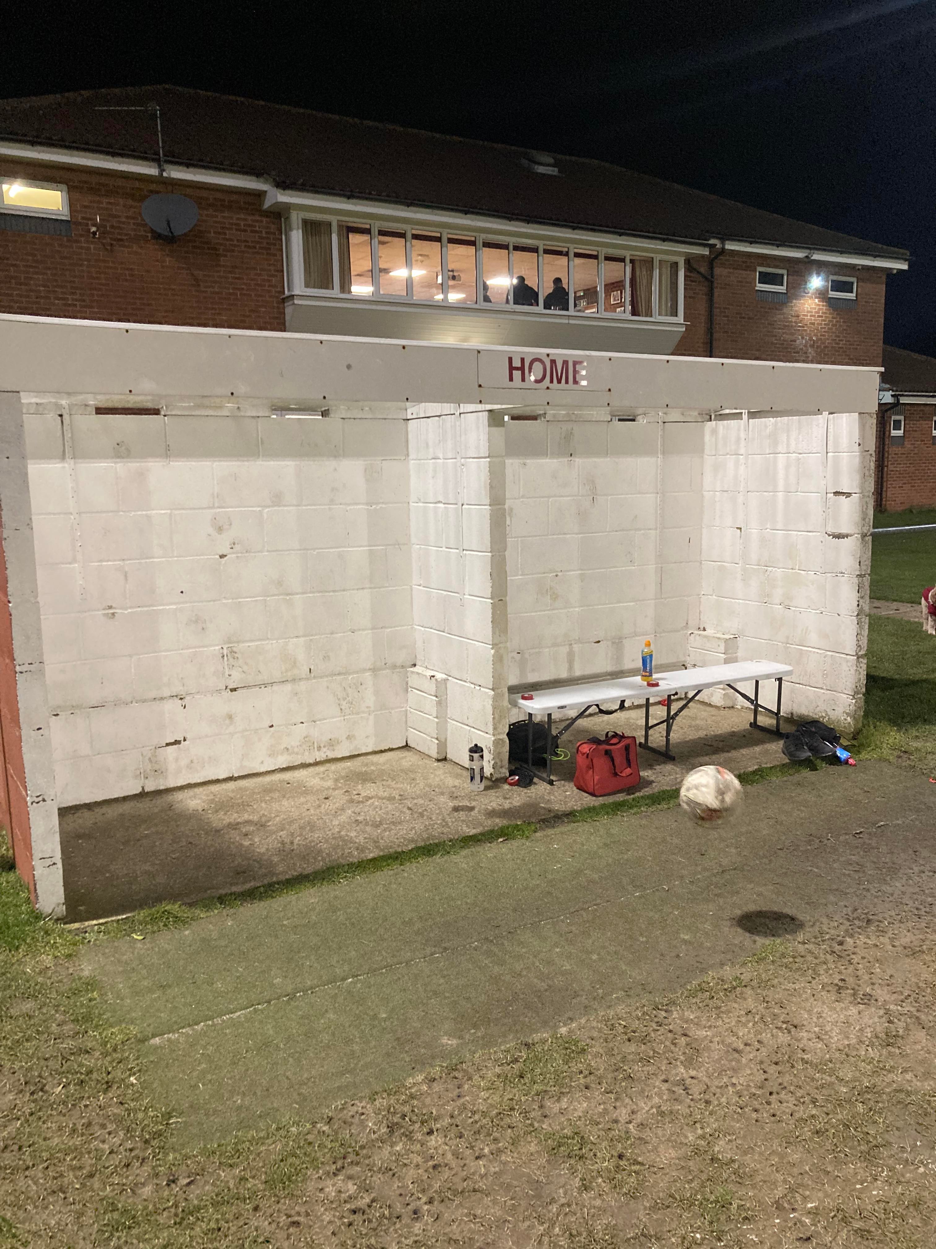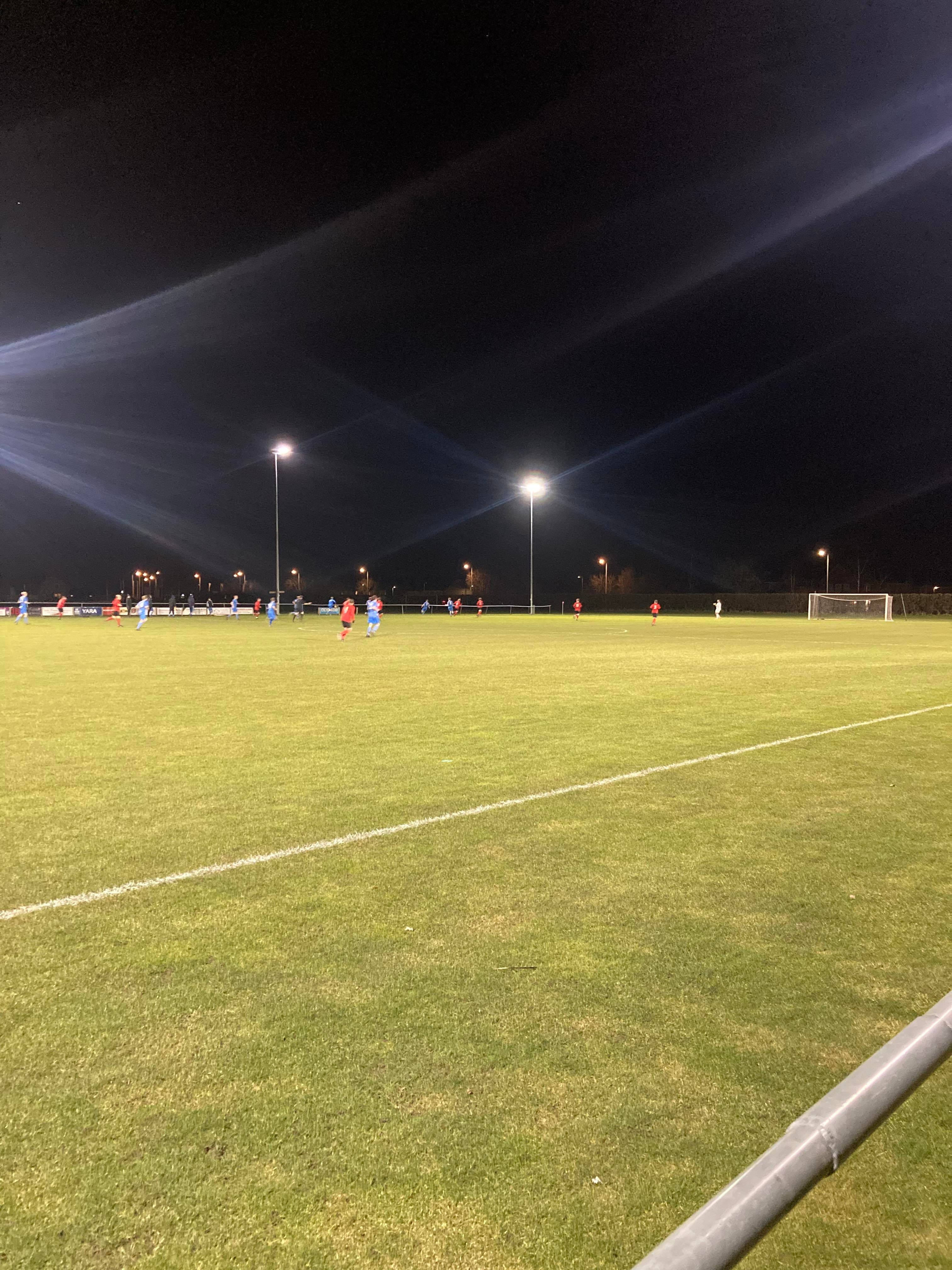 Now to get some warmth in the club bar. A lovely little bar they have here! I have to say it’s better than some of the higher level non league club bars out there! Liverpool have a Penalty against Leeds to make it 3, Mo Salah… Oh yes! Man United are 1-0 down to Atletico Madrid in the first half of their game too. The players are back out for the second half of our game now but hey, we can watch it here no problem! What a great view!